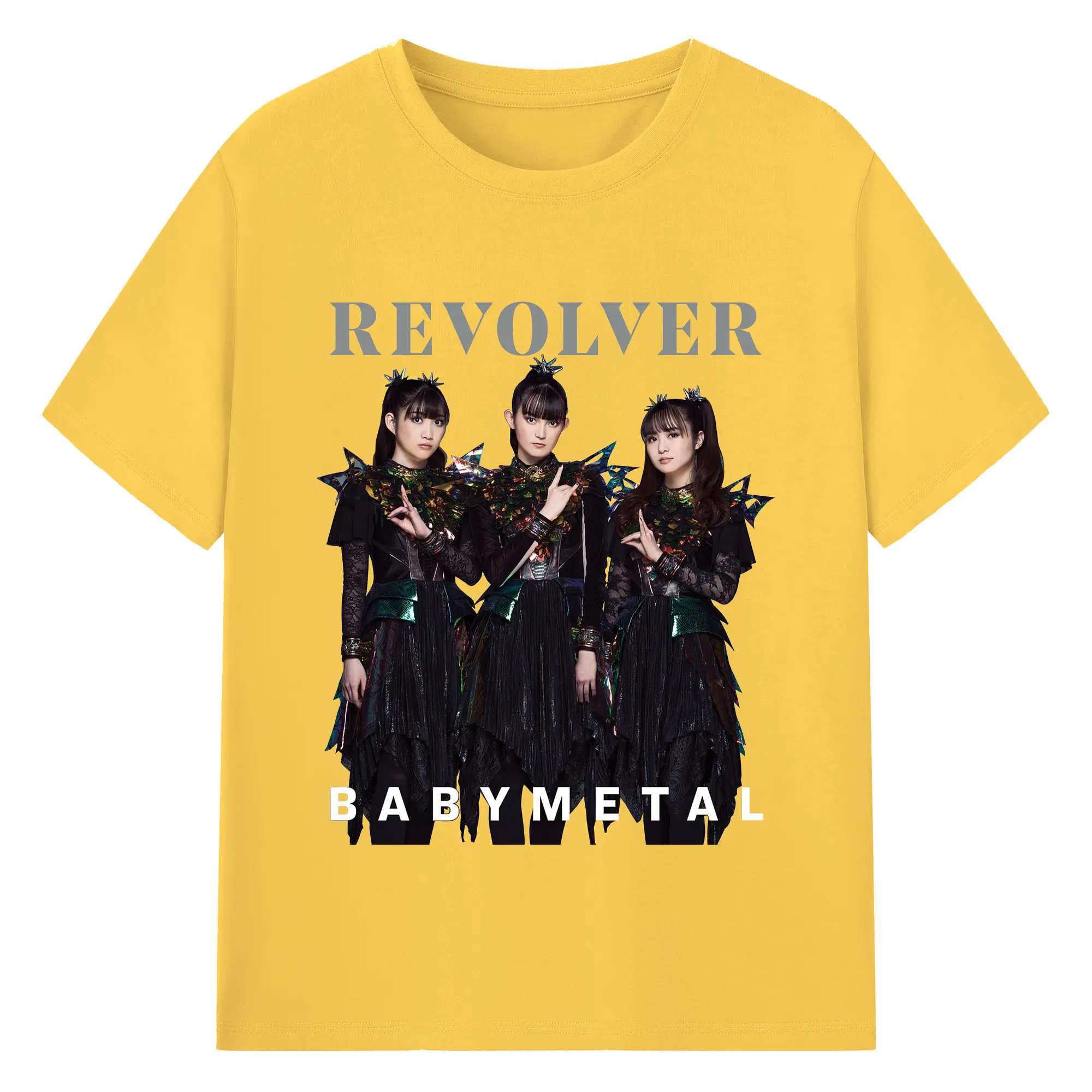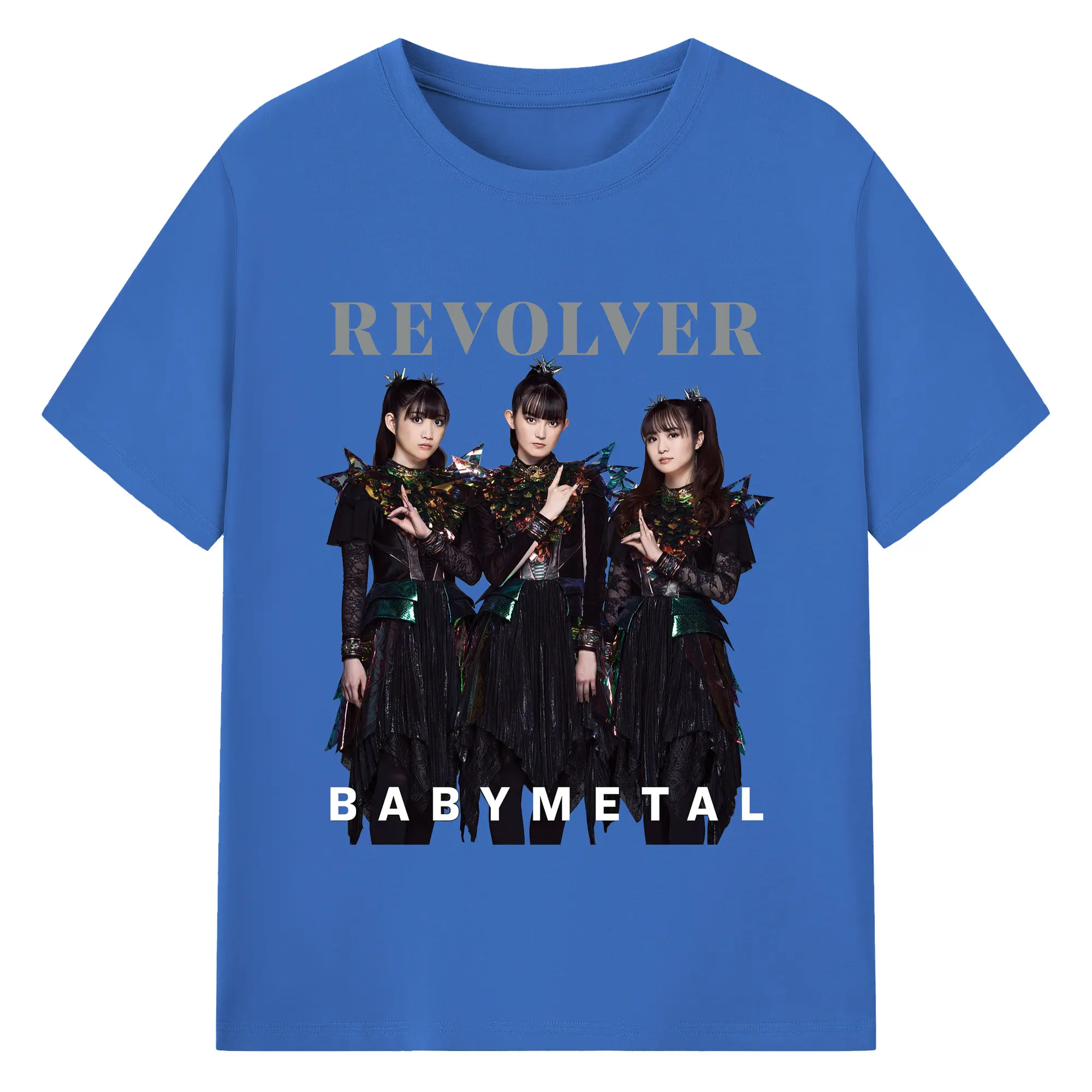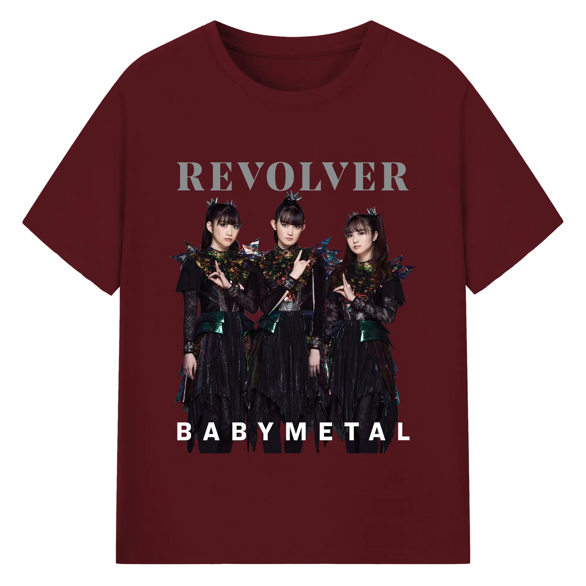 ベビーメタル BABYMETAL&REVOLVER - 綿100% ヴィンテージ風 半袖Tシャツ ・ フロントプリント ・ 柔らか肌触り ・ 通気性 快適 ・ スポーツ カジュアル 外出用