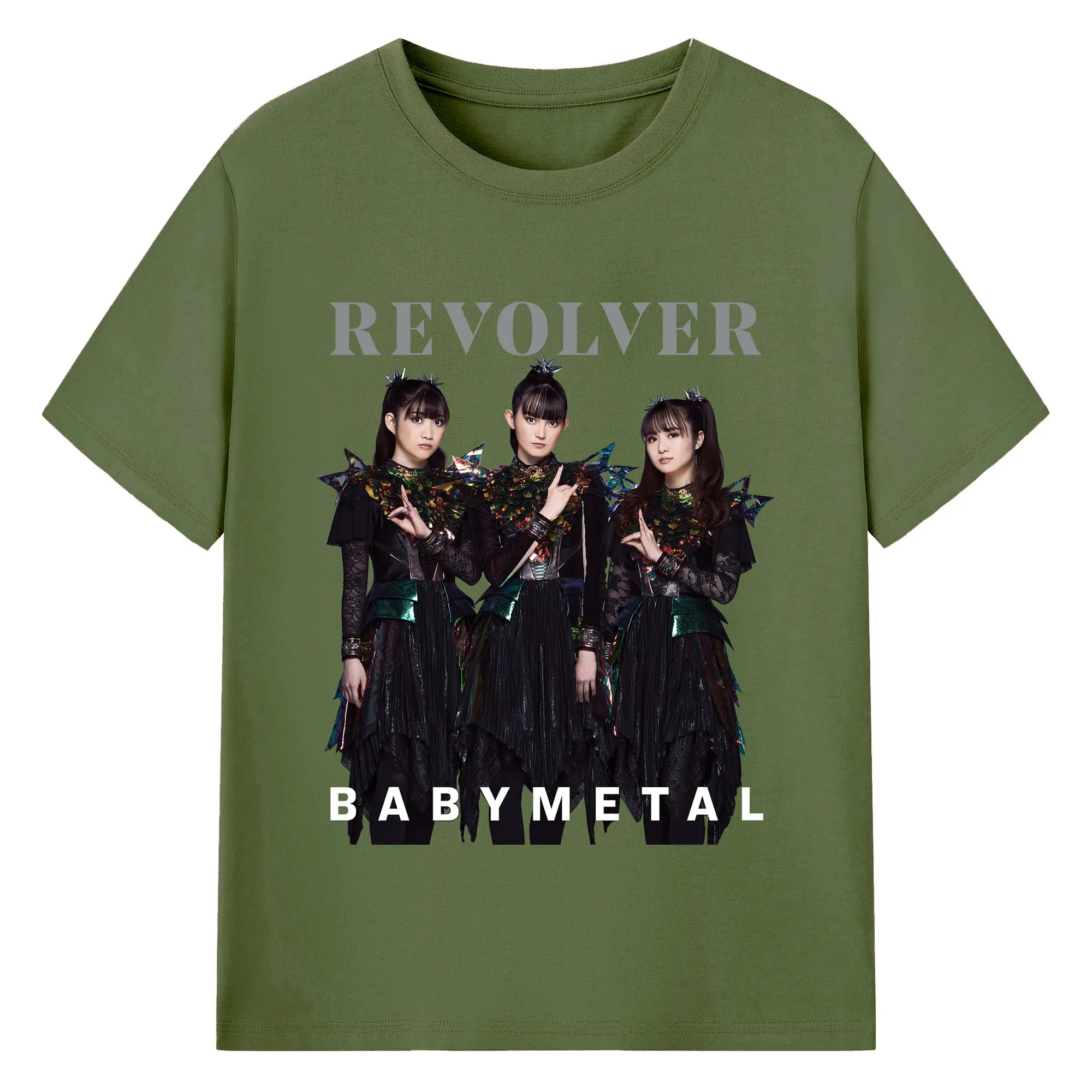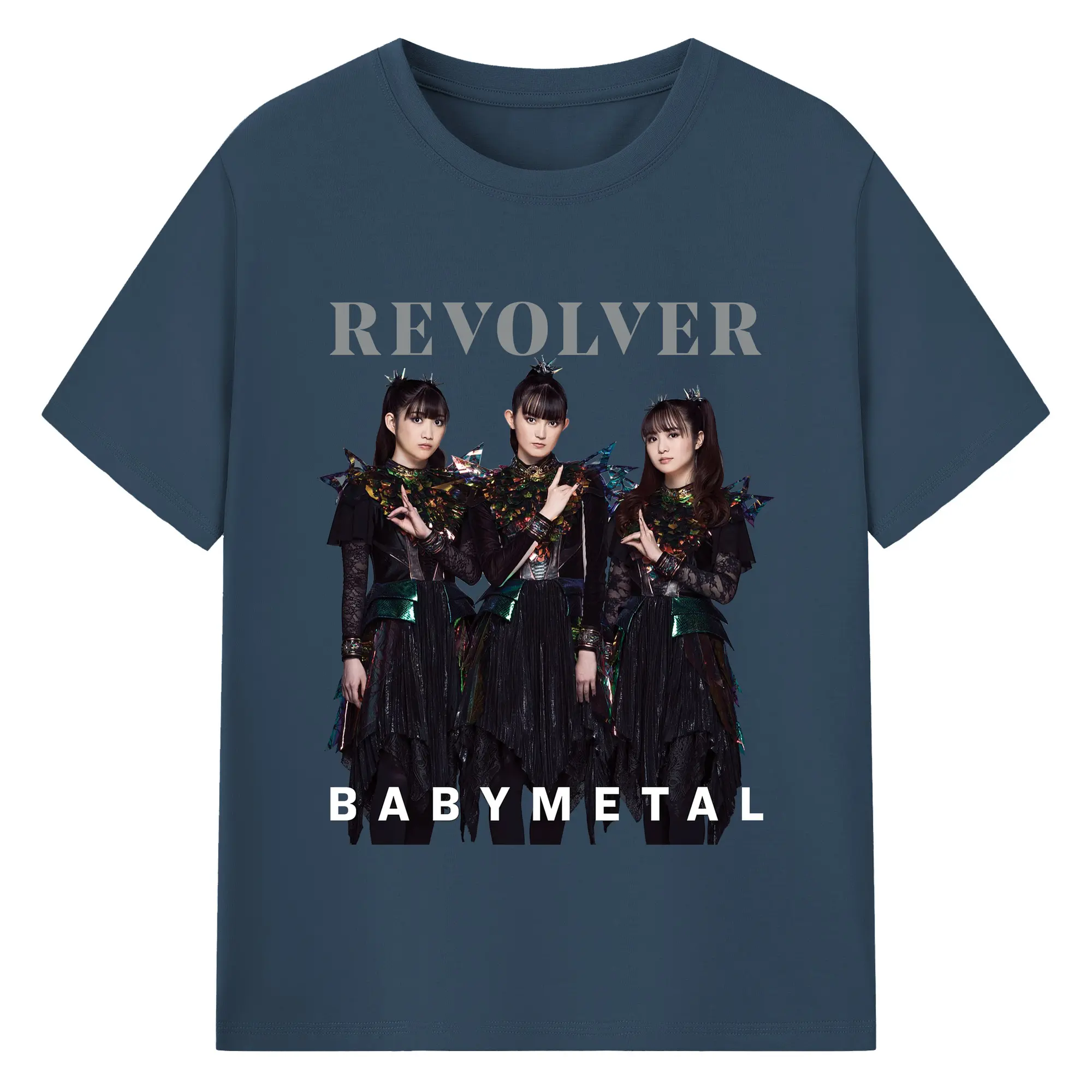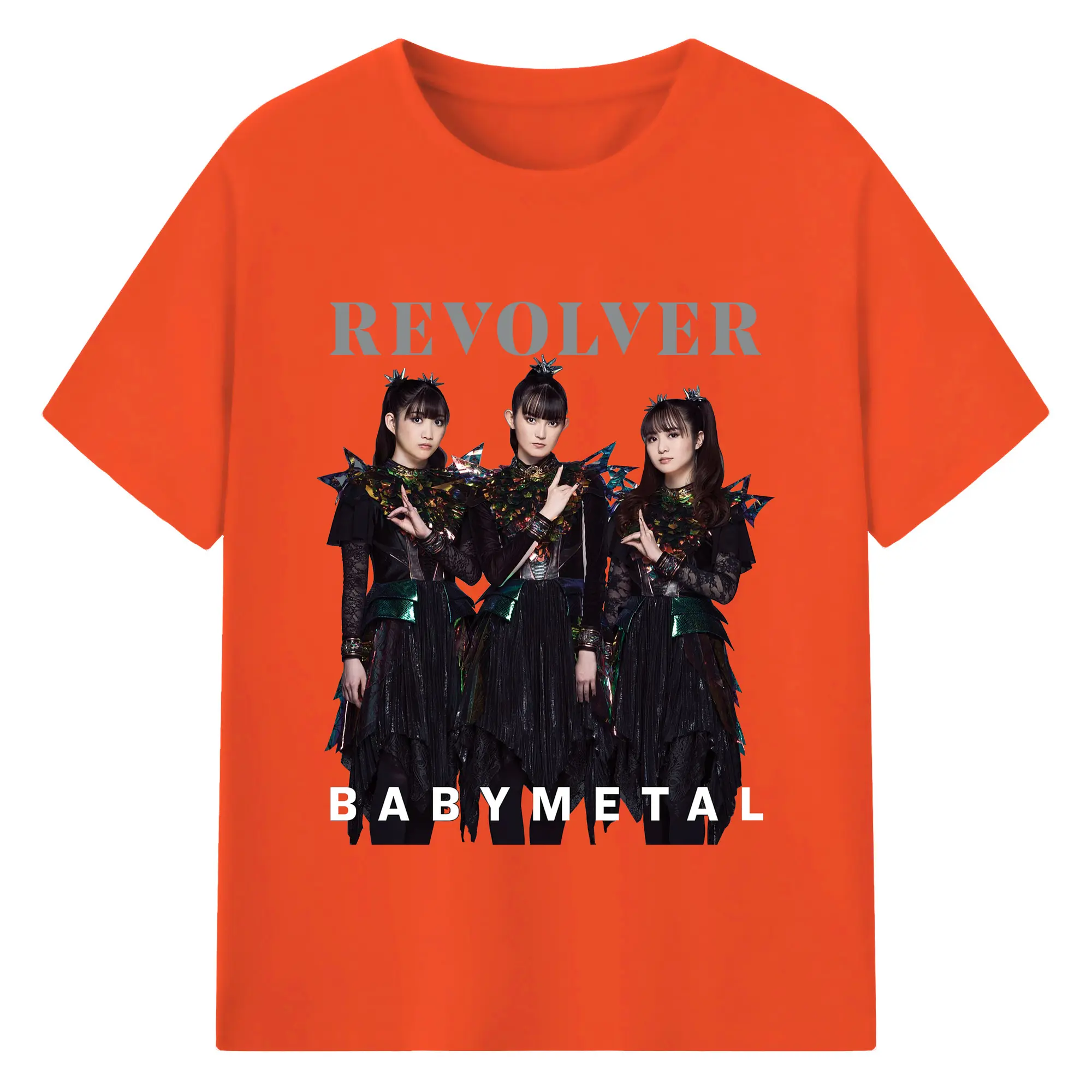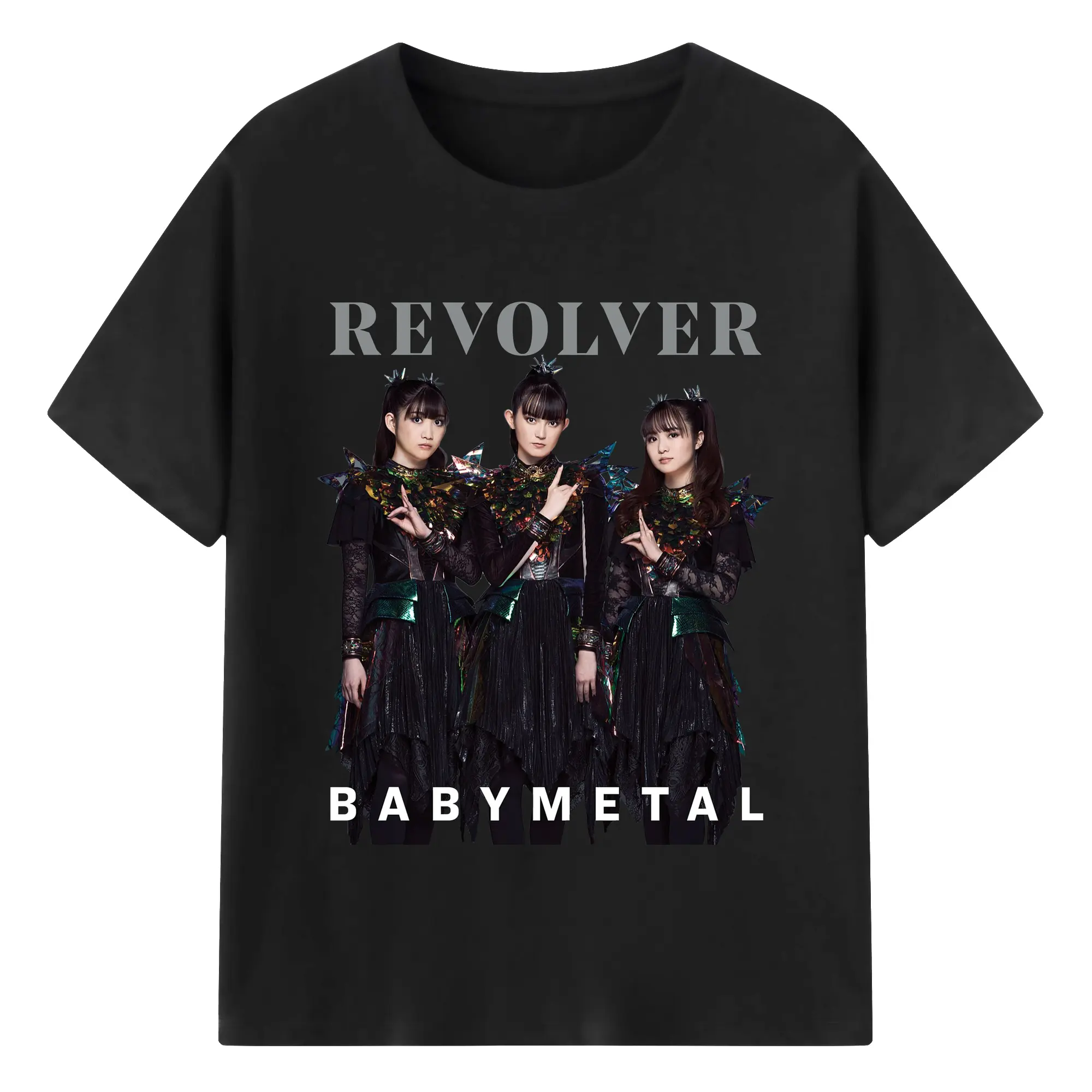 ベビーメタル BABYMETAL&REVOLVER - 綿100% ヴィンテージ風 半袖Tシャツ ・ フロントプリント ・ 柔らか肌触り ・ 通気性 快適 ・ スポーツ カジュアル 外出用