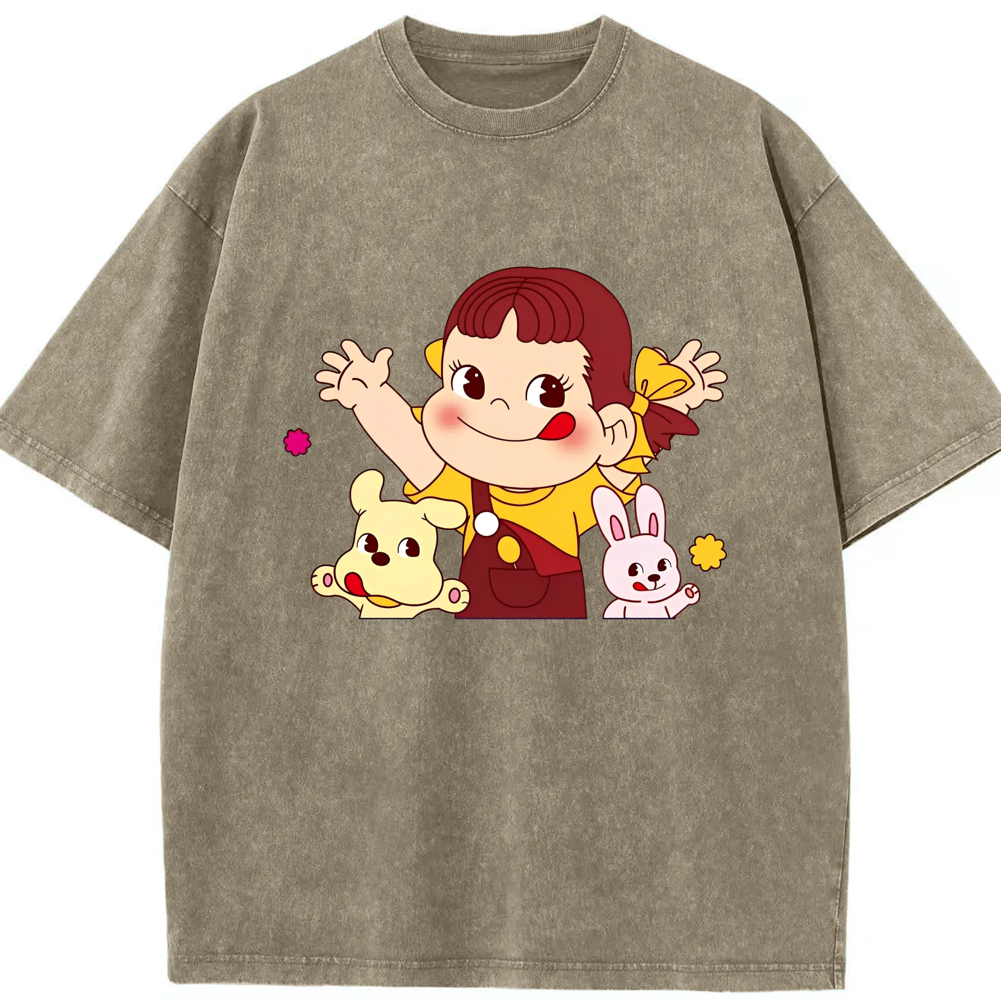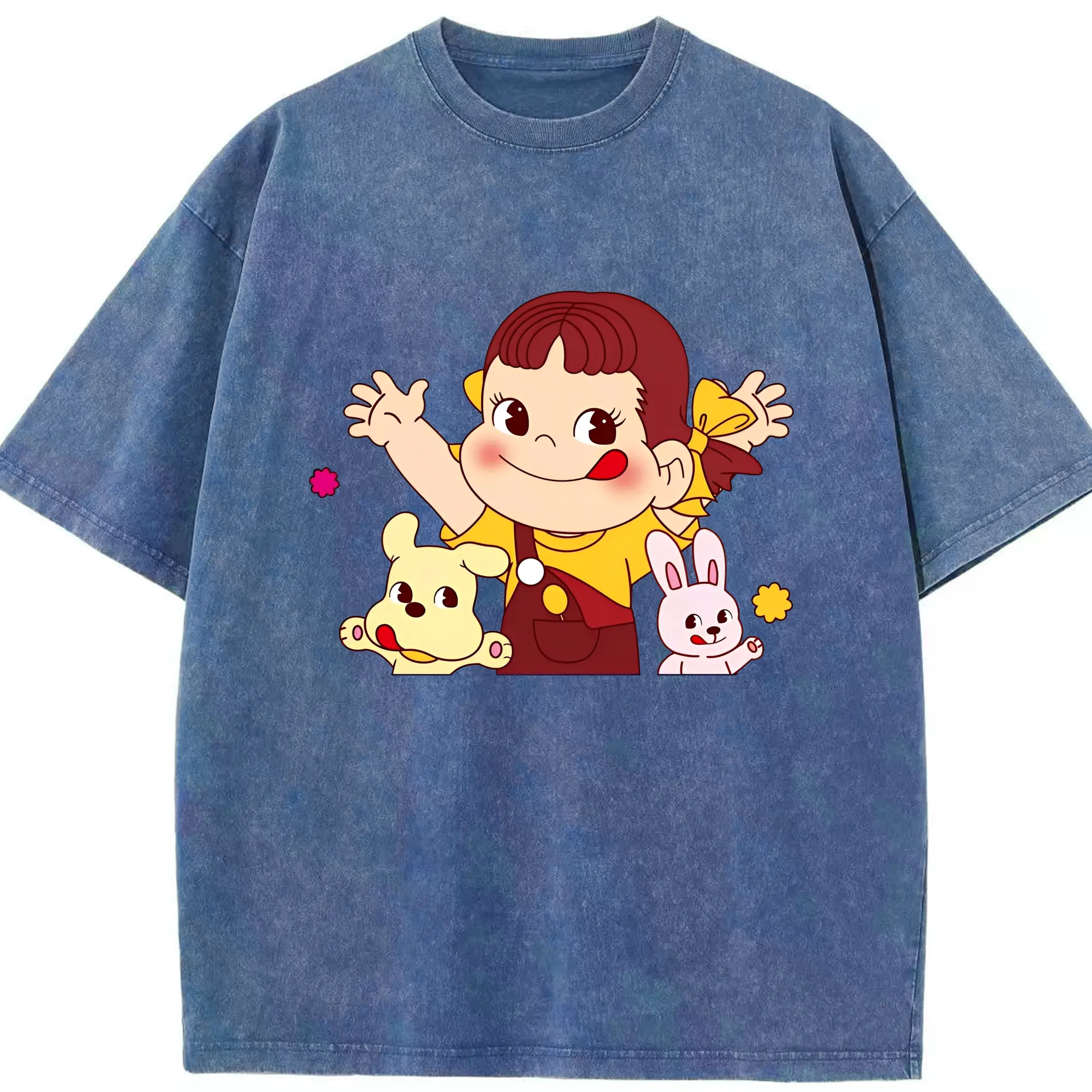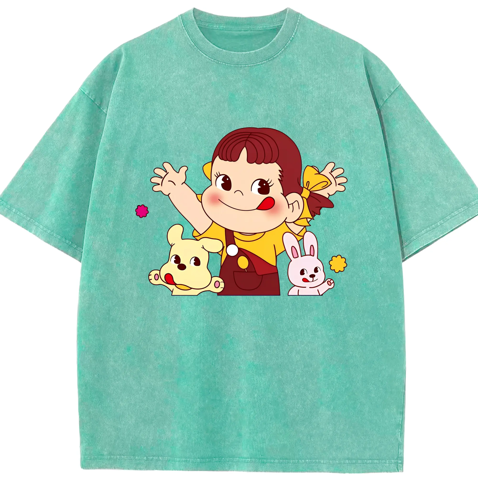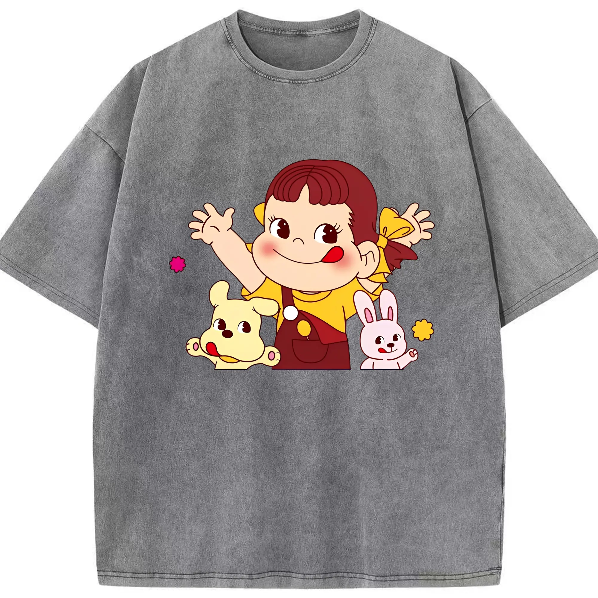 ペコちゃんの仲良しの犬のキャラクター - 綿100% 半袖Tシャツ ・ フロントプリント ・ 快適 通気性 ・ 日常使い 散歩 スポーツ用