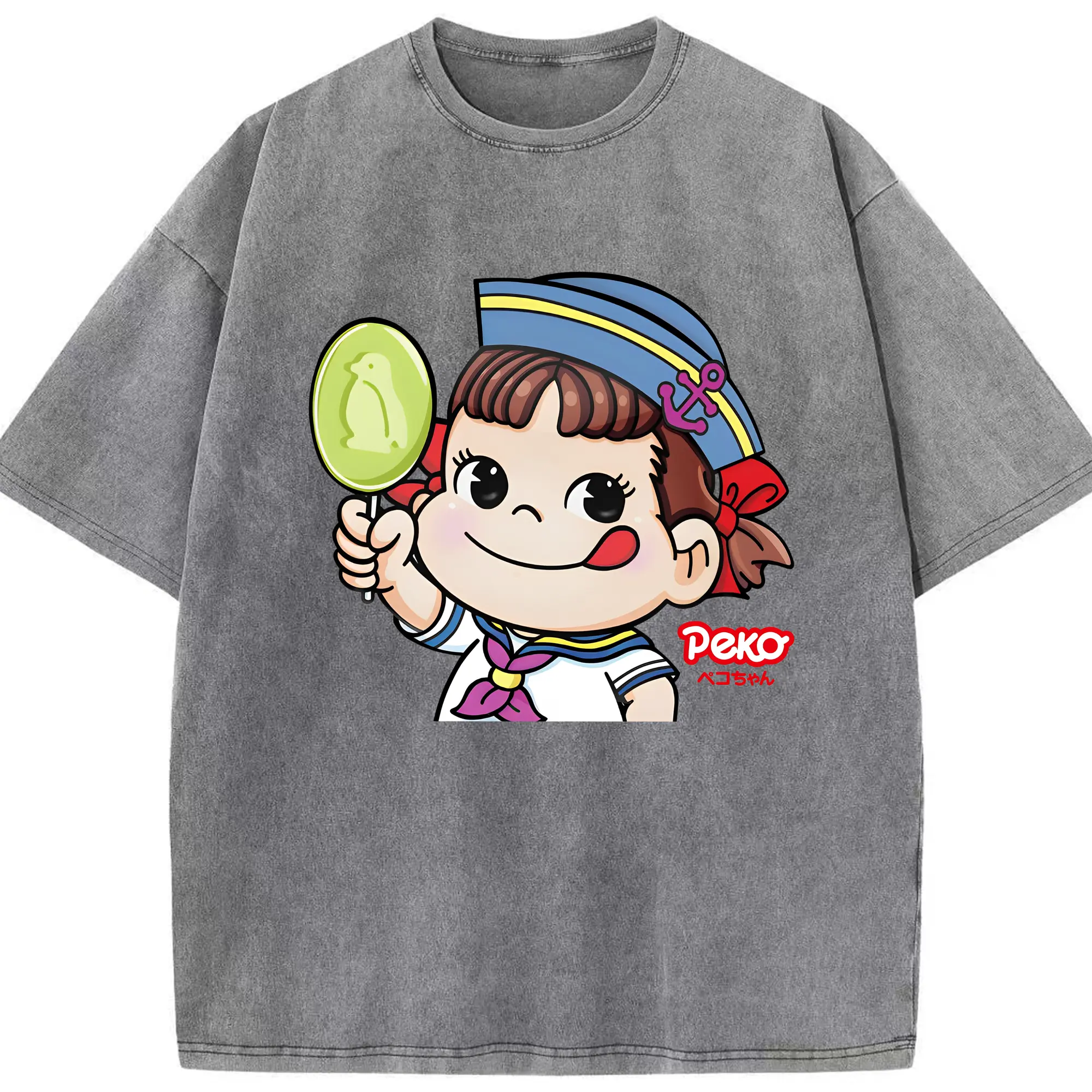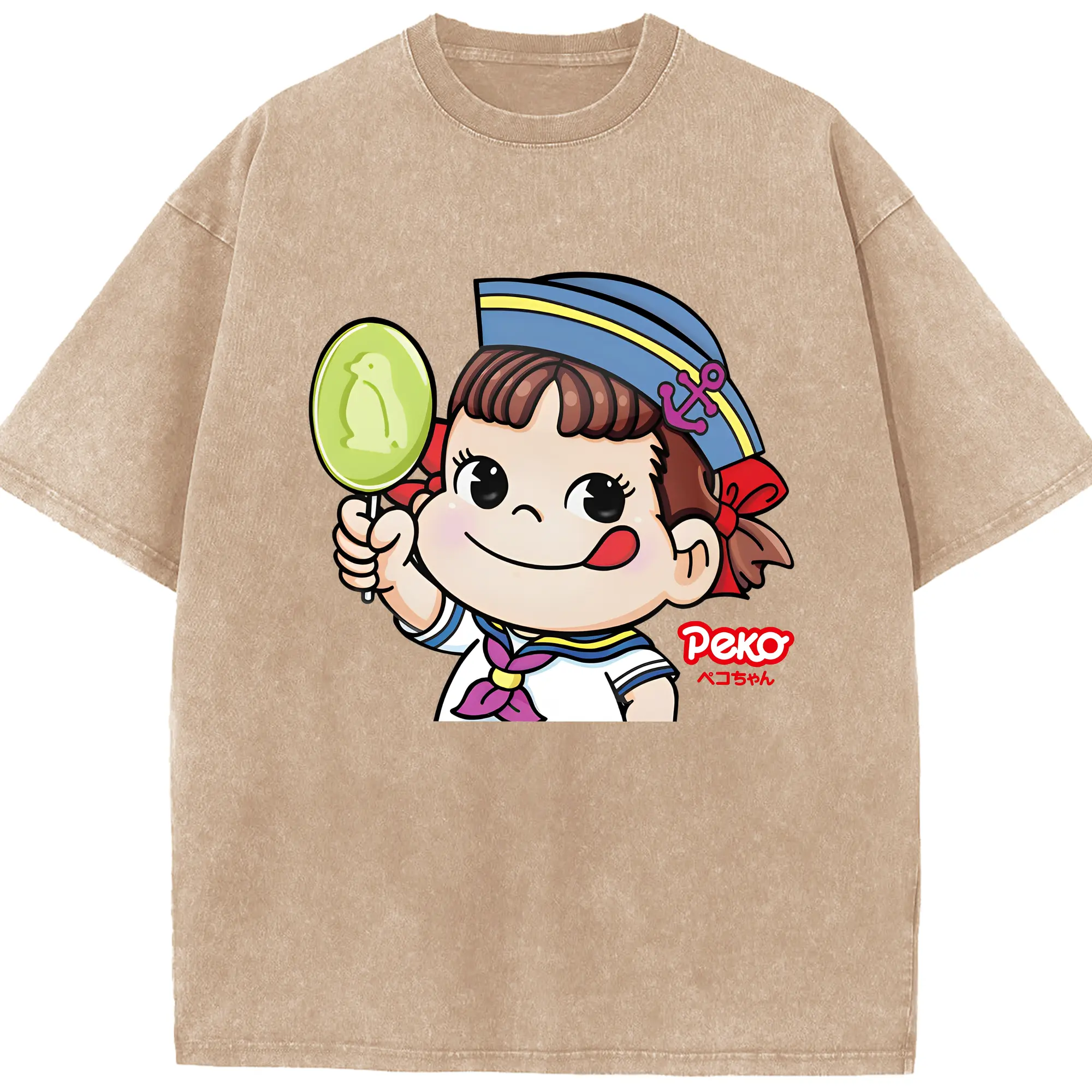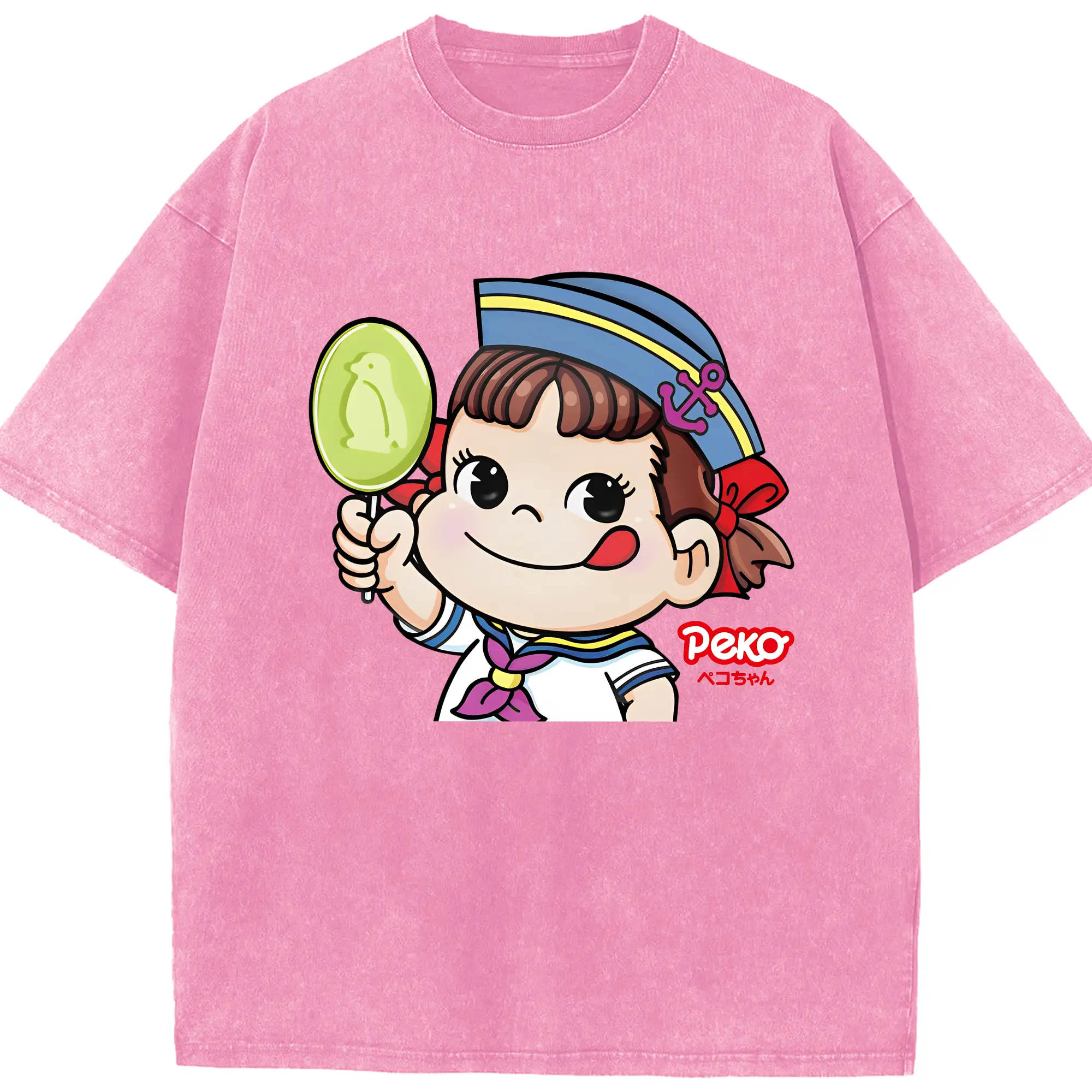 ペコちゃん「ハッピー」大人気爆発 - 綿100% 半袖Tシャツ ・ フロントプリント ・ 快適 通気性 ・ 日常使い 散歩 スポーツ用