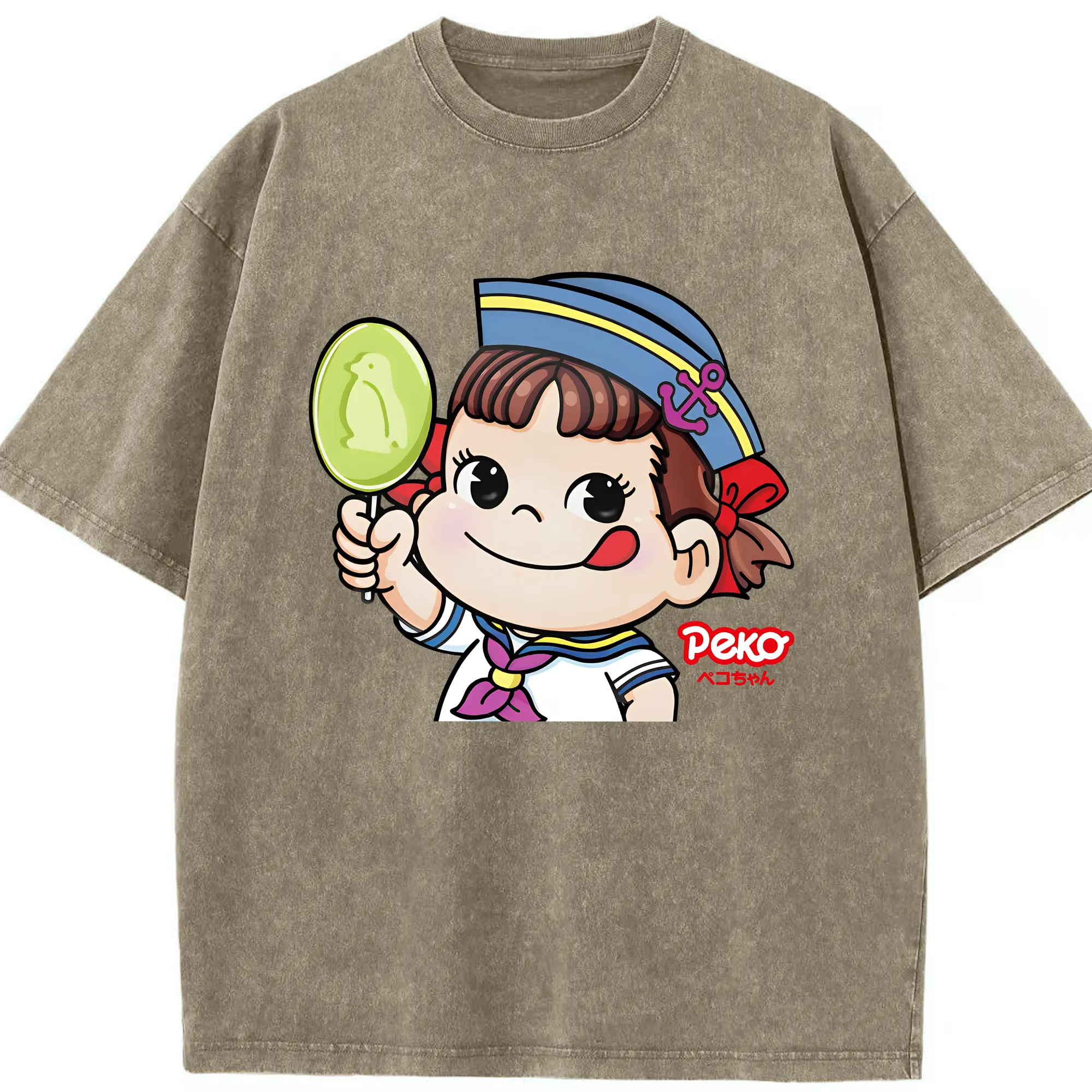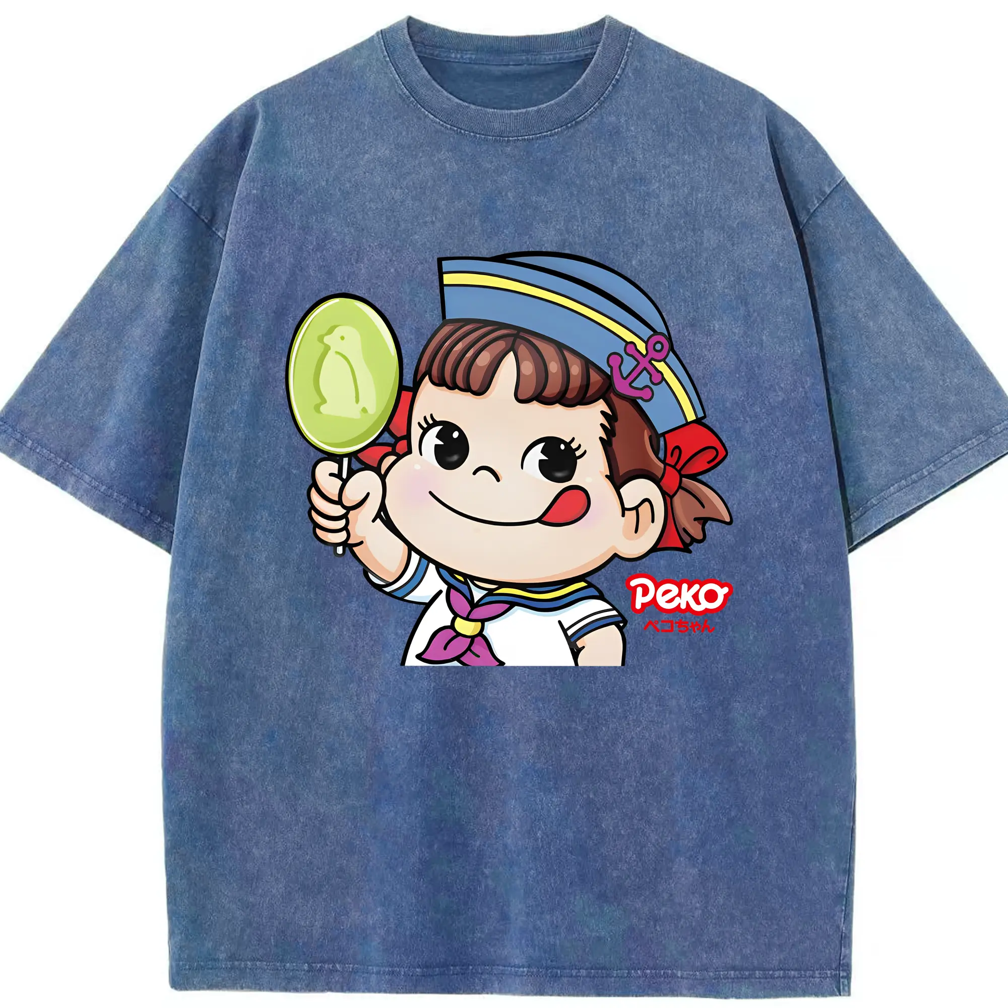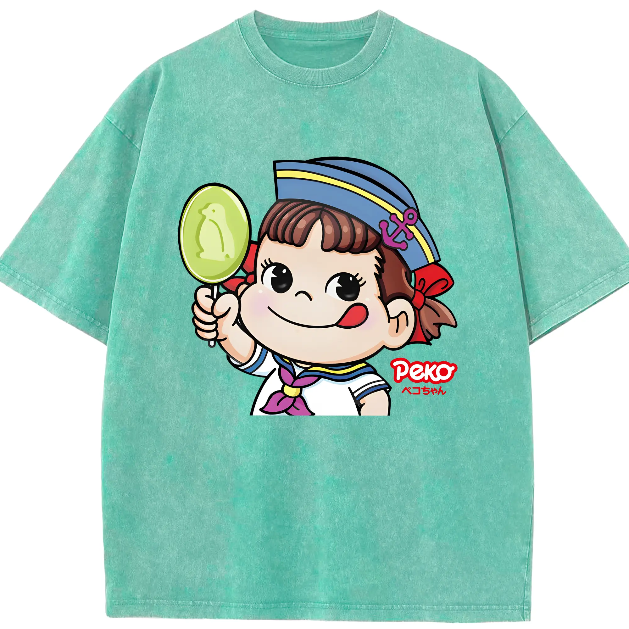 ペコちゃん「ハッピー」大人気爆発 - 綿100% 半袖Tシャツ ・ フロントプリント ・ 快適 通気性 ・ 日常使い 散歩 スポーツ用