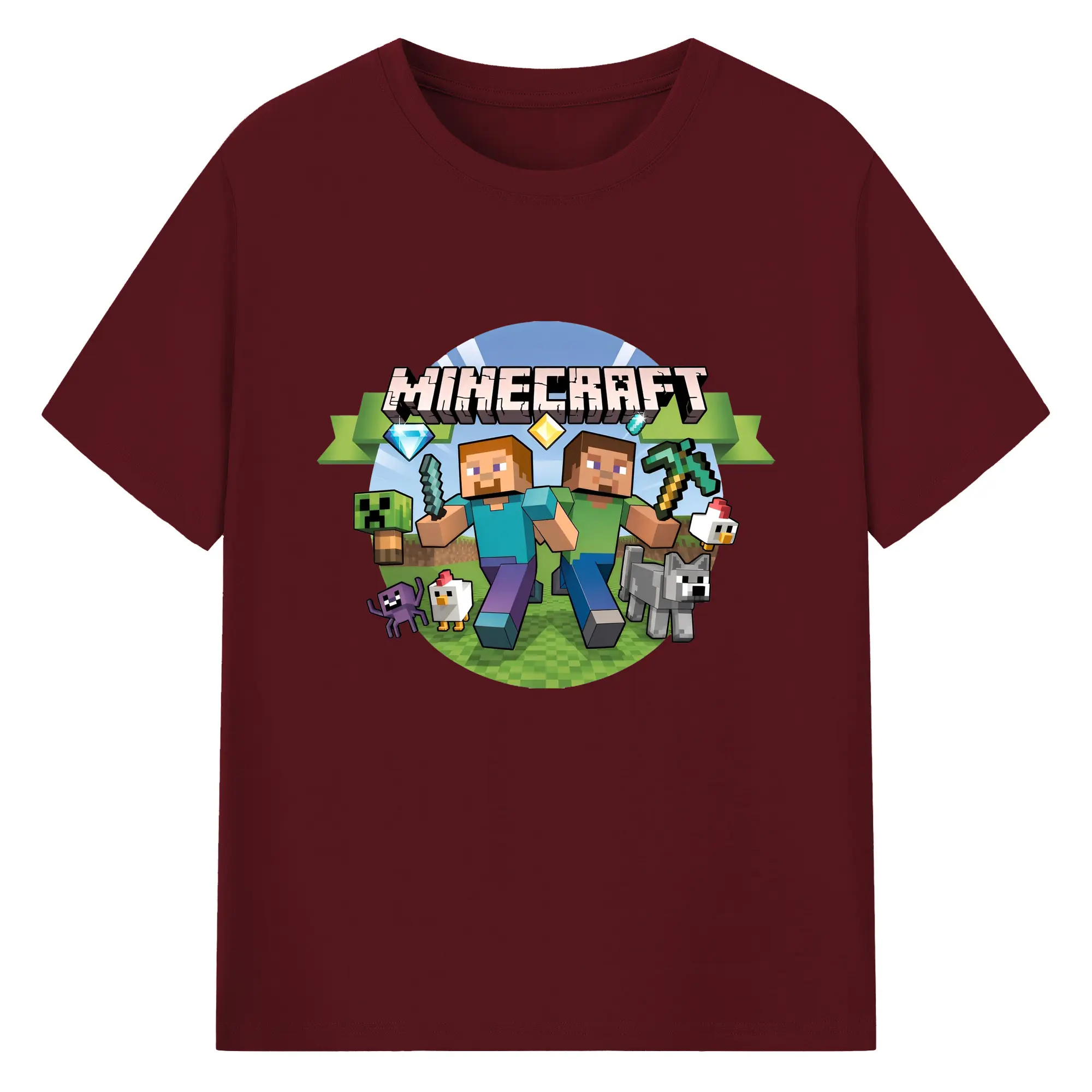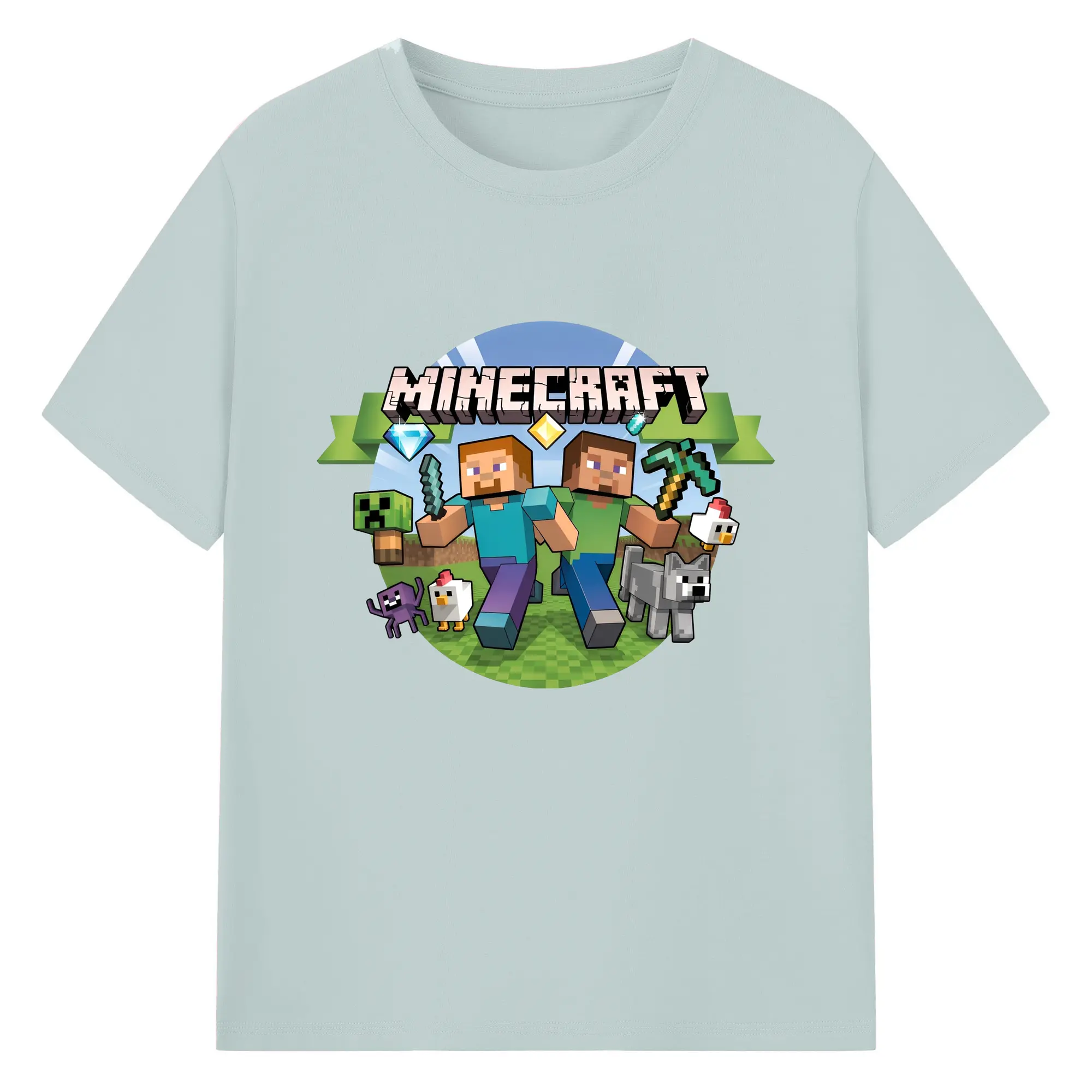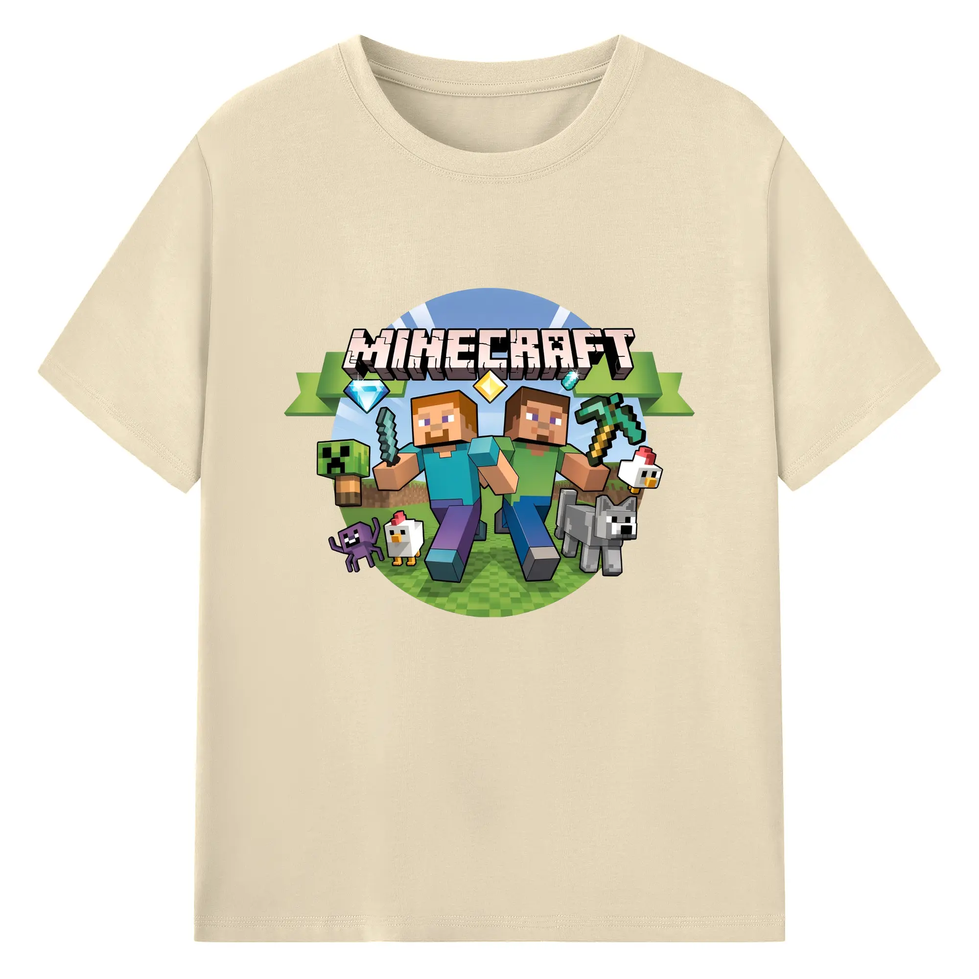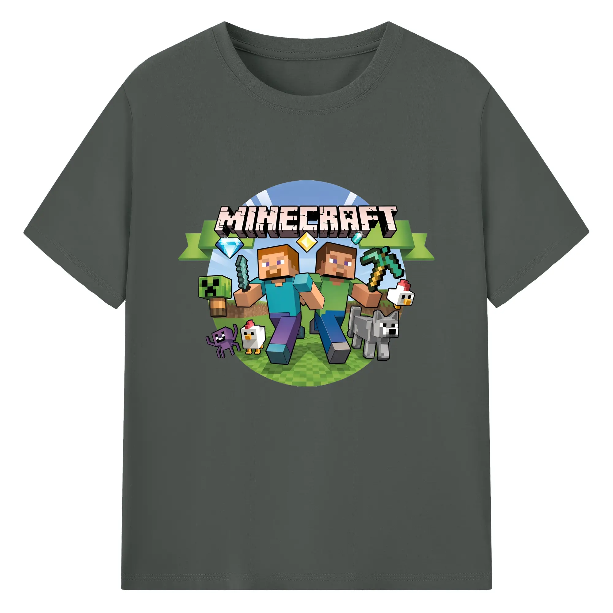 マインクラフト アドベンチャー モチーフ - 綿100% ヴィンテージ風 半袖Tシャツ ・ フロントプリント ・ 柔らか肌触り ・ 通気性 快適 ・ スポーツ カジュアル 外出用