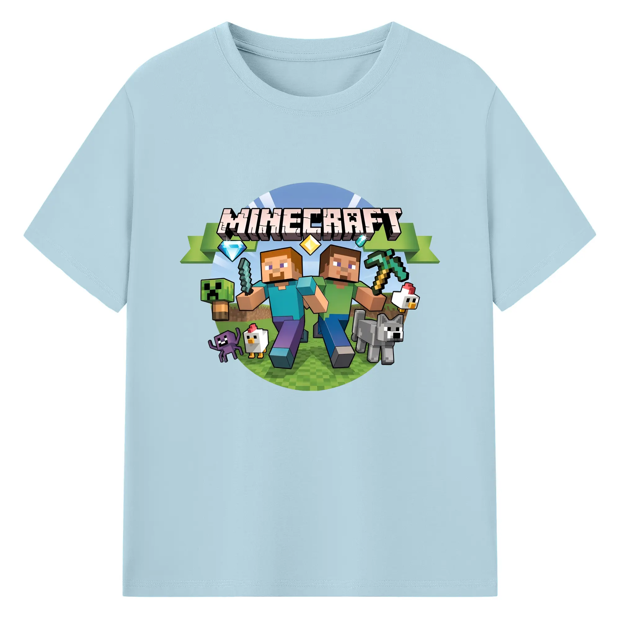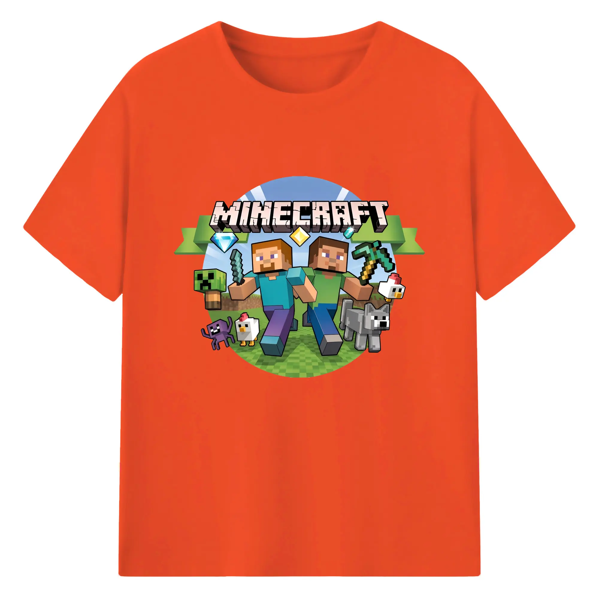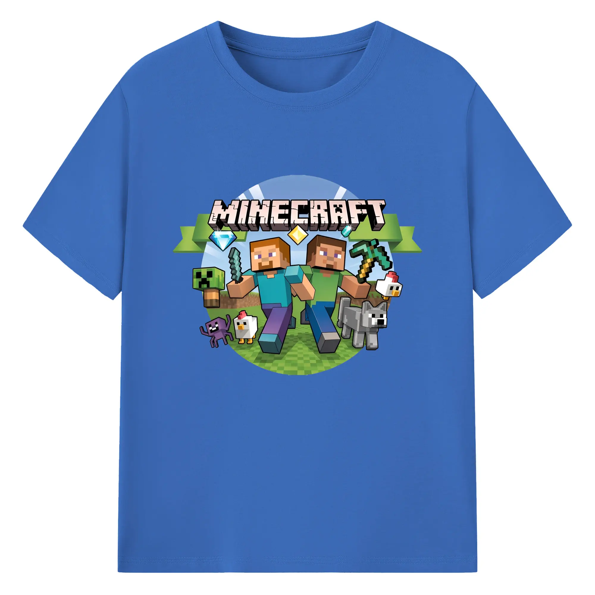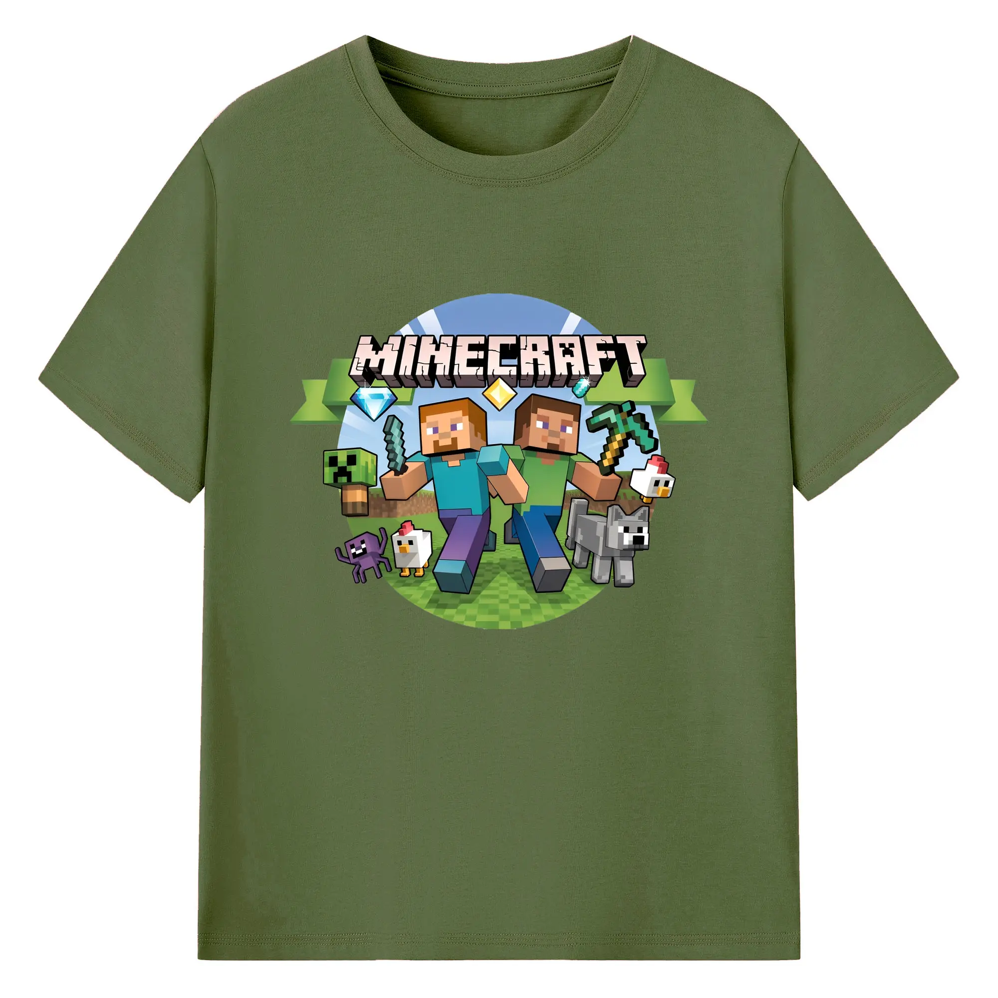 マインクラフト アドベンチャー モチーフ - 綿100% ヴィンテージ風 半袖Tシャツ ・ フロントプリント ・ 柔らか肌触り ・ 通気性 快適 ・ スポーツ カジュアル 外出用