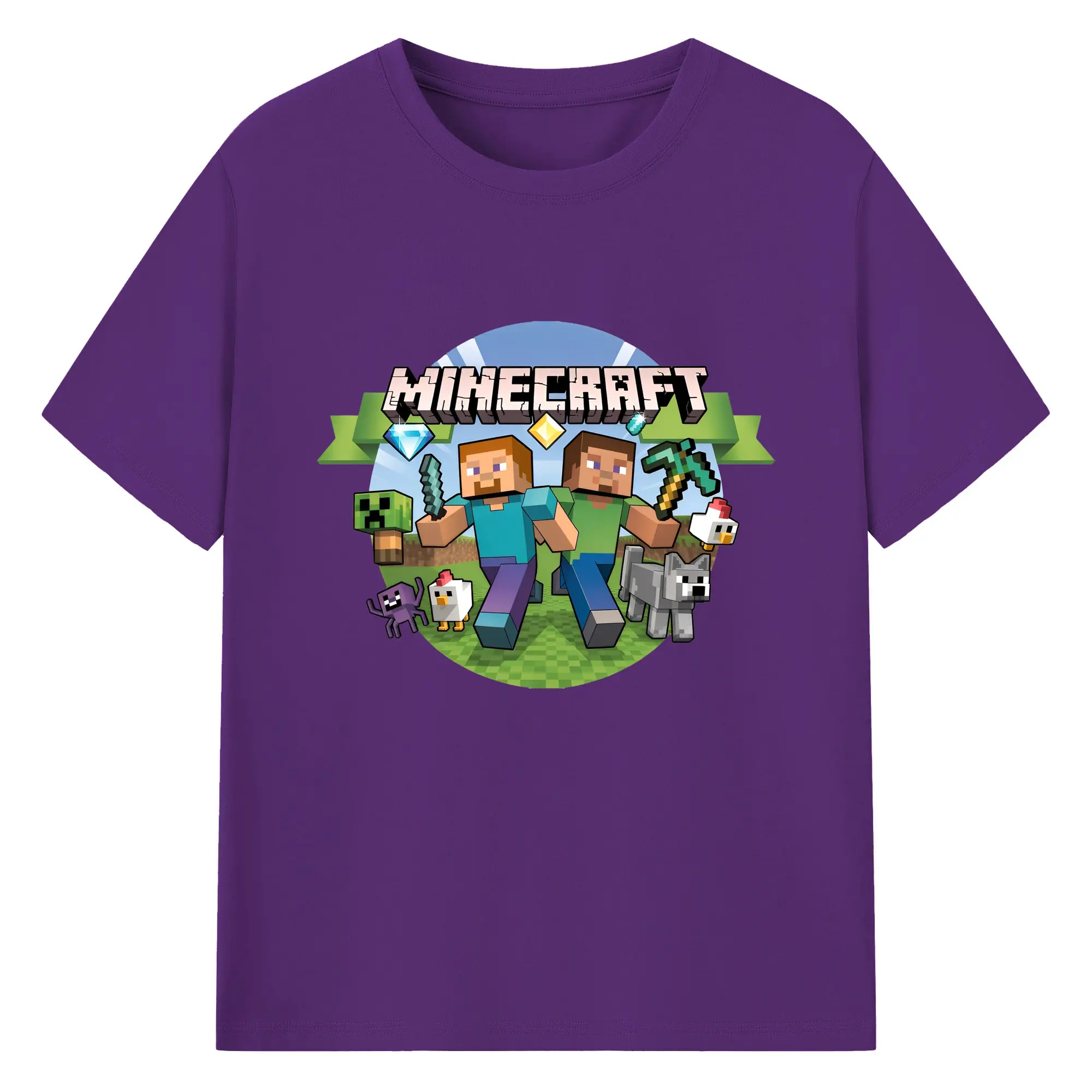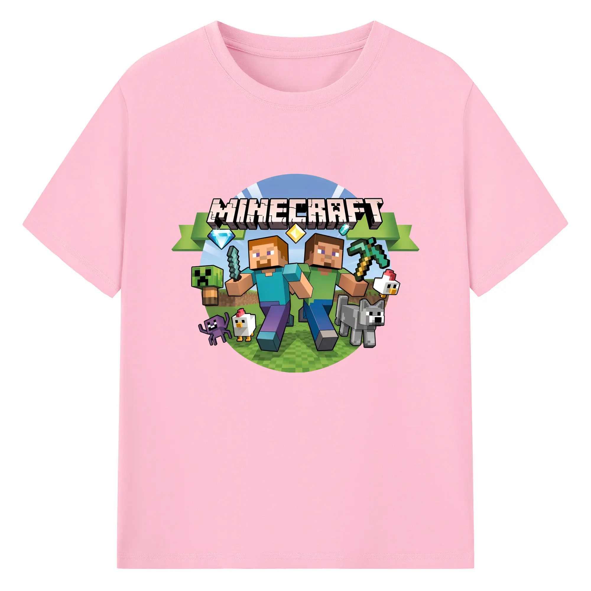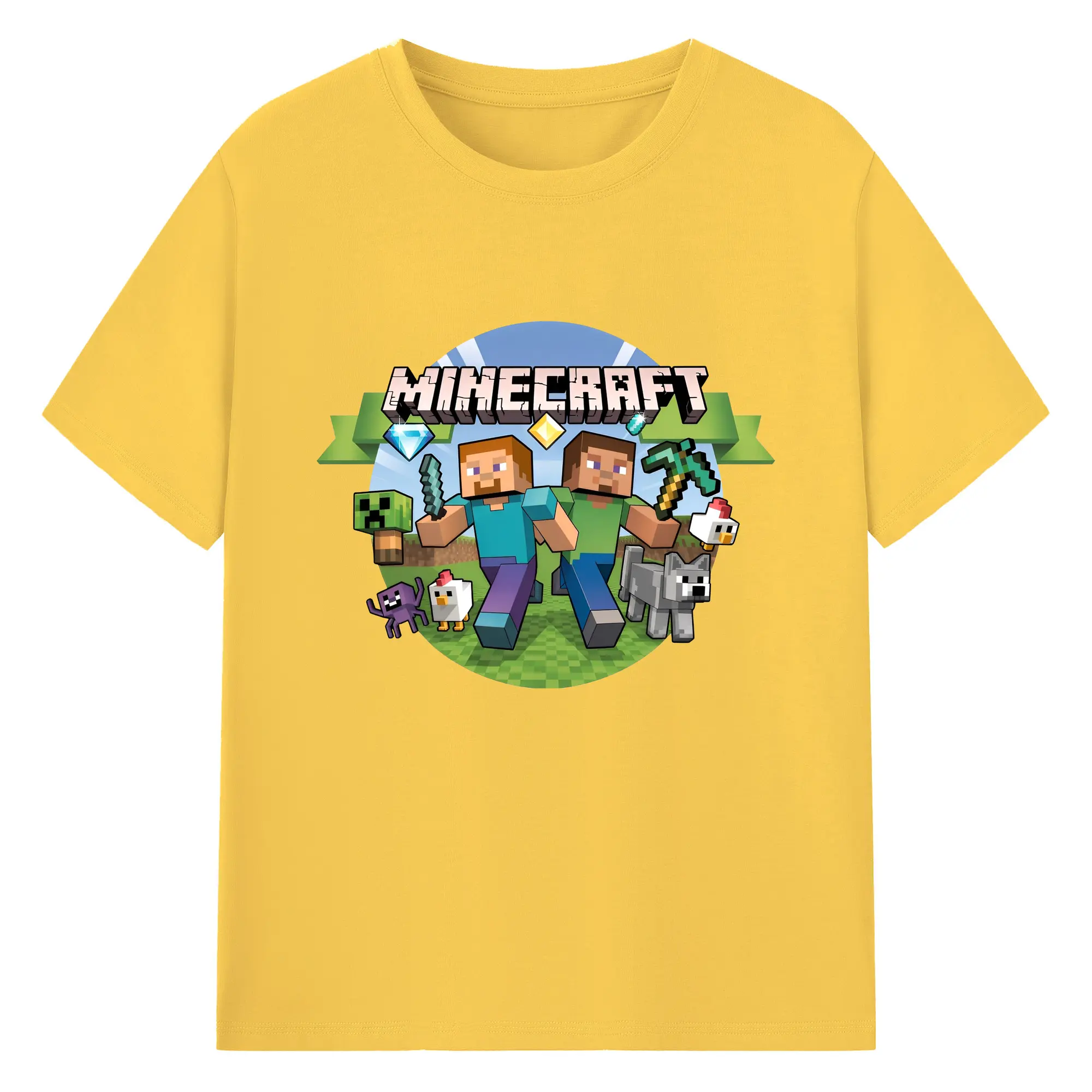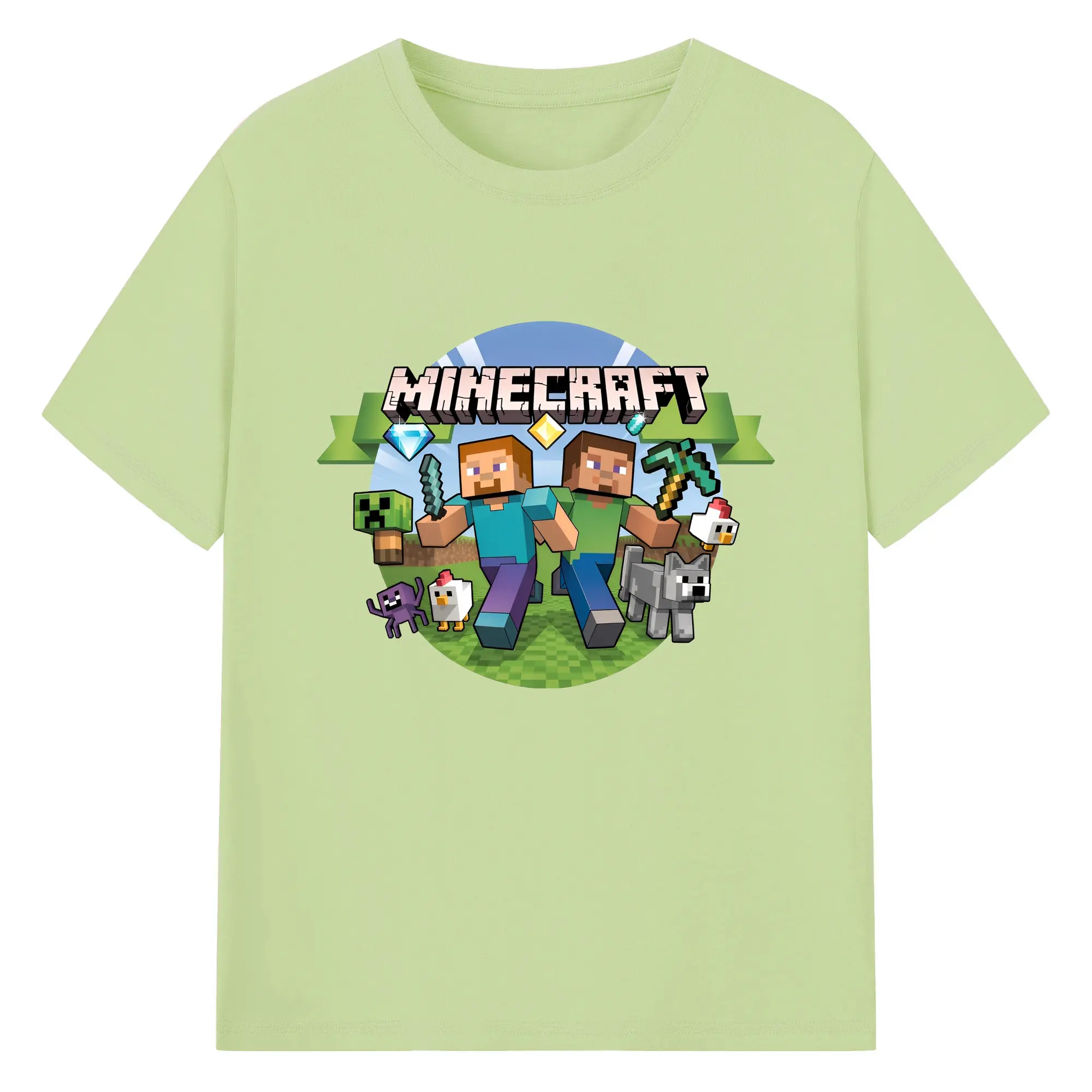 マインクラフト アドベンチャー モチーフ - 綿100% ヴィンテージ風 半袖Tシャツ ・ フロントプリント ・ 柔らか肌触り ・ 通気性 快適 ・ スポーツ カジュアル 外出用