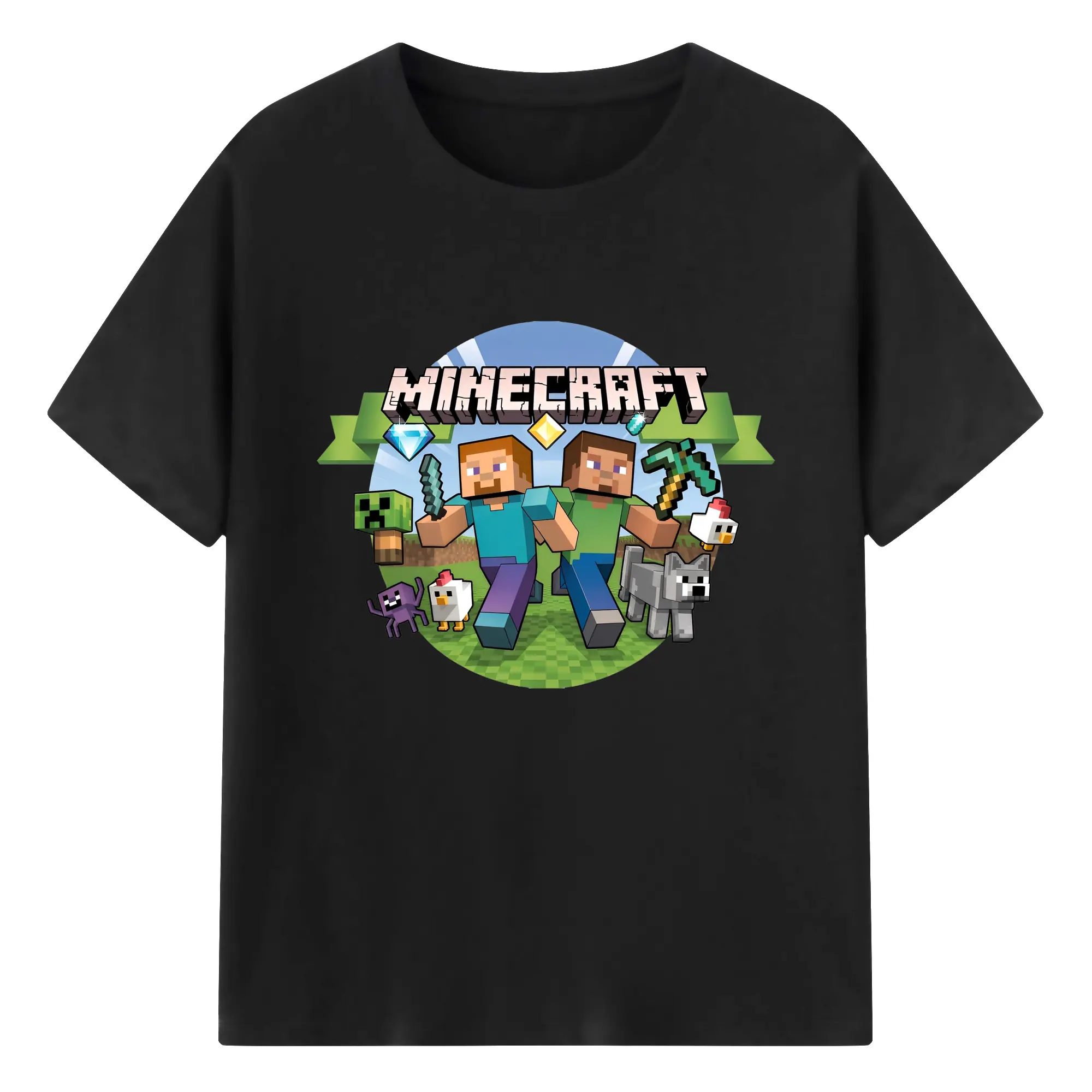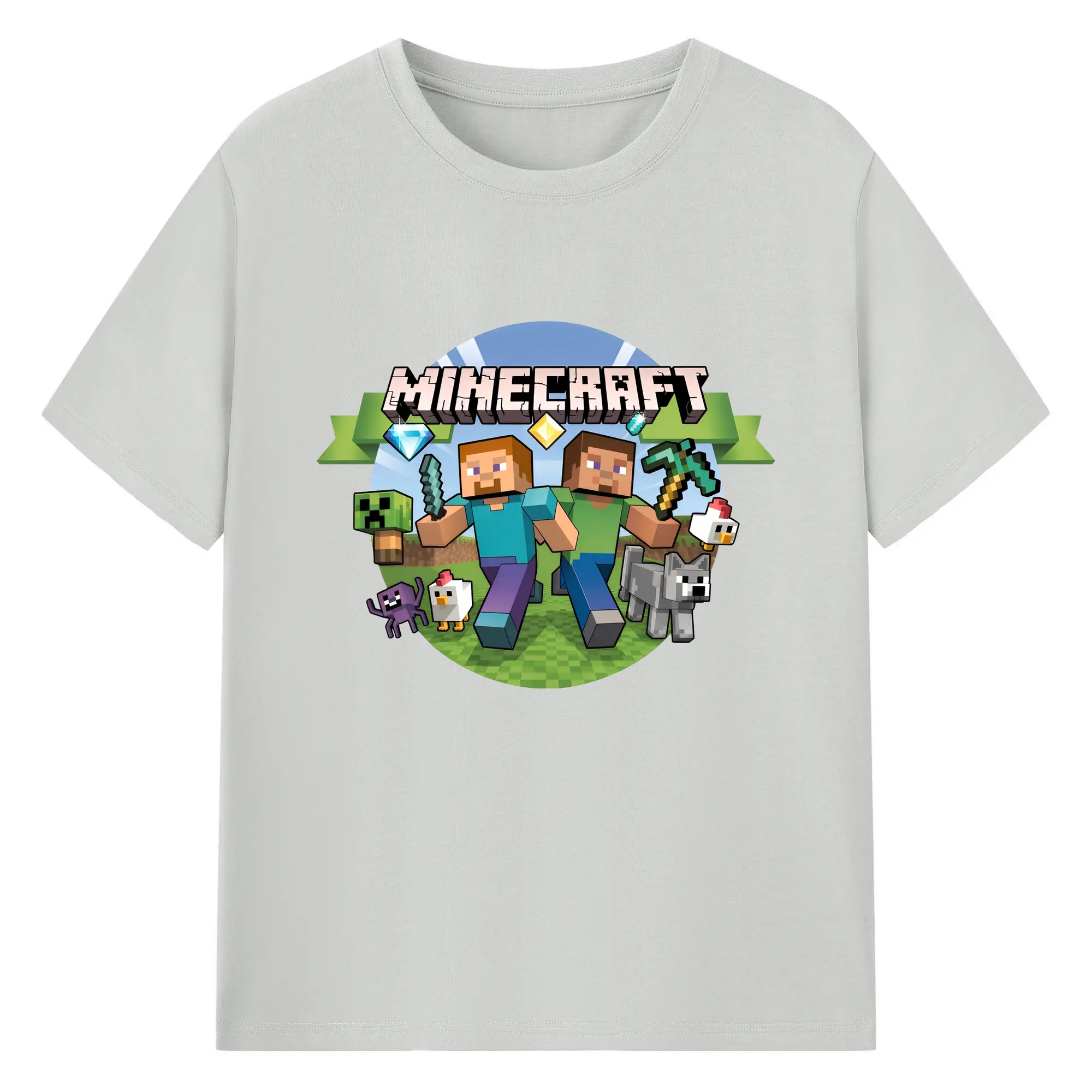 モノトーン マインクラフト クール - 綿100% 半袖Tシャツ ・ フロントプリント ・ 快適 通気性 ・ 日常使い 散歩 スポーツ用