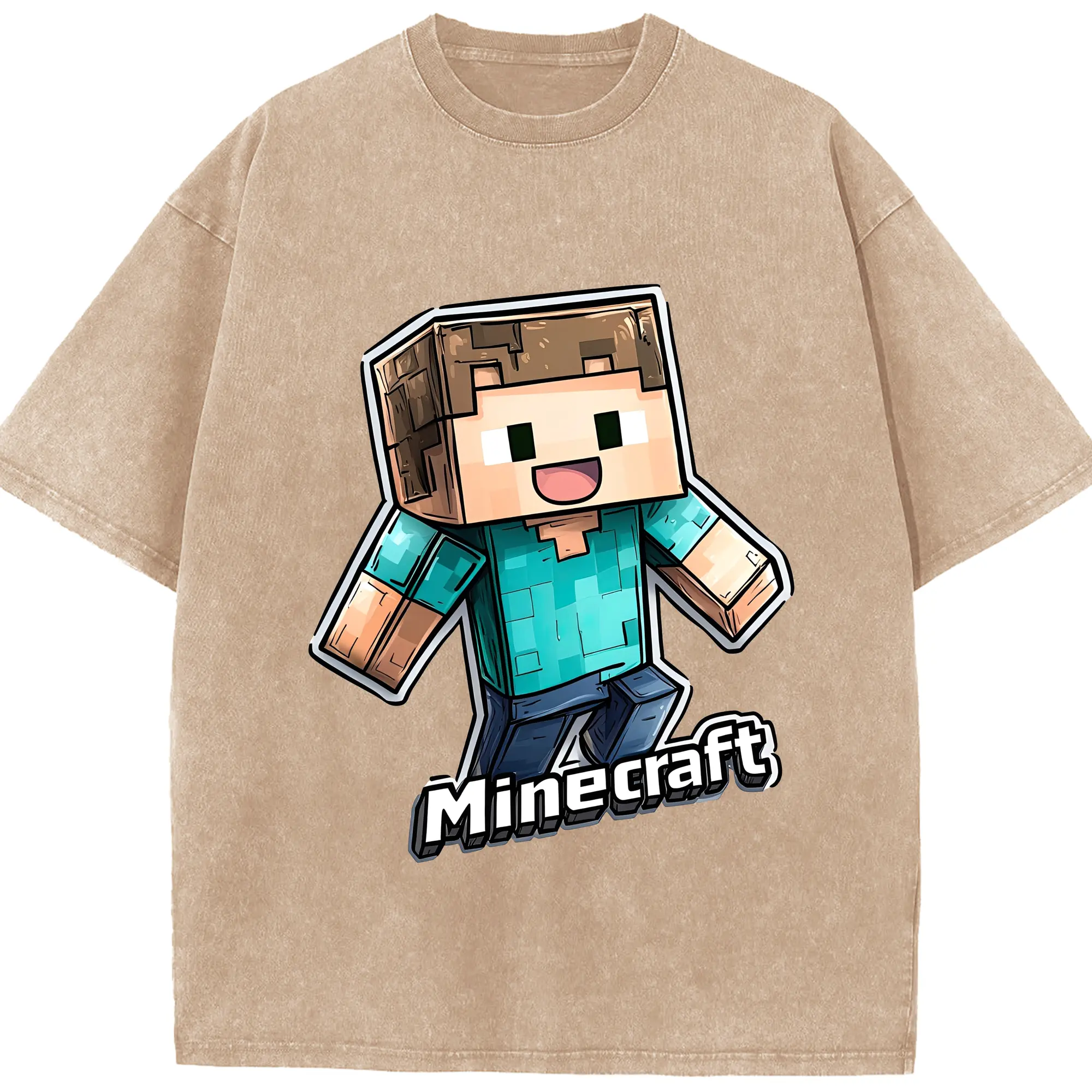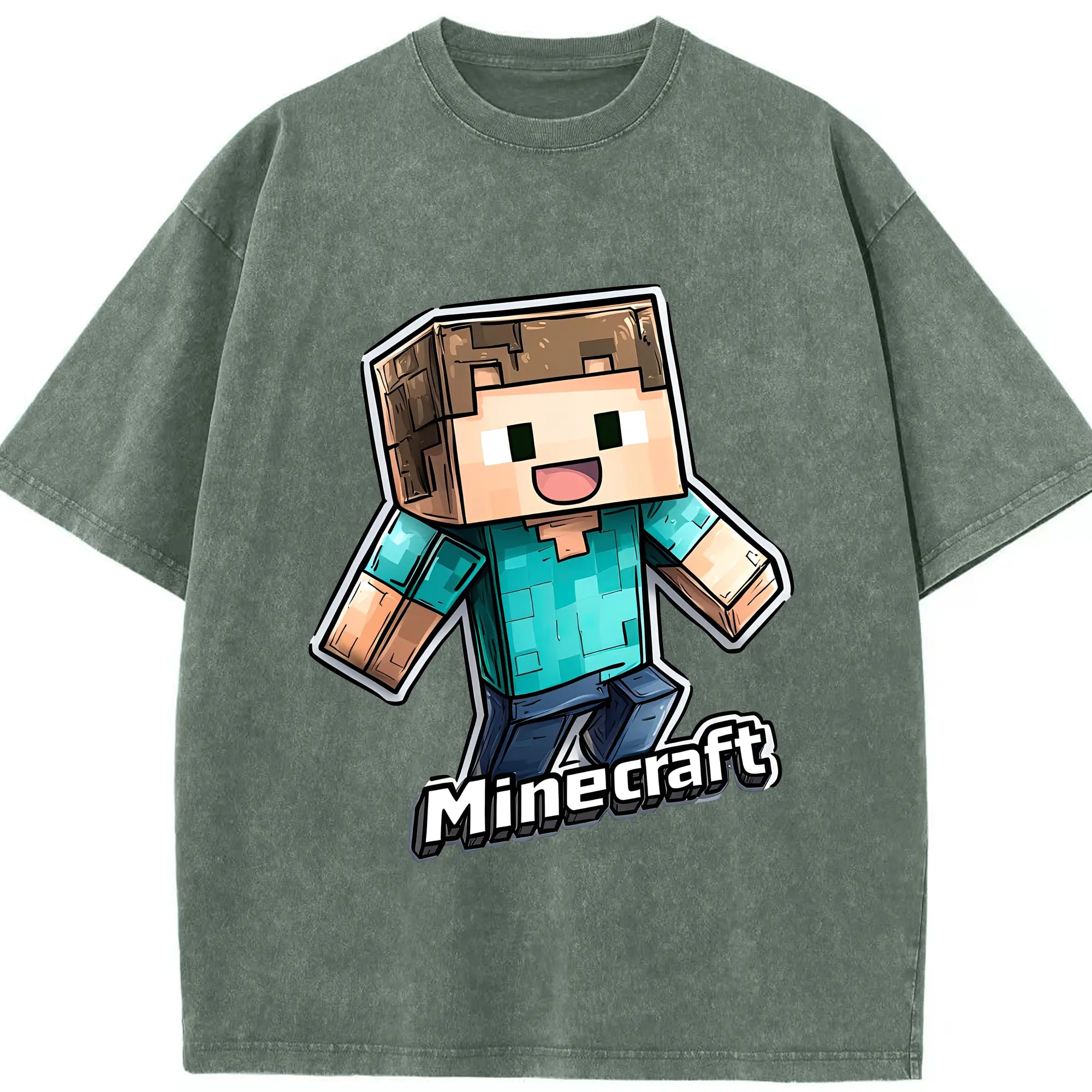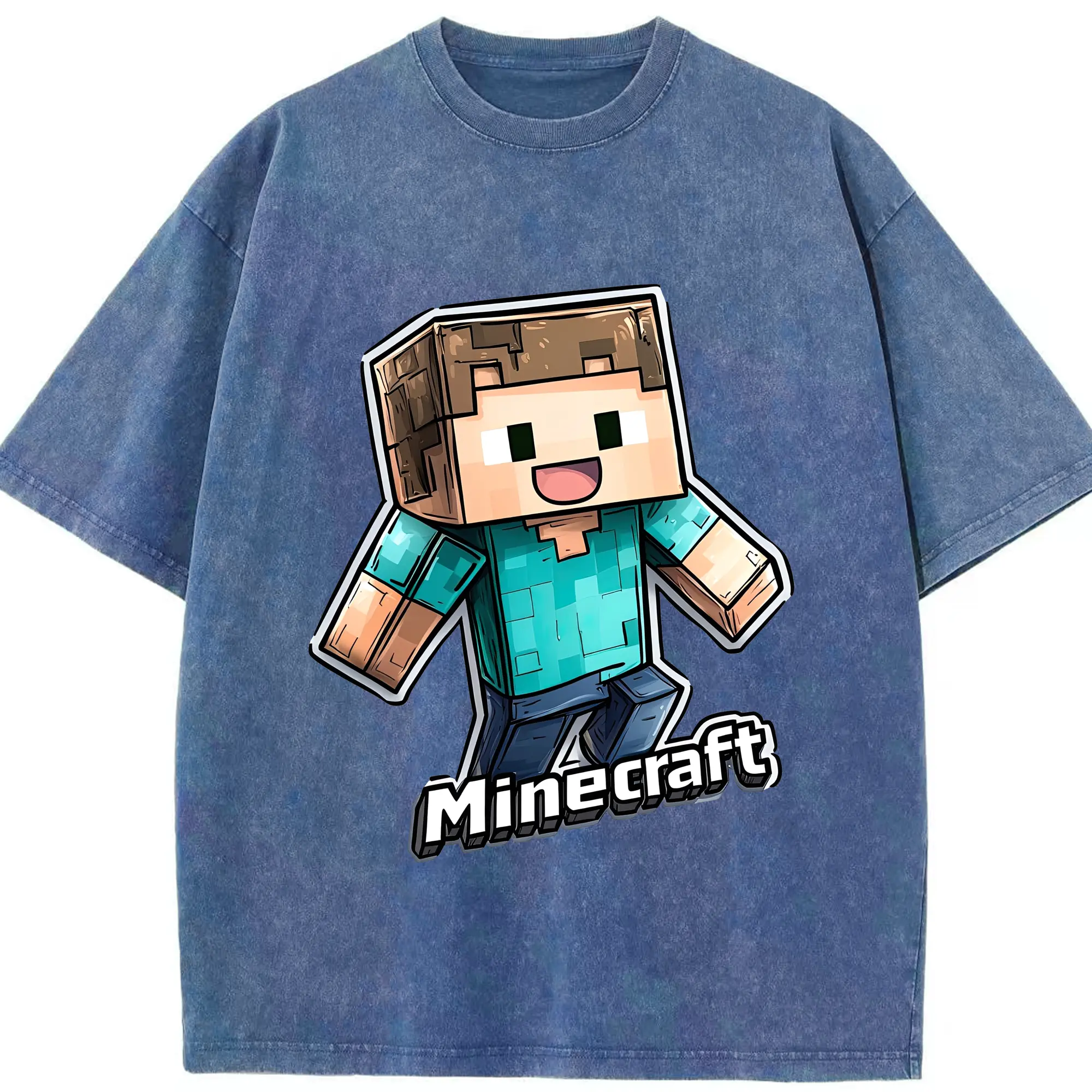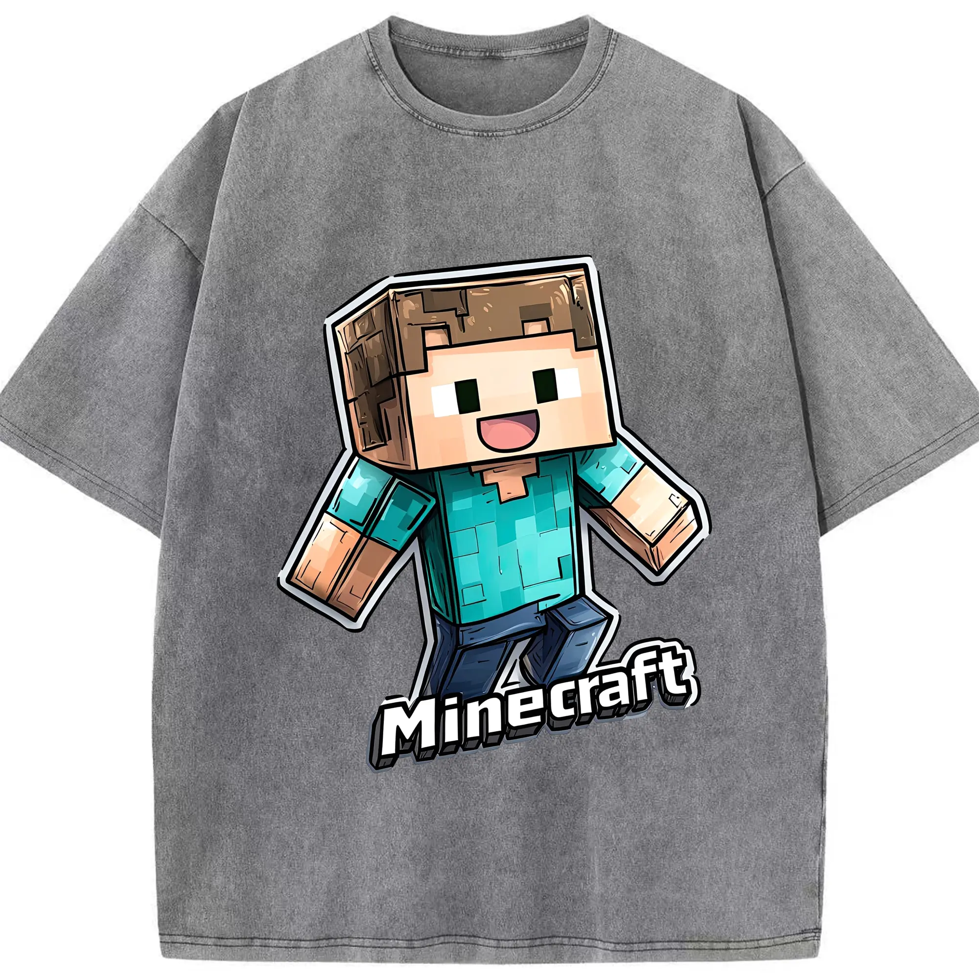 2025年最新 マインクラフト デザイン - 綿100% ヴィンテージ風 半袖Tシャツ ・ フロントプリント ・ 柔らか肌触り ・ 通気性 快適 ・ スポーツ カジュアル 外出用