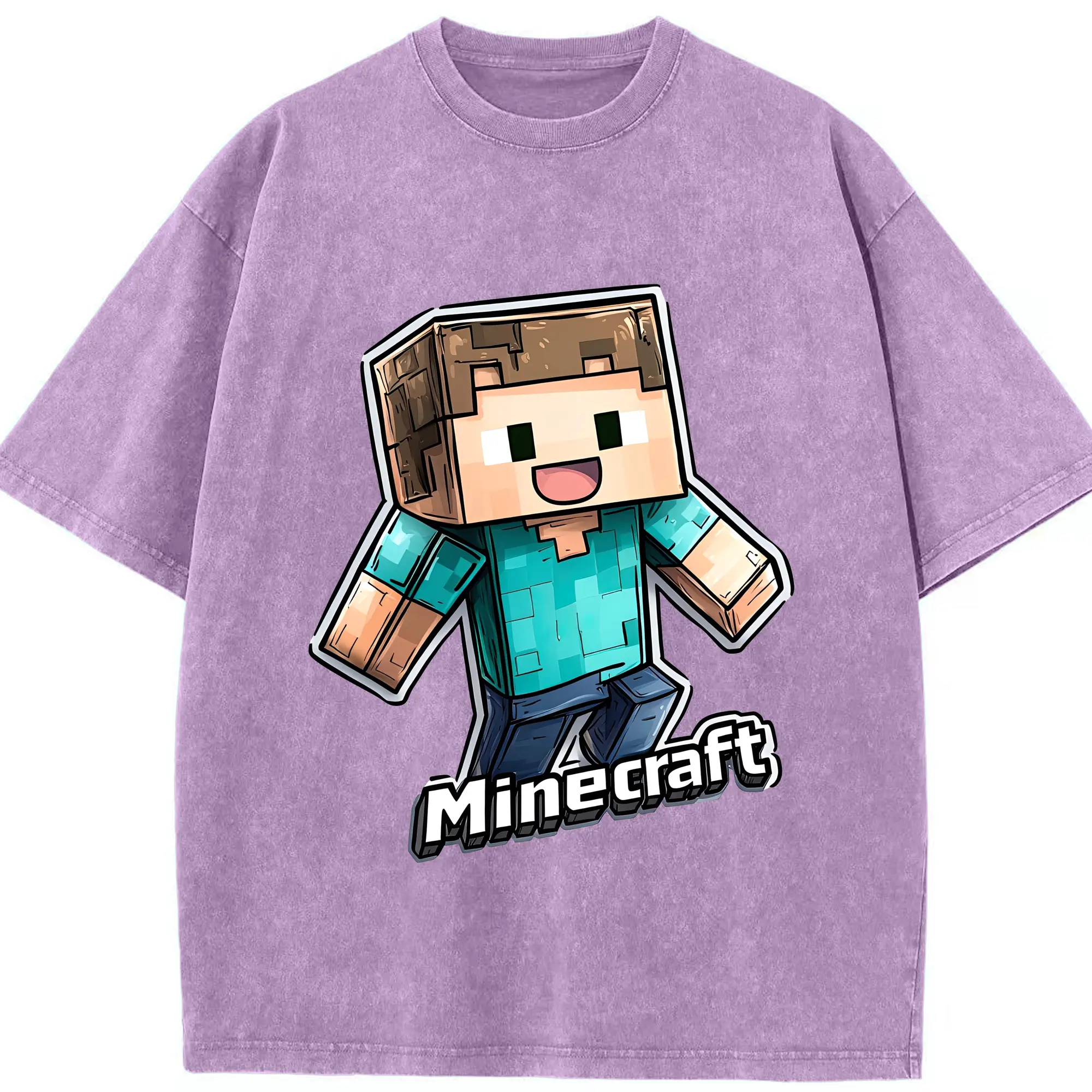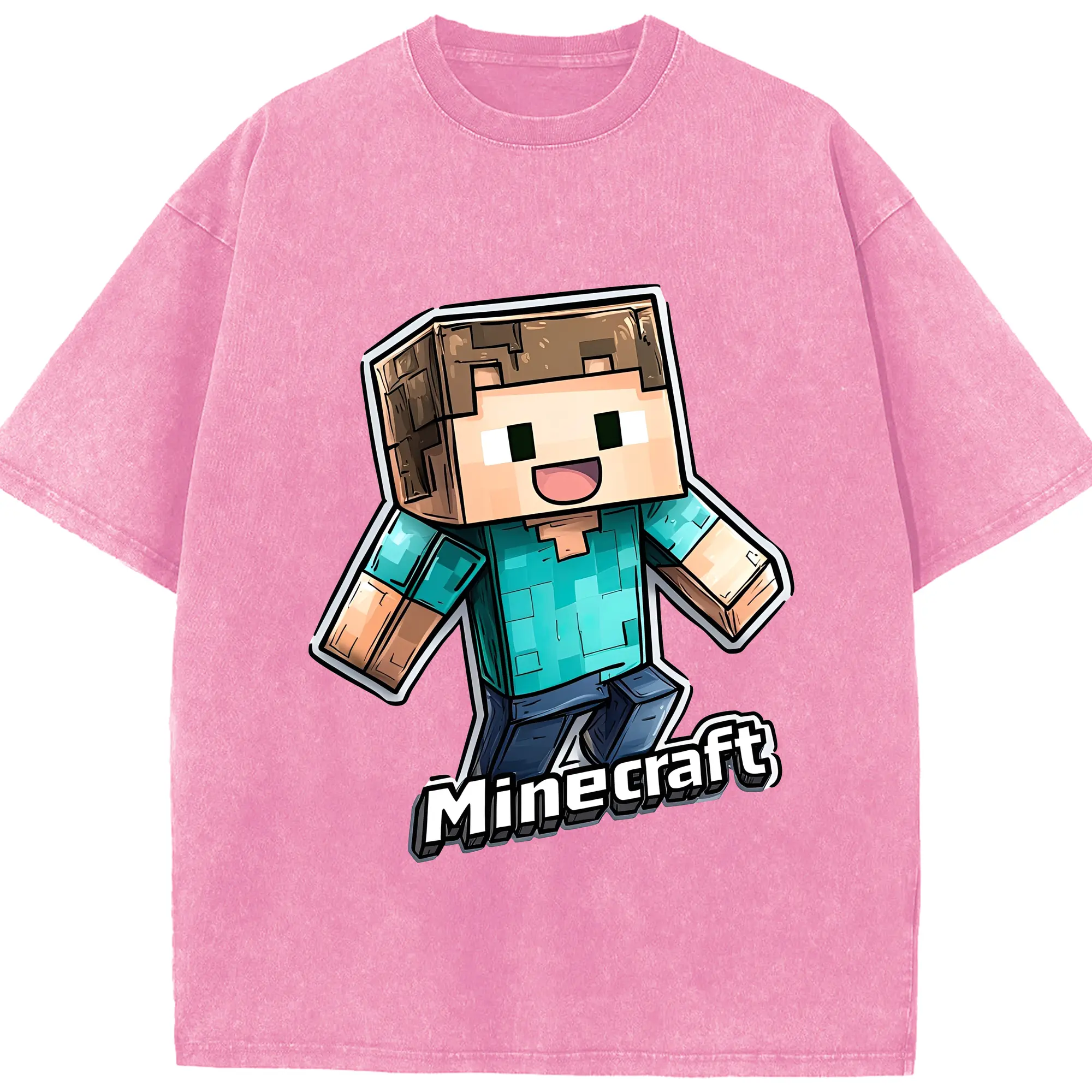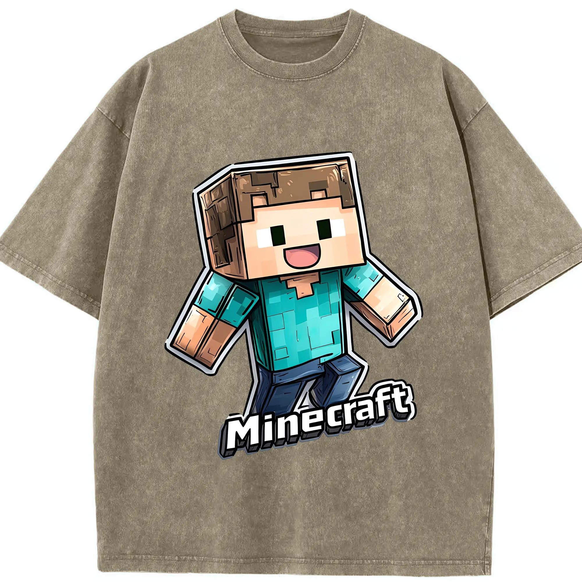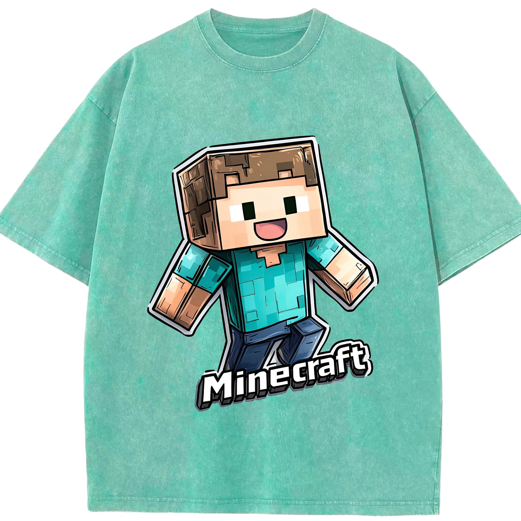 2025年最新 マインクラフト デザイン - 綿100% ヴィンテージ風 半袖Tシャツ ・ フロントプリント ・ 柔らか肌触り ・ 通気性 快適 ・ スポーツ カジュアル 外出用