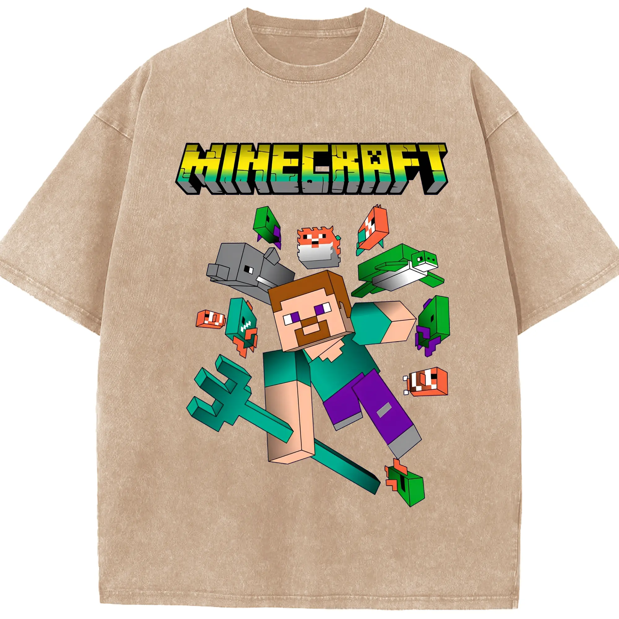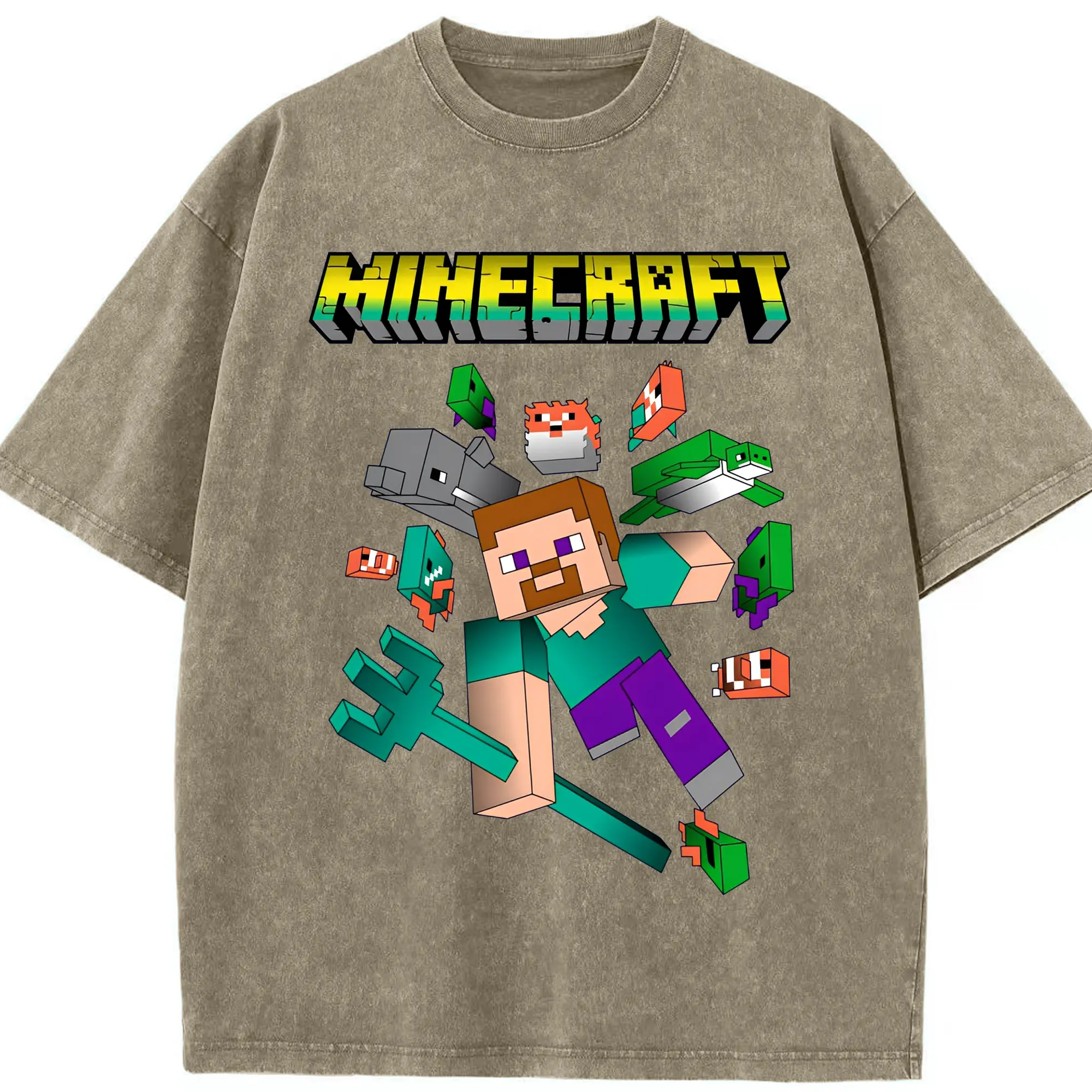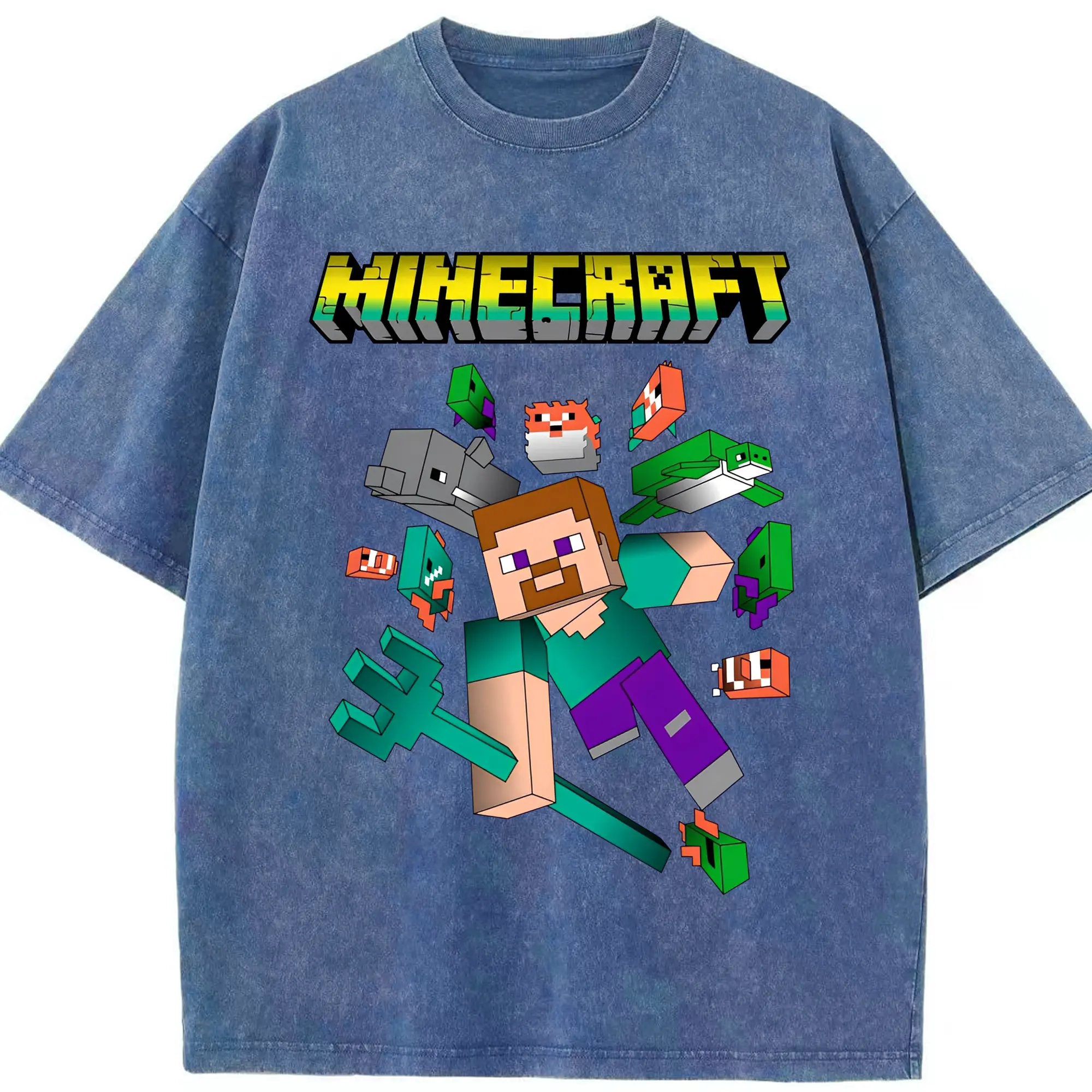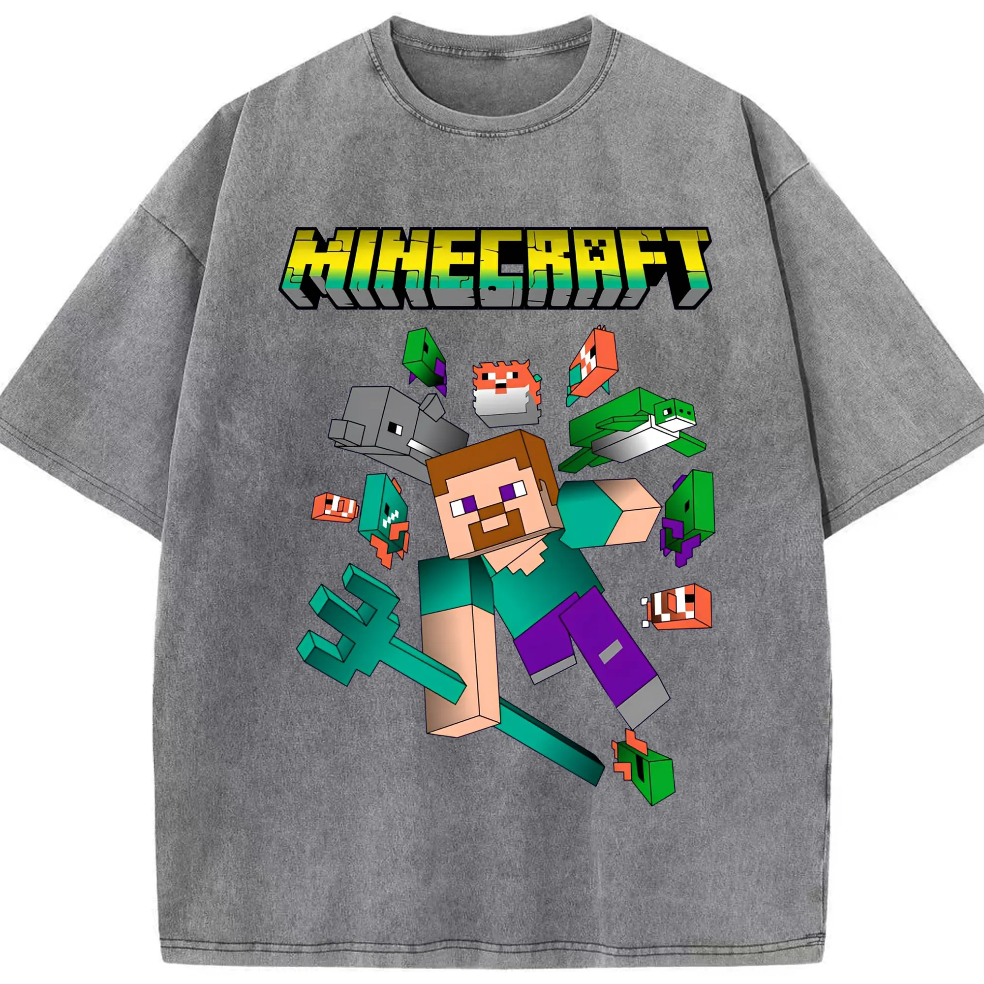 【人気急上昇】マインクラフト グッズ風 - 綿100% ヴィンテージ風 半袖Tシャツ ・ フロントプリント ・ 柔らか肌触り ・ 通気性 快適 ・ スポーツ カジュアル 外出用