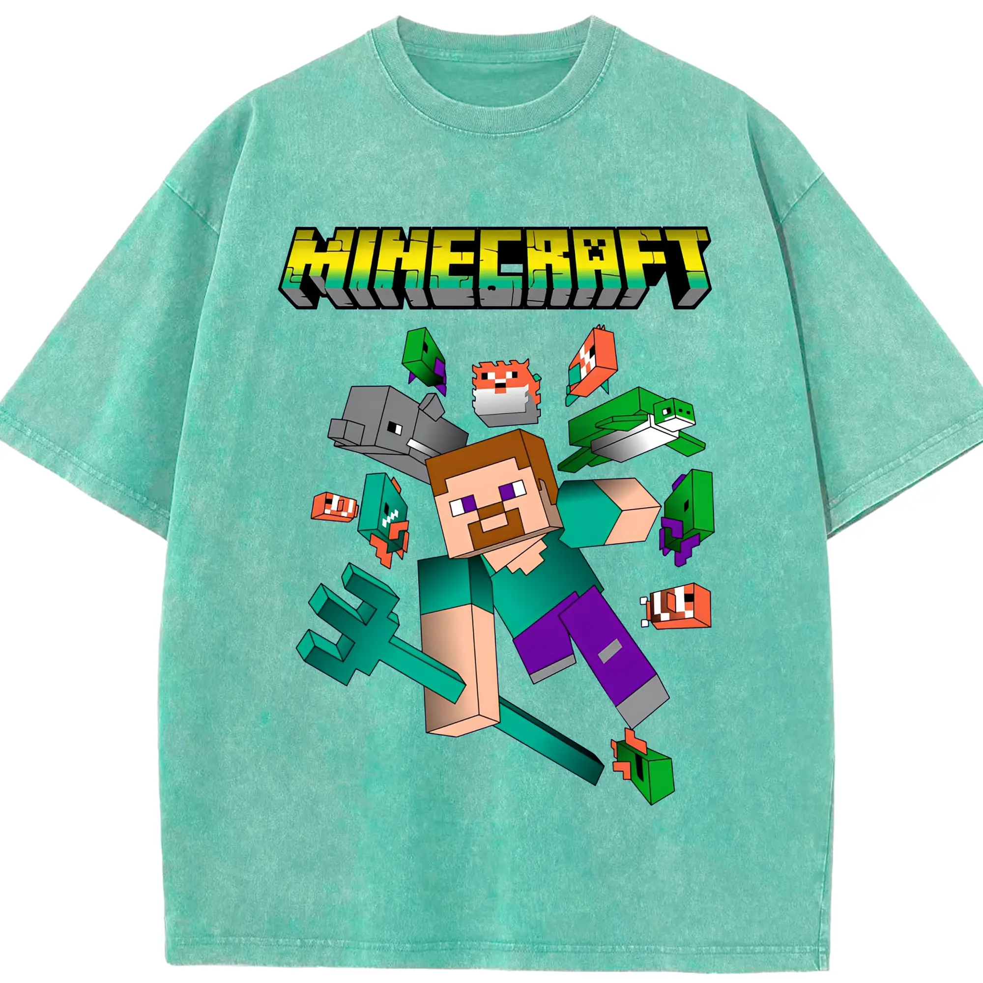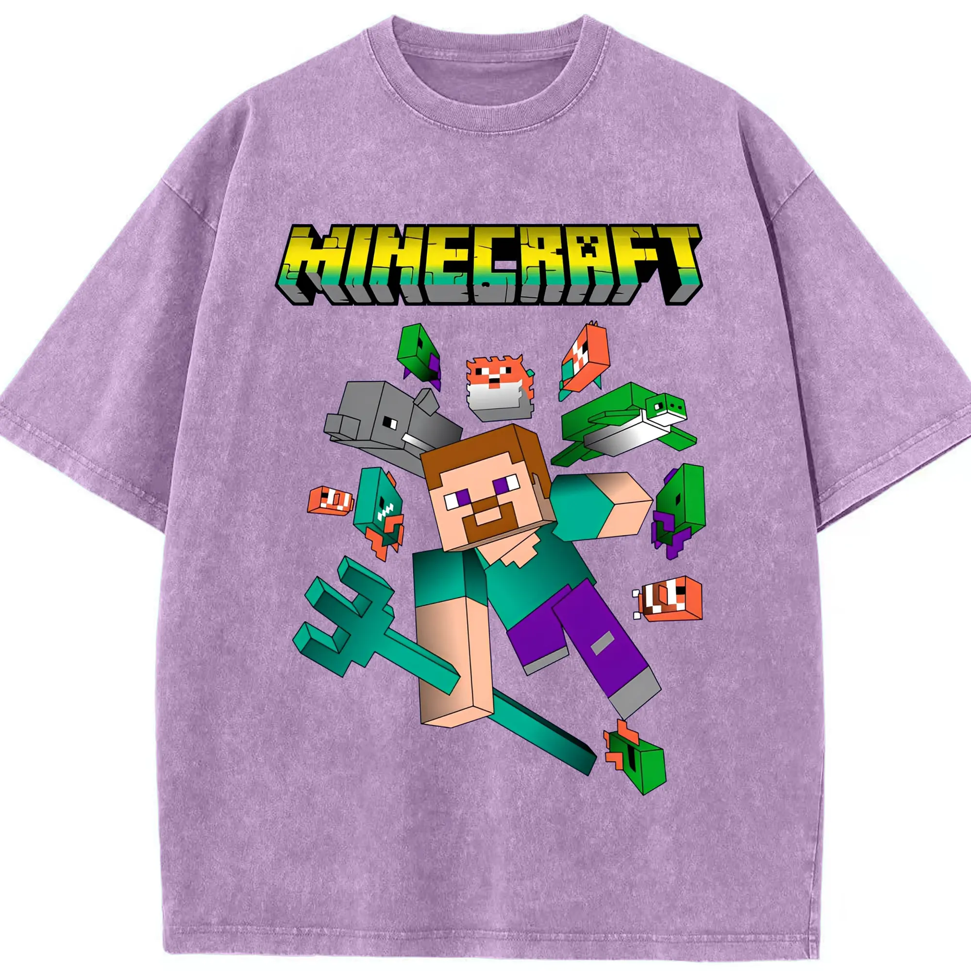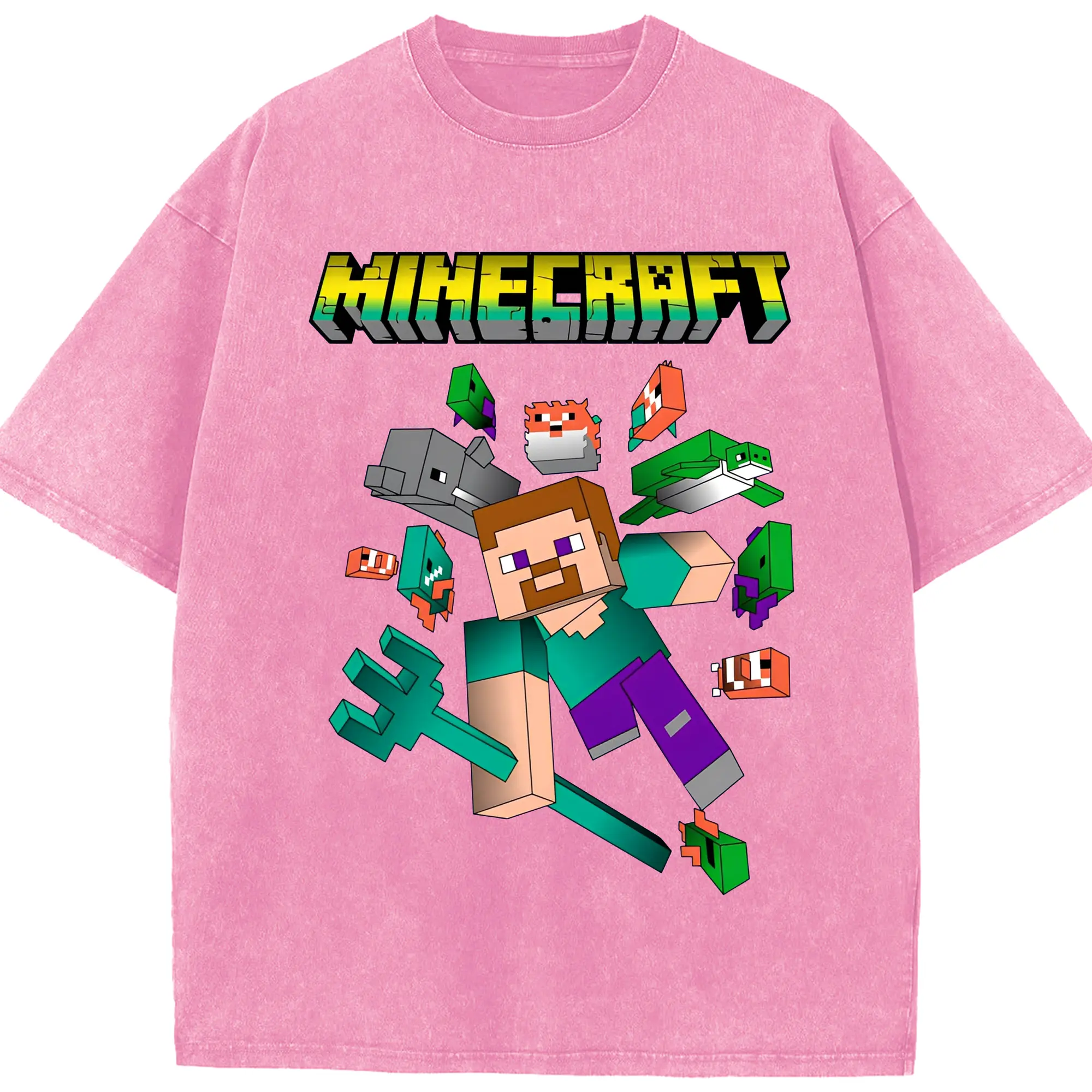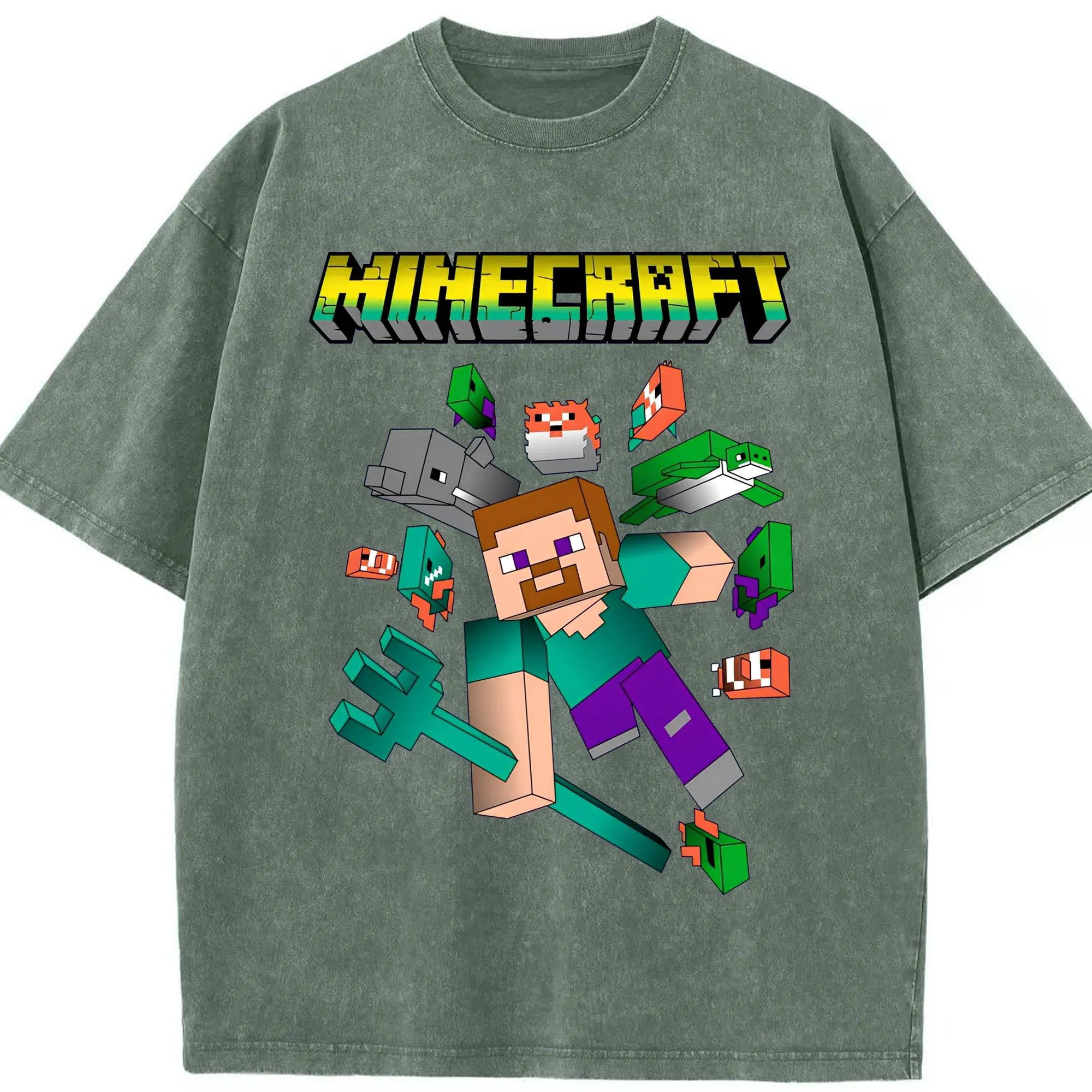 【人気急上昇】マインクラフト グッズ風 - 綿100% ヴィンテージ風 半袖Tシャツ ・ フロントプリント ・ 柔らか肌触り ・ 通気性 快適 ・ スポーツ カジュアル 外出用