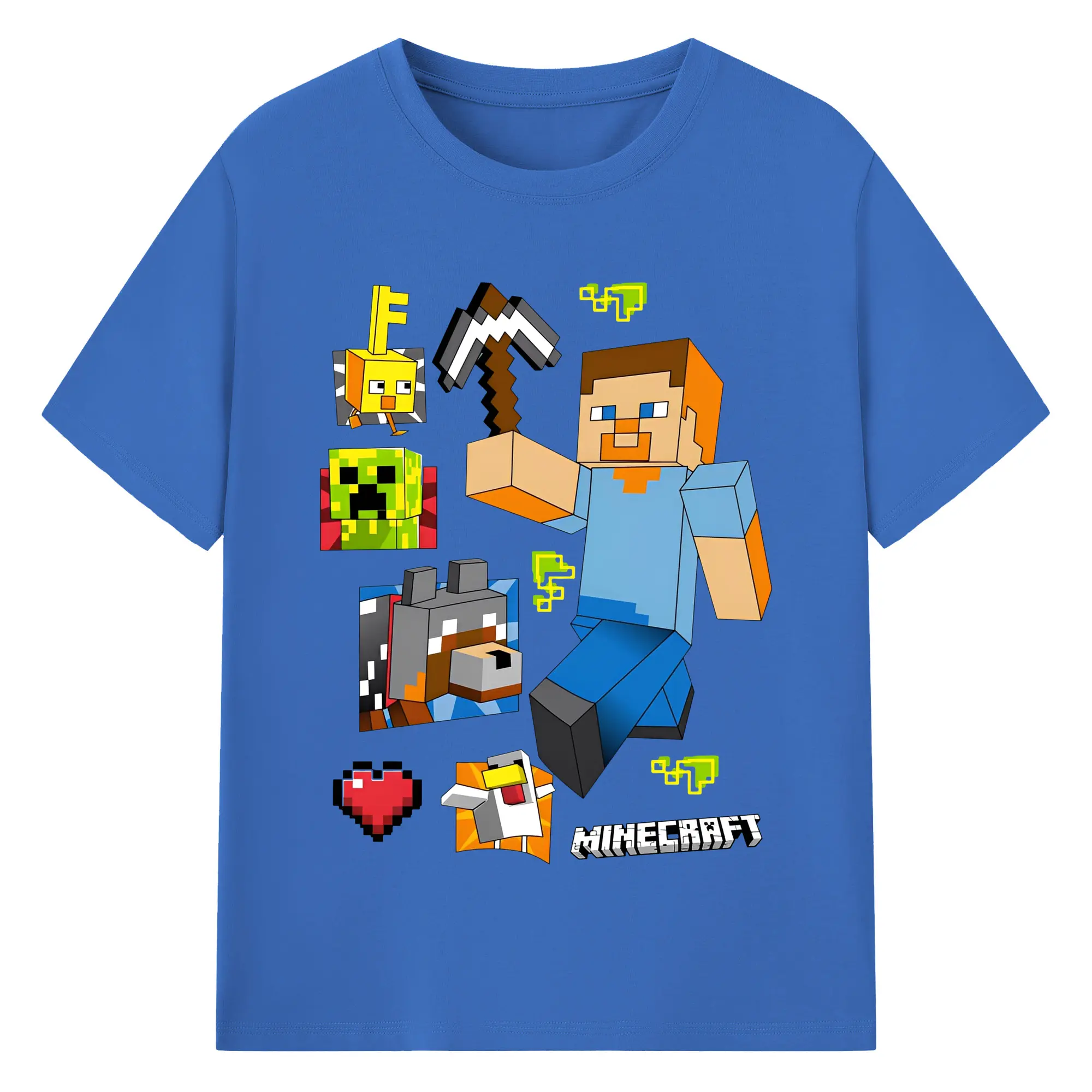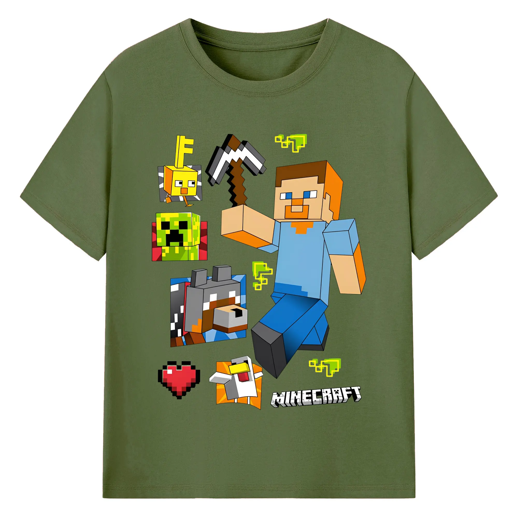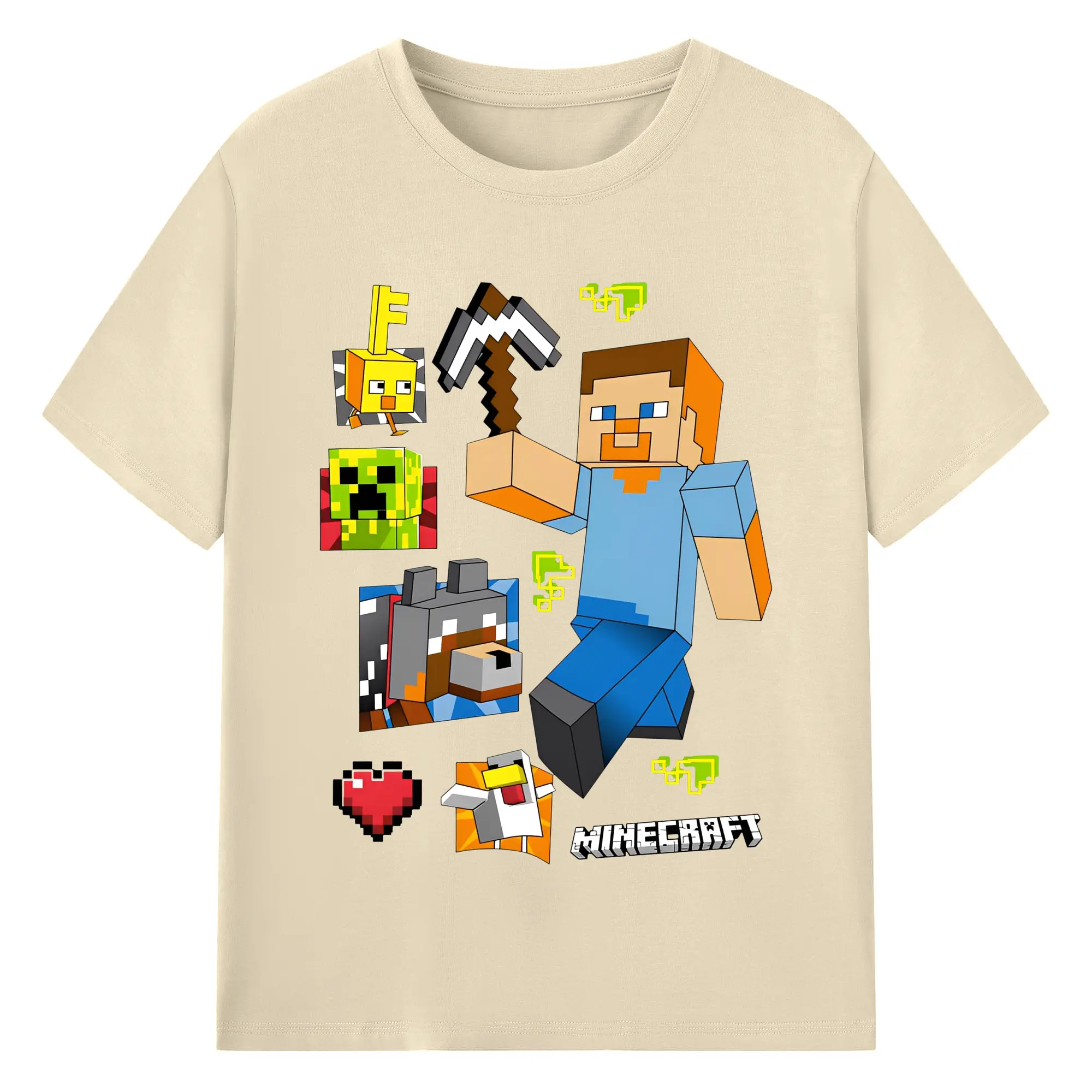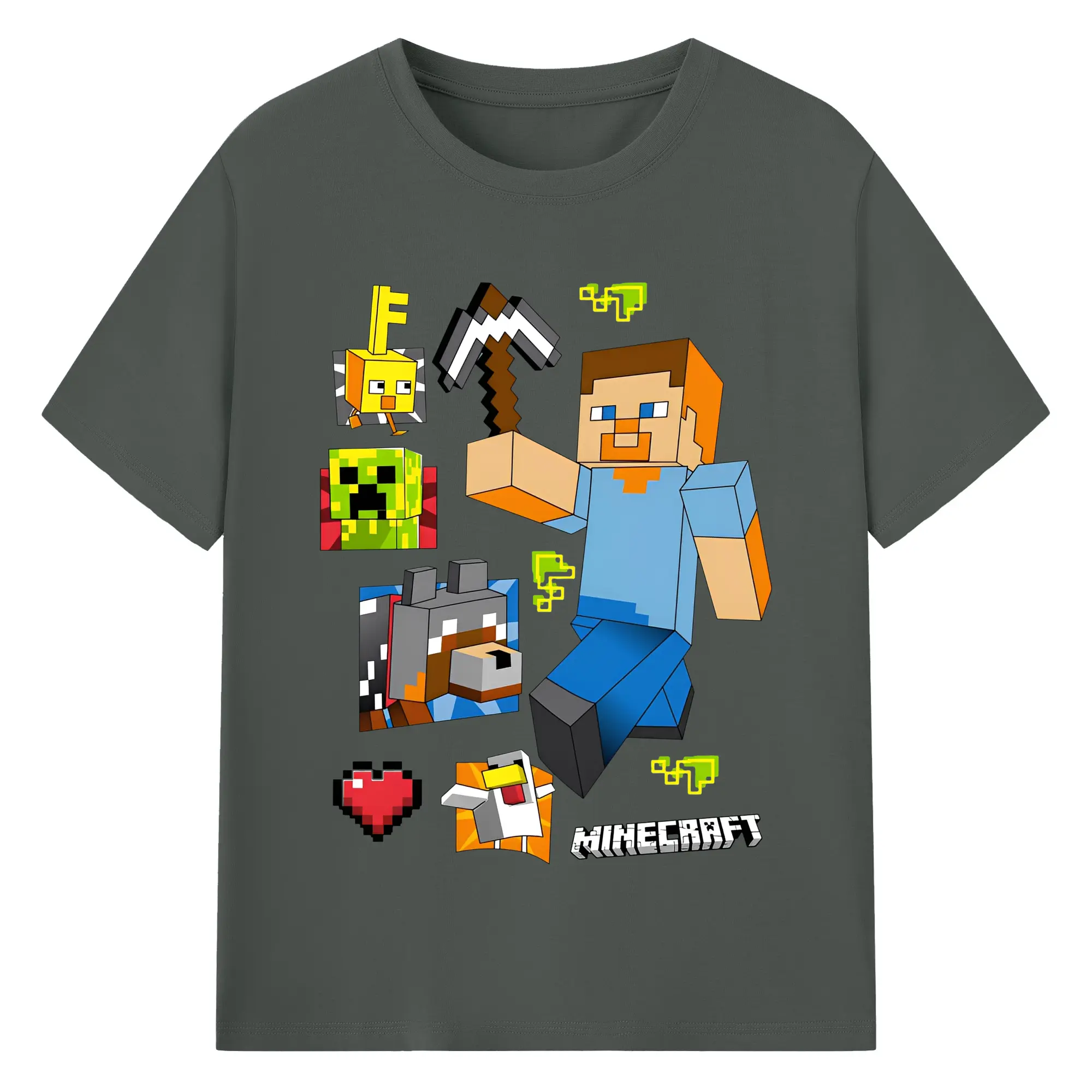 マインクラフト ワールド 探検 - 綿100% ヴィンテージ風 半袖Tシャツ ・ フロントプリント ・ 柔らか肌触り ・ 通気性 快適 ・ スポーツ カジュアル 外出用