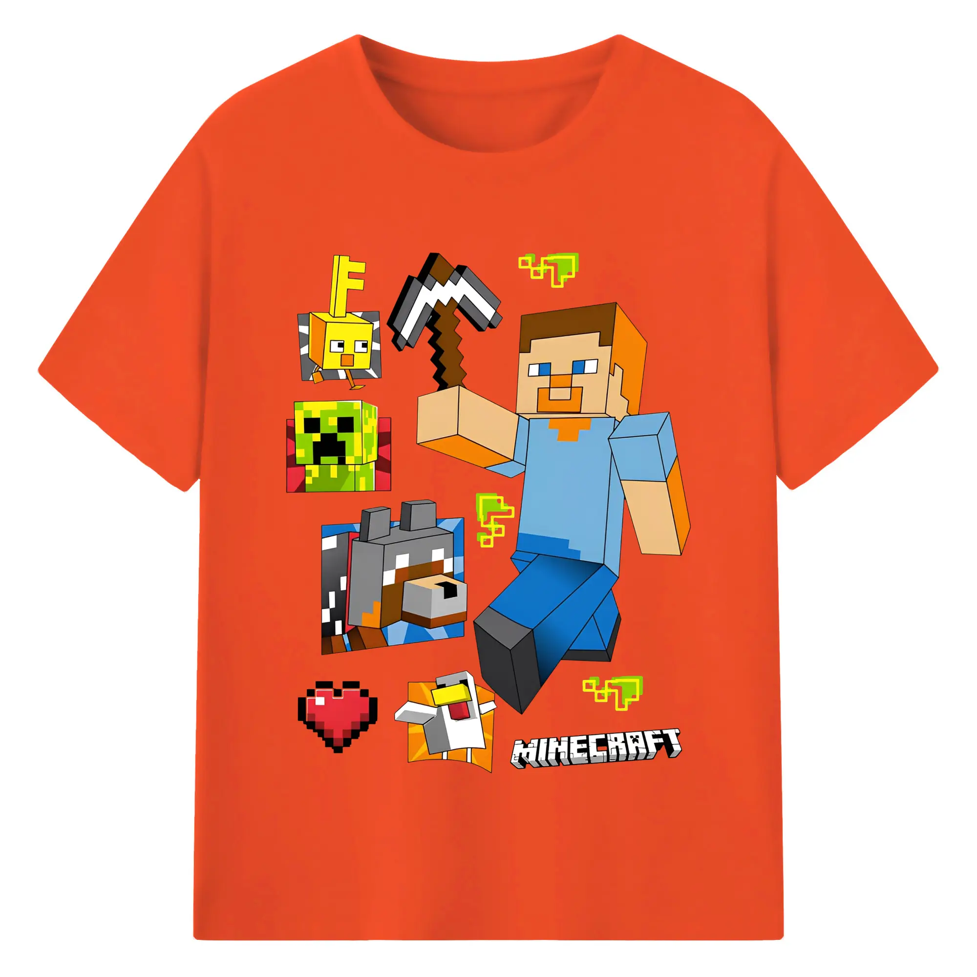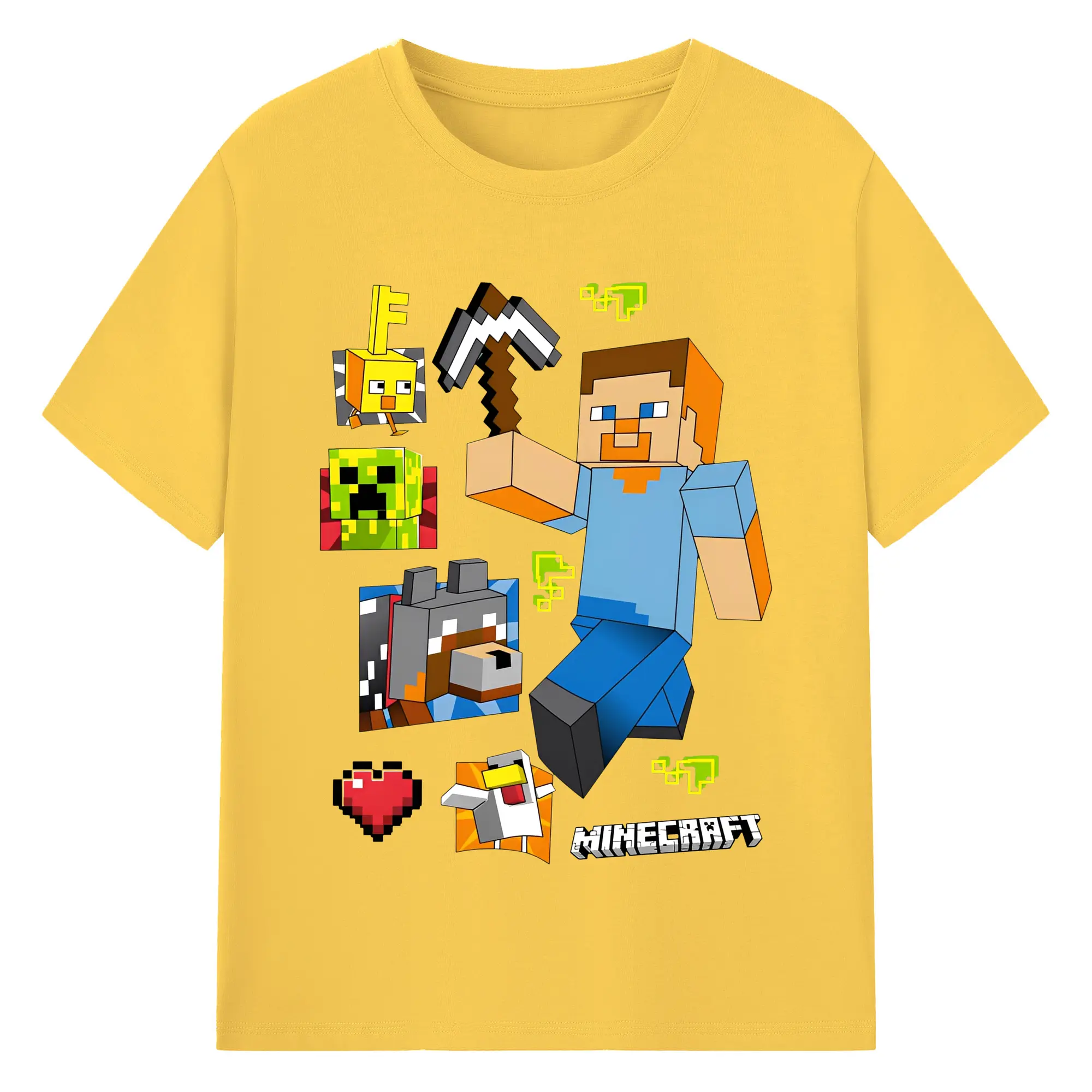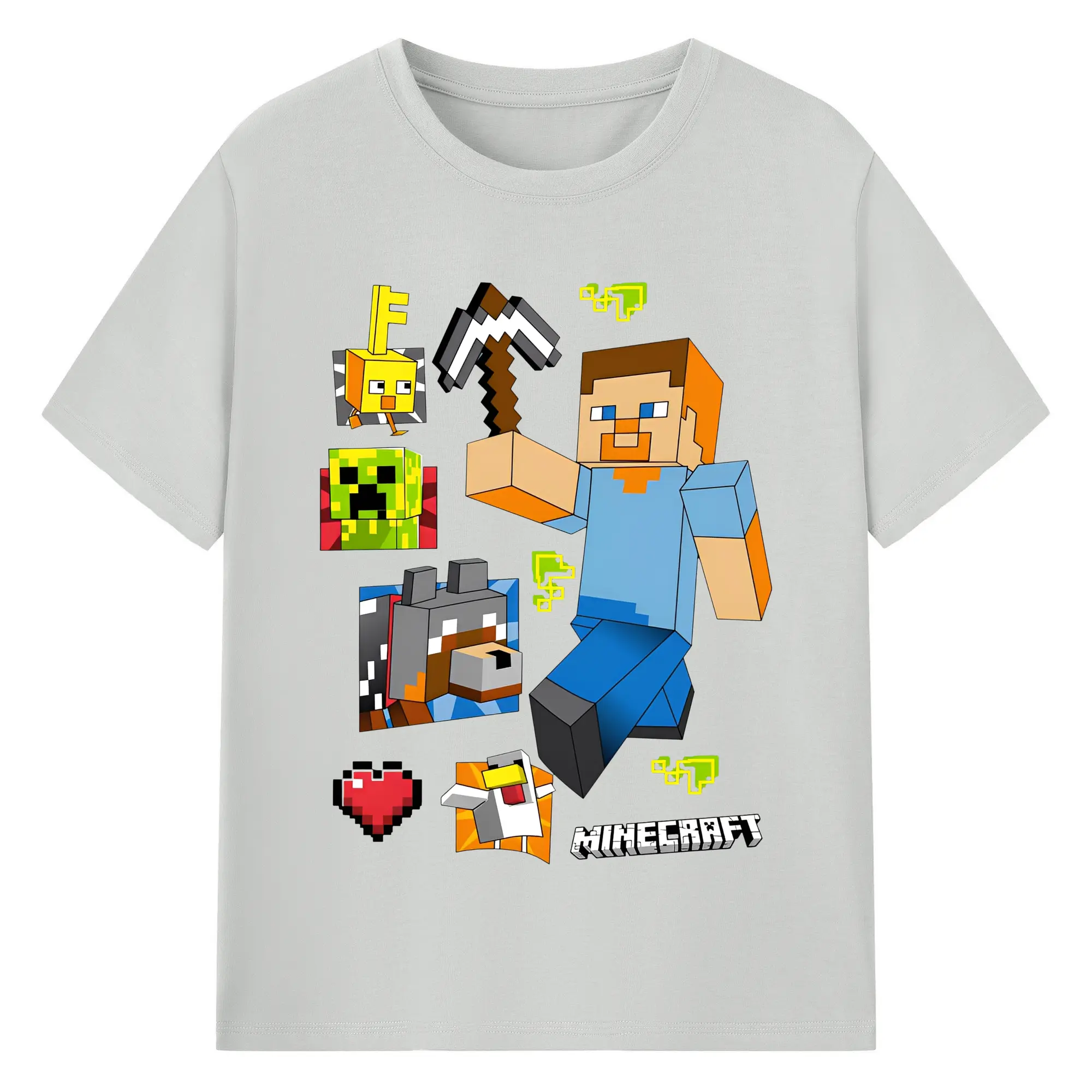 マインクラフト ワールド 探検 - 綿100% ヴィンテージ風 半袖Tシャツ ・ フロントプリント ・ 柔らか肌触り ・ 通気性 快適 ・ スポーツ カジュアル 外出用