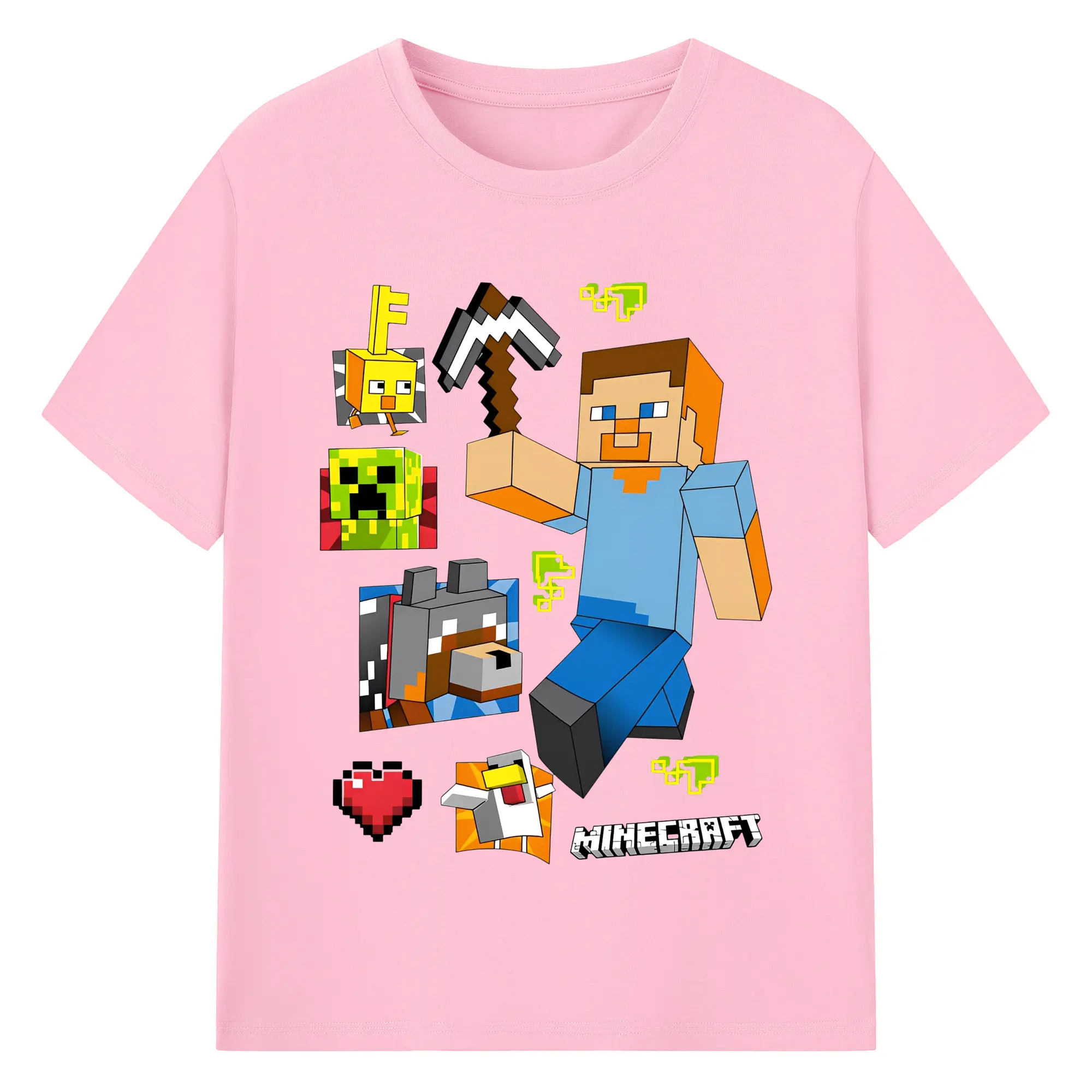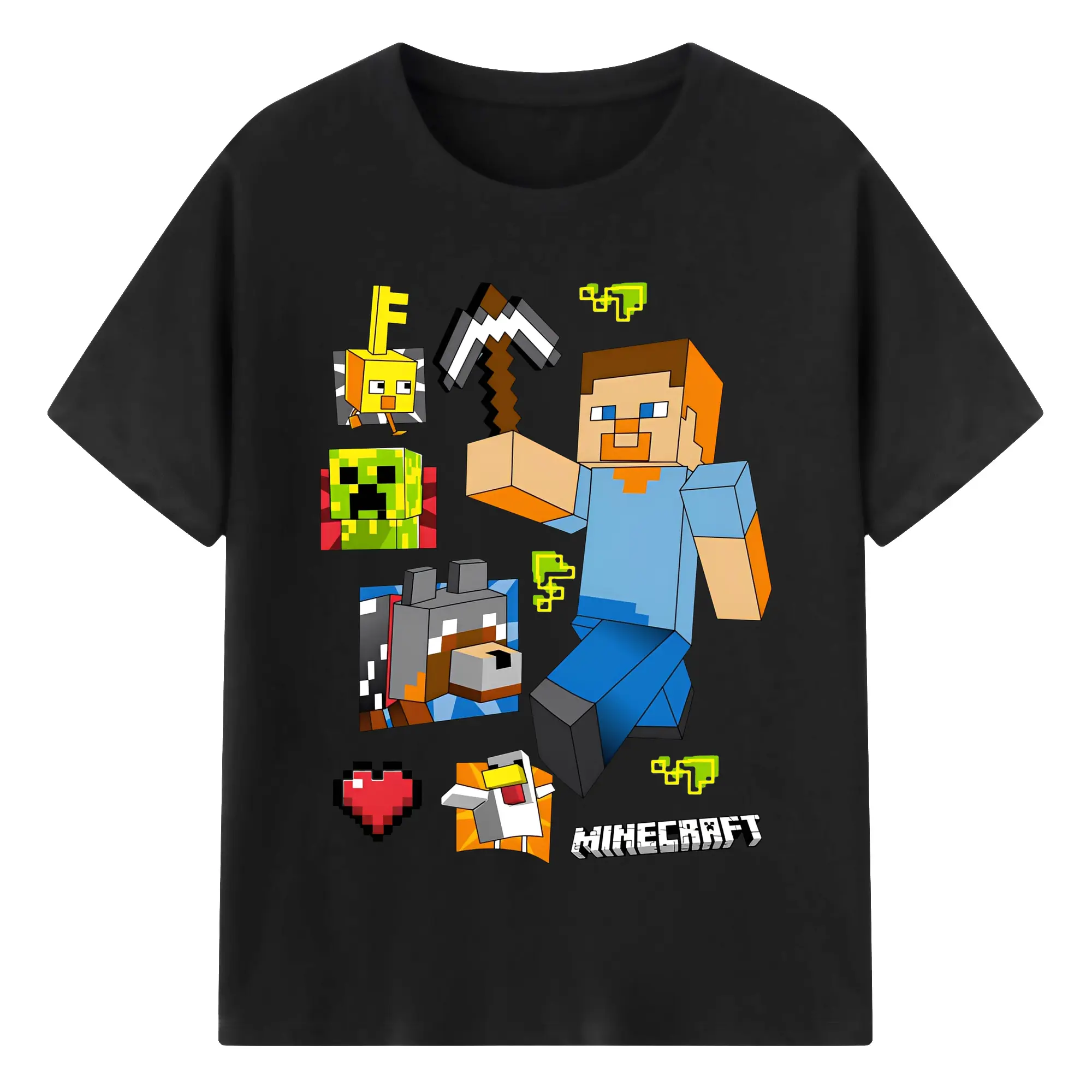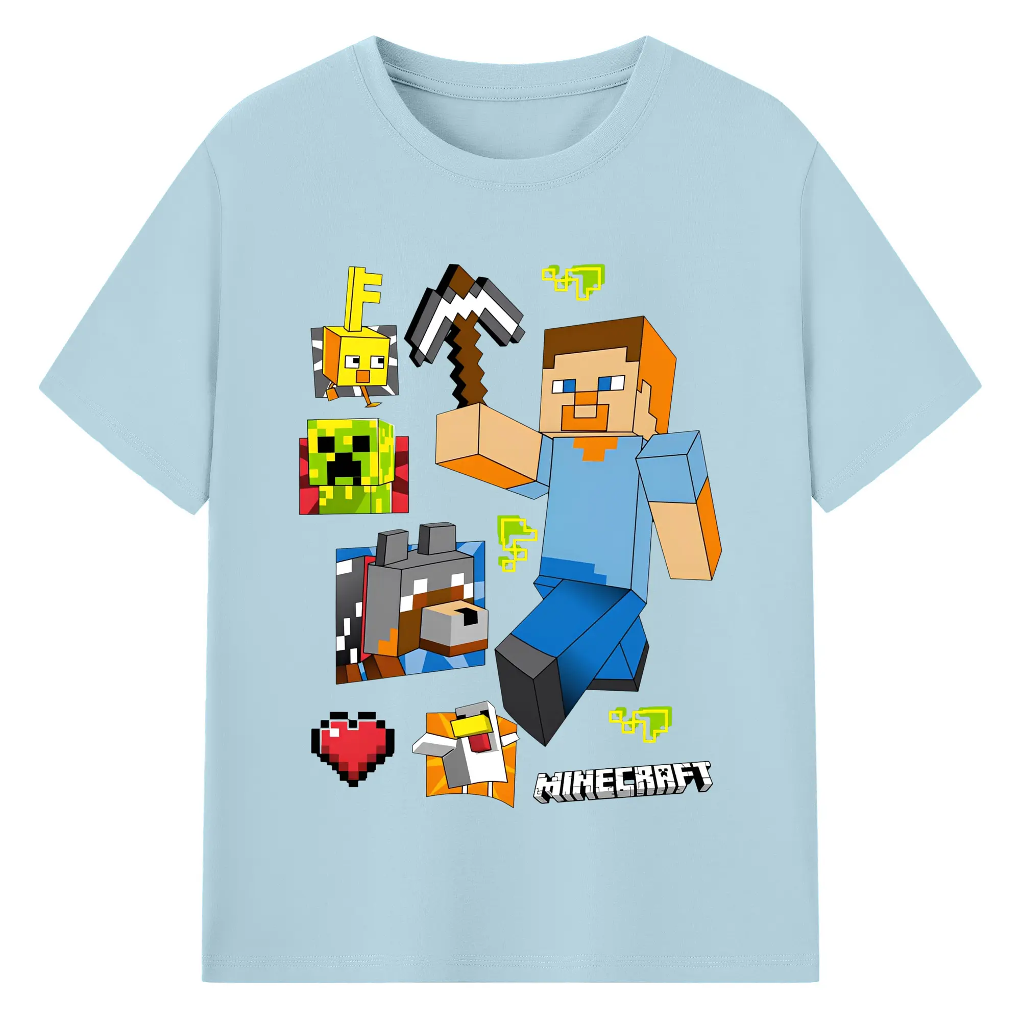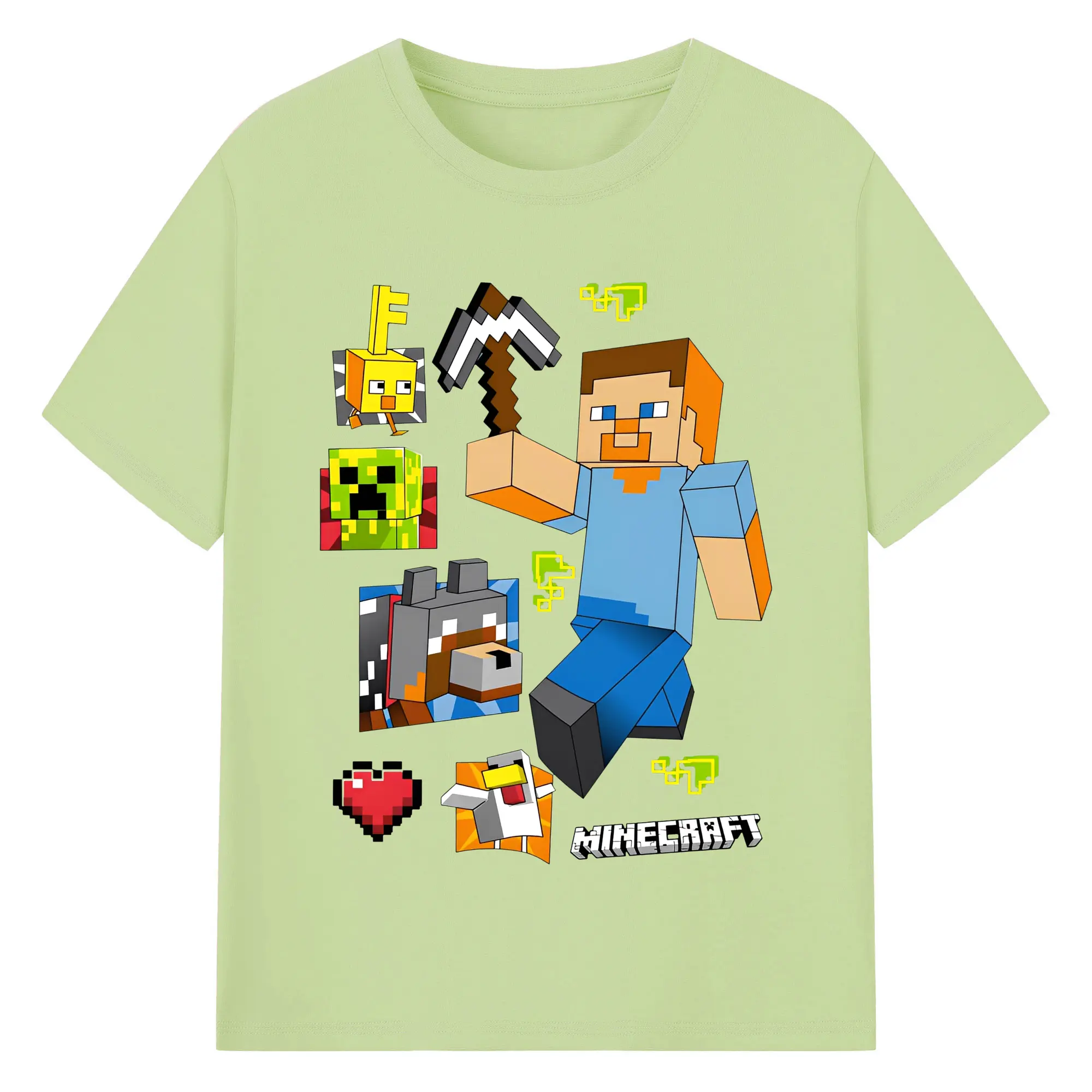 マインクラフト ワールド 探検 - 綿100% ヴィンテージ風 半袖Tシャツ ・ フロントプリント ・ 柔らか肌触り ・ 通気性 快適 ・ スポーツ カジュアル 外出用