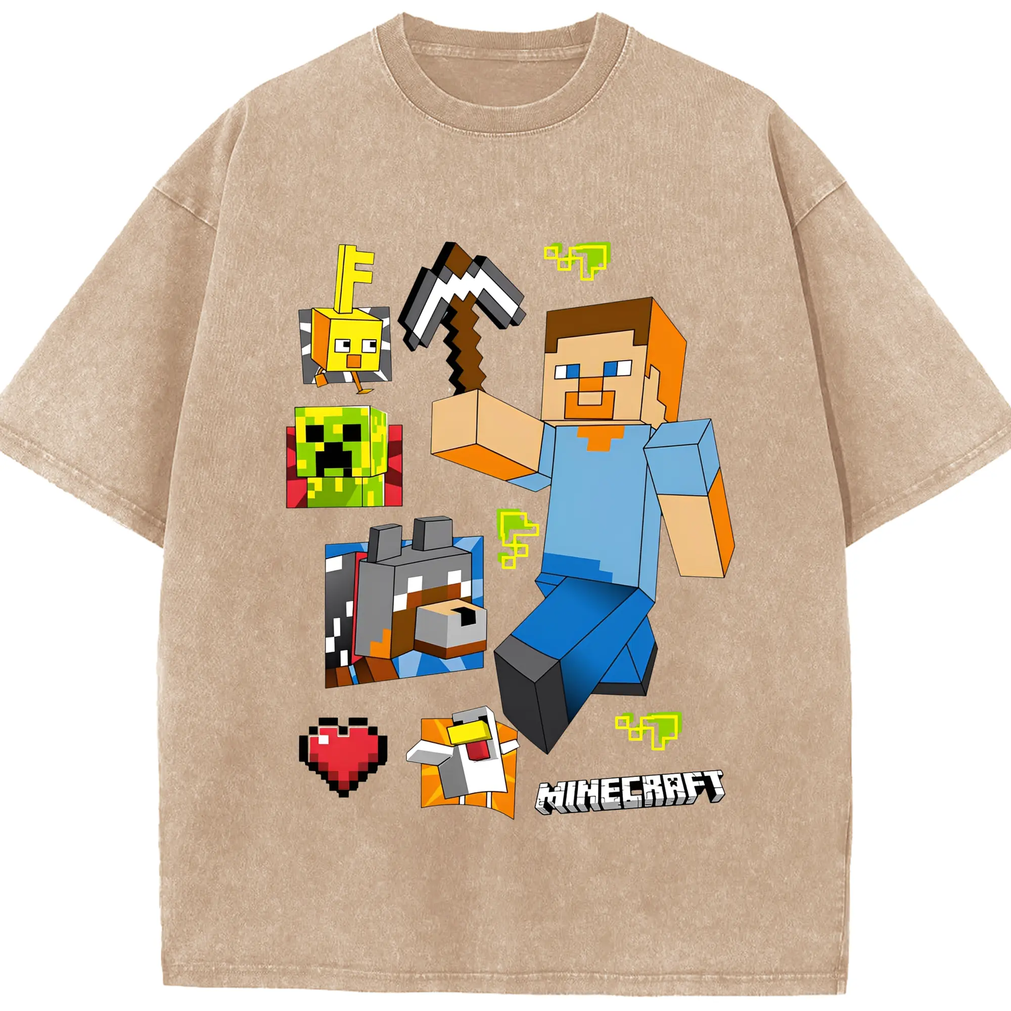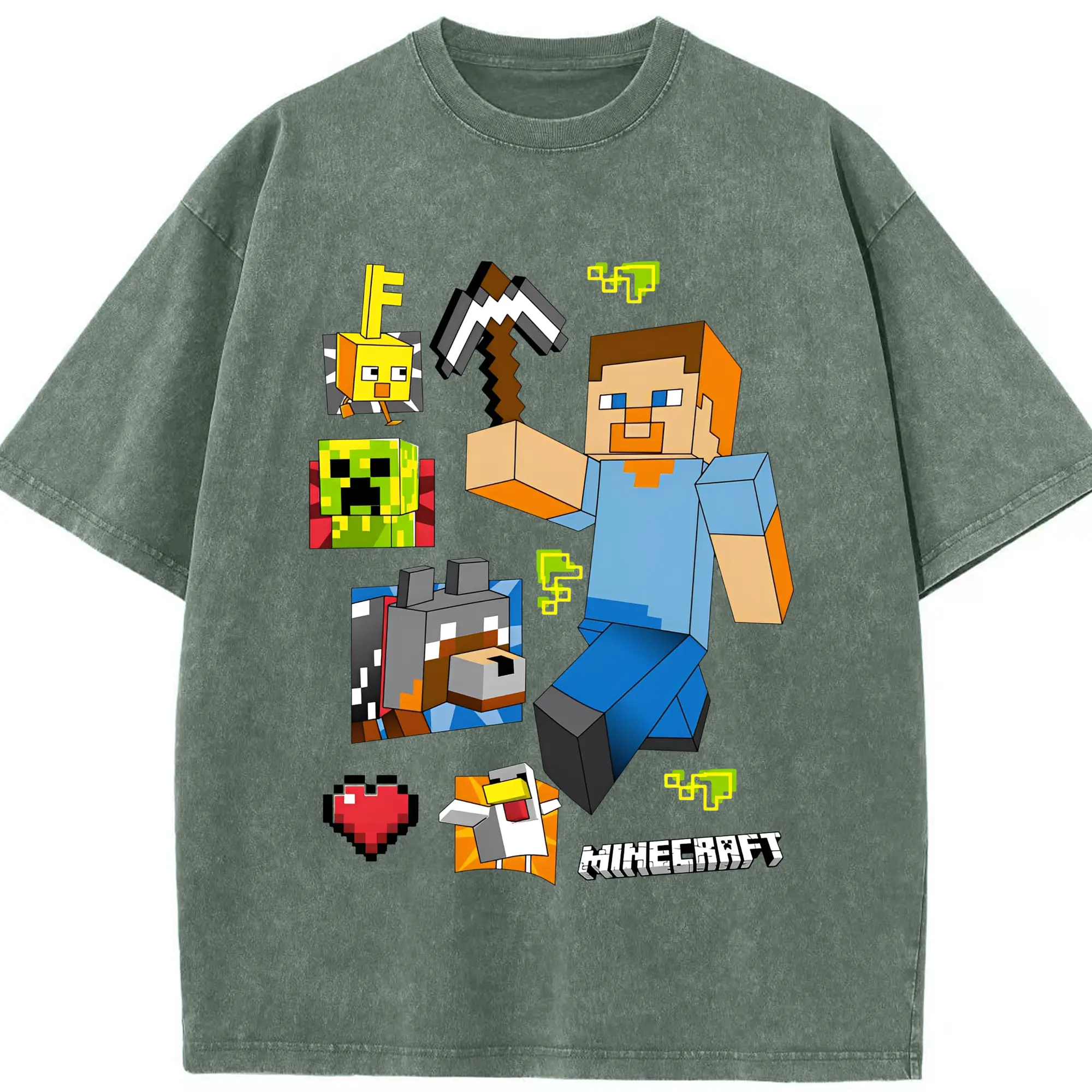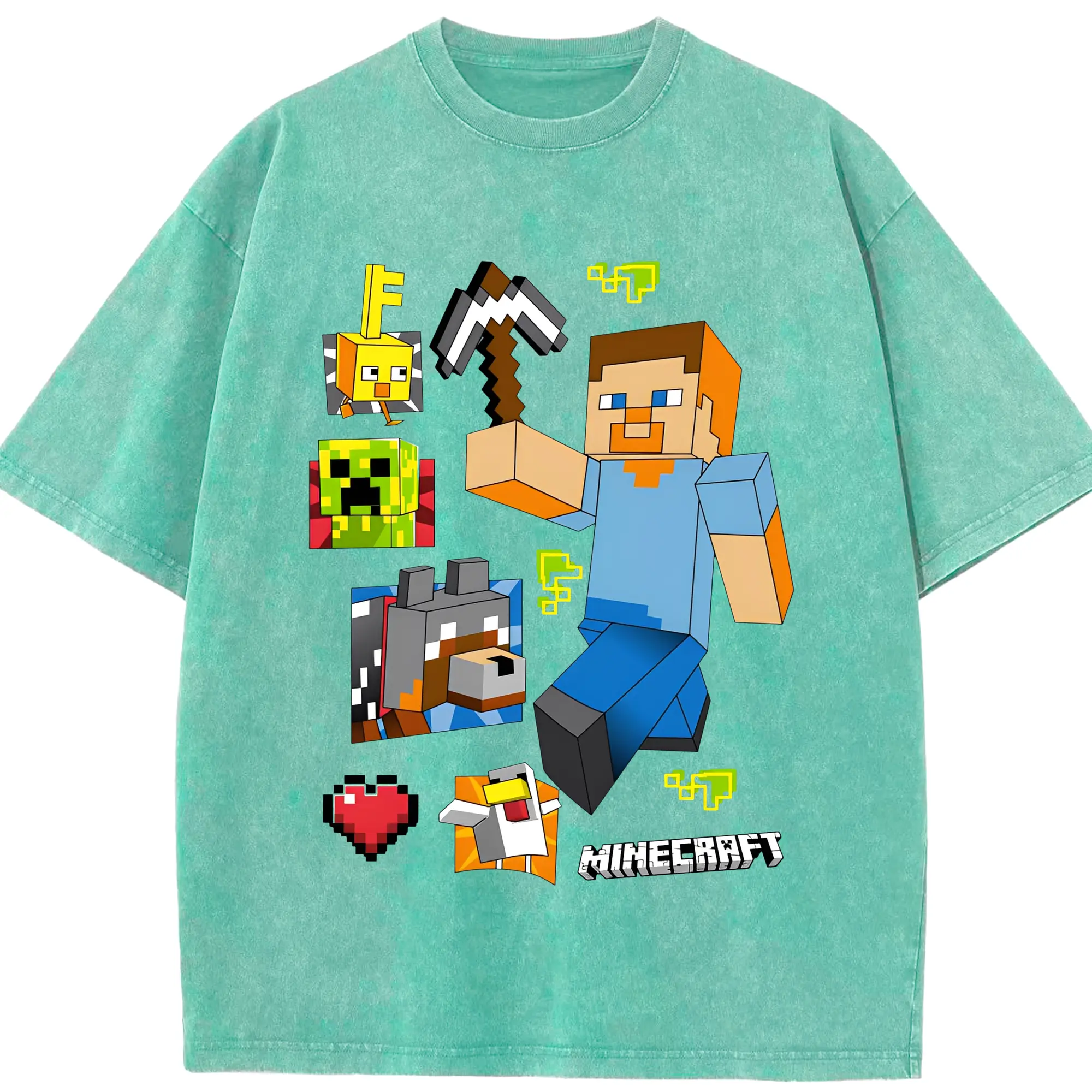 マインクラフト ワールド 探検 - 綿100% 半袖Tシャツ ・ フロントプリント ・ 快適 通気性 ・ 日常使い 散歩 スポーツ用
