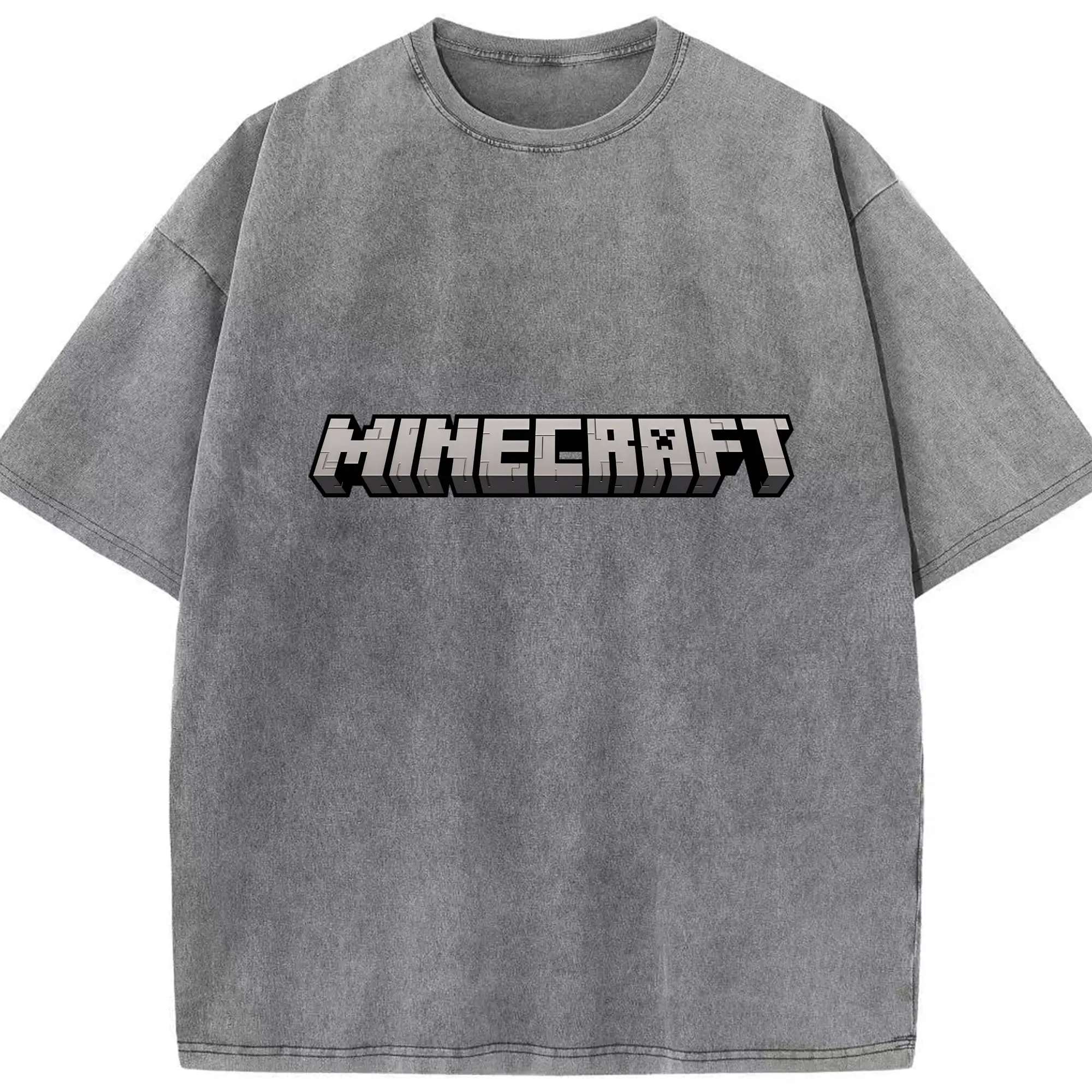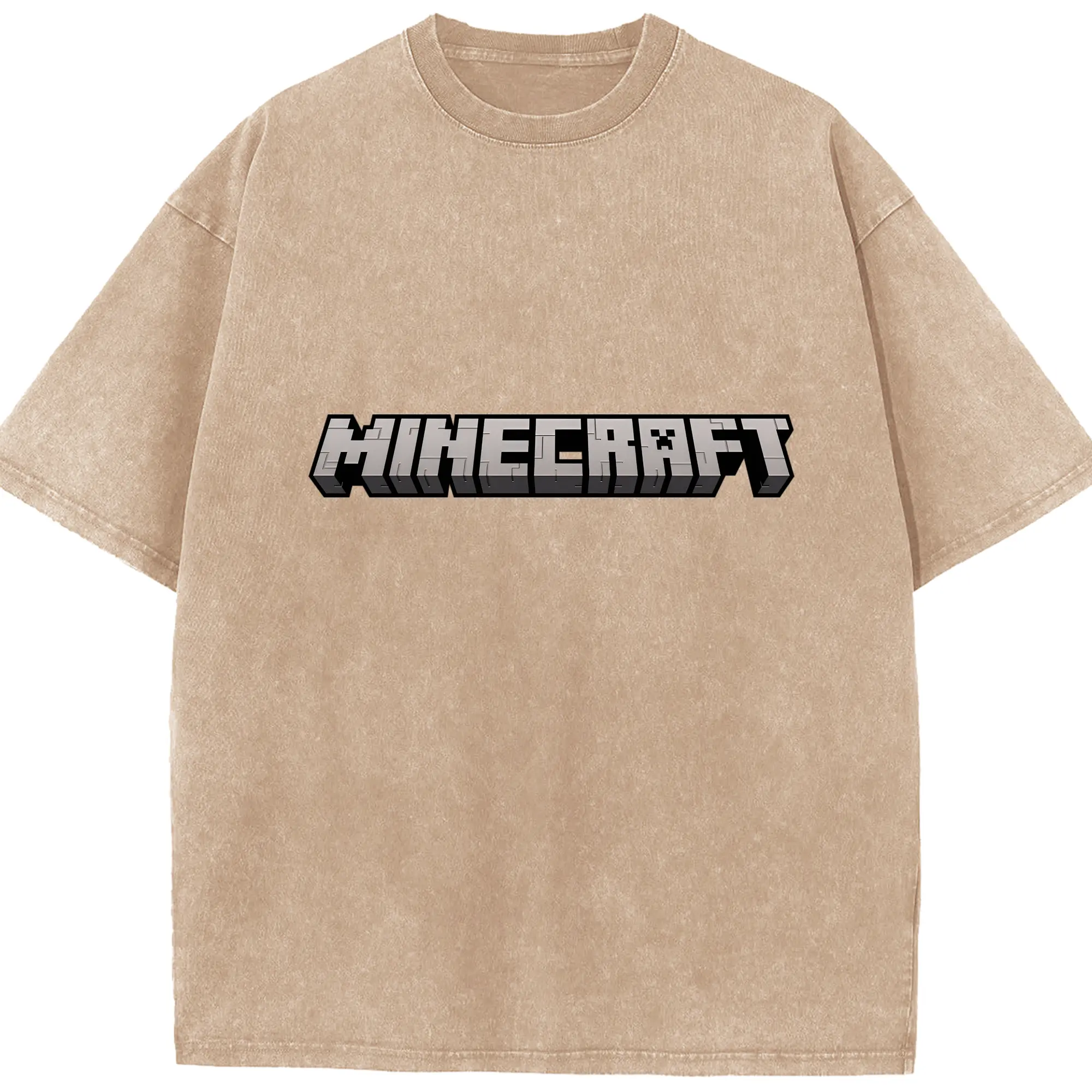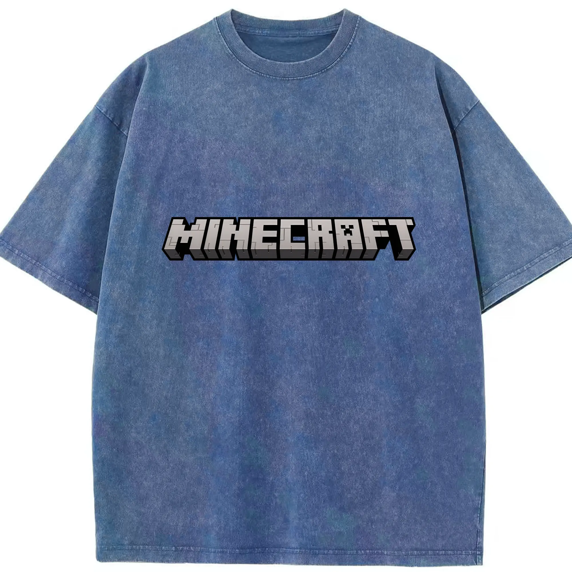 マインクラフト ロゴデザイン カジュアル - 綿100% 半袖Tシャツ ・ フロントプリント ・ 快適 通気性 ・ 日常使い 散歩 スポーツ用
