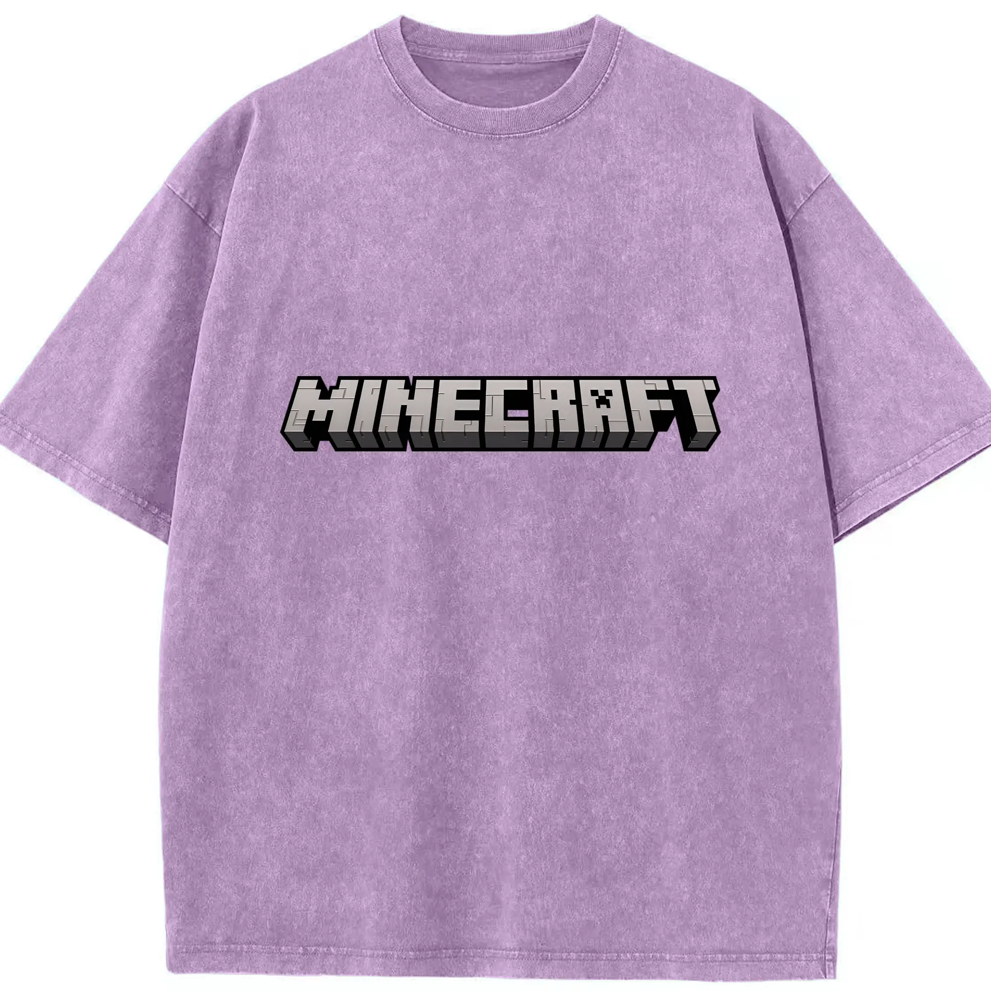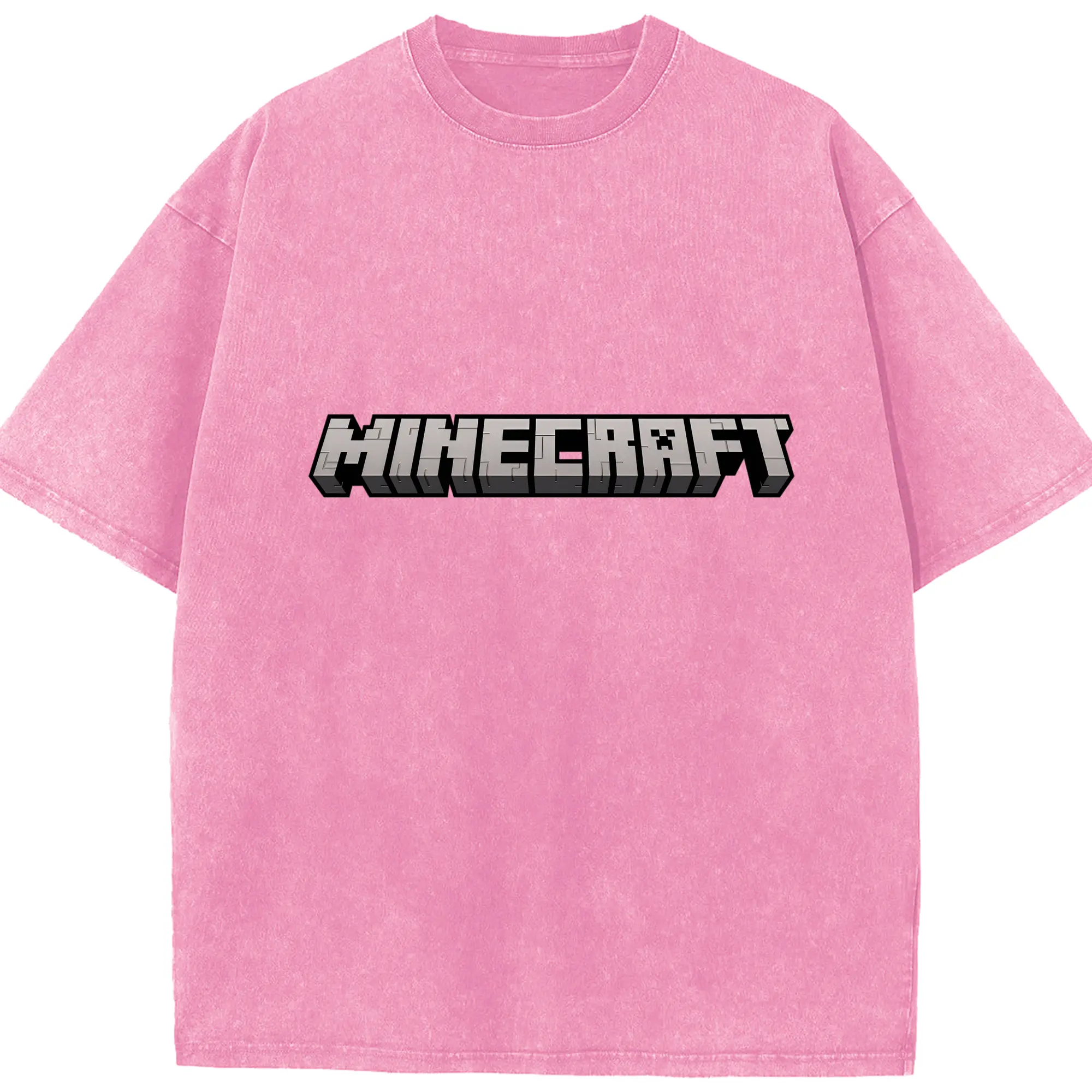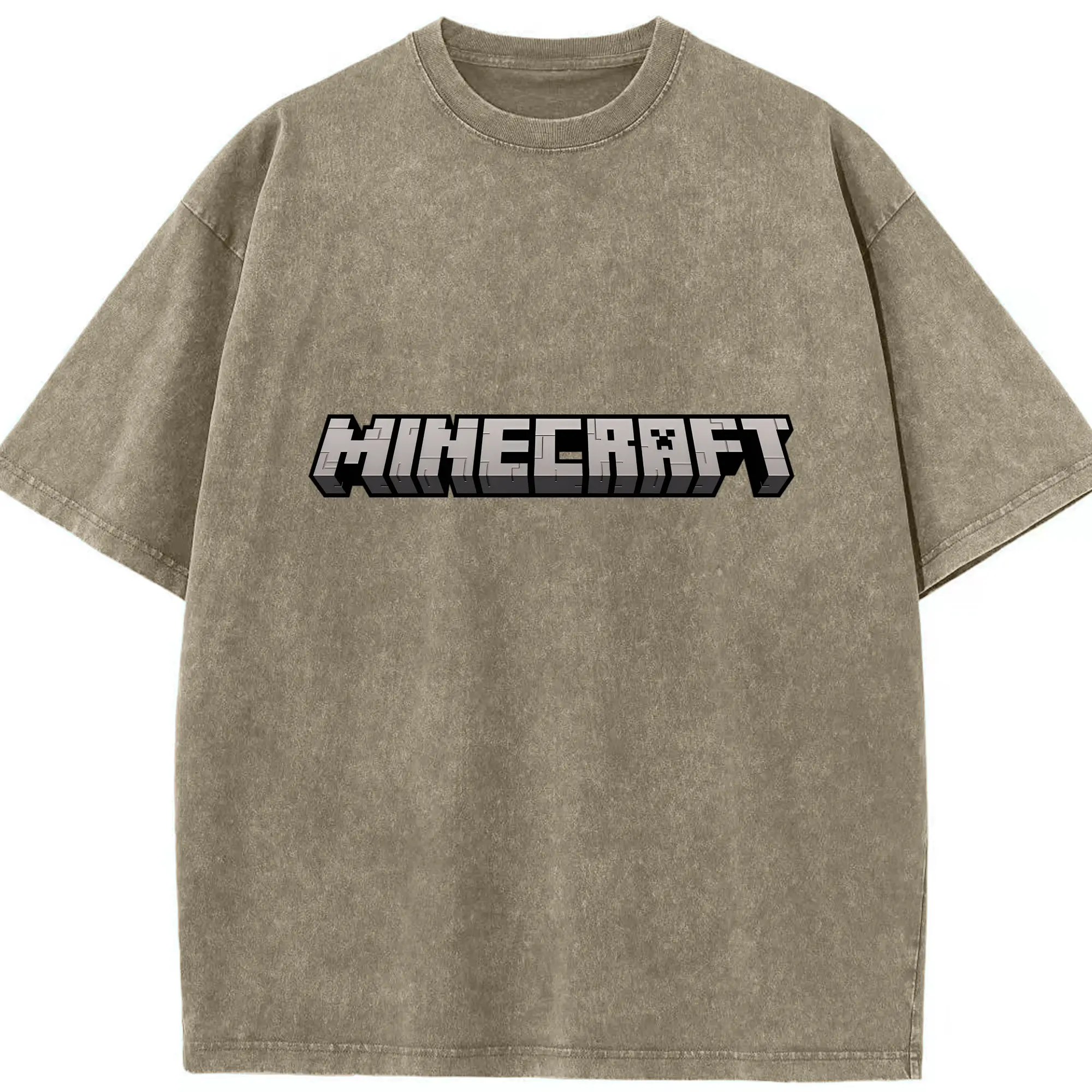 マインクラフト ロゴデザイン カジュアル - 綿100% 半袖Tシャツ ・ フロントプリント ・ 快適 通気性 ・ 日常使い 散歩 スポーツ用