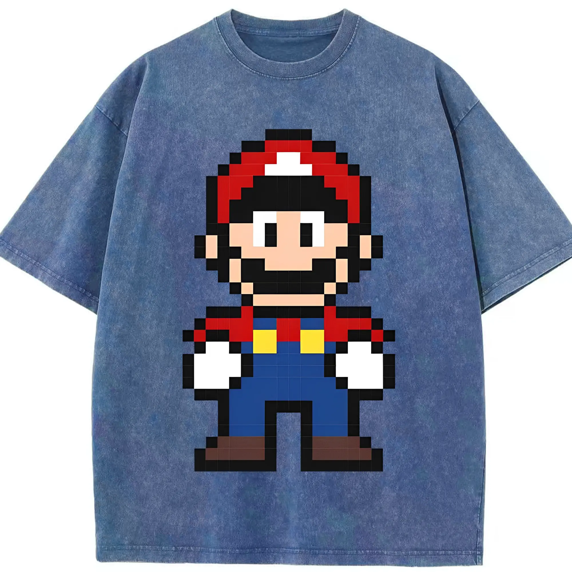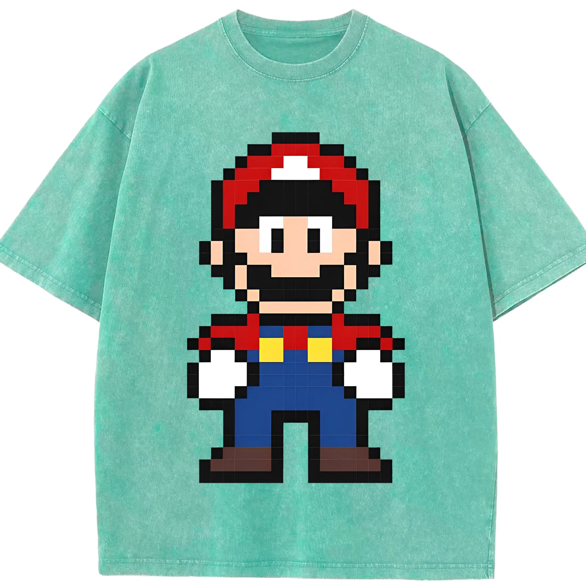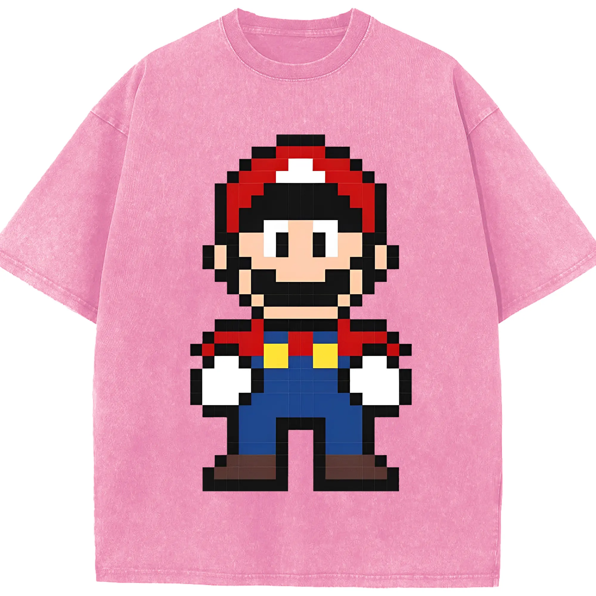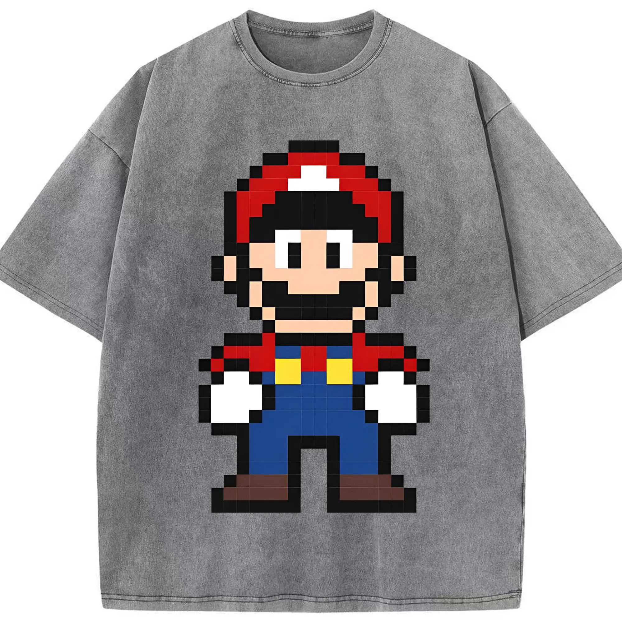 マリオ ピクセルポップ アート - 綿100% 半袖Tシャツ ・ フロントプリント ・ 快適 通気性 ・ 日常使い 散歩 スポーツ用