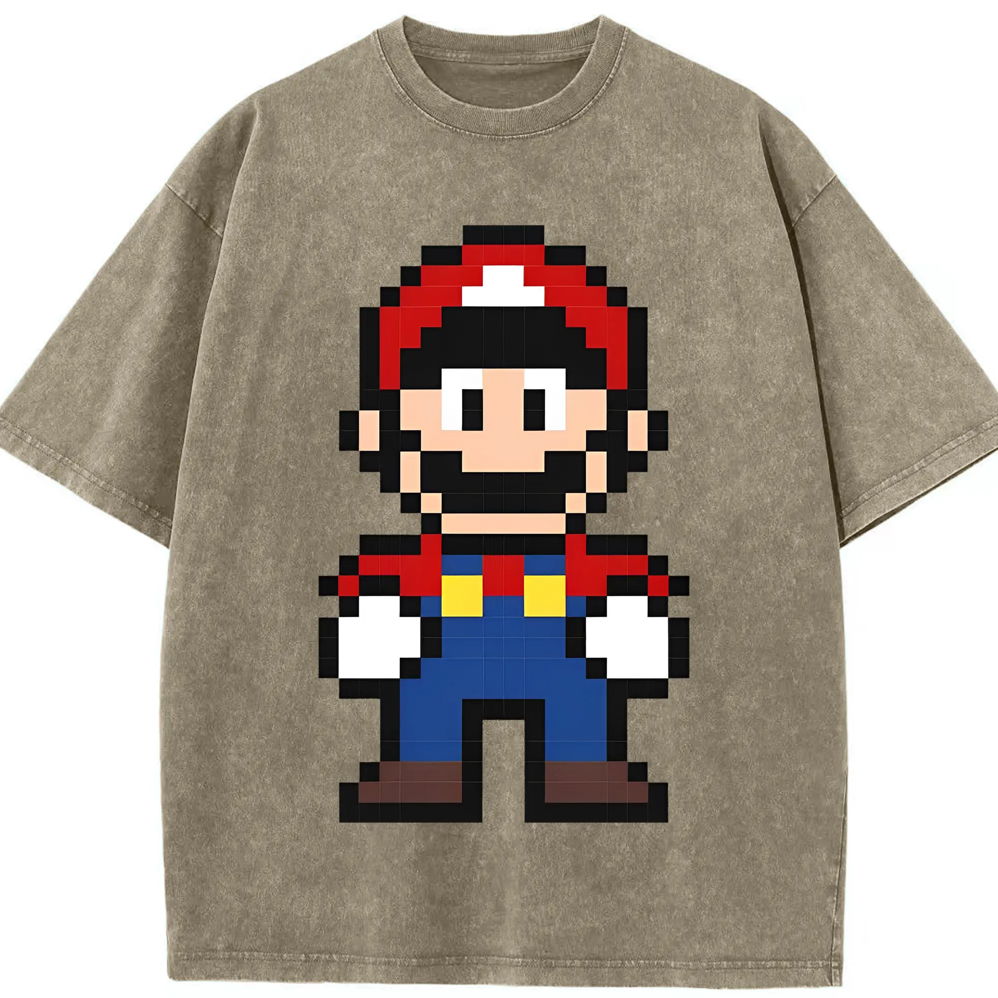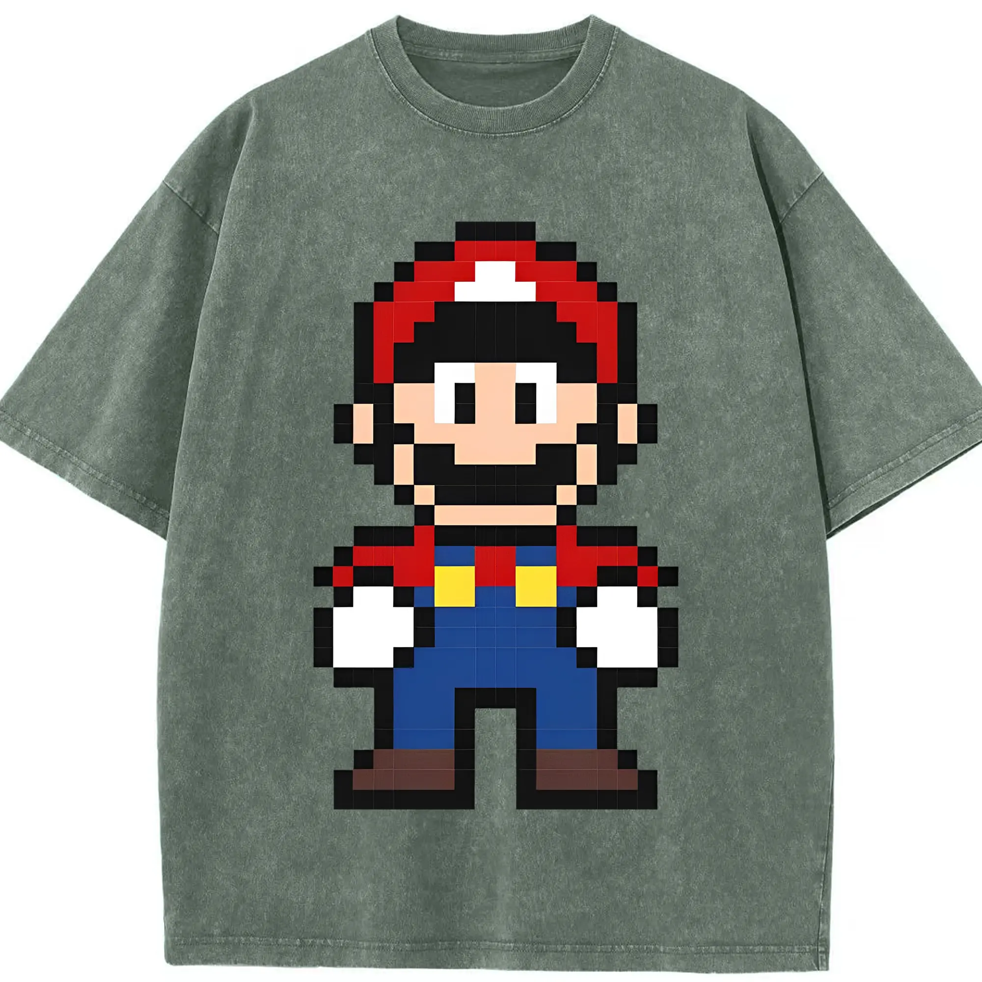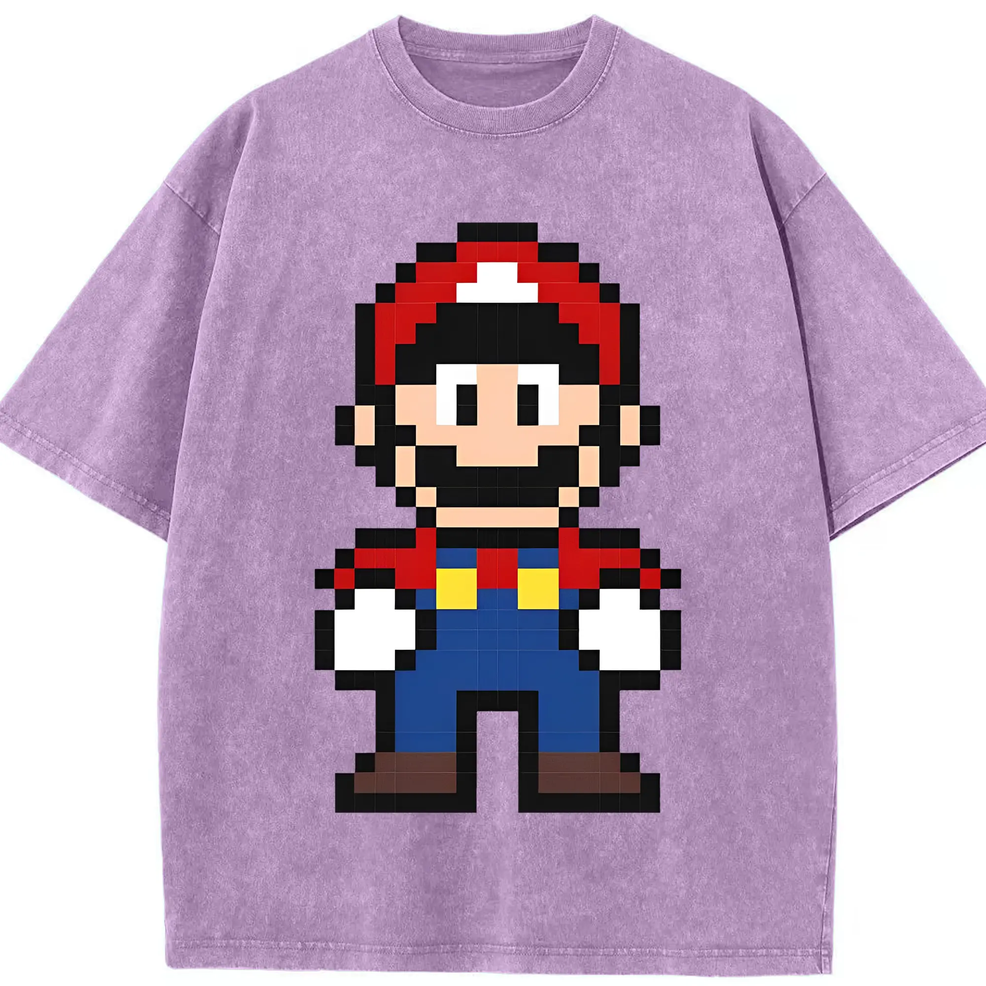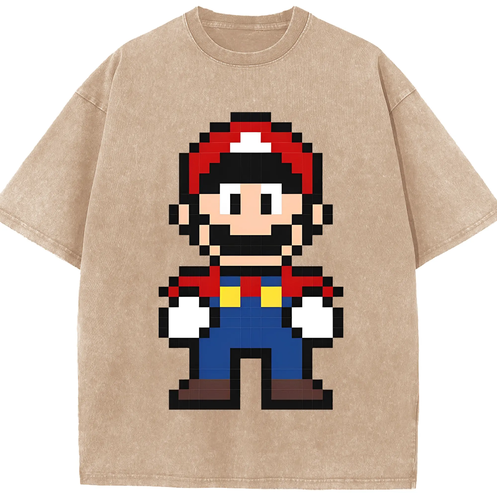 マリオ ピクセルポップ アート - 綿100% 半袖Tシャツ ・ フロントプリント ・ 快適 通気性 ・ 日常使い 散歩 スポーツ用