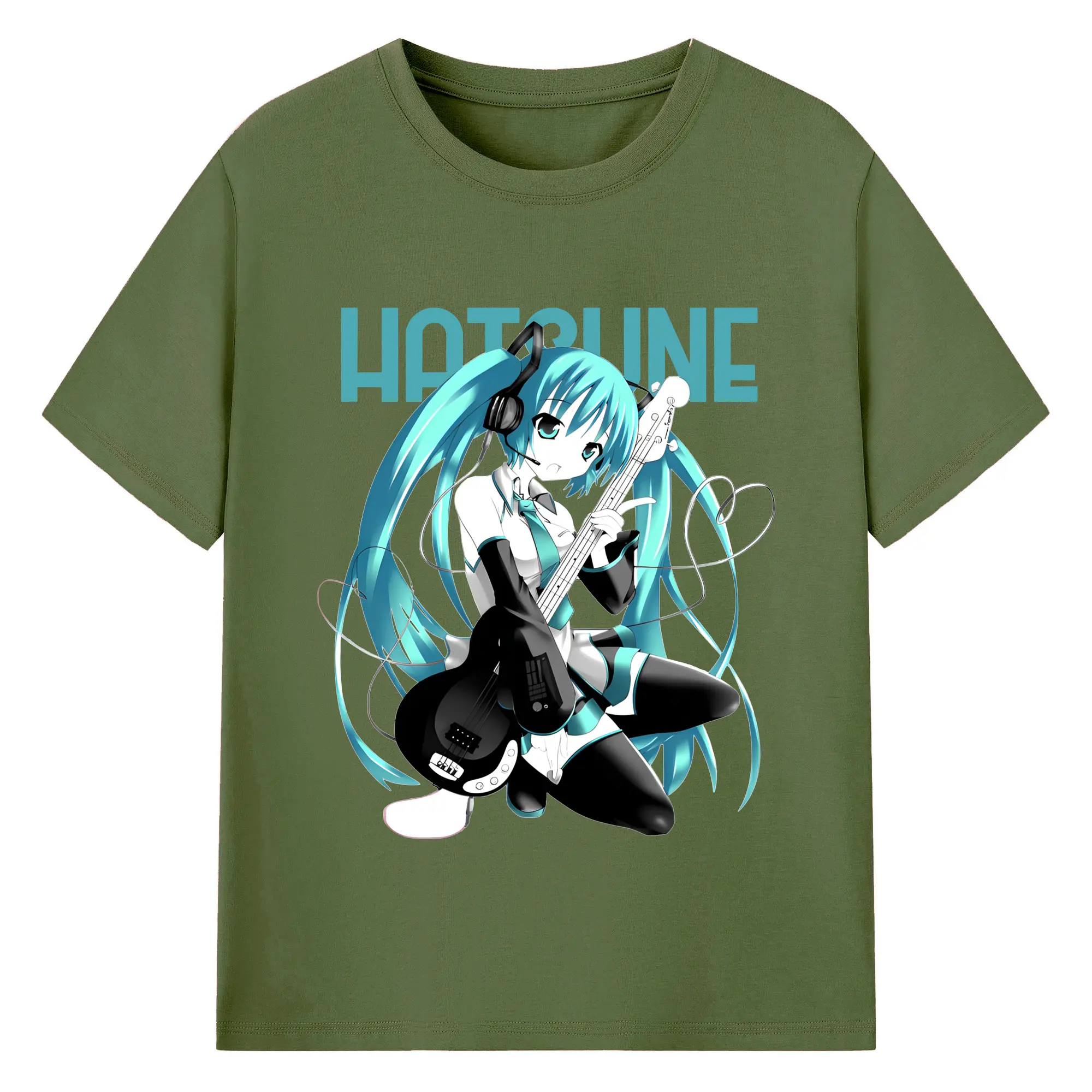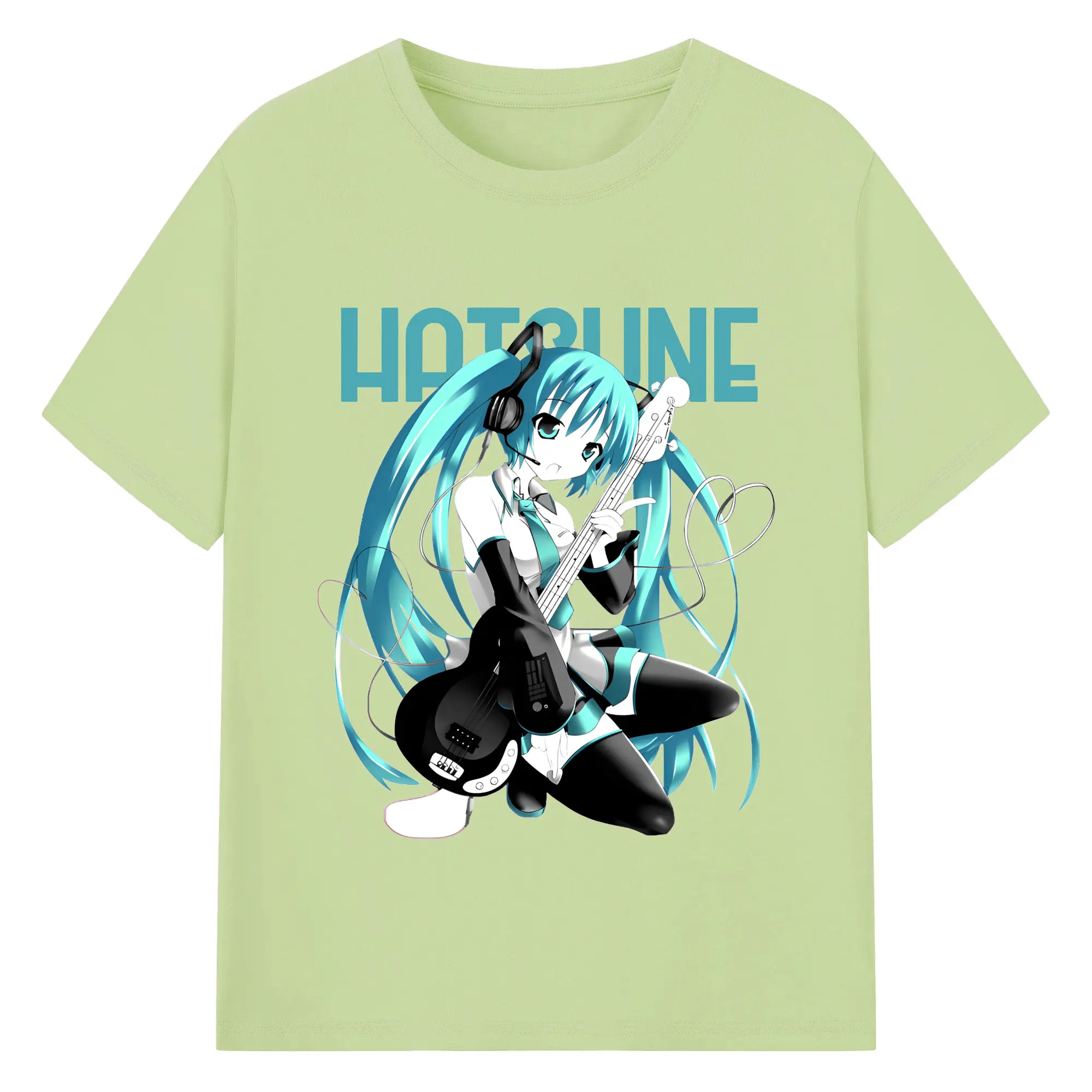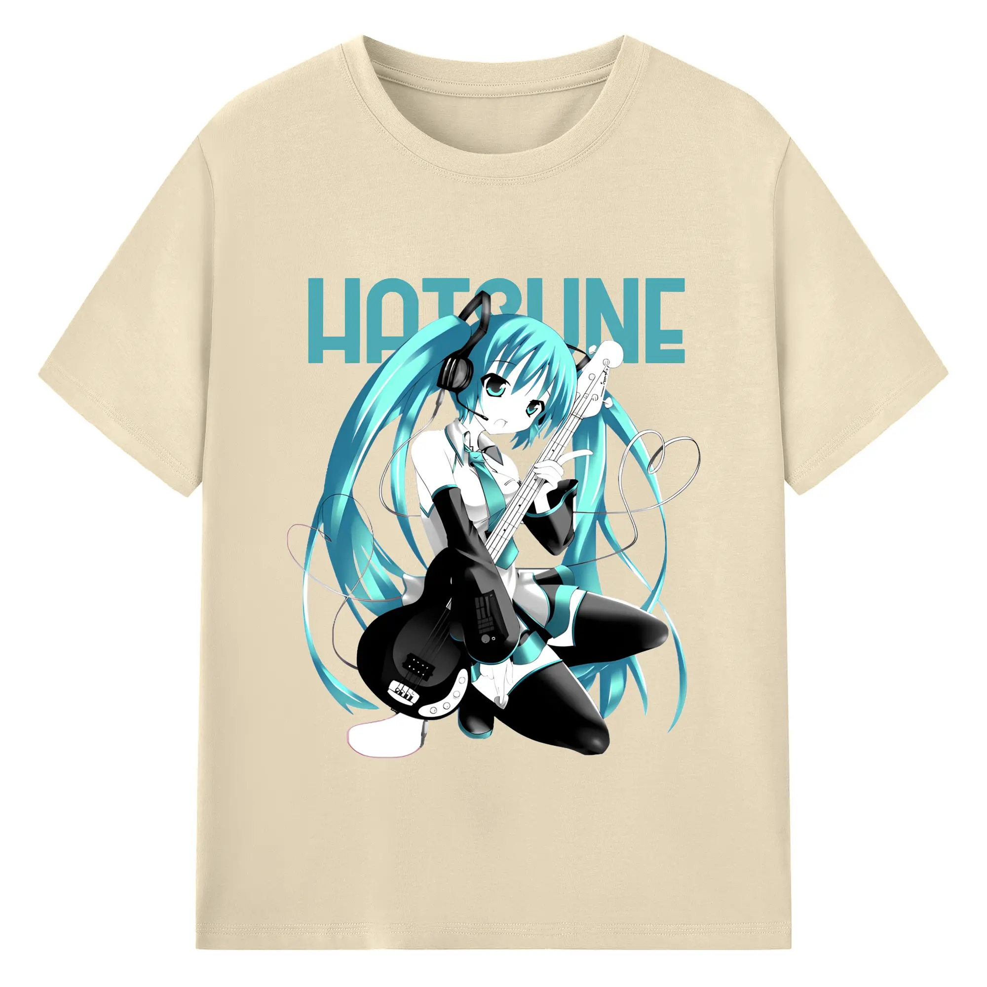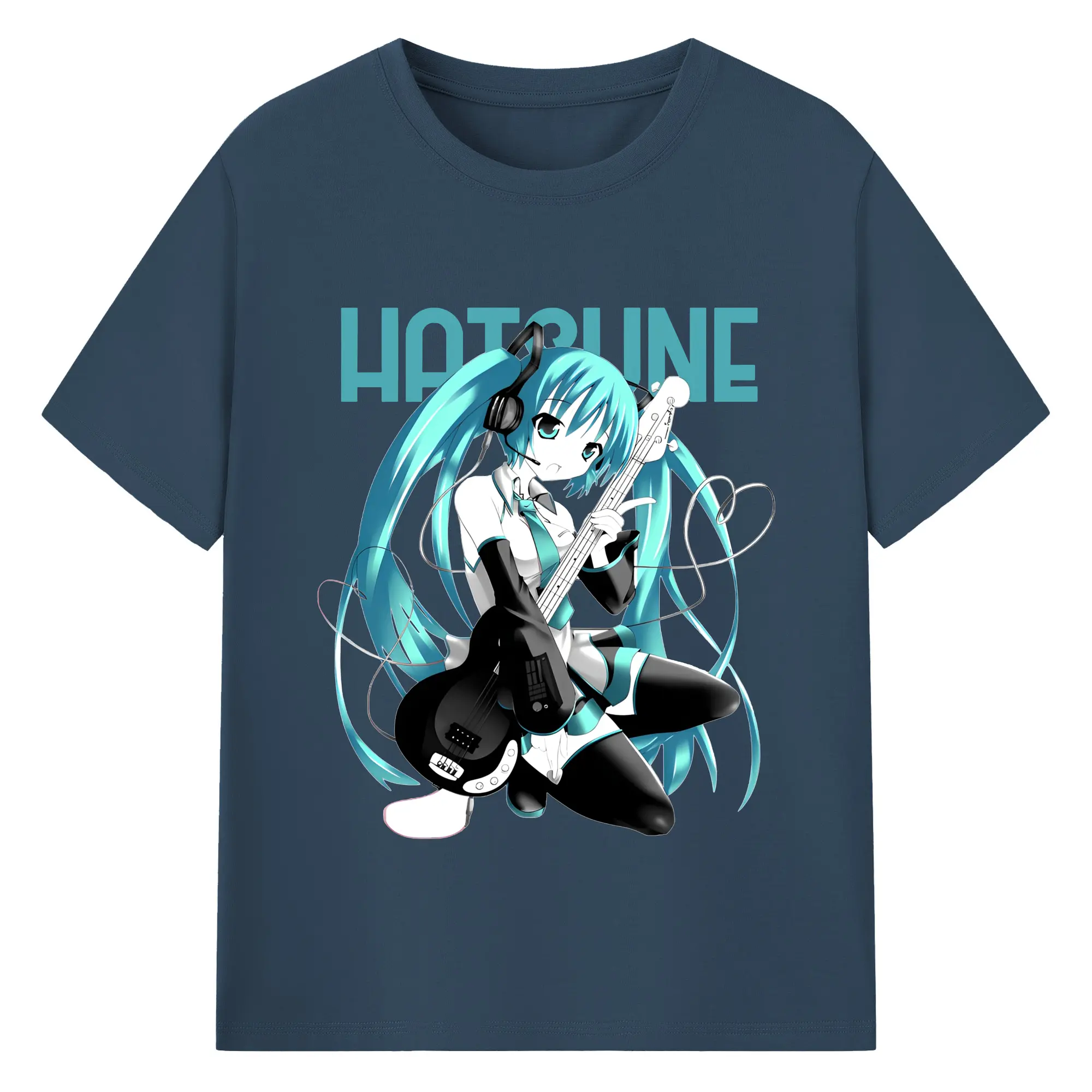 マンガ初音ミクHatsune Miku - 綿100% ヴィンテージ風 半袖Tシャツ ・ フロントプリント ・ 柔らか肌触り ・ 通気性 快適 ・ スポーツ カジュアル 外出用