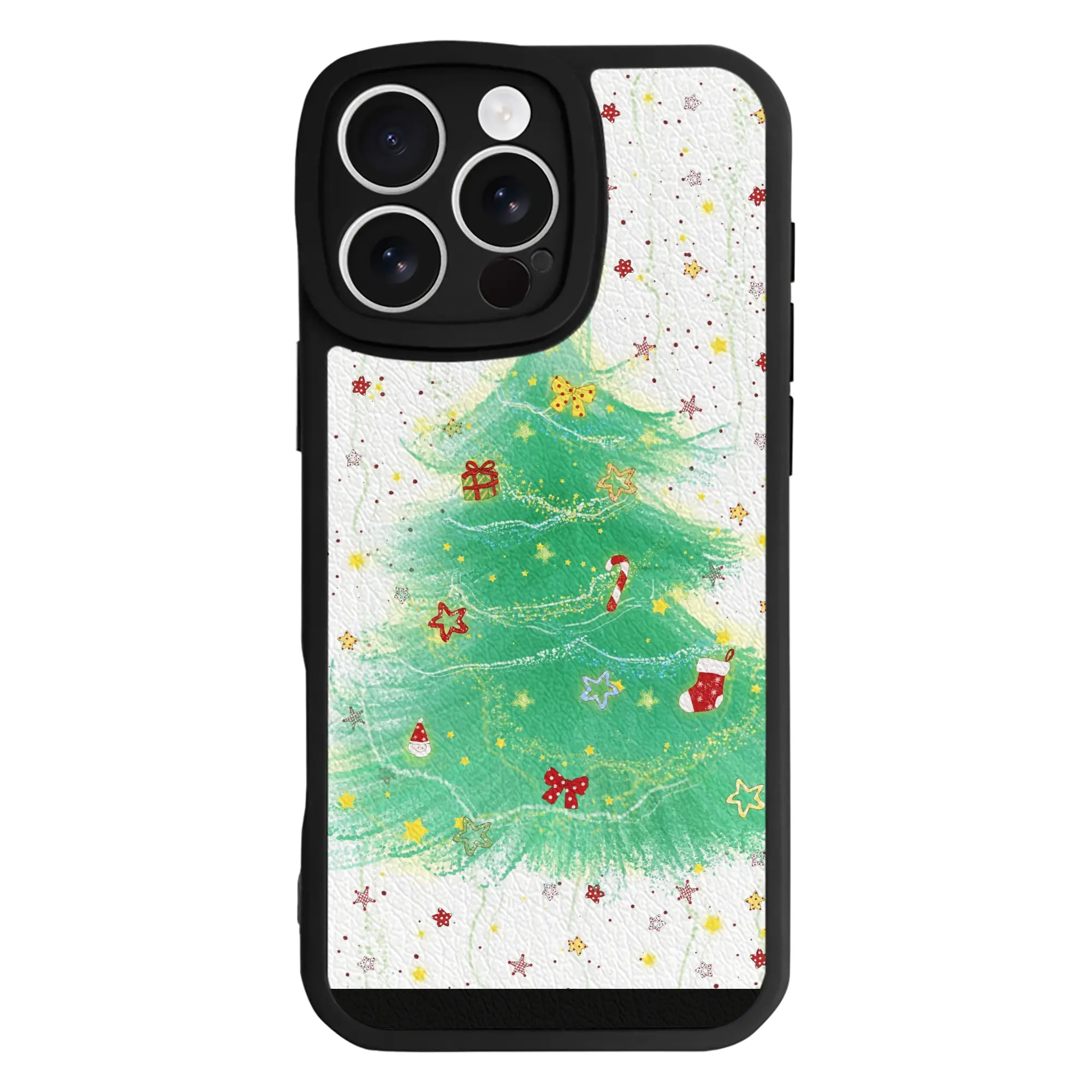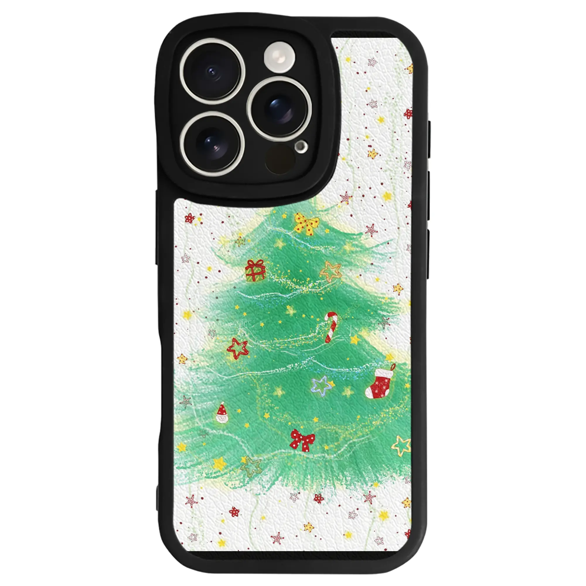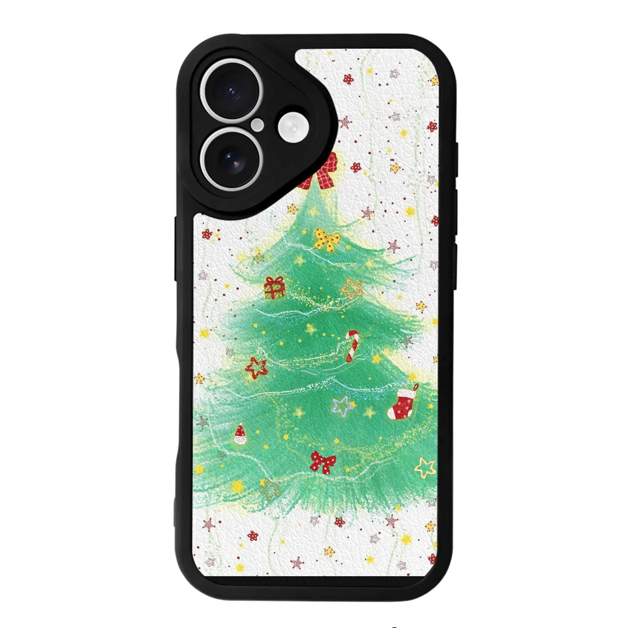 ミニマル緑ツリー|シンプル派に大人気 - IPhone 16シリーズ対応 ・ シリコンスマホケース ・ レザー調 ・ 高精度フィット ・ 耐衝撃 ・ ワイヤレス充電対応 ・ 精密カット