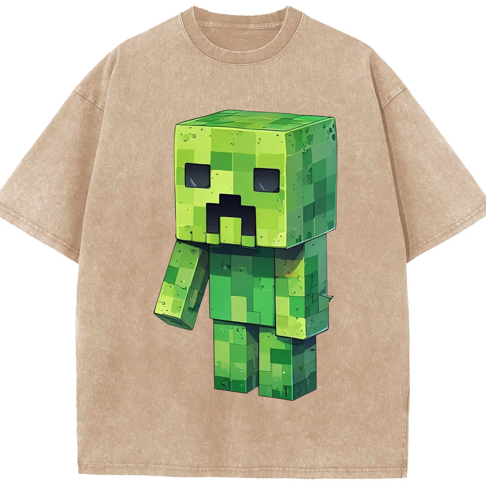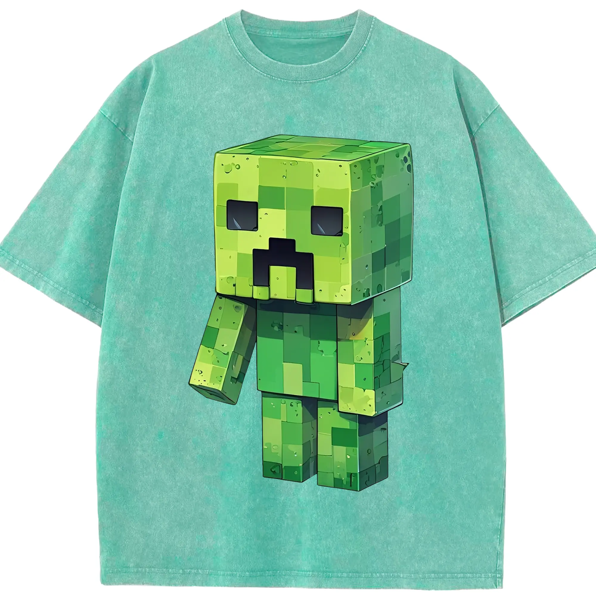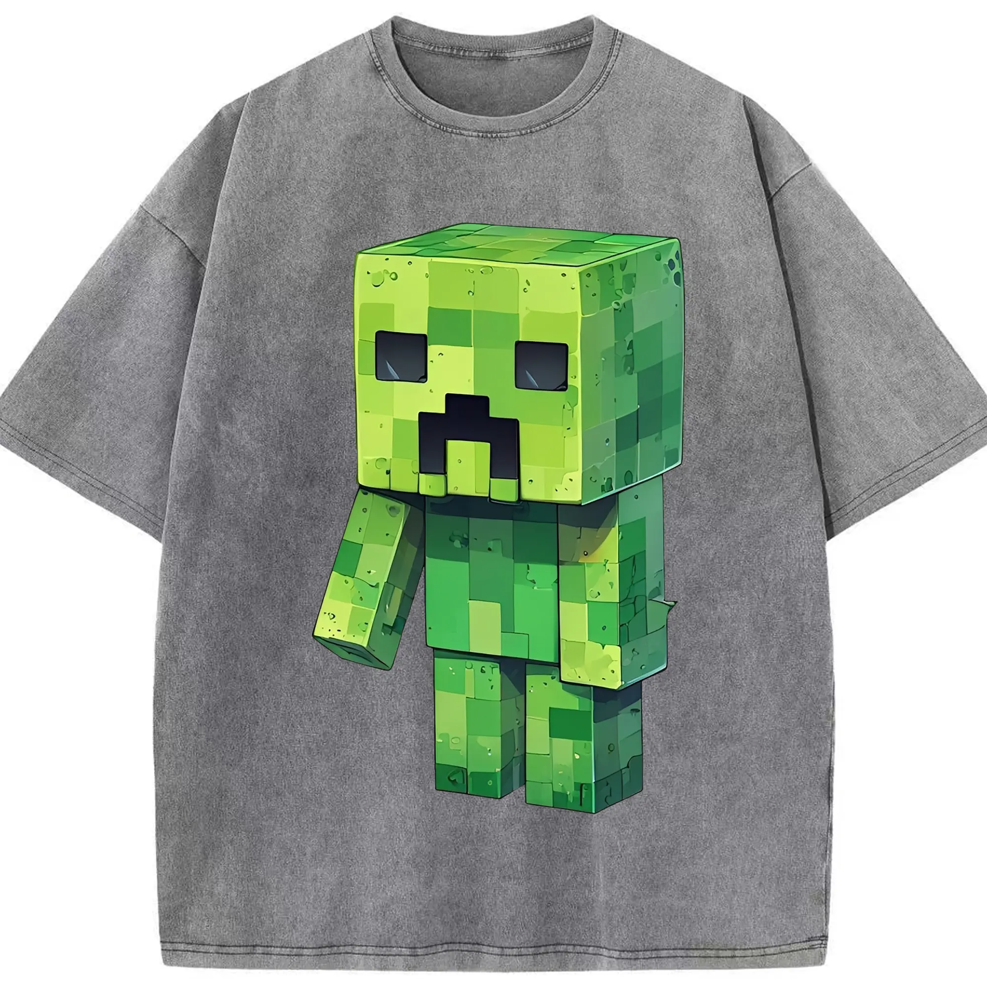 モノトーン マインクラフト クール - 綿100% 半袖Tシャツ ・ フロントプリント ・ 快適 通気性 ・ 日常使い 散歩 スポーツ用