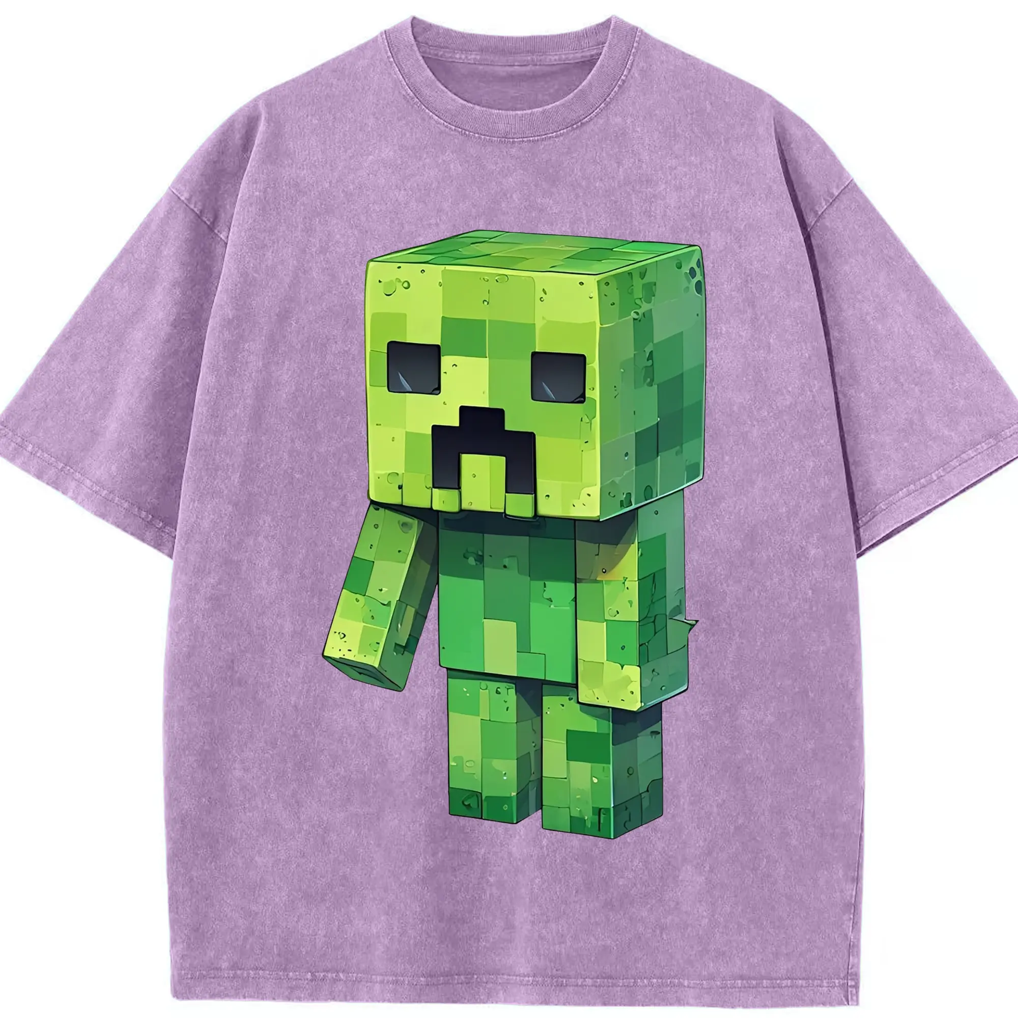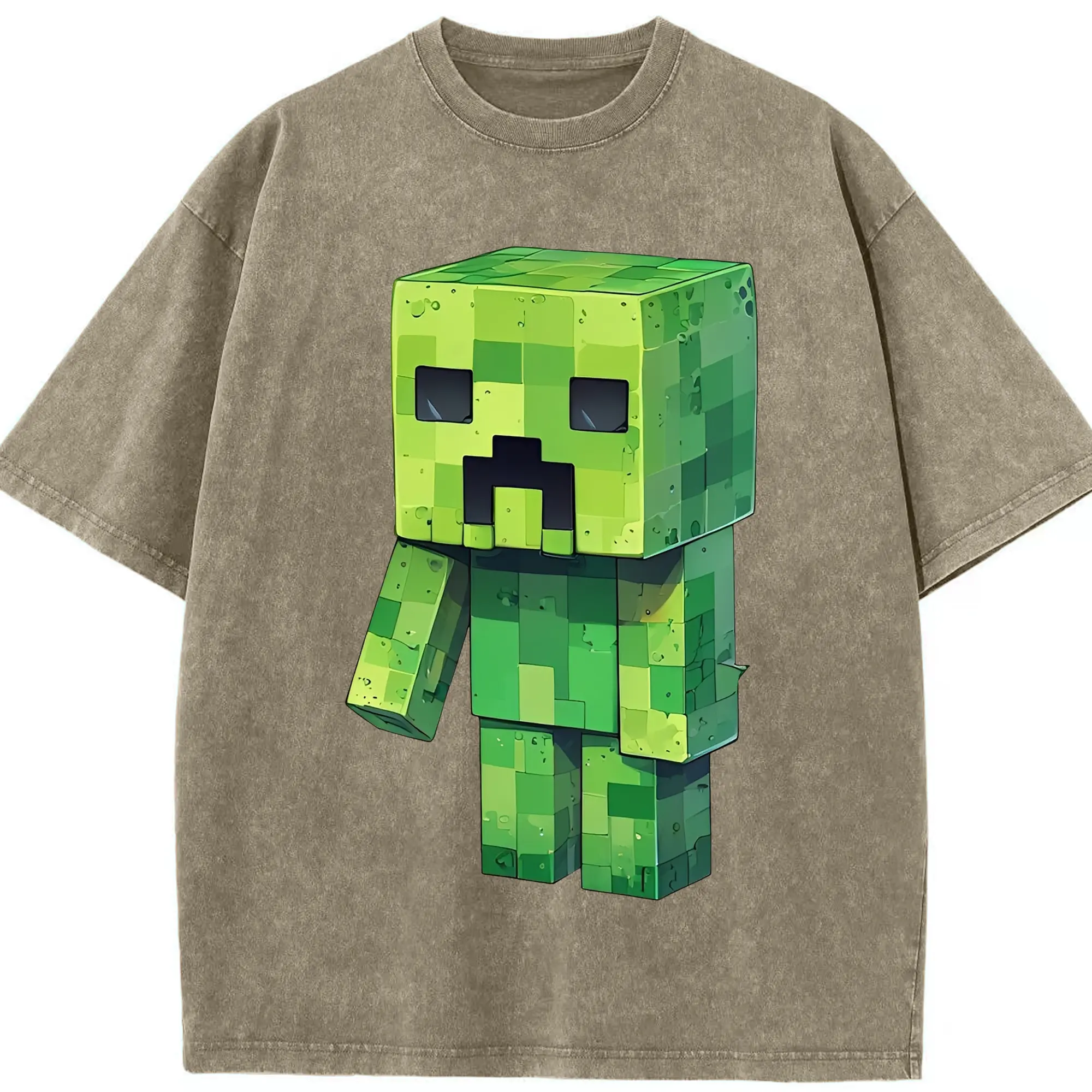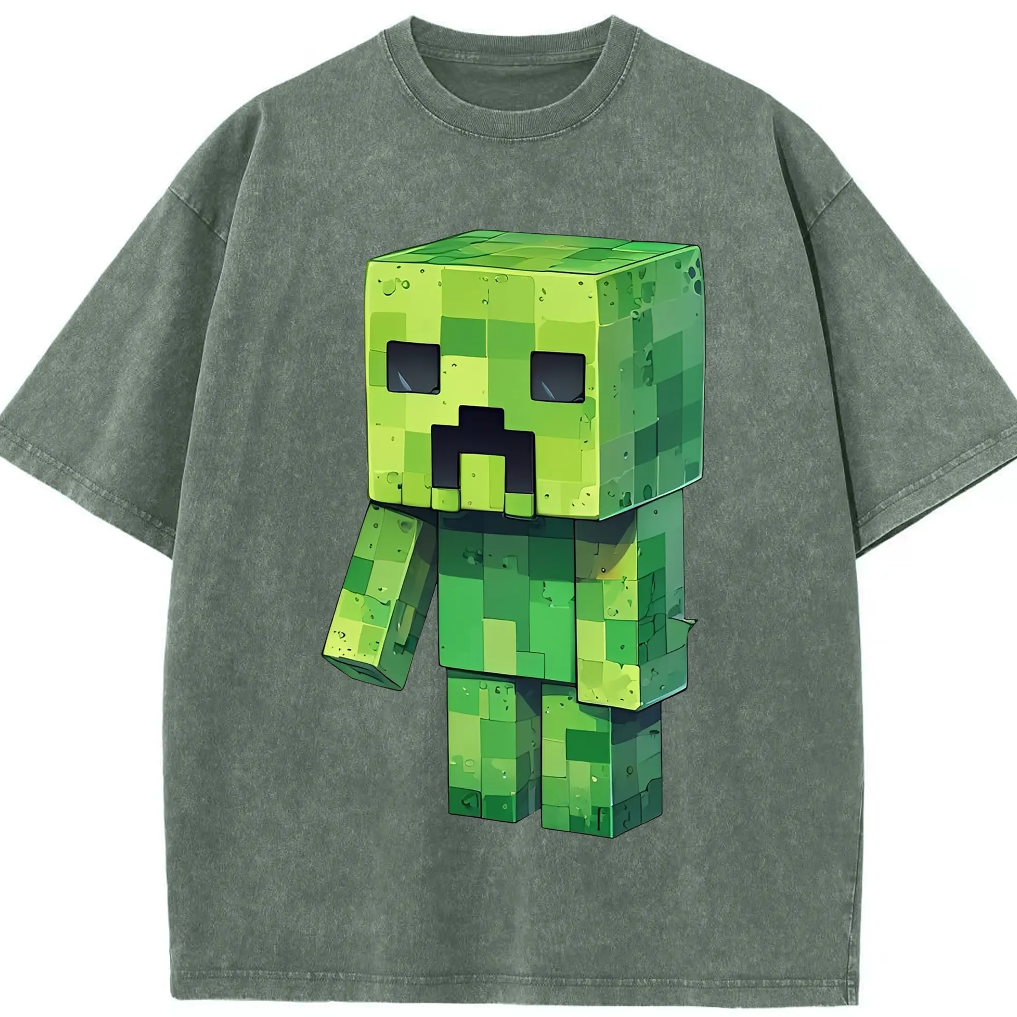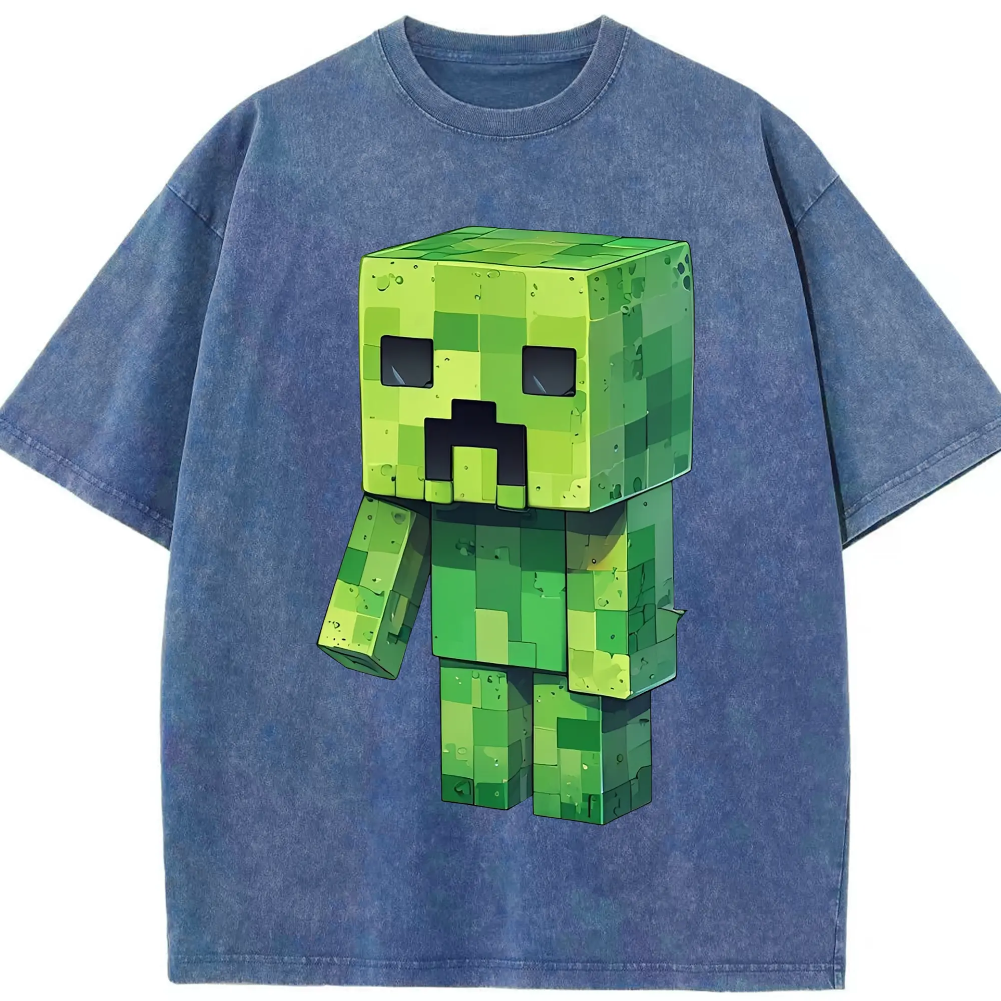 モノトーン マインクラフト クール - 綿100% 半袖Tシャツ ・ フロントプリント ・ 快適 通気性 ・ 日常使い 散歩 スポーツ用