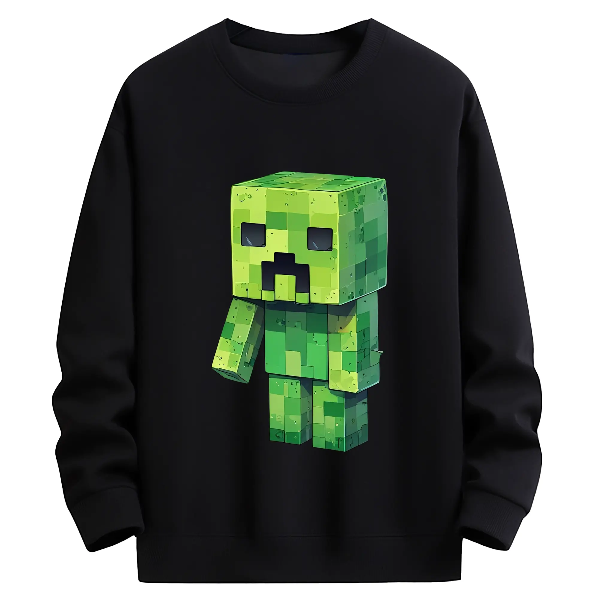 モノトーン マインクラフト クール - 綿100% 半袖Tシャツ ・ フロントプリント ・ 快適 通気性 ・ 日常使い 散歩 スポーツ用