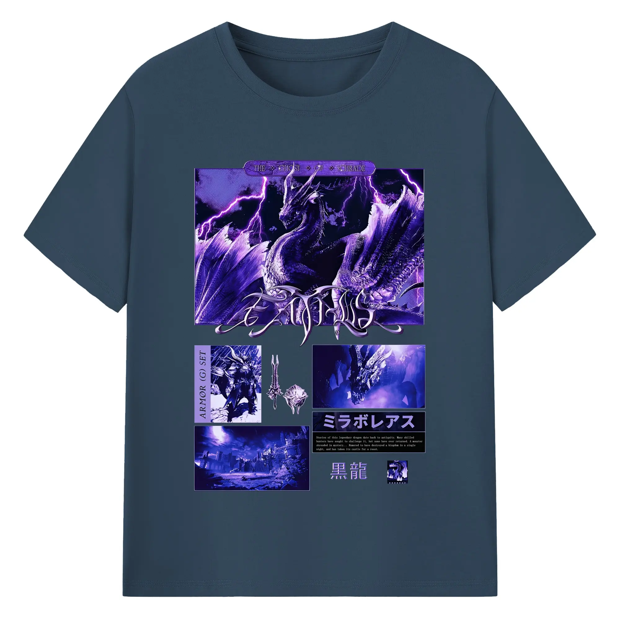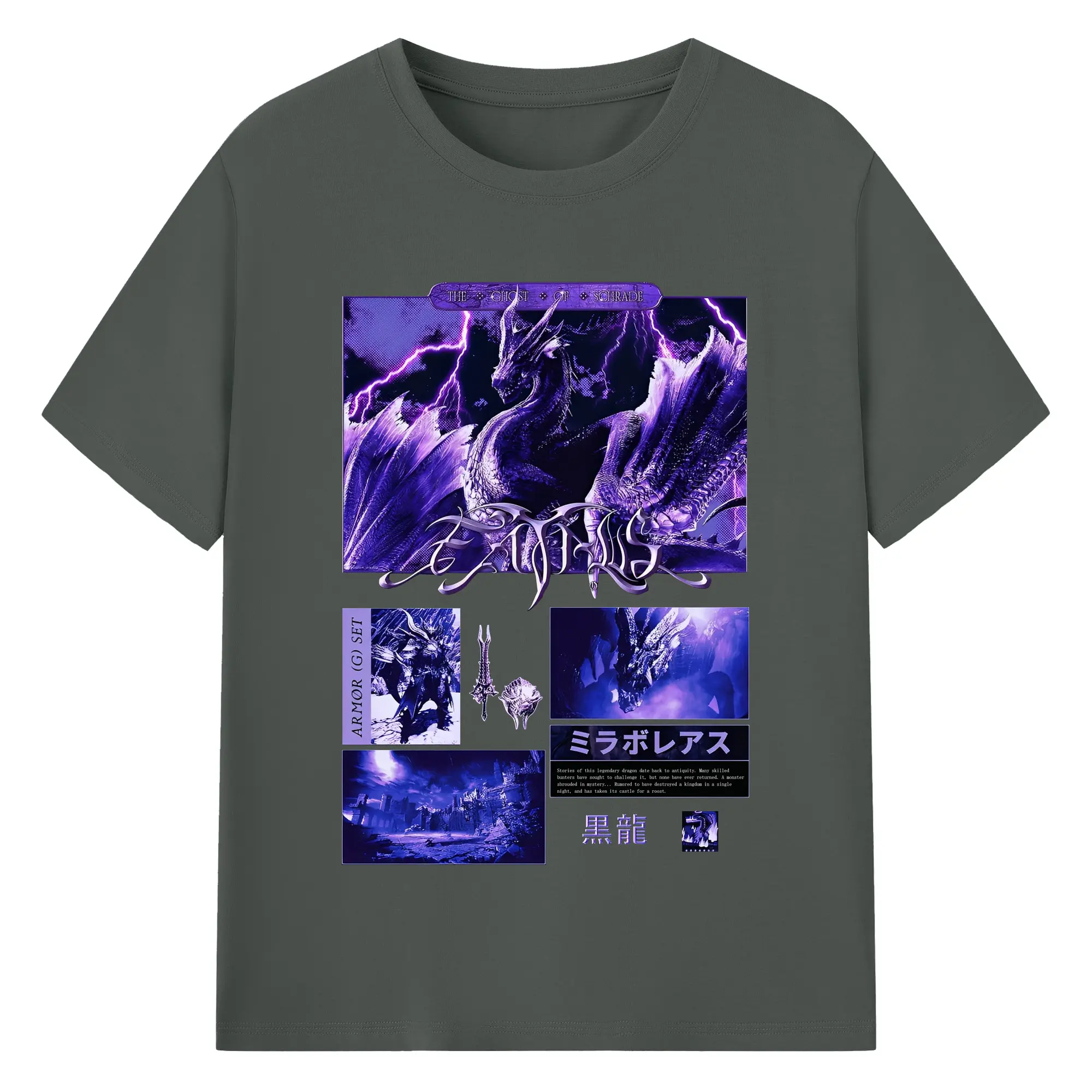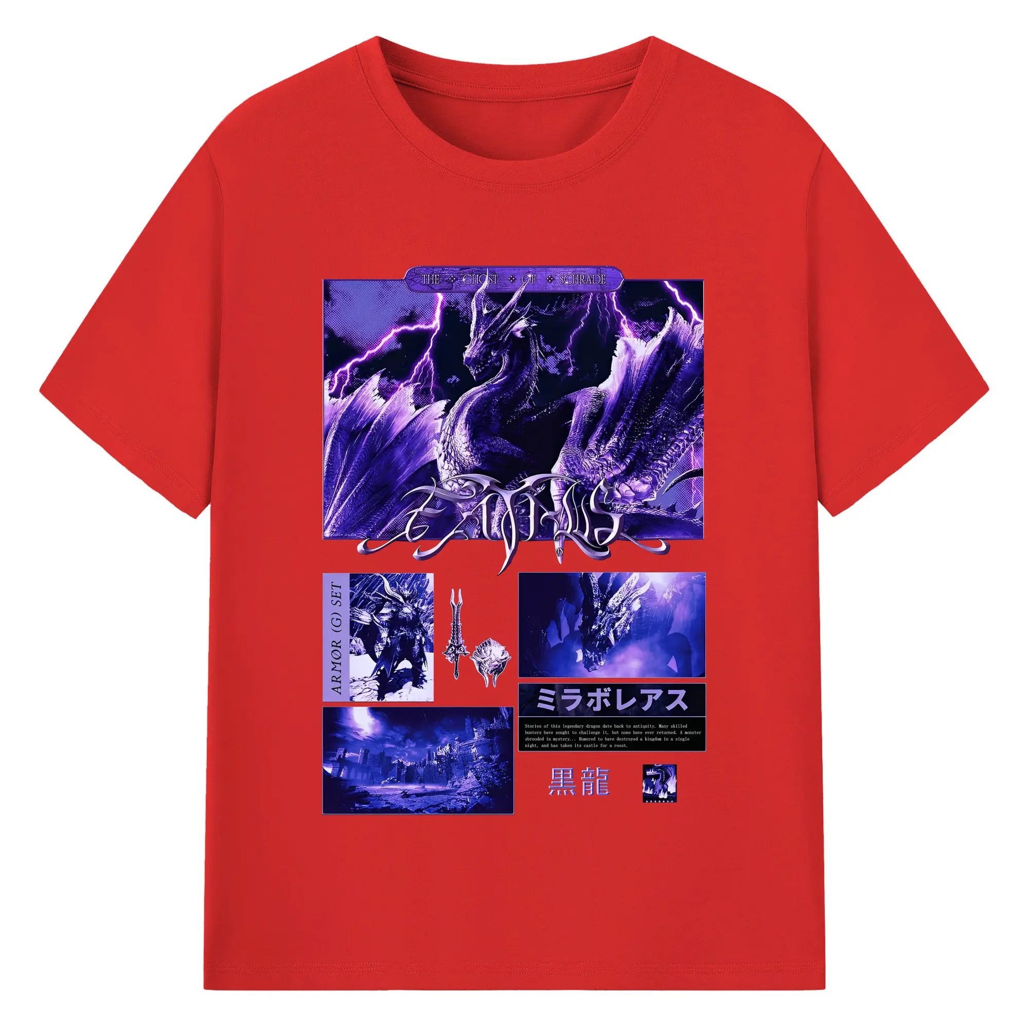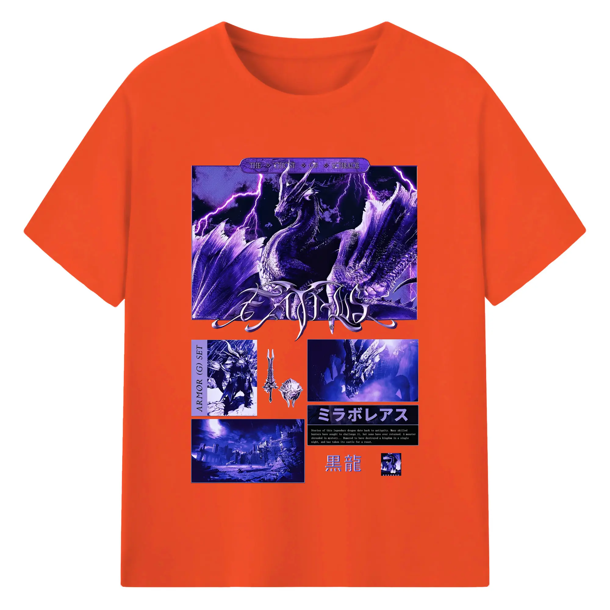 モンスターハンター ミラボレアス 伝説の黒龍デザイン - 綿100% ヴィンテージ風 半袖Tシャツ ・ フロントプリント ・ 柔らか肌触り ・ 通気性 快適 ・ スポーツ カジュアル 外出用