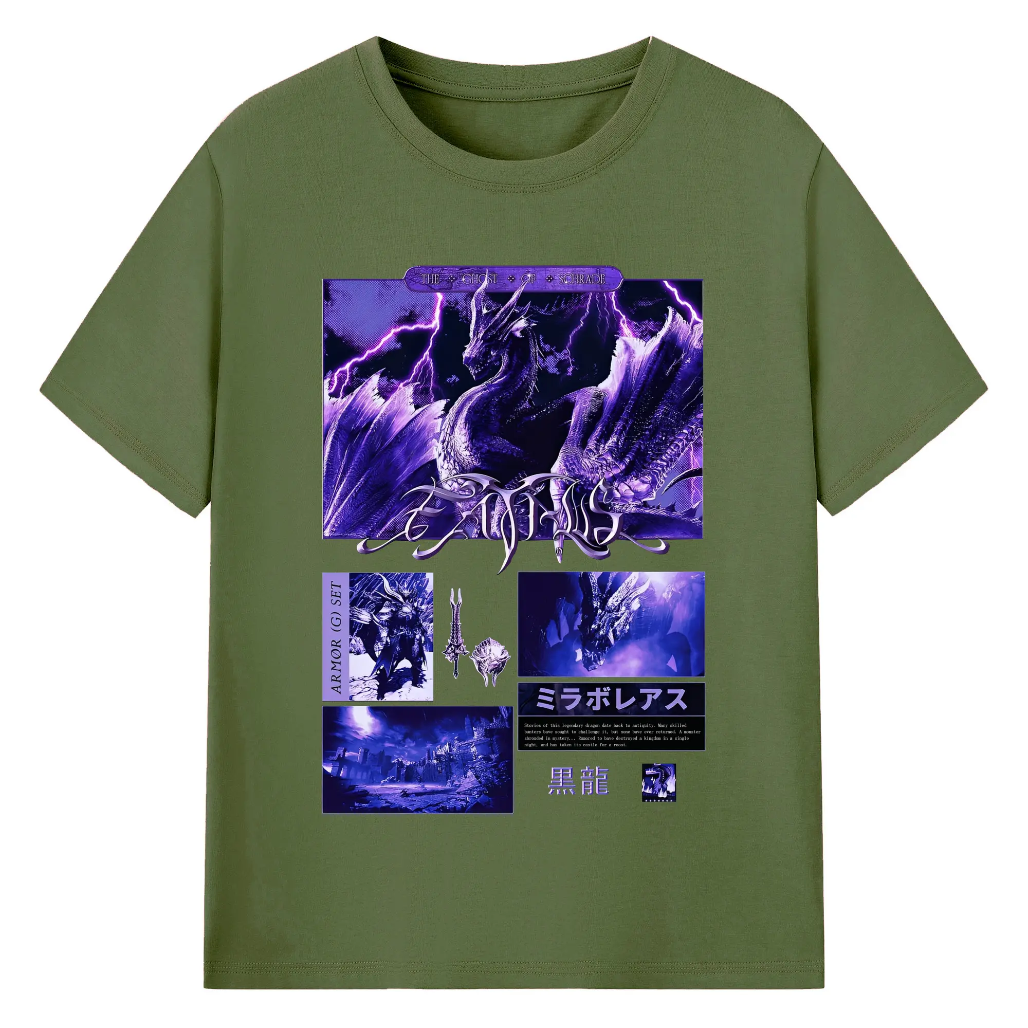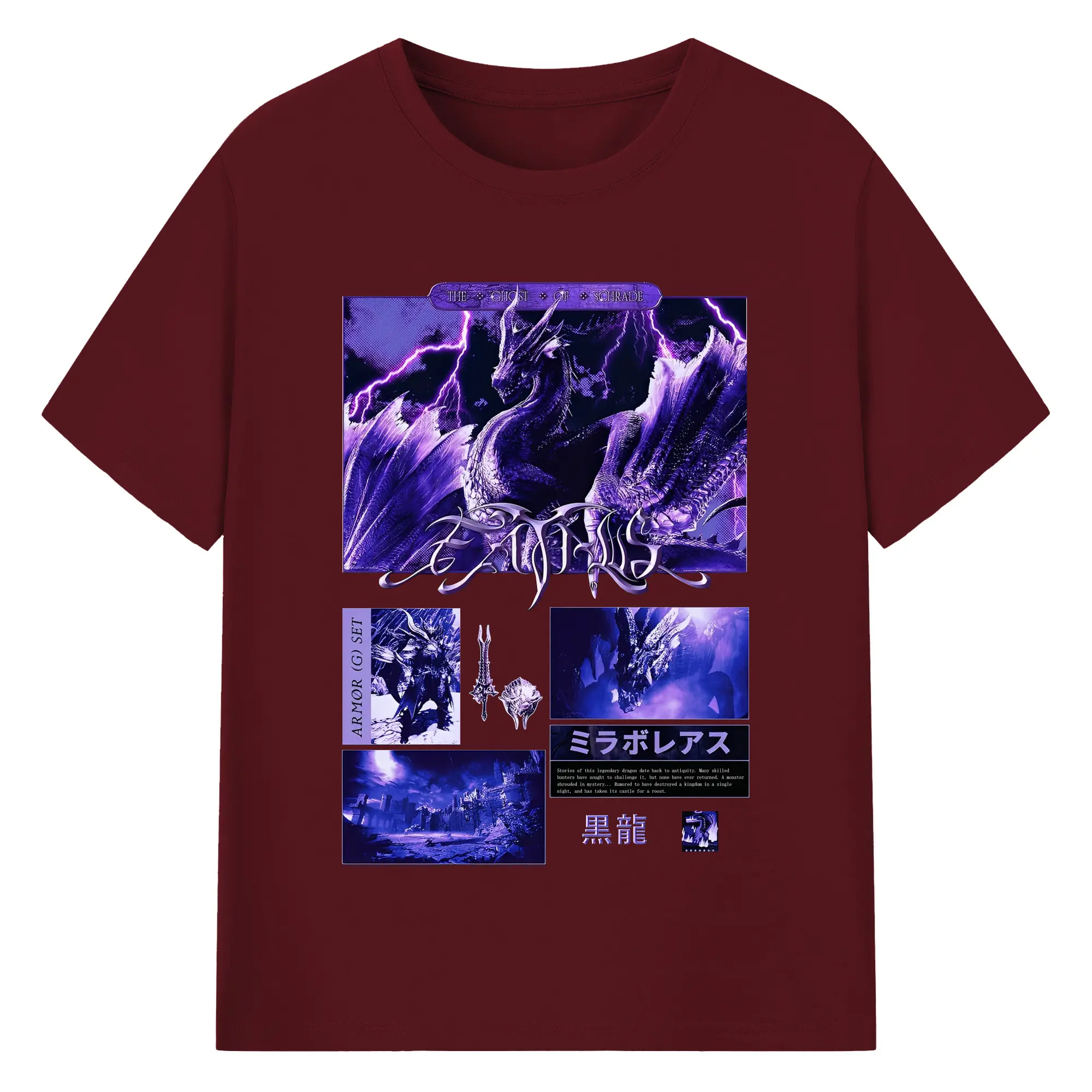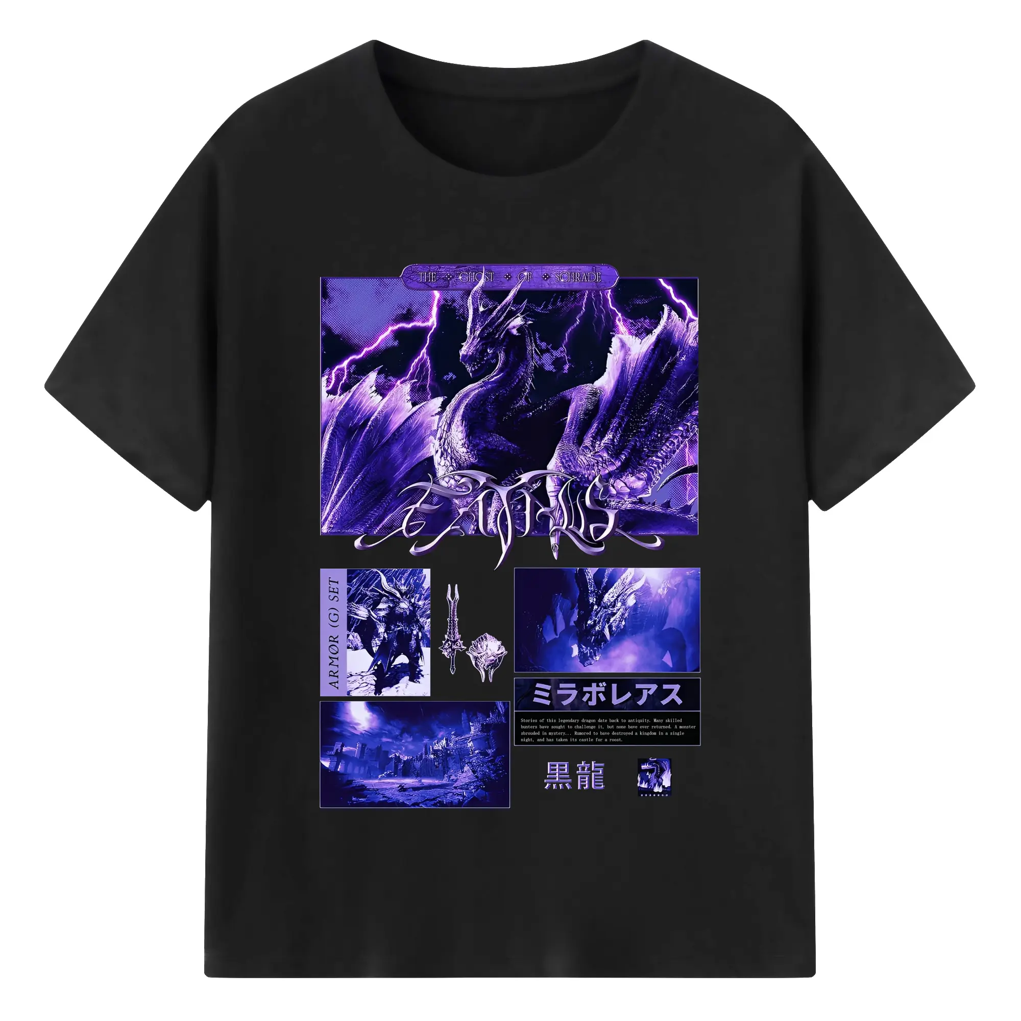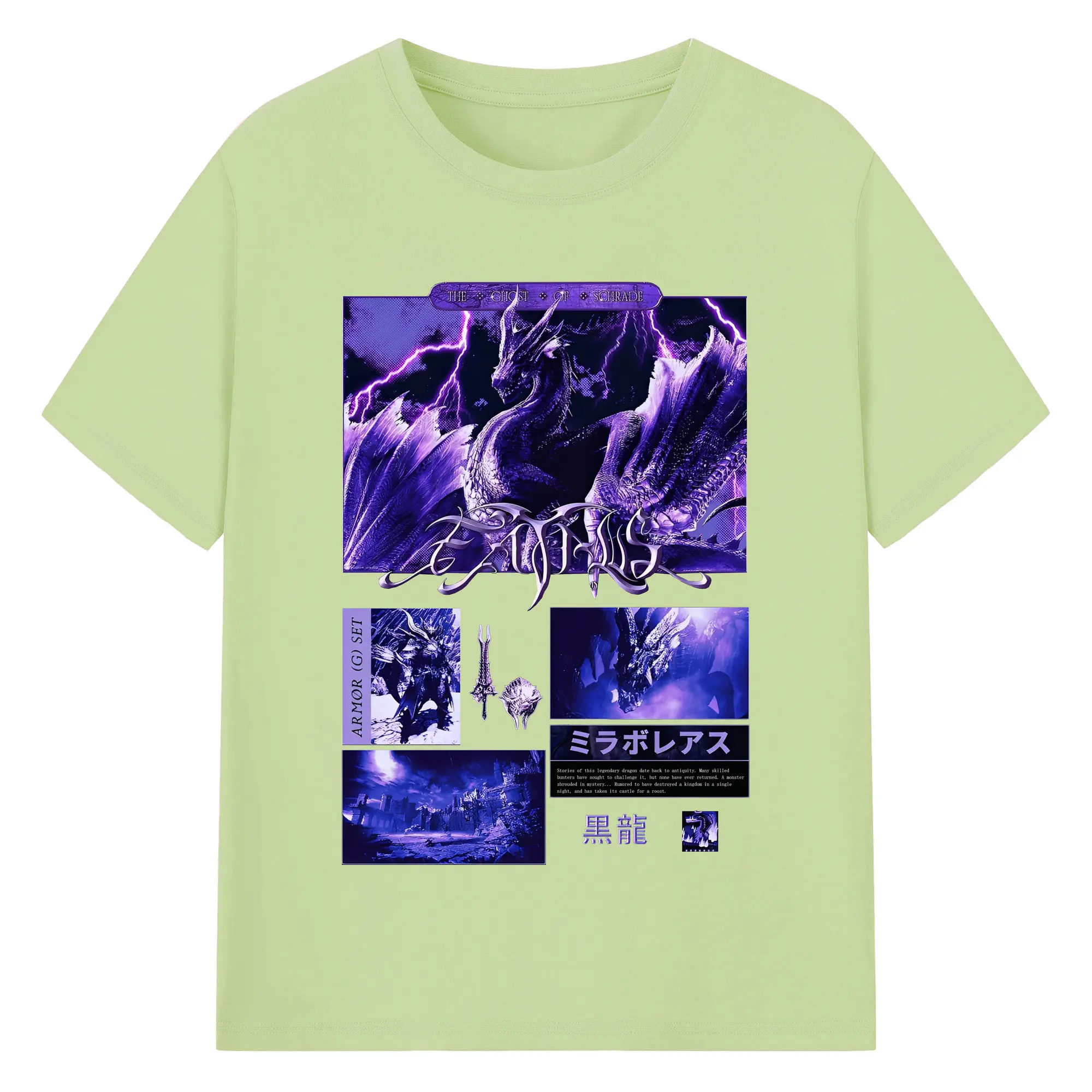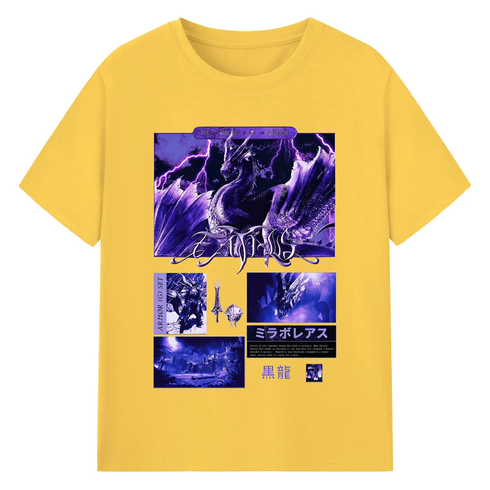 モンスターハンター ミラボレアス 伝説の黒龍デザイン - 綿100% ヴィンテージ風 半袖Tシャツ ・ フロントプリント ・ 柔らか肌触り ・ 通気性 快適 ・ スポーツ カジュアル 外出用