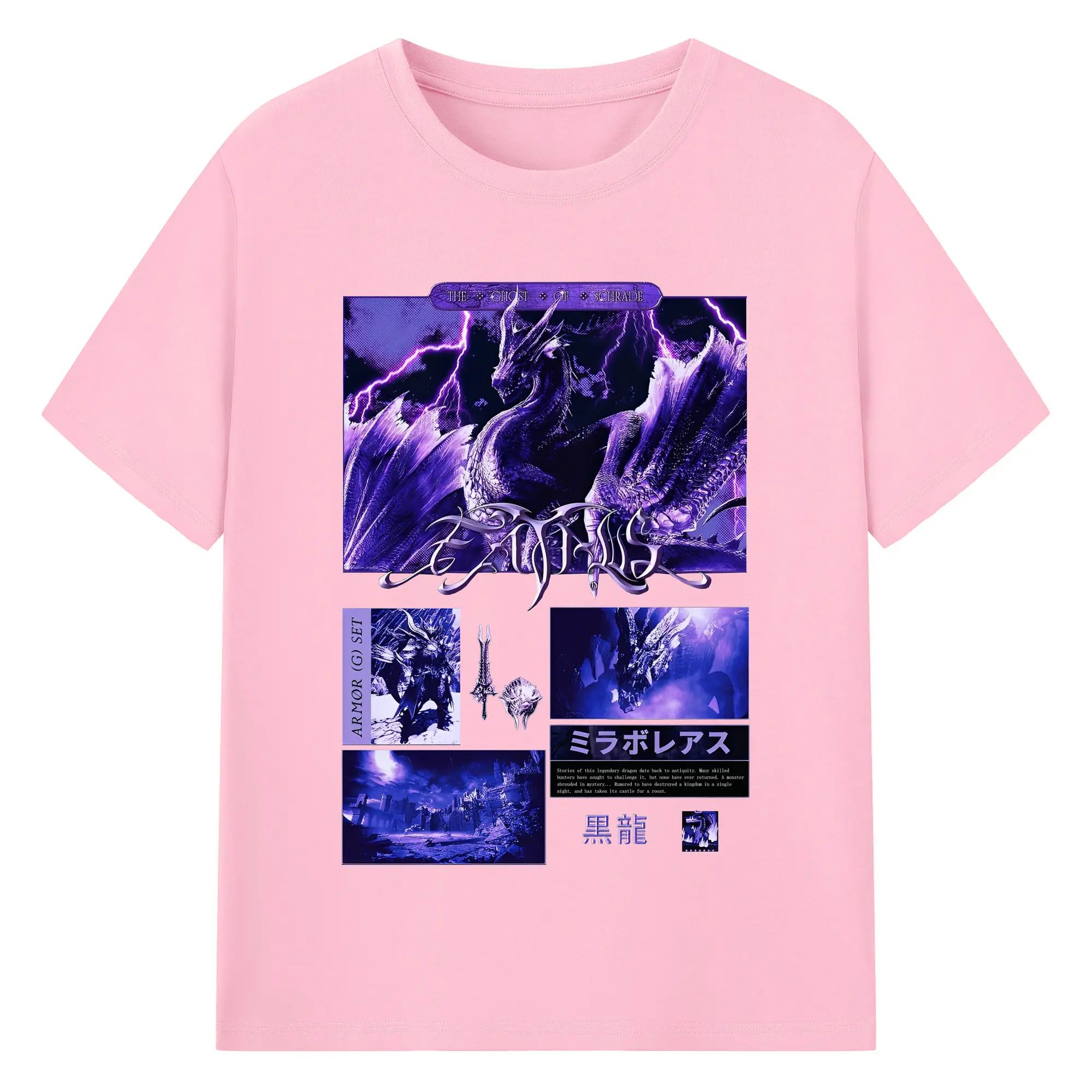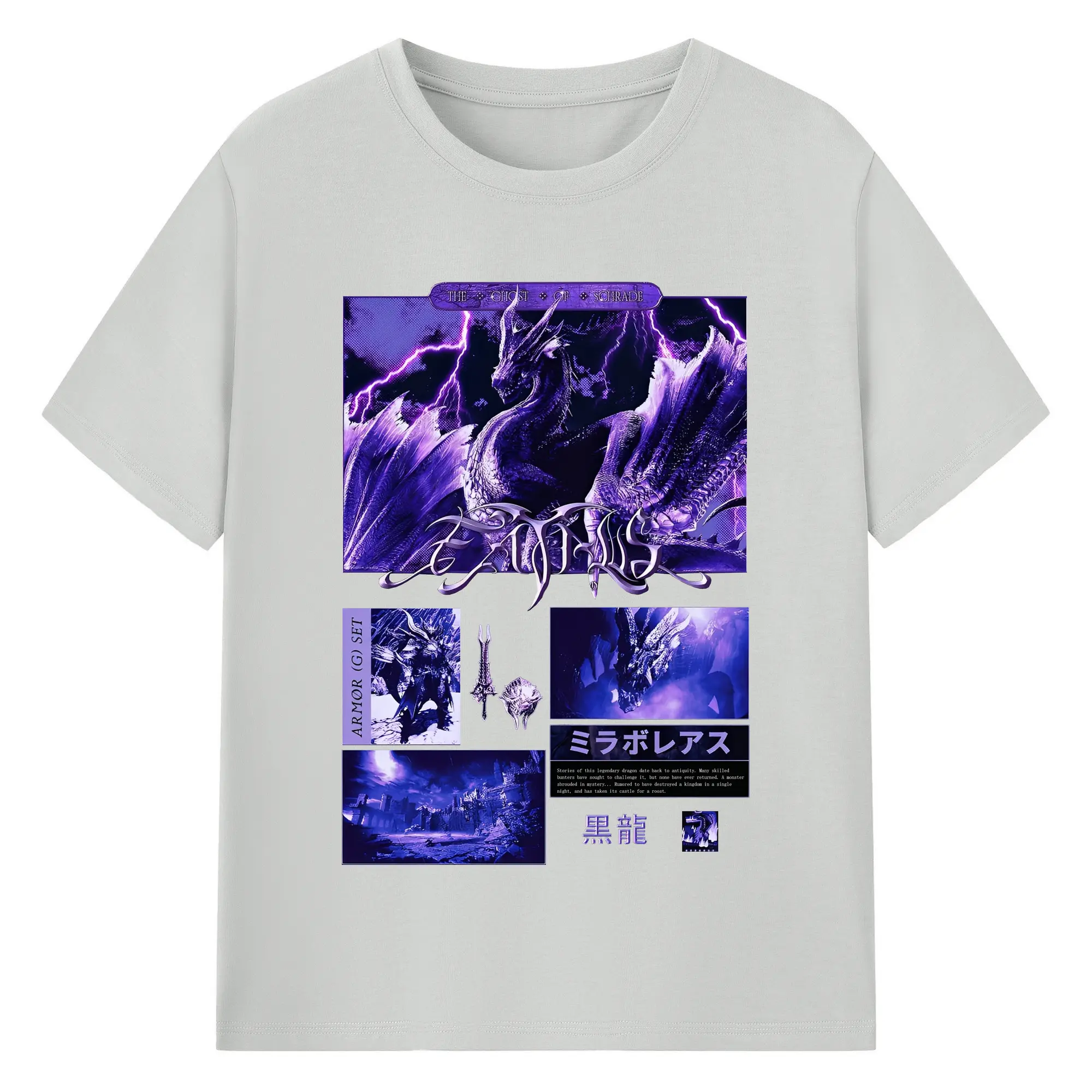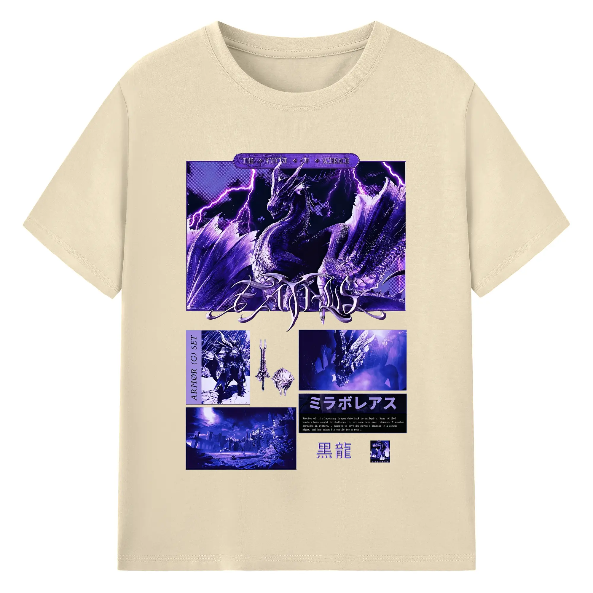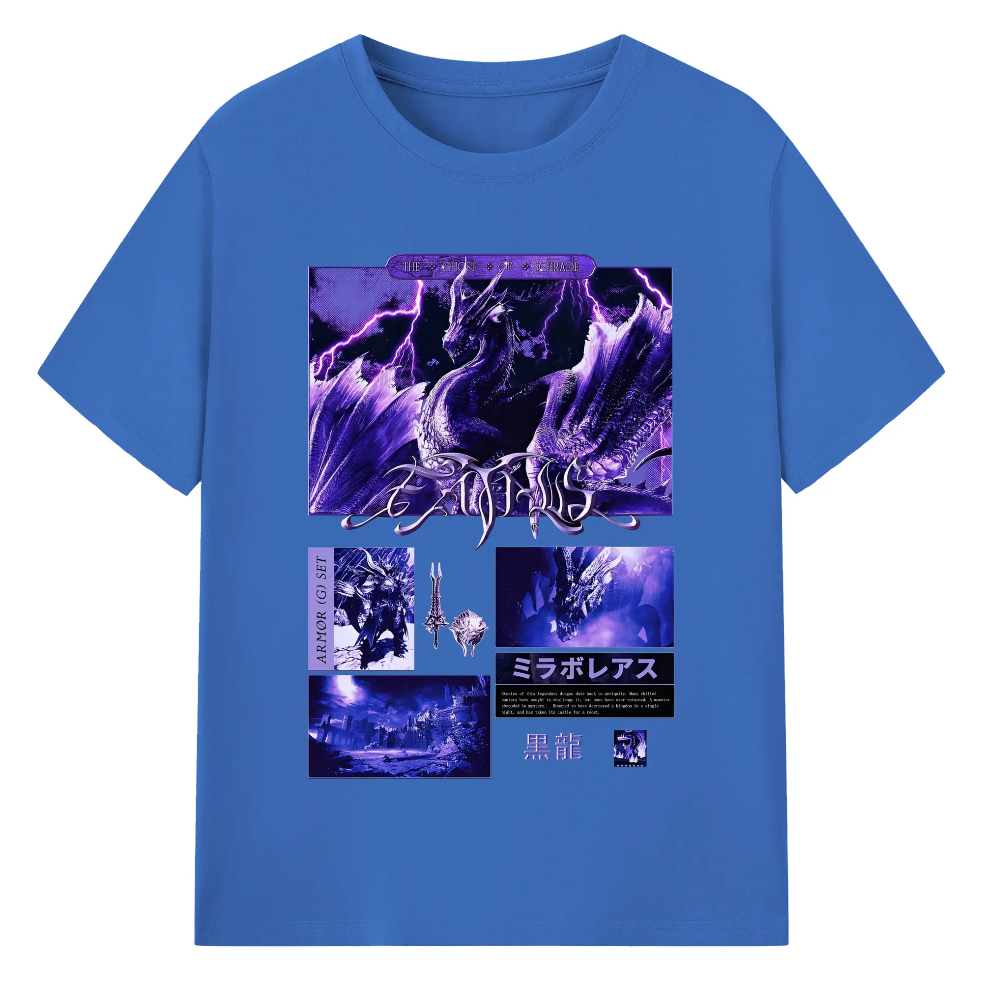 モンスターハンター ミラボレアス 伝説の黒龍デザイン - 綿100% ヴィンテージ風 半袖Tシャツ ・ フロントプリント ・ 柔らか肌触り ・ 通気性 快適 ・ スポーツ カジュアル 外出用