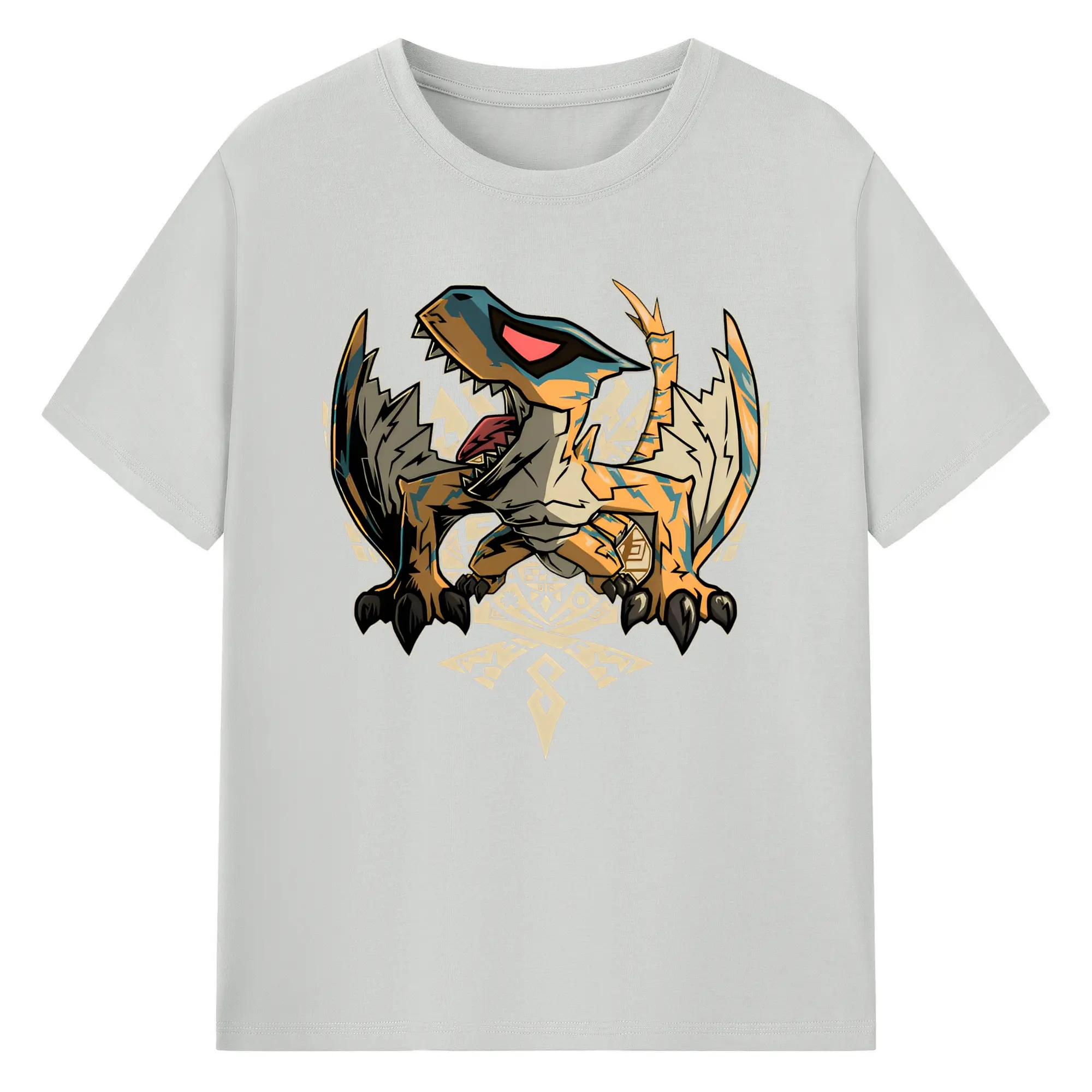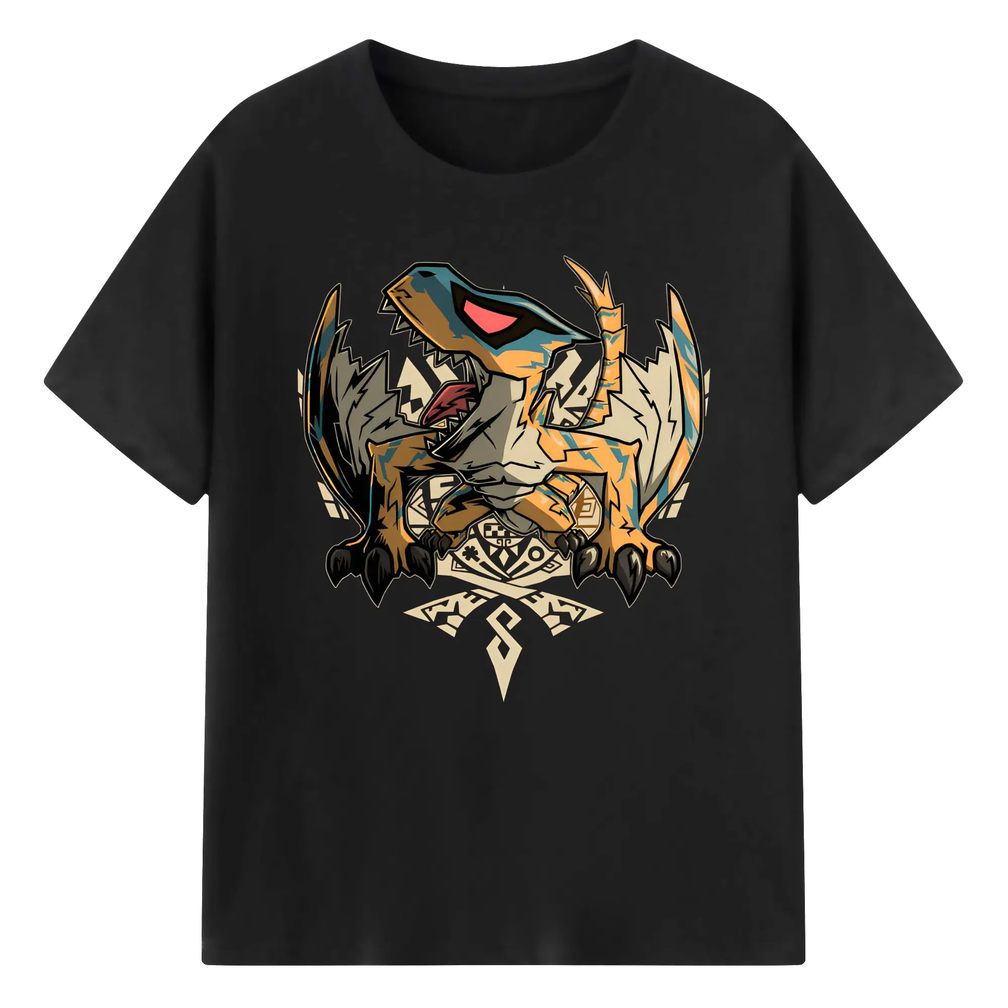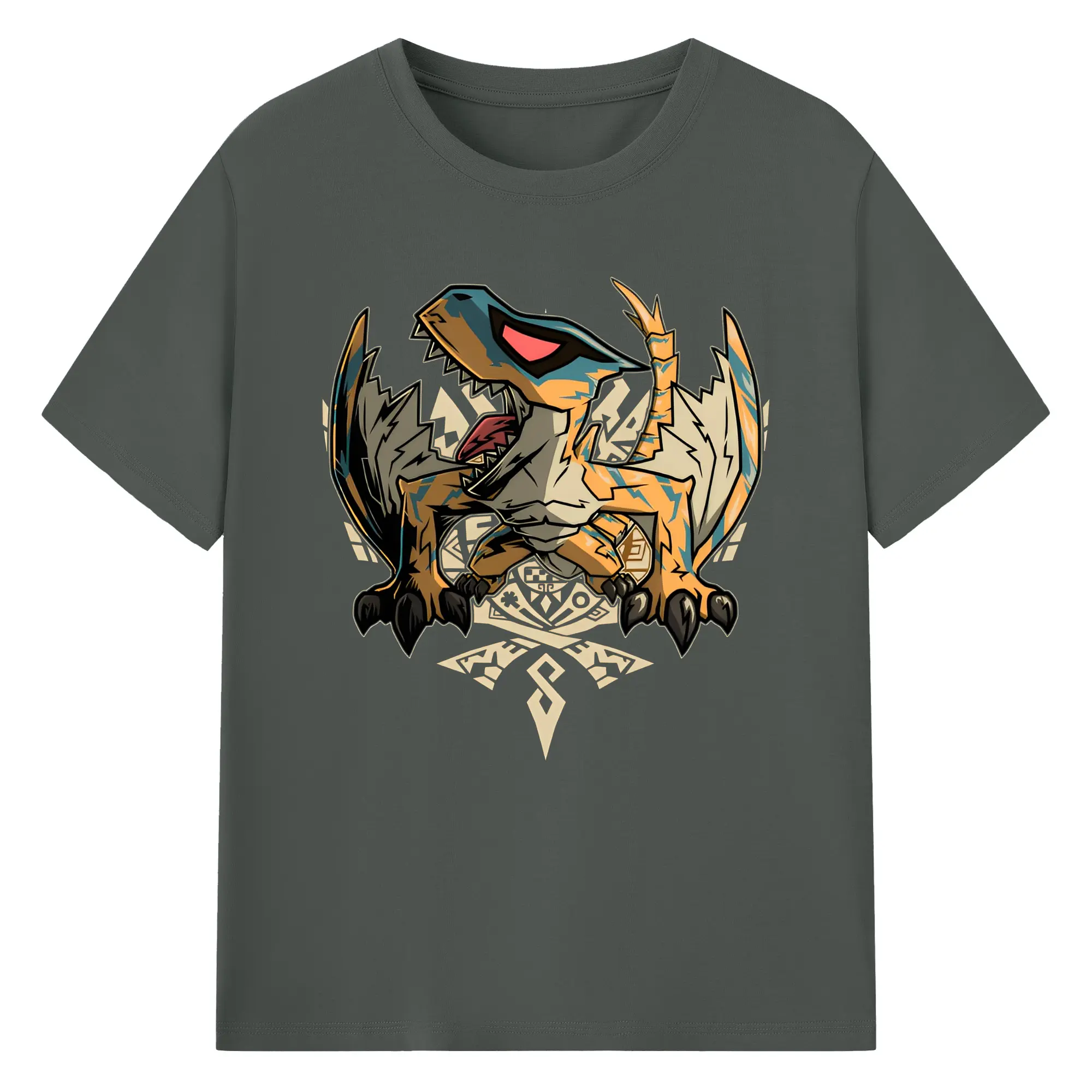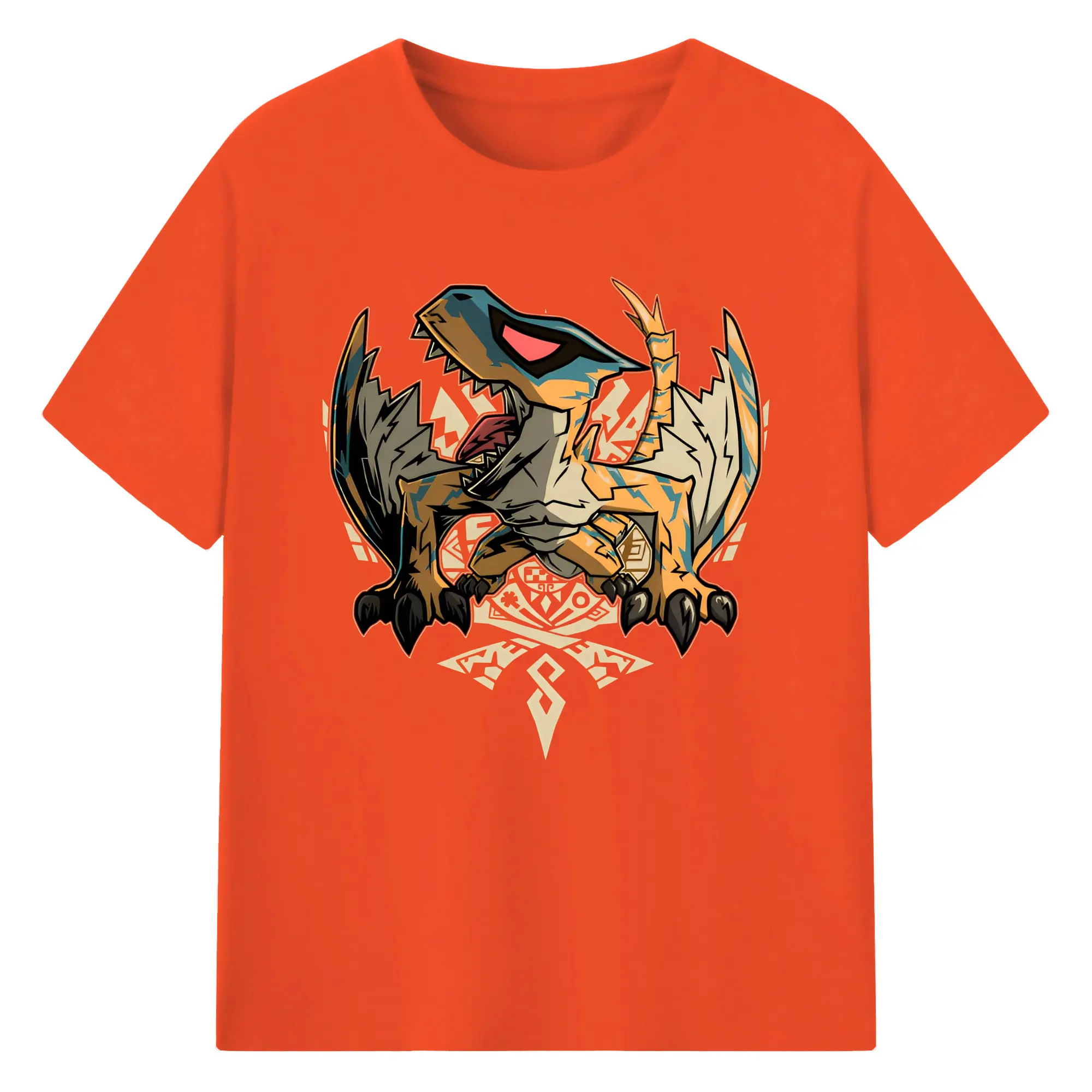 怒涛の火炎ブレス!リオレウス ド迫力デザイン - 綿100% 半袖Tシャツ ・ フロントプリント ・ 快適 通気性 ・ 日常使い 散歩 スポーツ用