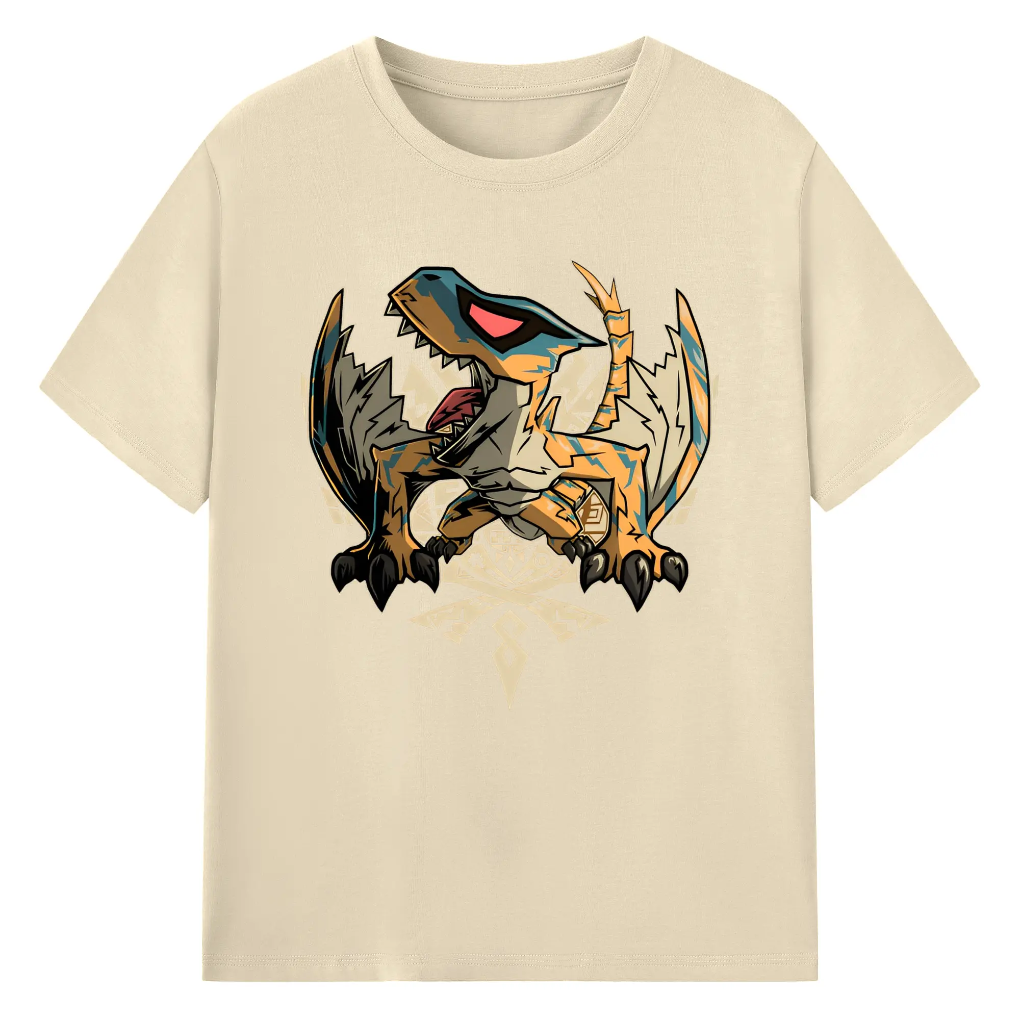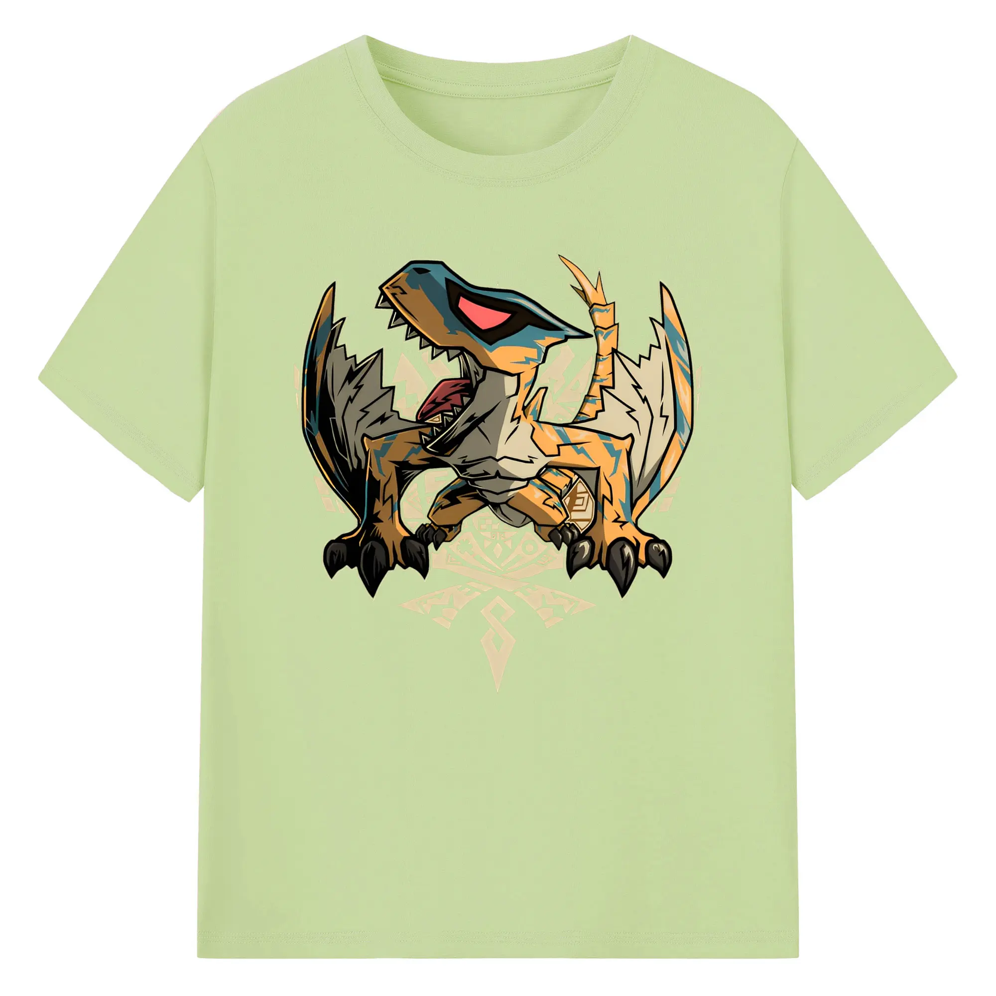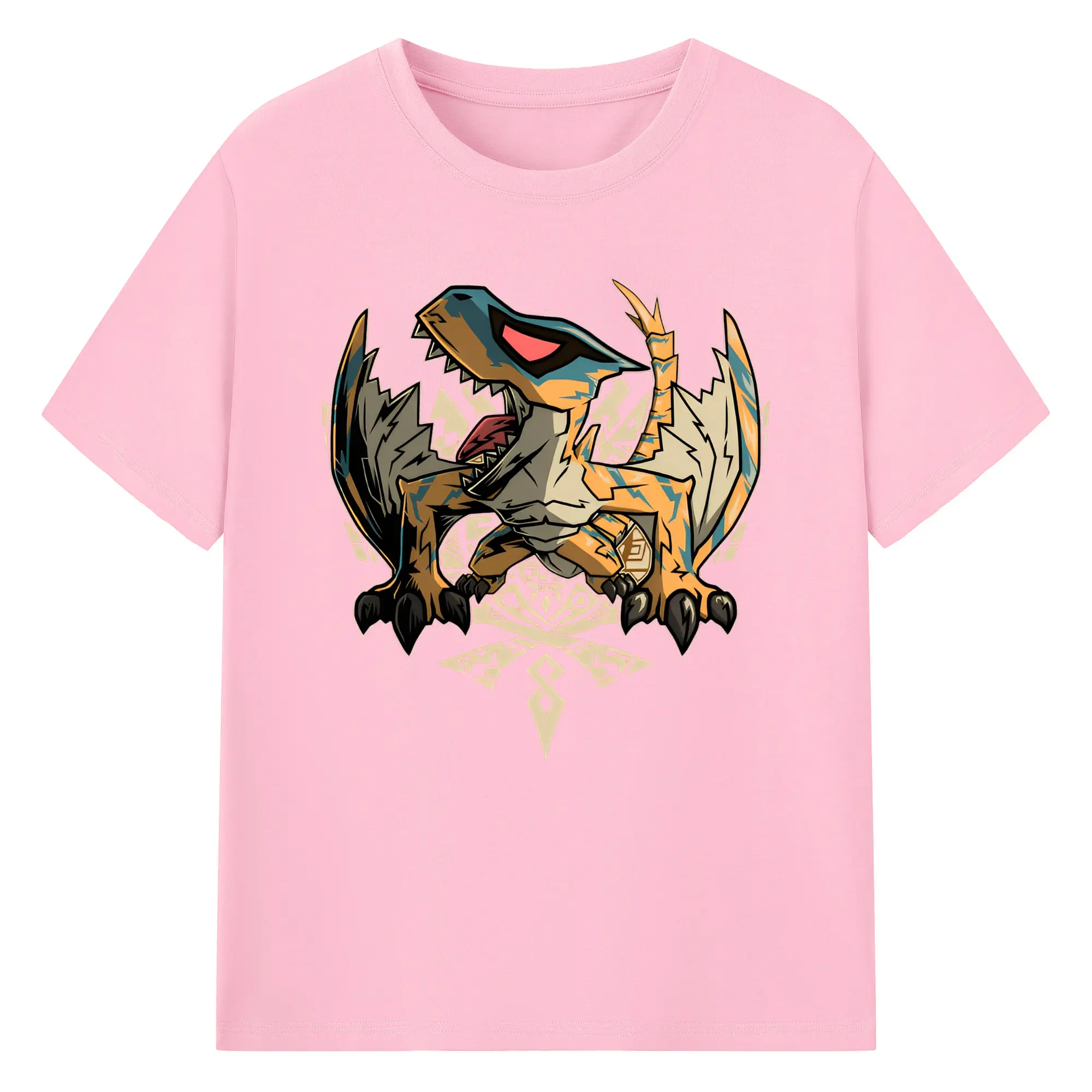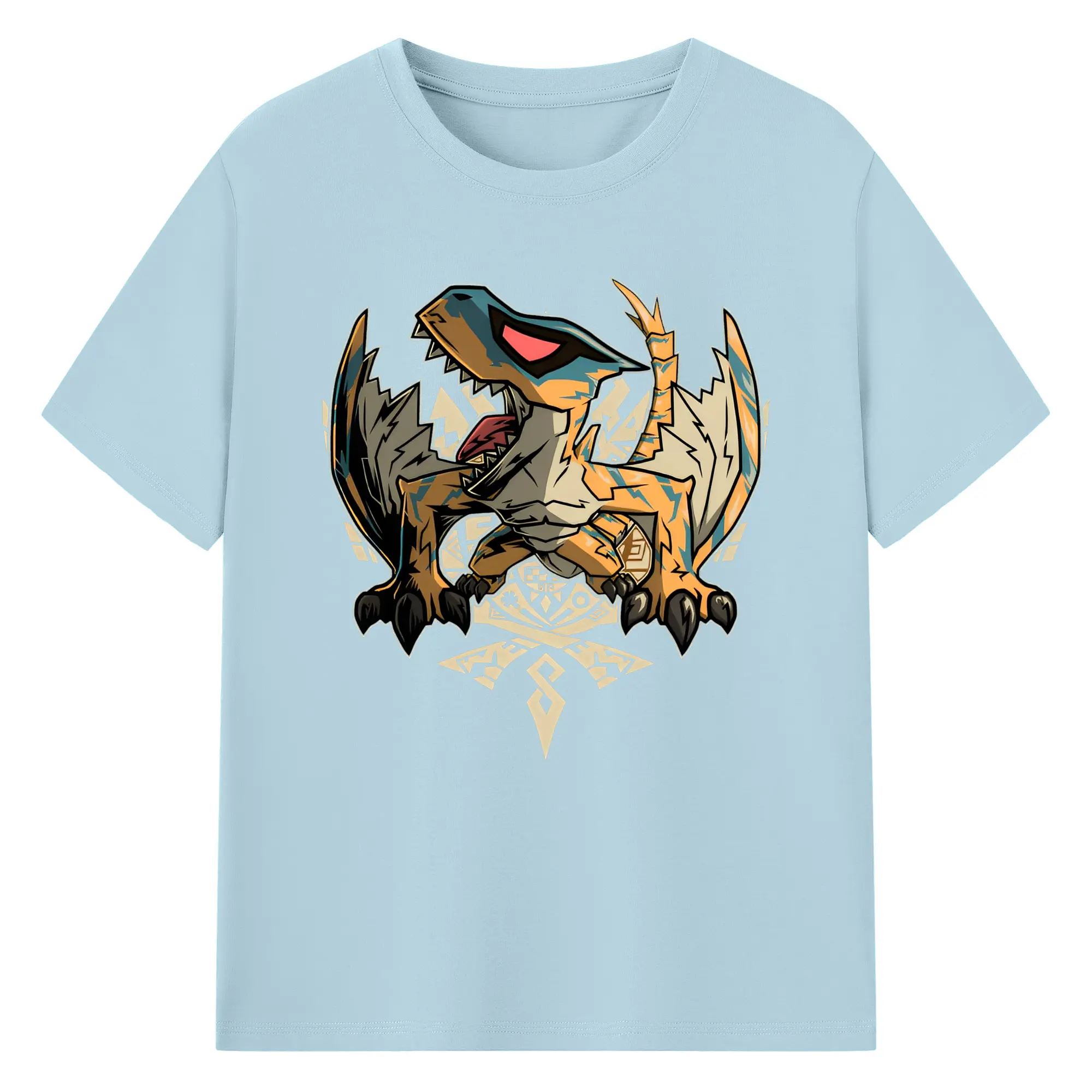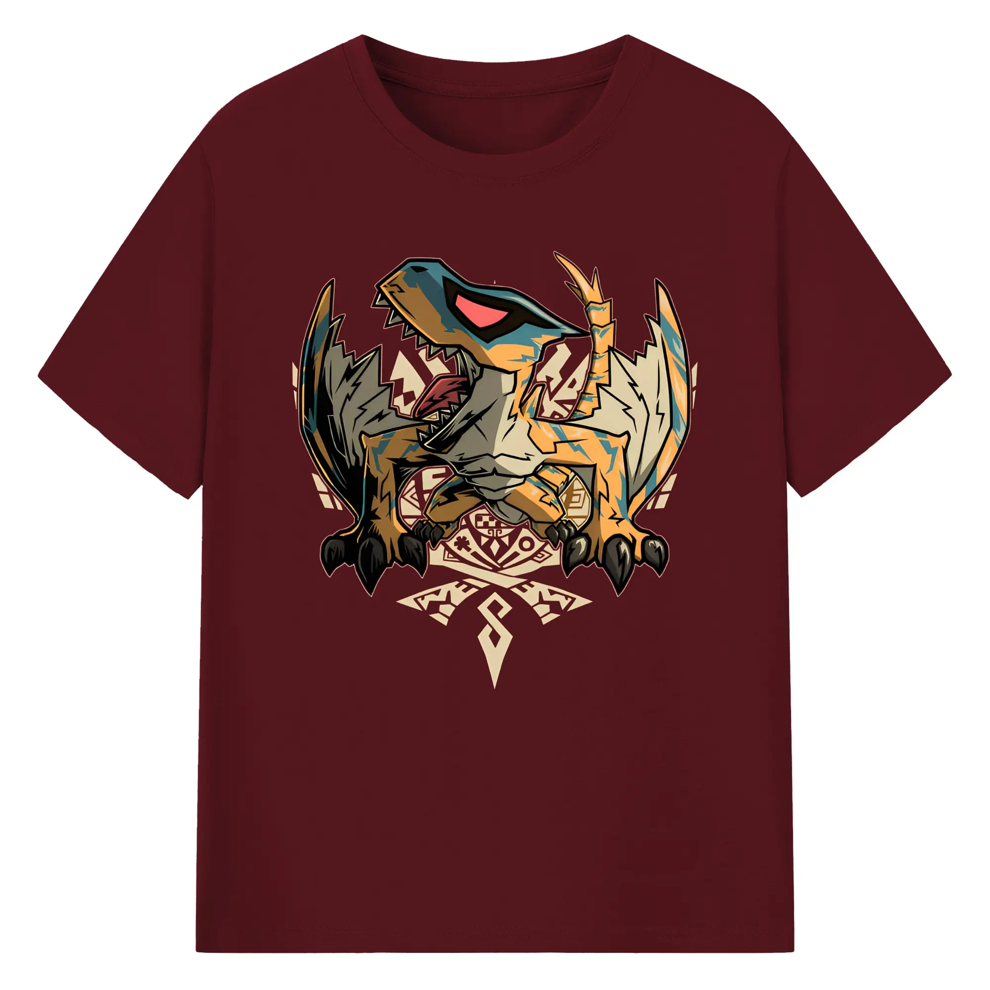 怒涛の火炎ブレス!リオレウス ド迫力デザイン - 綿100% 半袖Tシャツ ・ フロントプリント ・ 快適 通気性 ・ 日常使い 散歩 スポーツ用