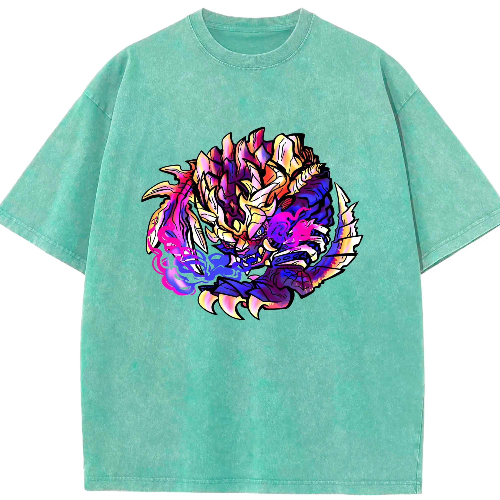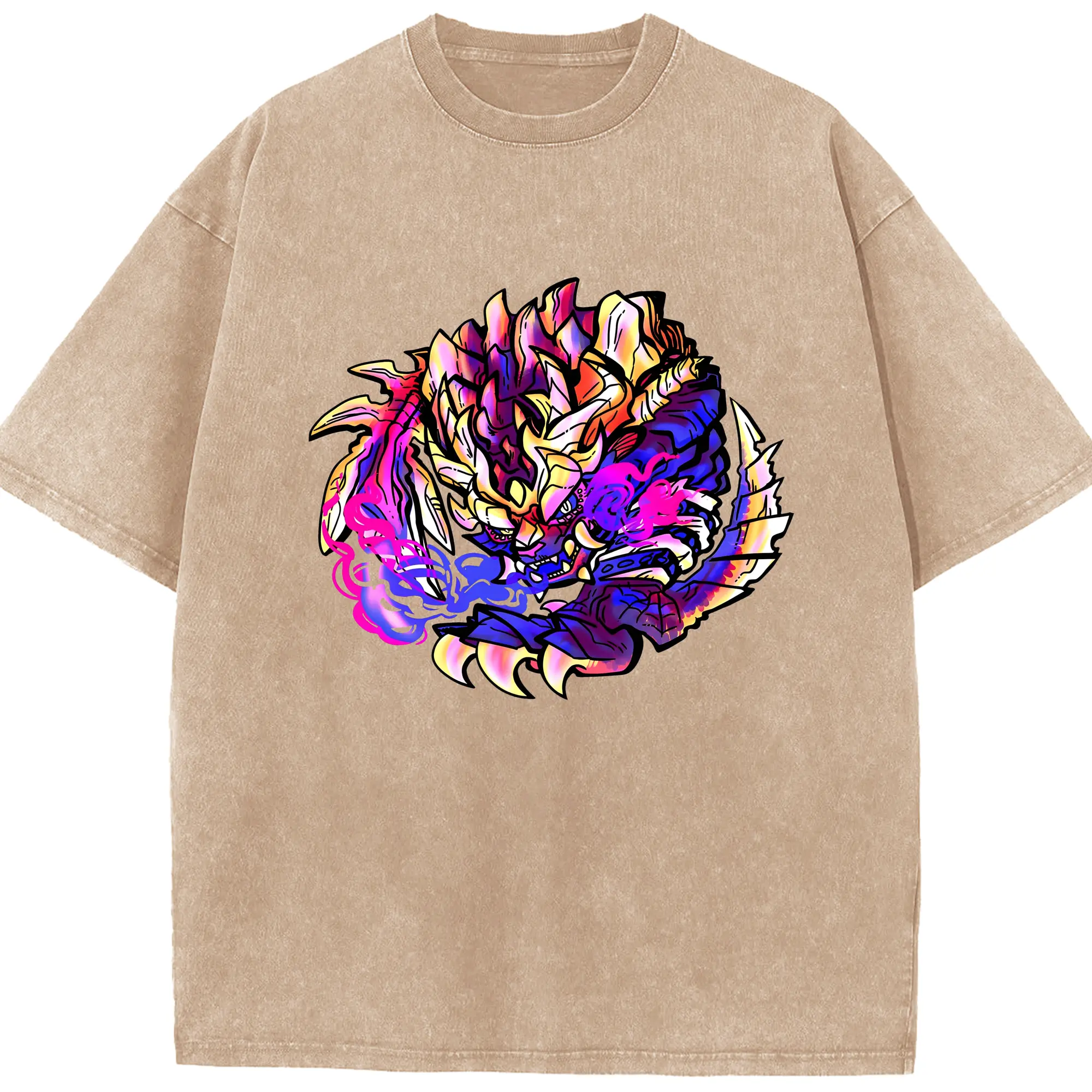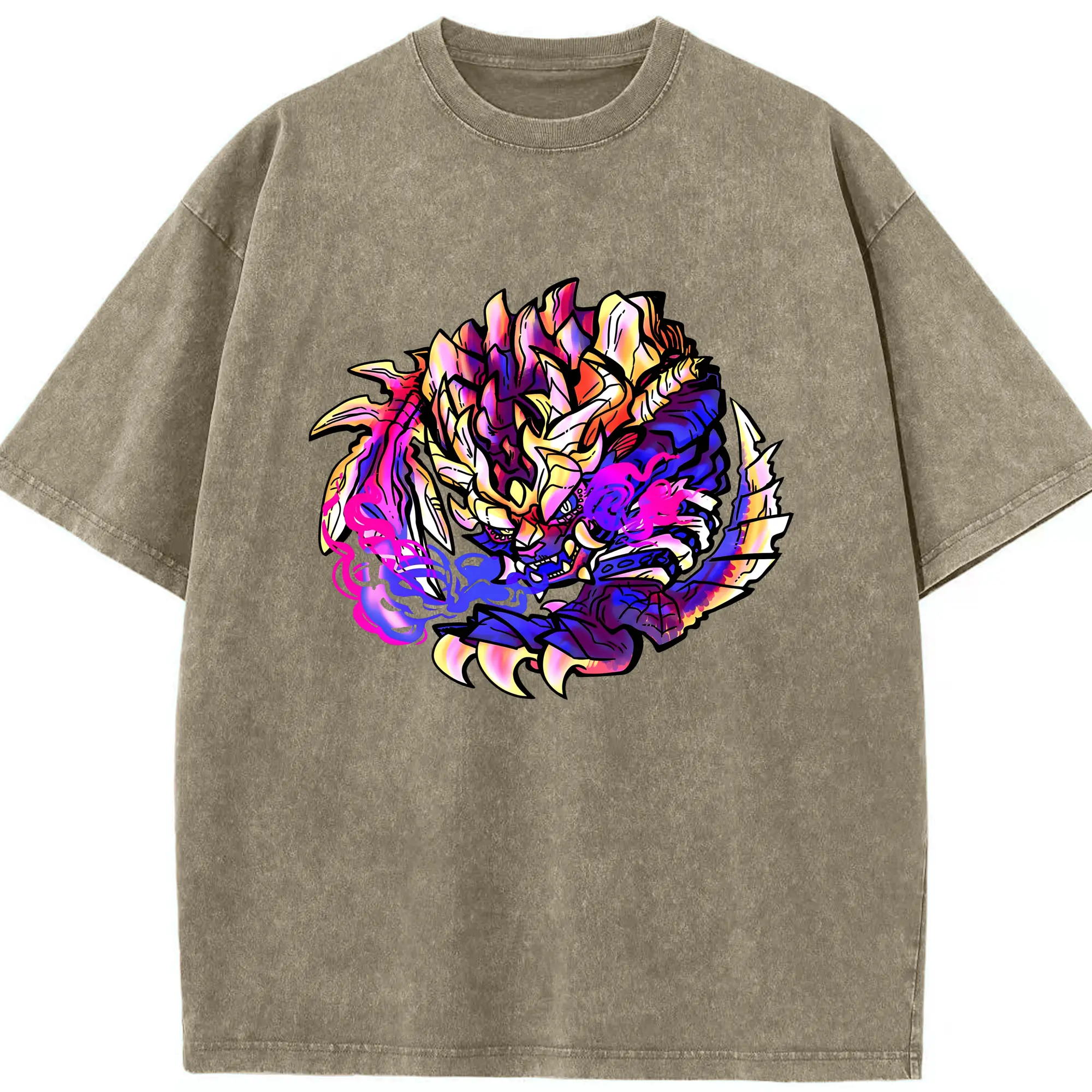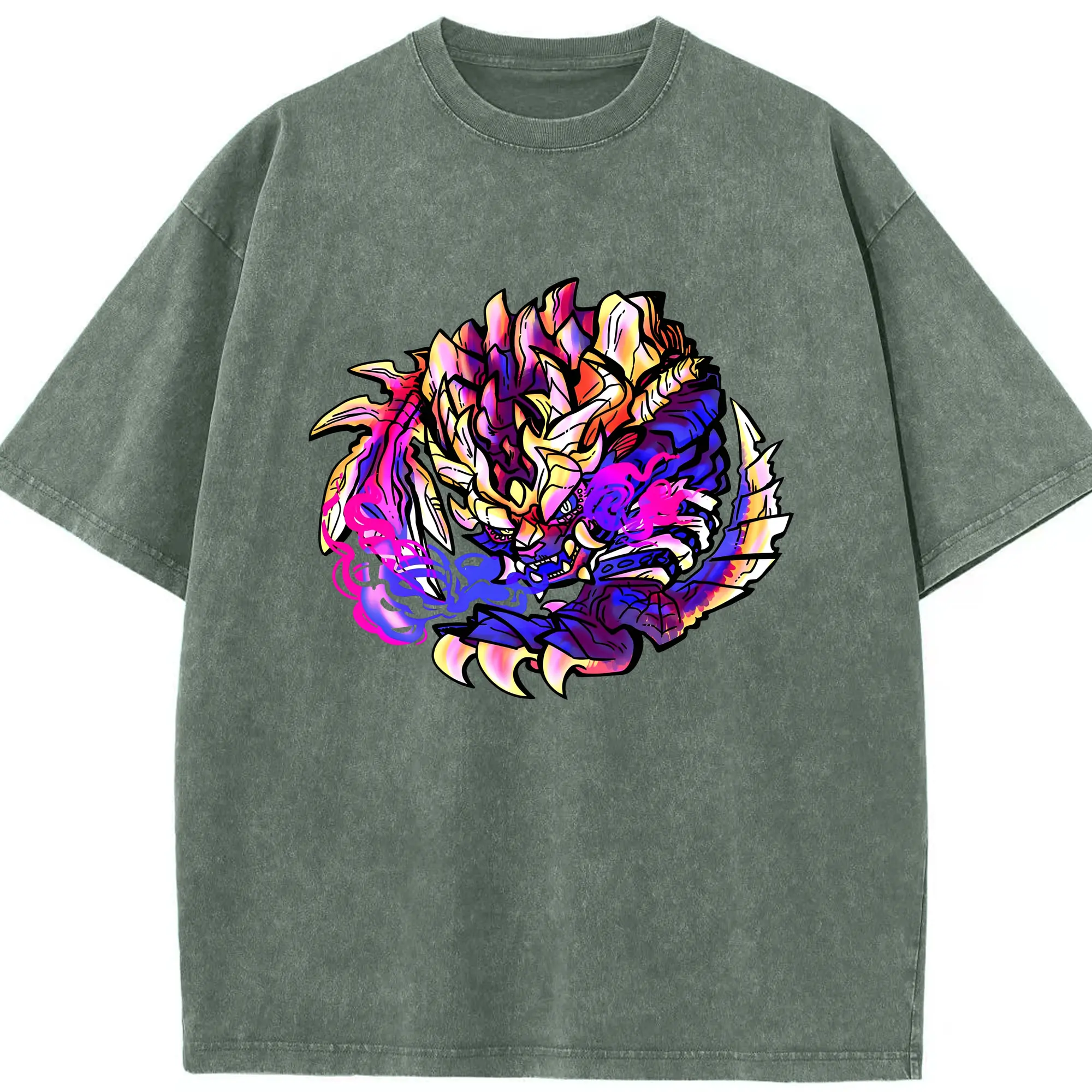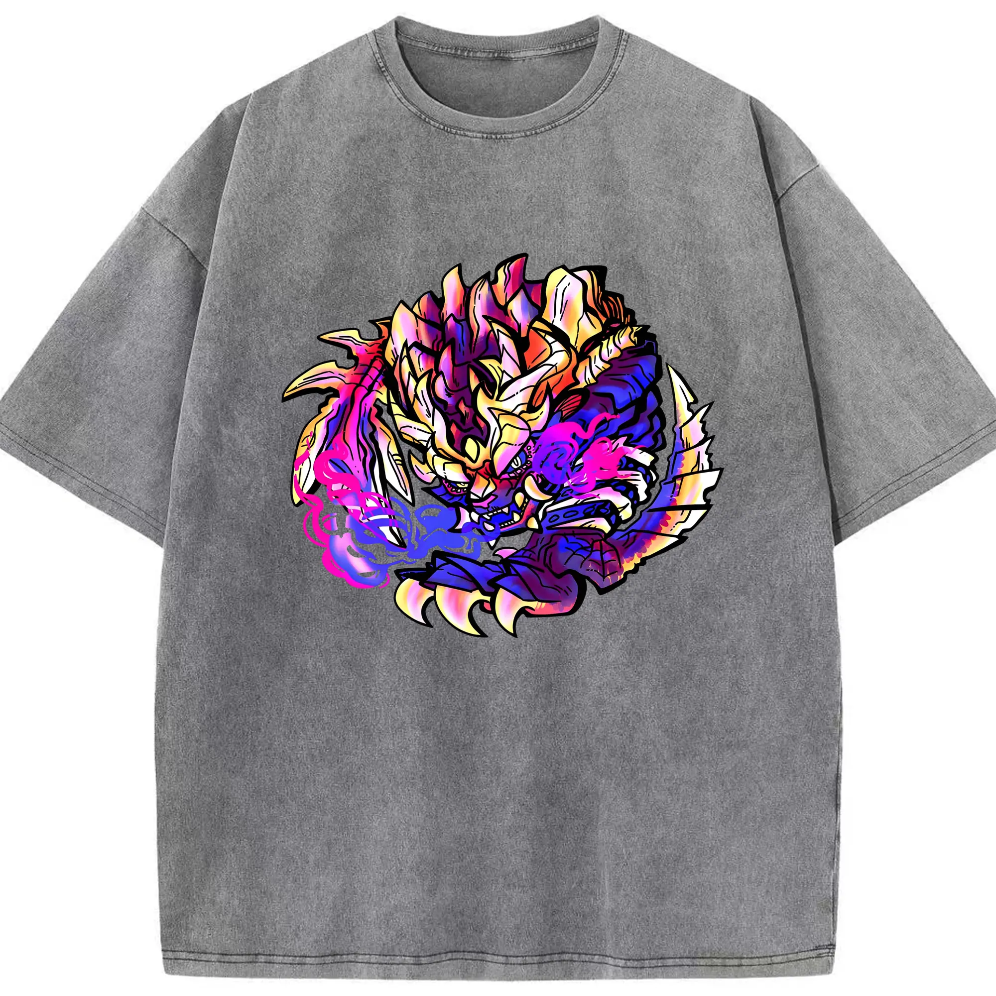 モンスターハンター マガイマガド 怒り咆哮デザイン - 綿100% 半袖Tシャツ ・ フロントプリント ・ 快適 通気性 ・ 日常使い 散歩 スポーツ用