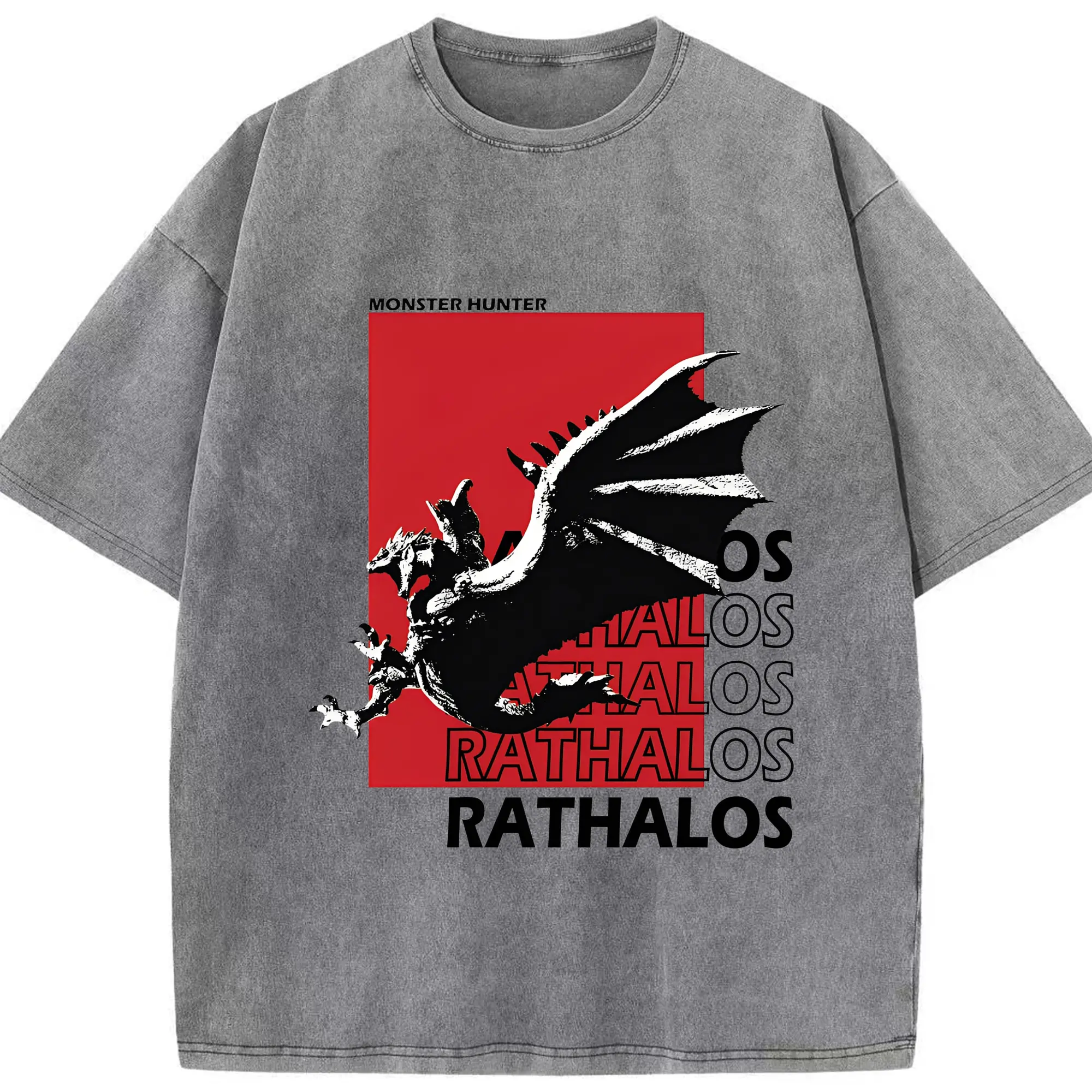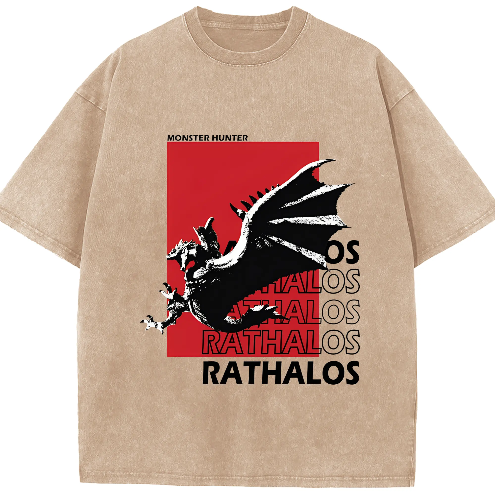 モンスターハンター人気モンスター リオレウス 限定 - 綿100% 半袖Tシャツ ・ フロントプリント ・ 快適 通気性 ・ 日常使い 散歩 スポーツ用