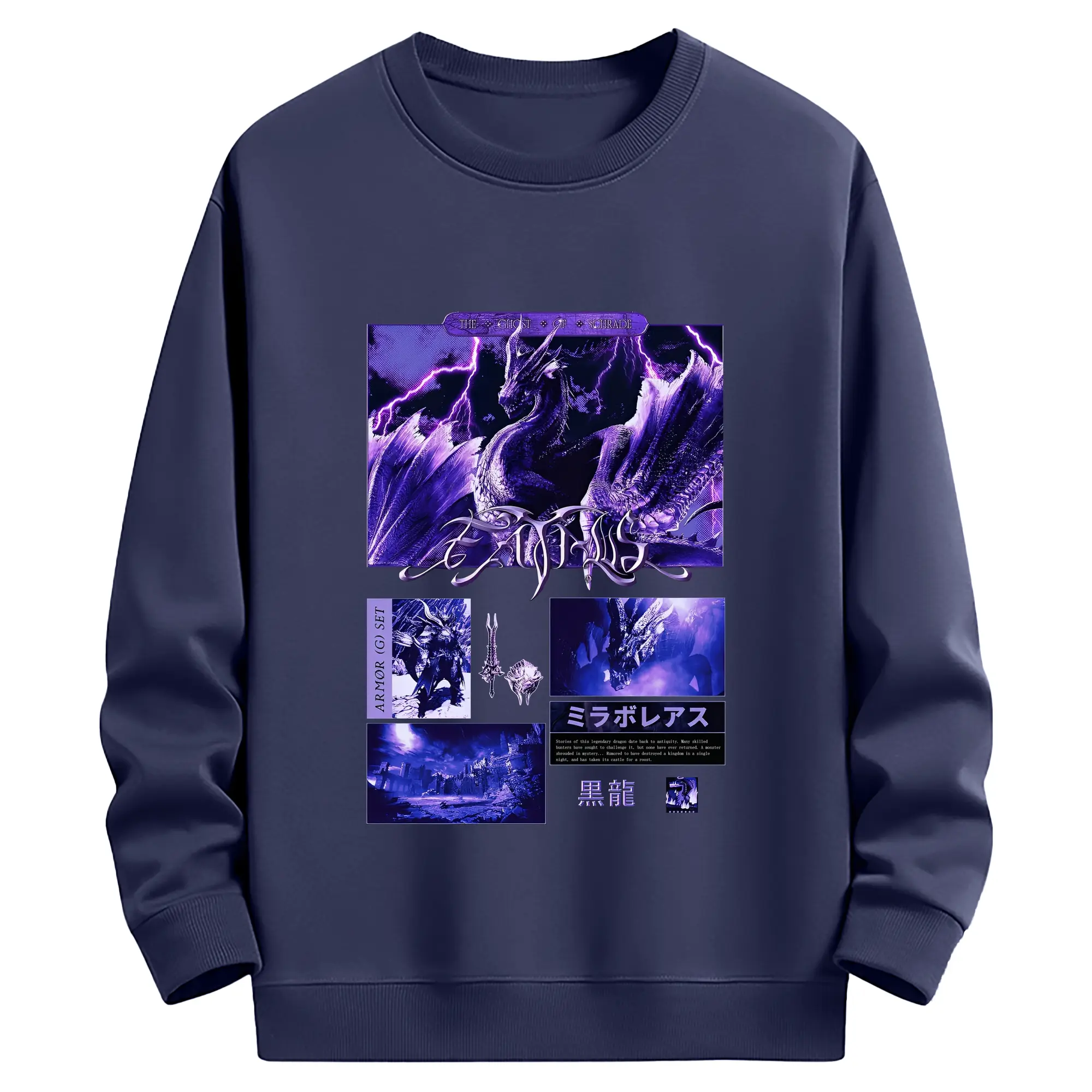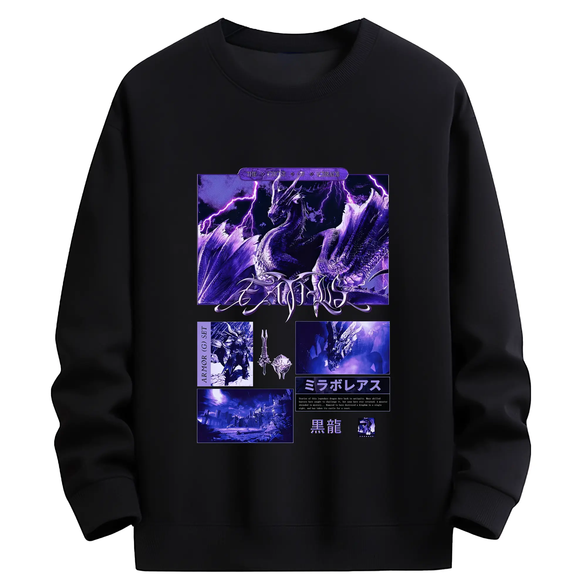 モンスターハンター ミラボレアス 伝説の黒龍デザイン - 綿100% 半袖Tシャツ ・ フロントプリント ・ 快適 通気性 ・ 日常使い 散歩 スポーツ用