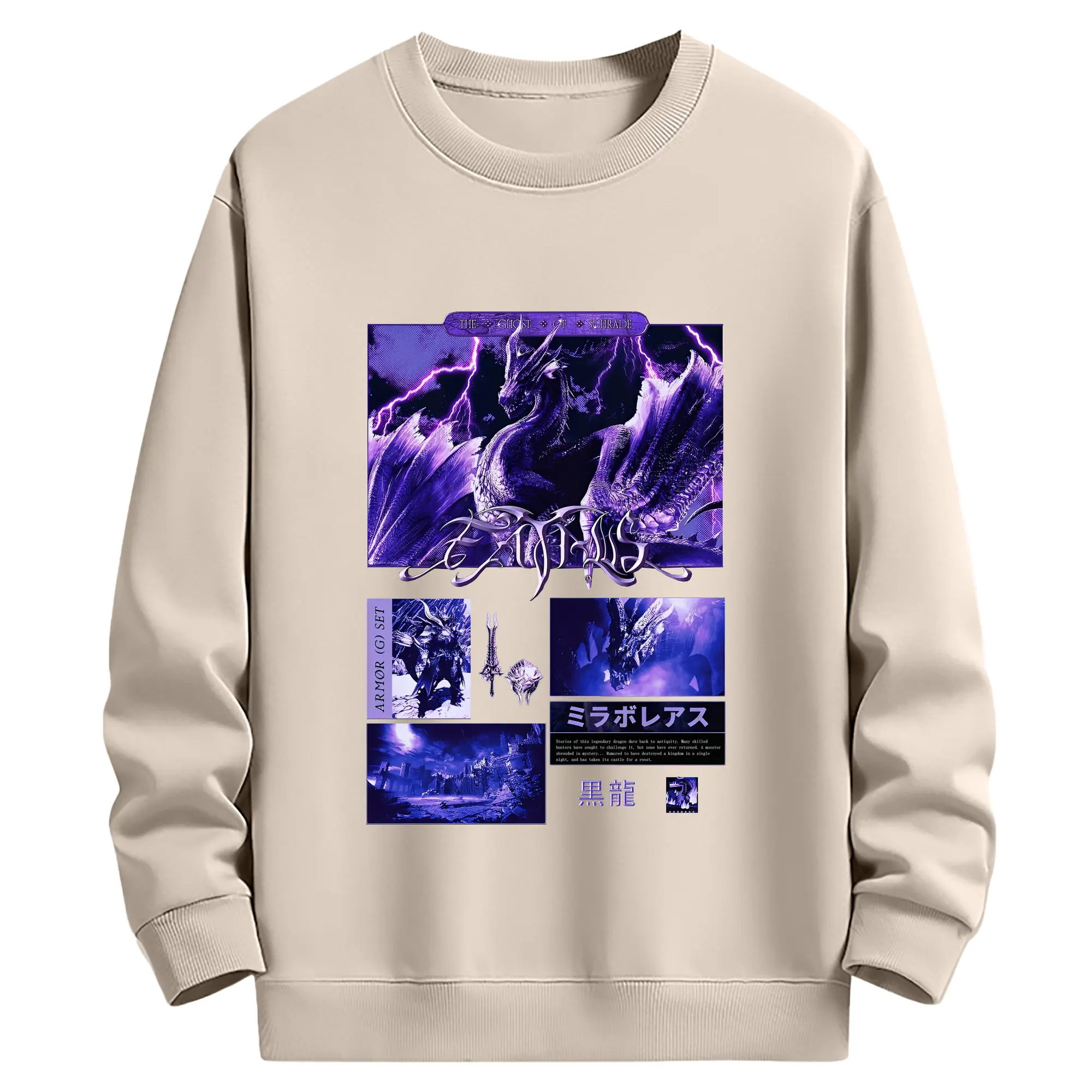 モンスターハンター ミラボレアス 伝説の黒龍デザイン - 綿100% ヴィンテージ風 半袖Tシャツ ・ フロントプリント ・ 柔らか肌触り ・ 通気性 快適 ・ スポーツ カジュアル 外出用