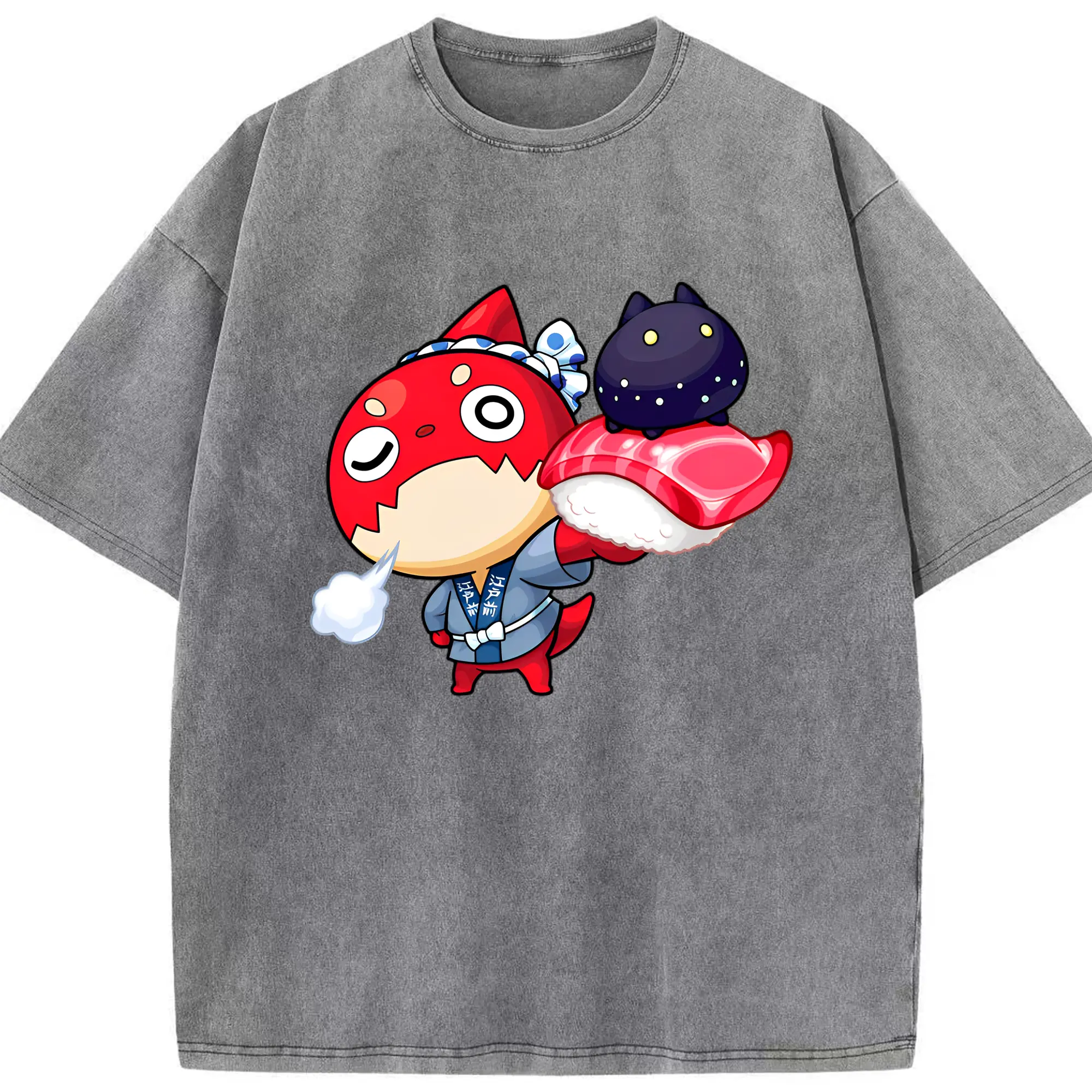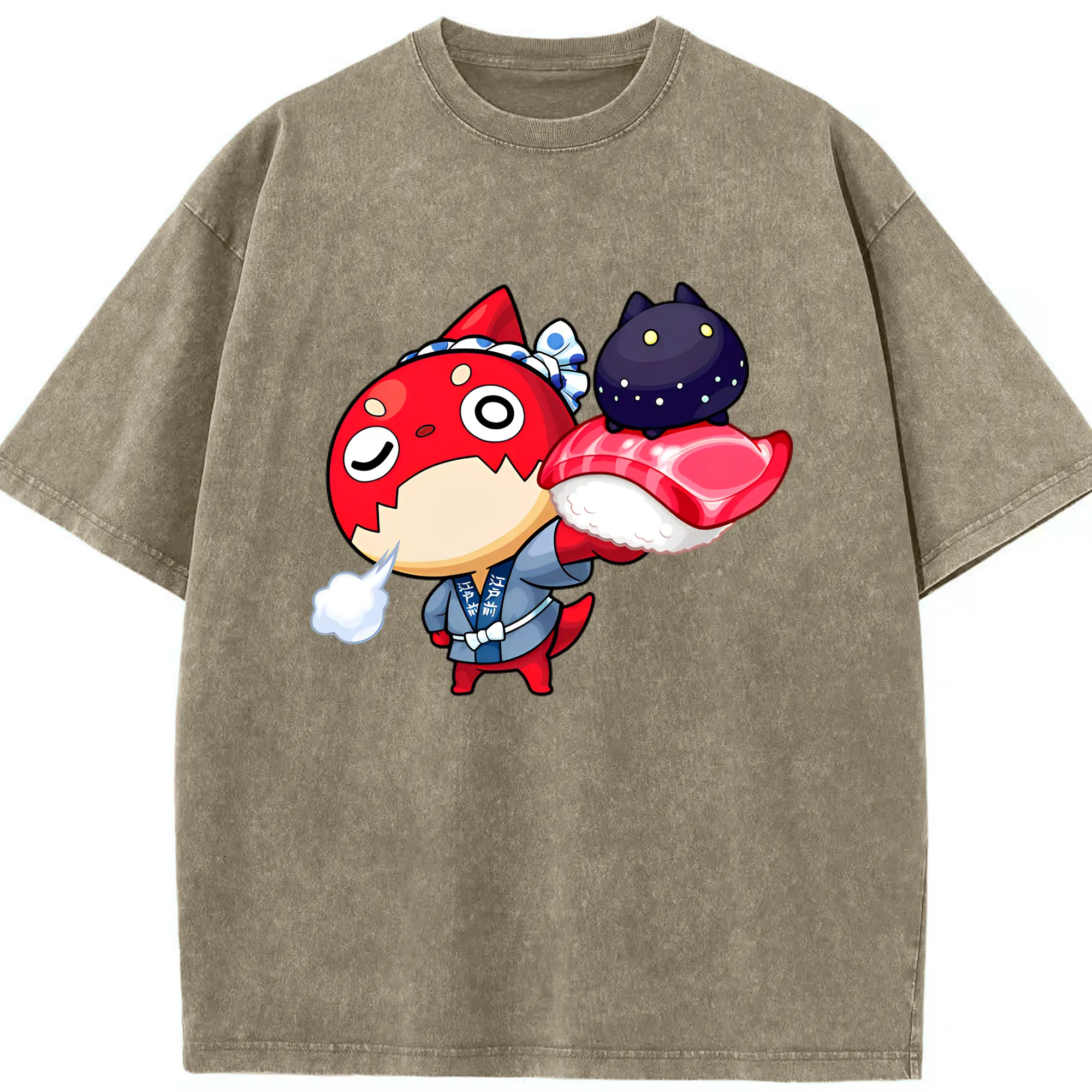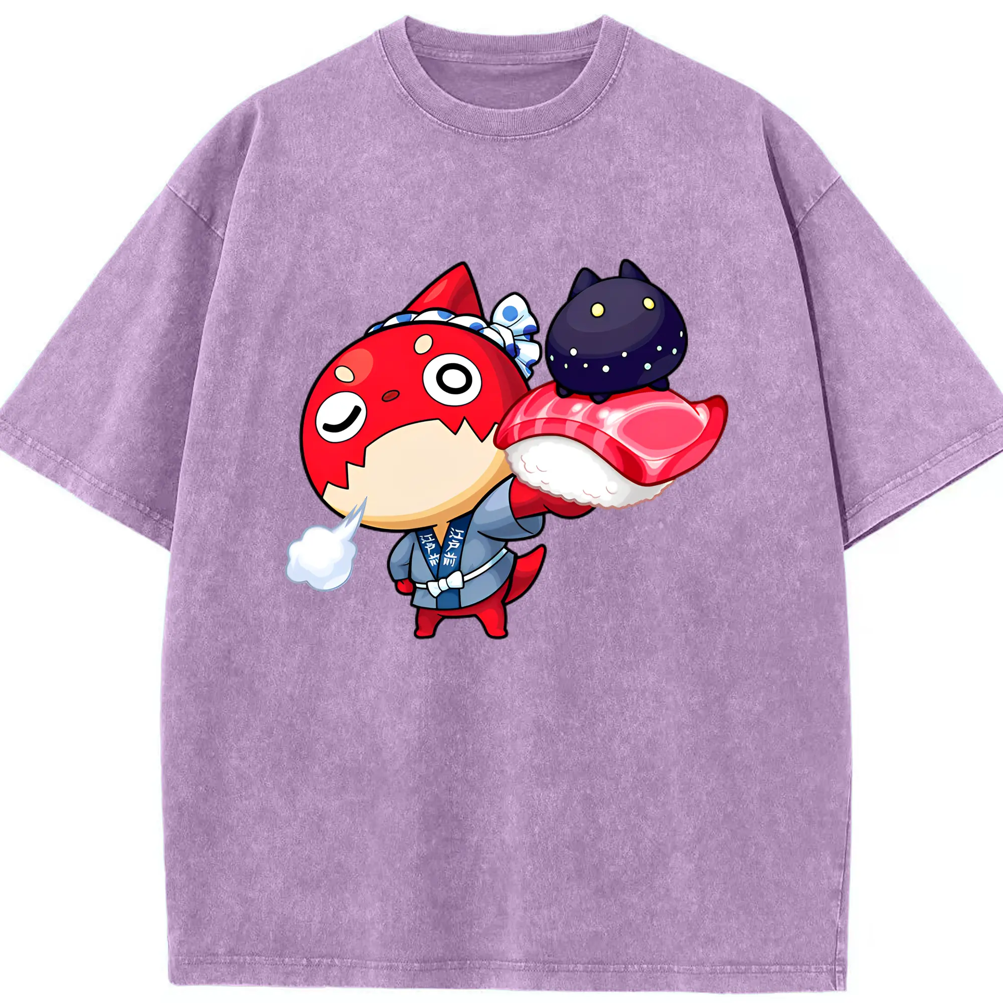 ちいかわ &星のカービィ 可愛い - 綿100% ヴィンテージ風 半袖Tシャツ ・ フロントプリント ・ 柔らか肌触り ・ 通気性 快適 ・ スポーツ カジュアル 外出用