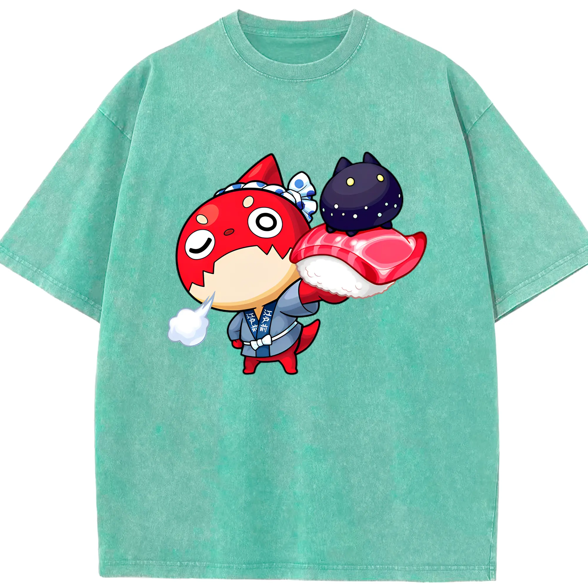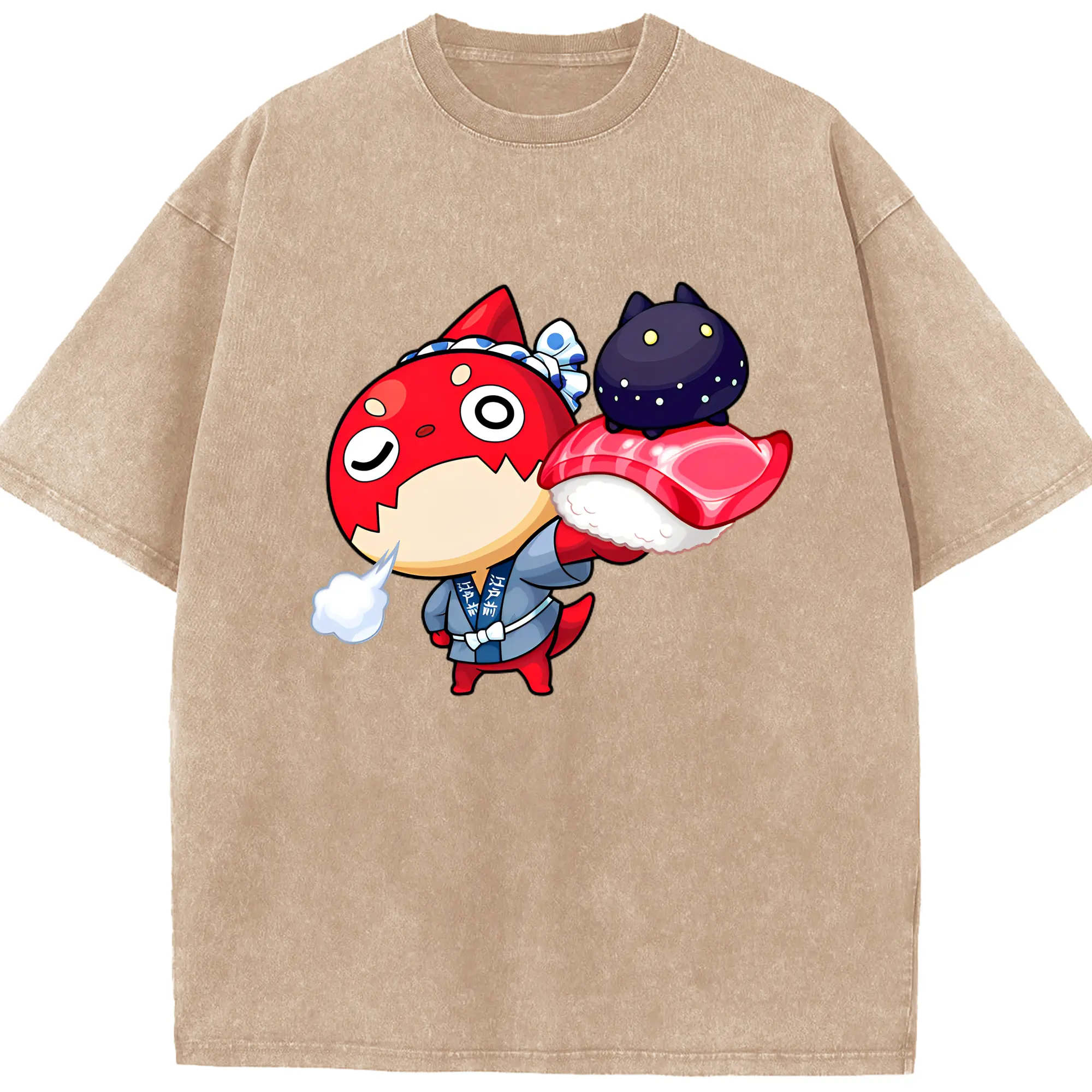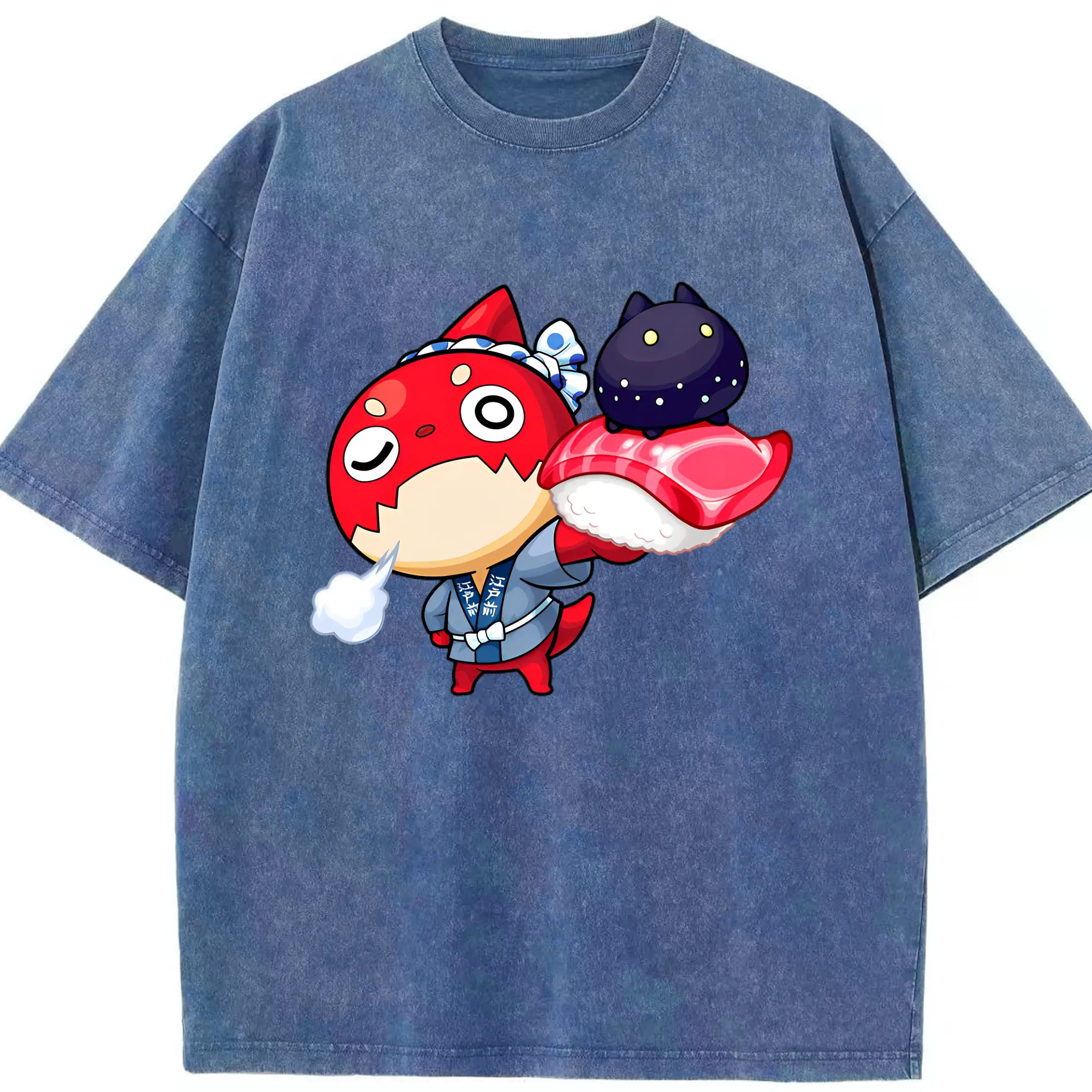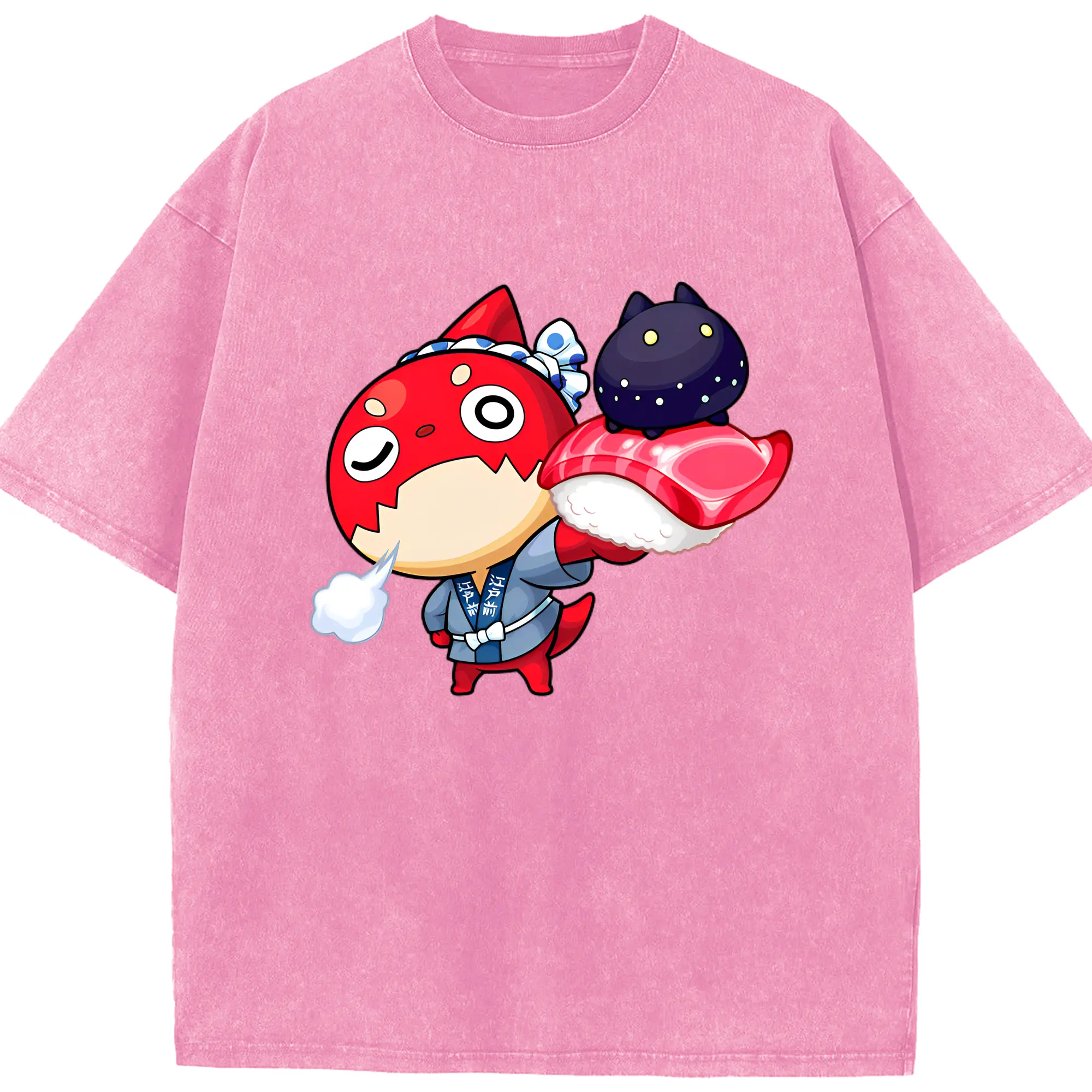 ちいかわ &星のカービィ 可愛い - 綿100% ヴィンテージ風 半袖Tシャツ ・ フロントプリント ・ 柔らか肌触り ・ 通気性 快適 ・ スポーツ カジュアル 外出用