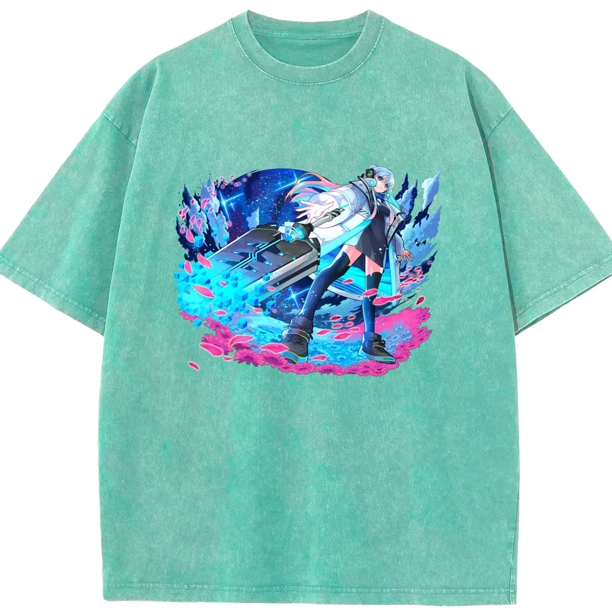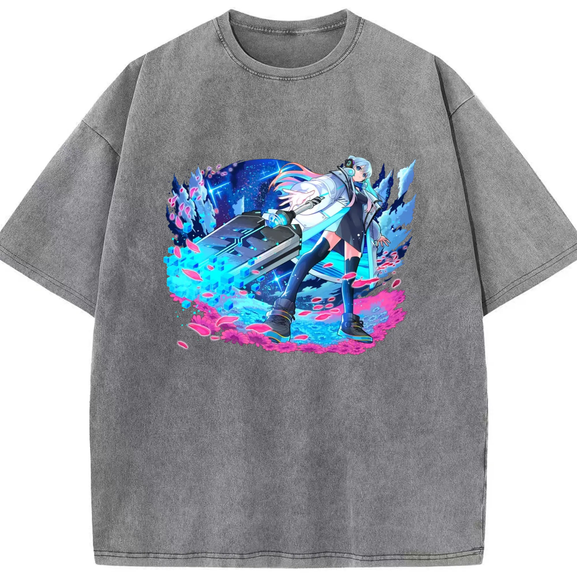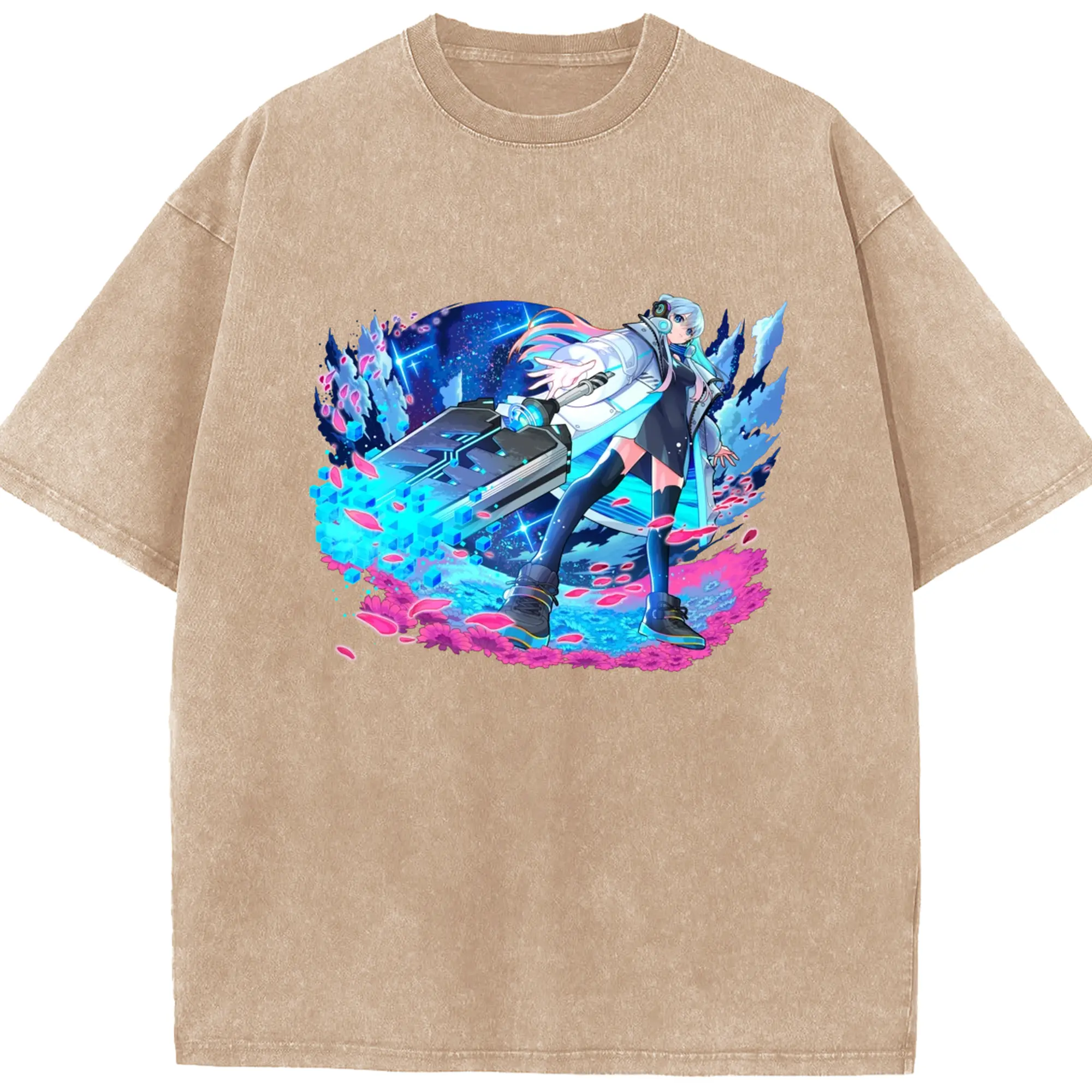 Hatsune Miku 二次元 グッズ太陽のような歌手 - 綿100% ヴィンテージ風 半袖Tシャツ ・ フロントプリント ・ 柔らか肌触り ・ 通気性 快適 ・ スポーツ カジュアル 外出用