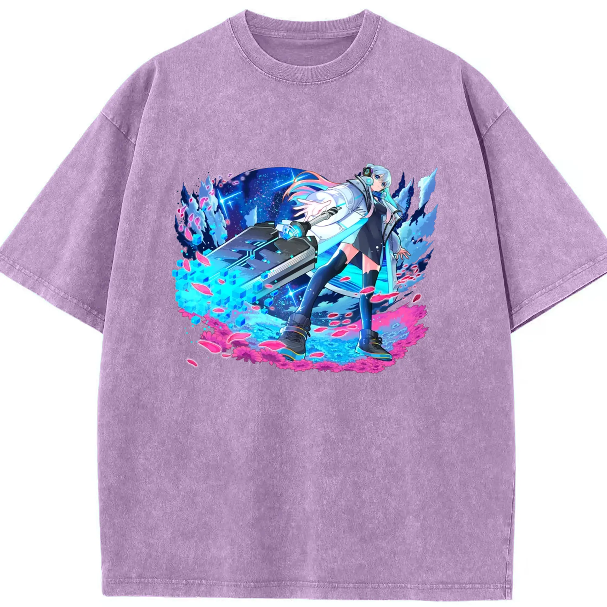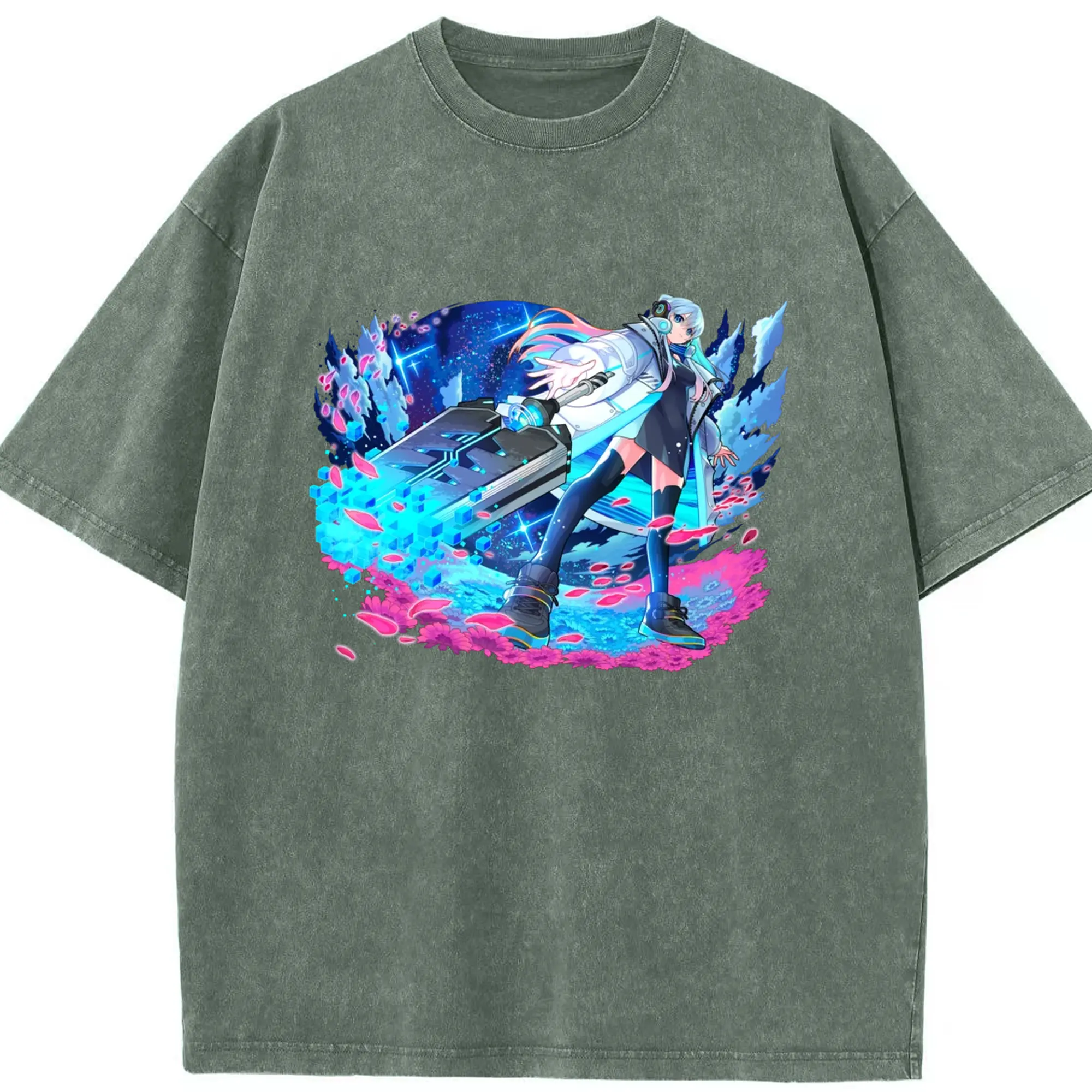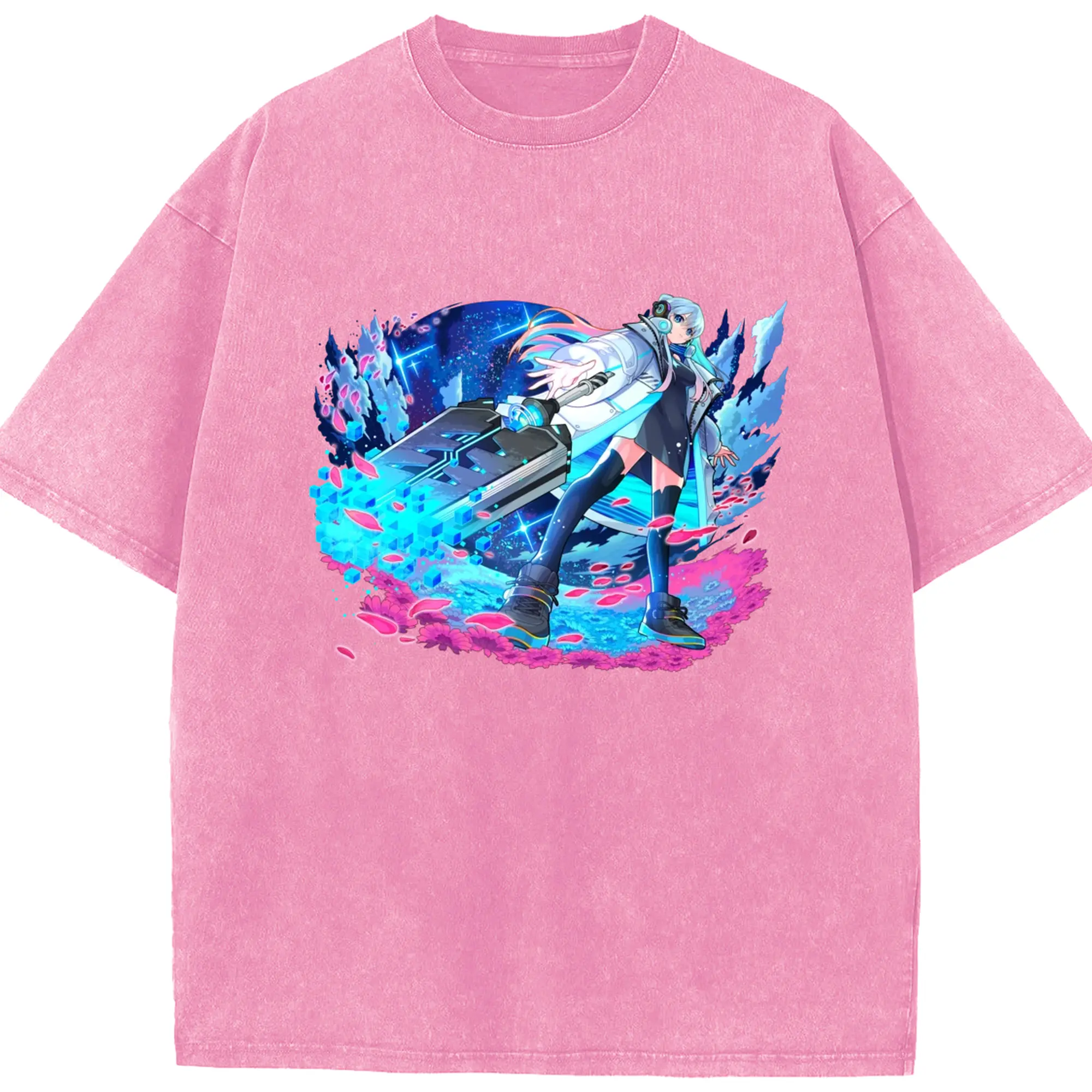 Hatsune Miku 二次元 グッズ太陽のような歌手 - 綿100% ヴィンテージ風 半袖Tシャツ ・ フロントプリント ・ 柔らか肌触り ・ 通気性 快適 ・ スポーツ カジュアル 外出用