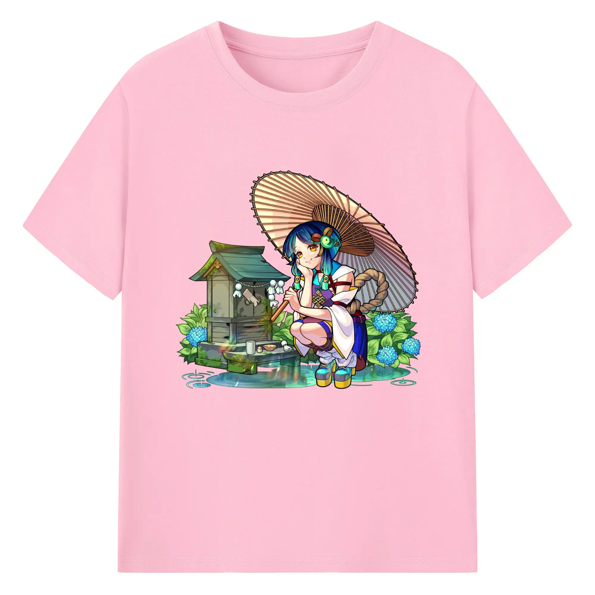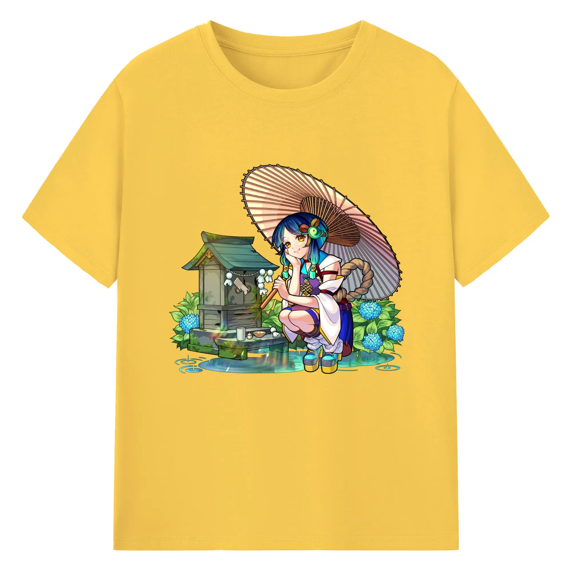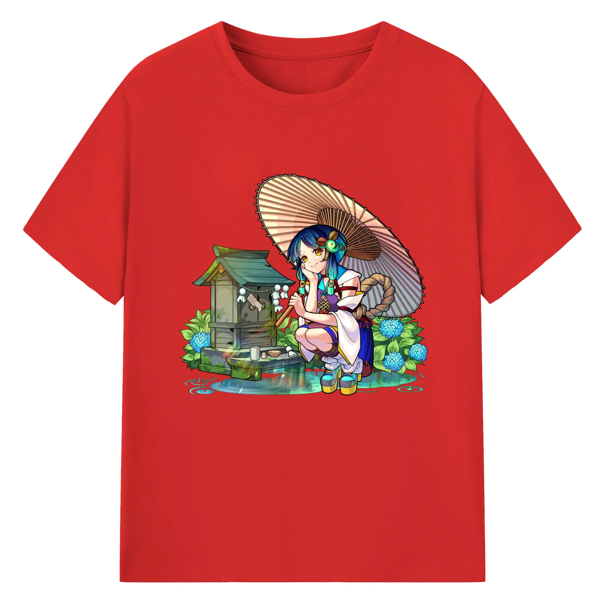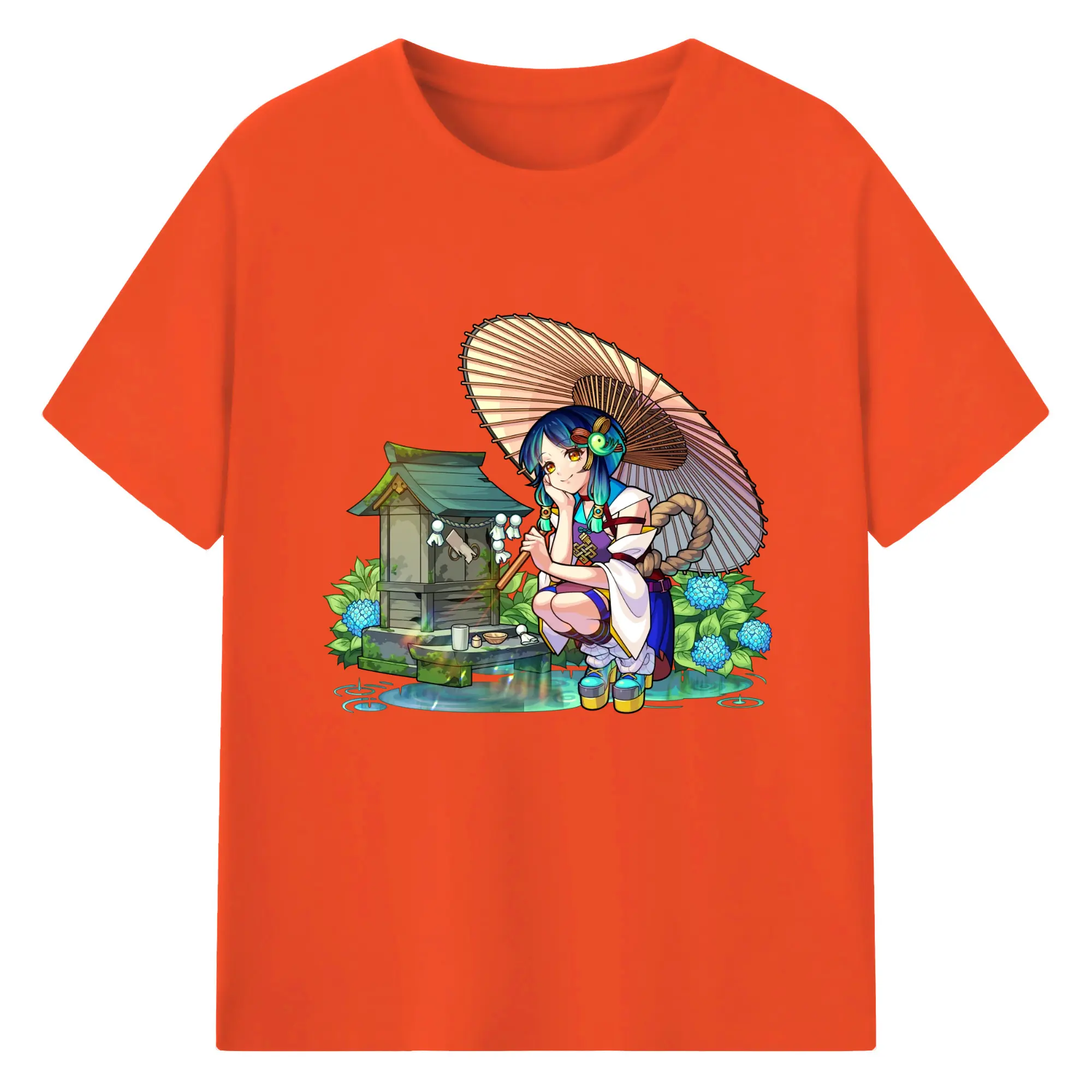 Genshin Impact フータオ ミニマルアート 原宿系 おしゃれデザイン - 綿100% 半袖Tシャツ ・ フロントプリント ・ 快適 通気性 ・ 日常使い 散歩 スポーツ用