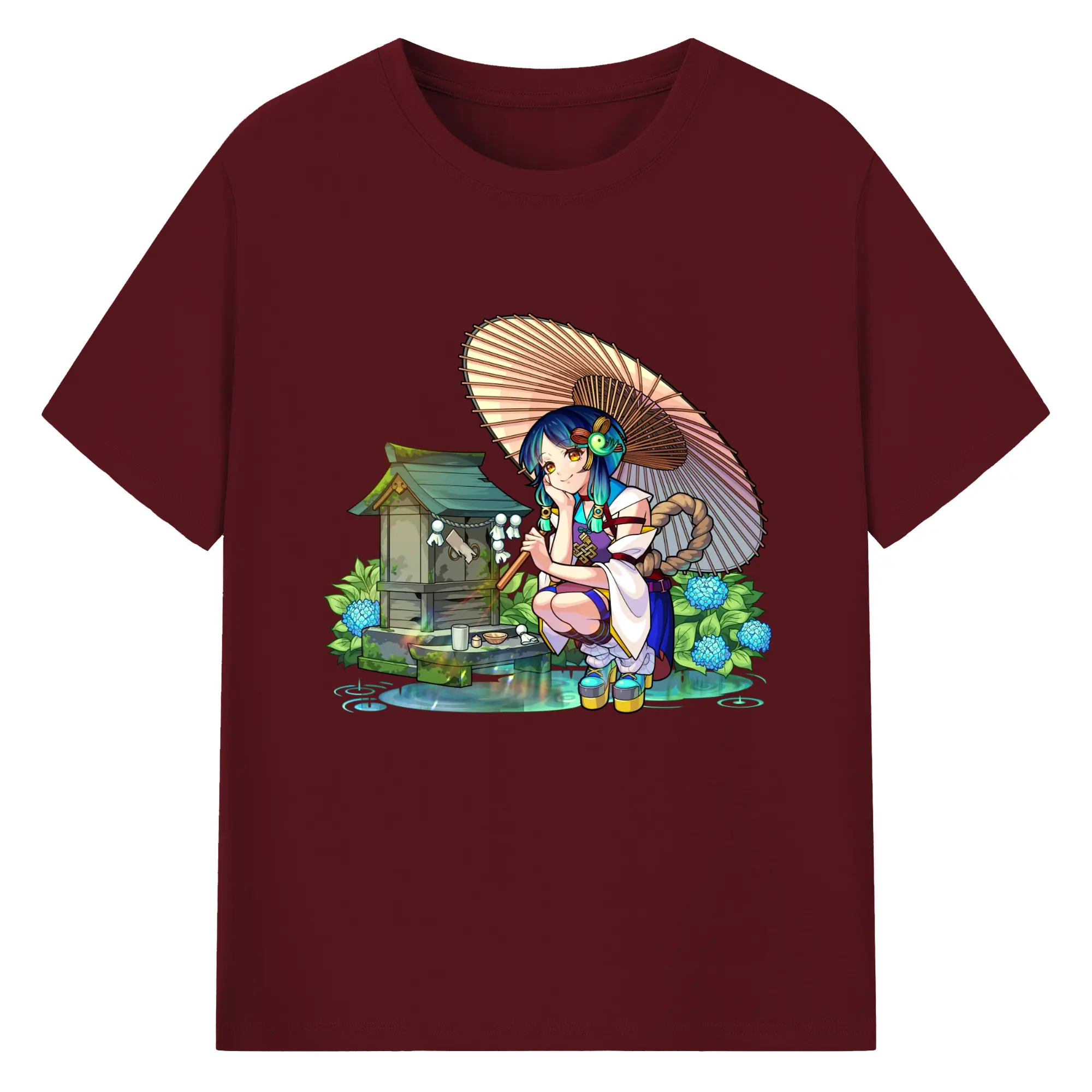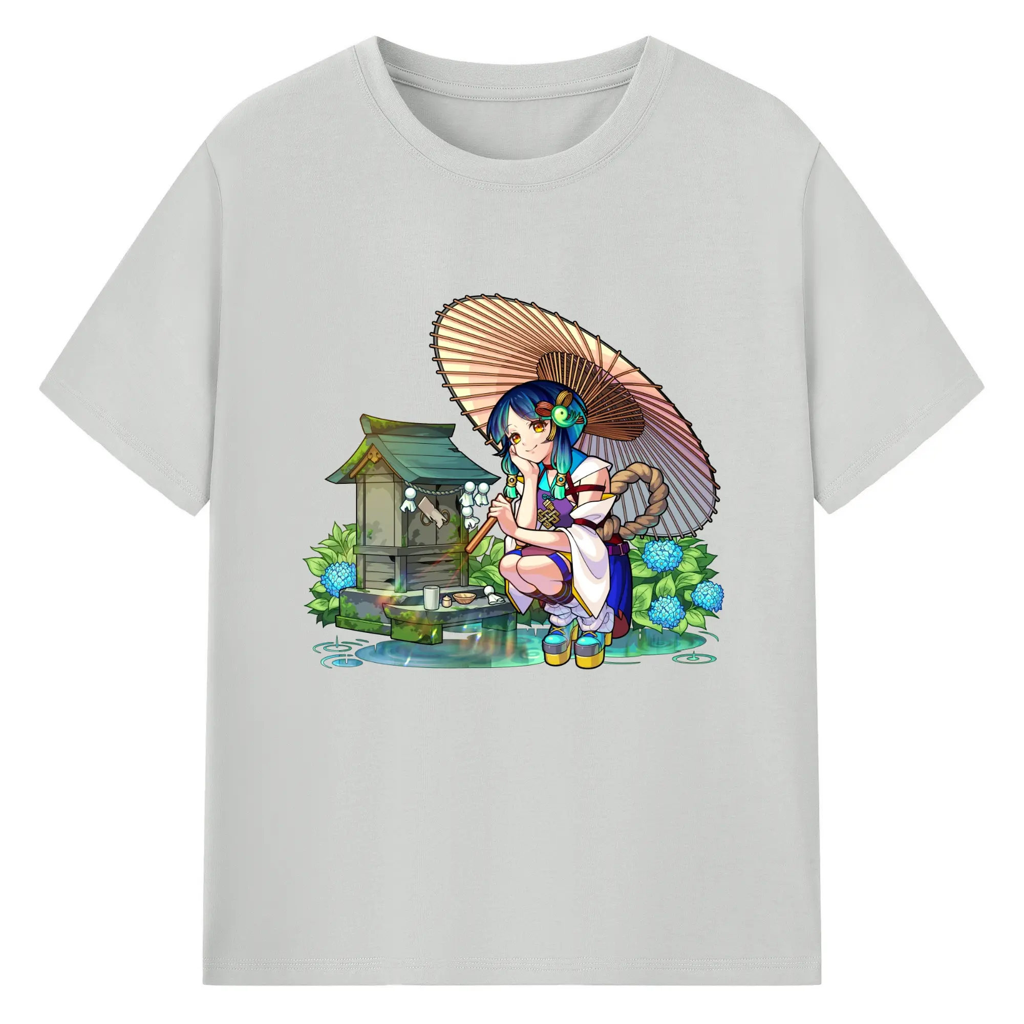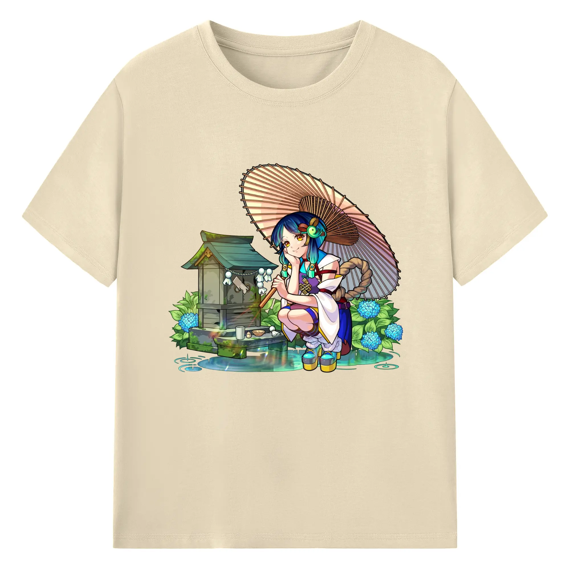Genshin Impact フータオ ミニマルアート 原宿系 おしゃれデザイン - 綿100% 半袖Tシャツ ・ フロントプリント ・ 快適 通気性 ・ 日常使い 散歩 スポーツ用
