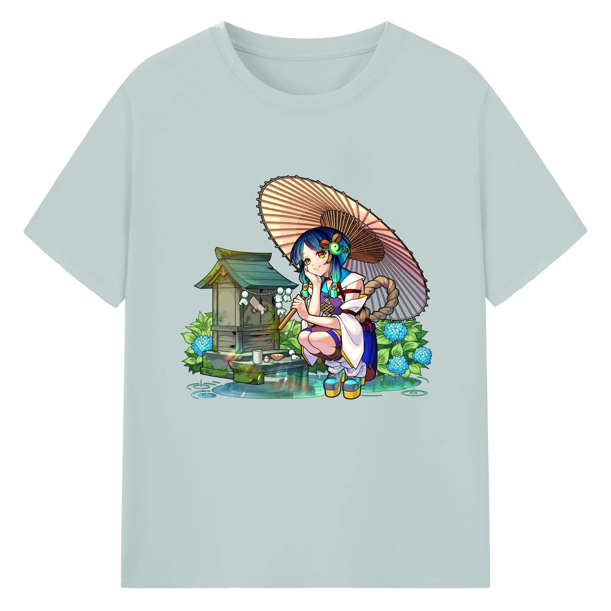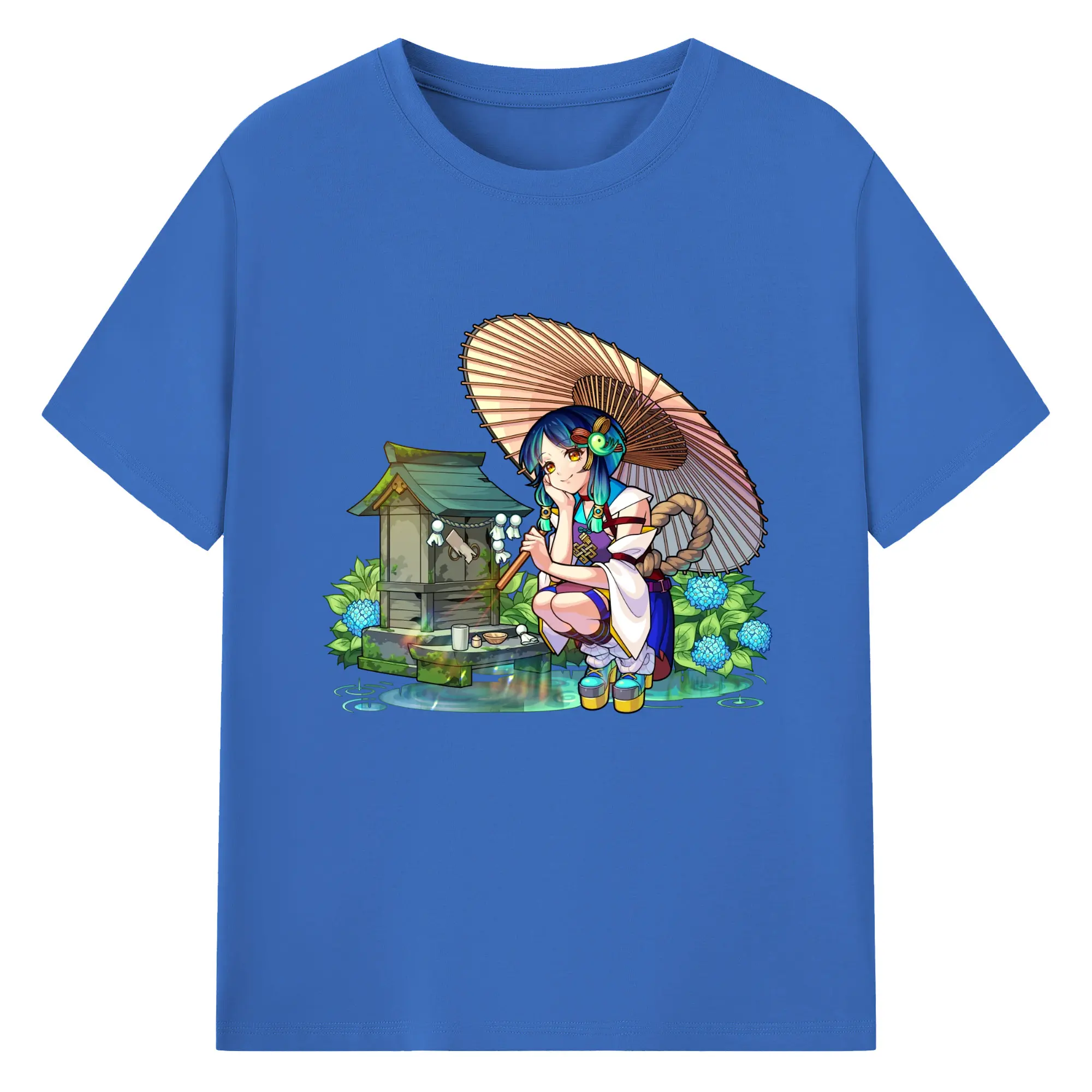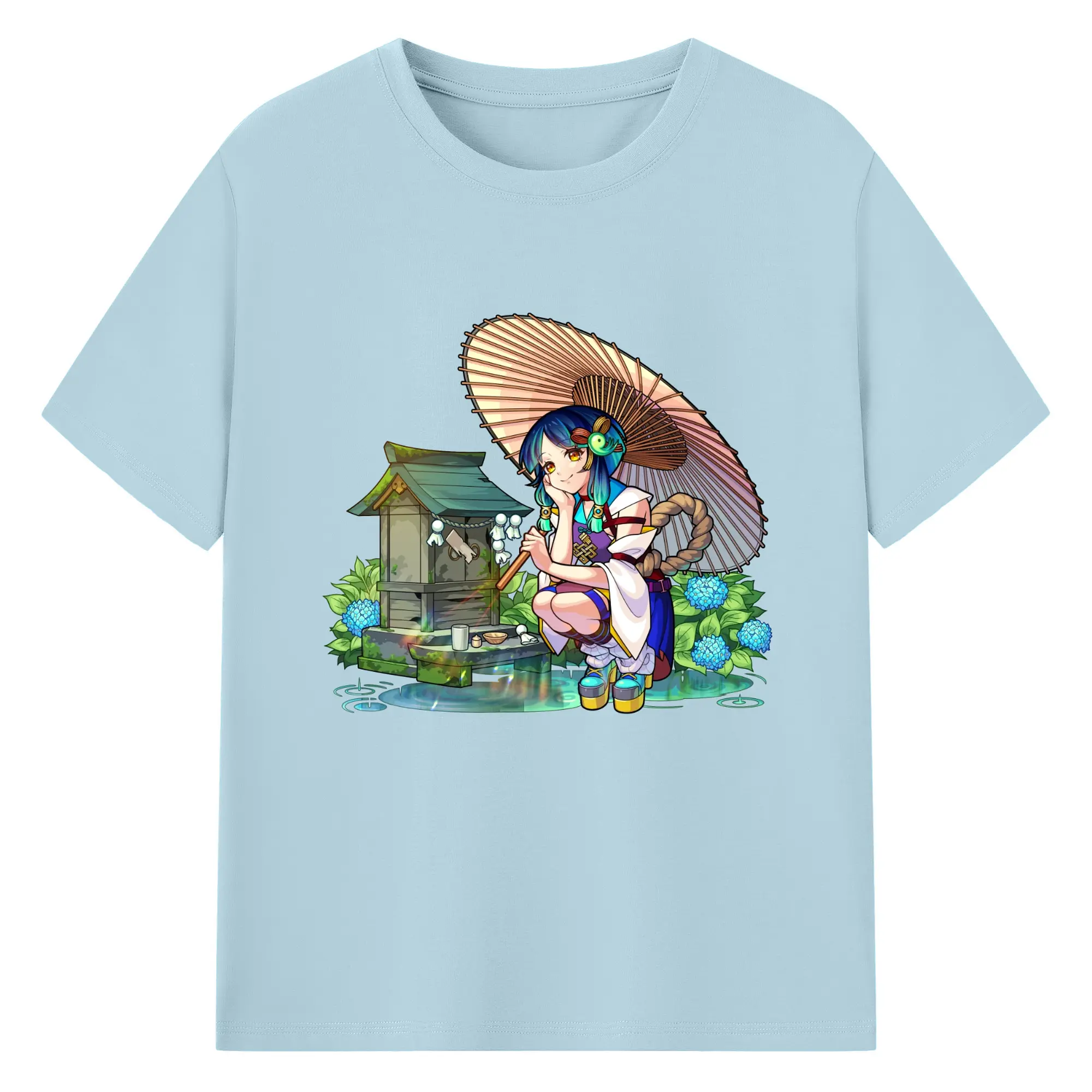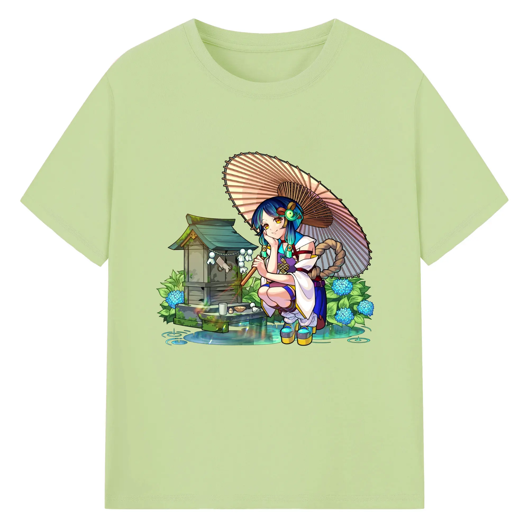 Genshin Impact フータオ ミニマルアート 原宿系 おしゃれデザイン - 綿100% 半袖Tシャツ ・ フロントプリント ・ 快適 通気性 ・ 日常使い 散歩 スポーツ用