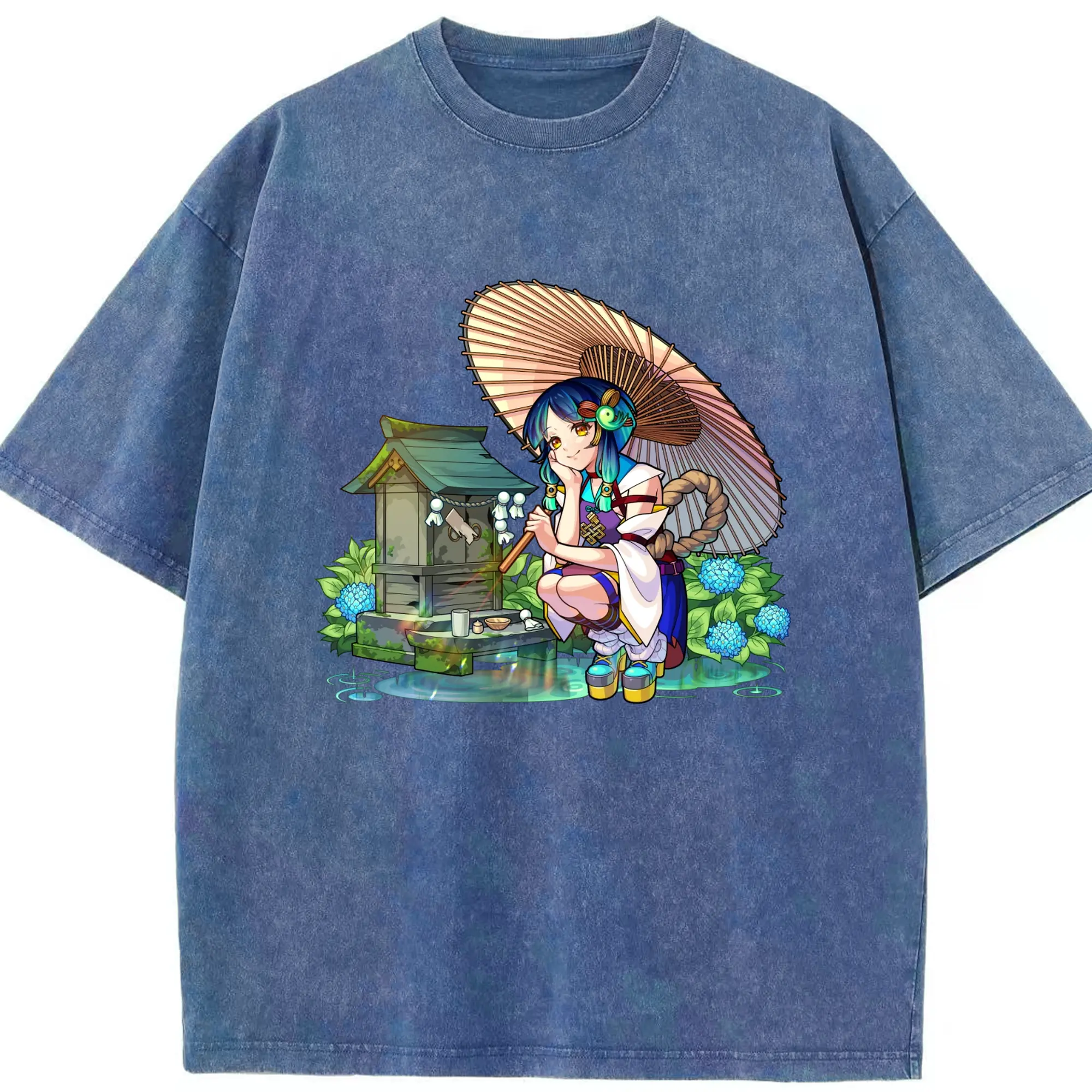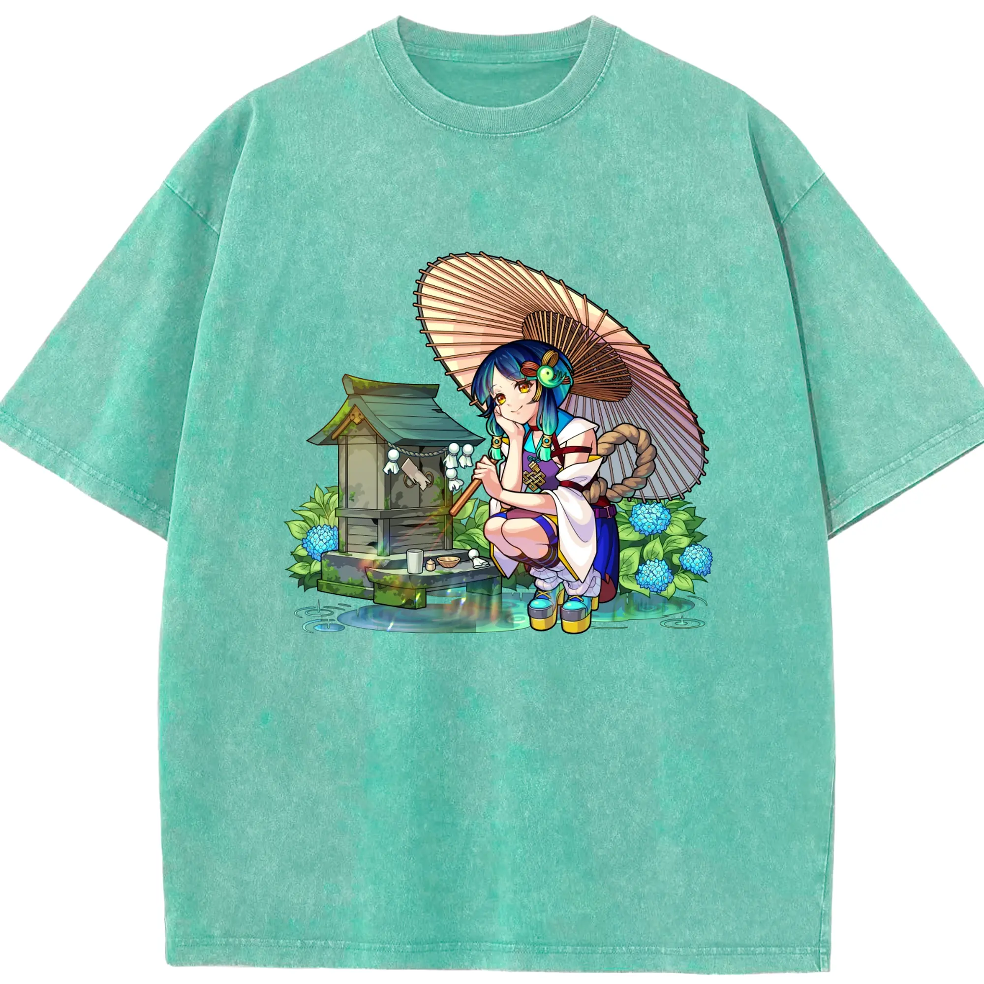 ヨアソビYOASOBI 海のまにまに - 綿100% ヴィンテージ風 半袖Tシャツ ・ フロントプリント ・ 柔らか肌触り ・ 通気性 快適 ・ スポーツ カジュアル 外出用