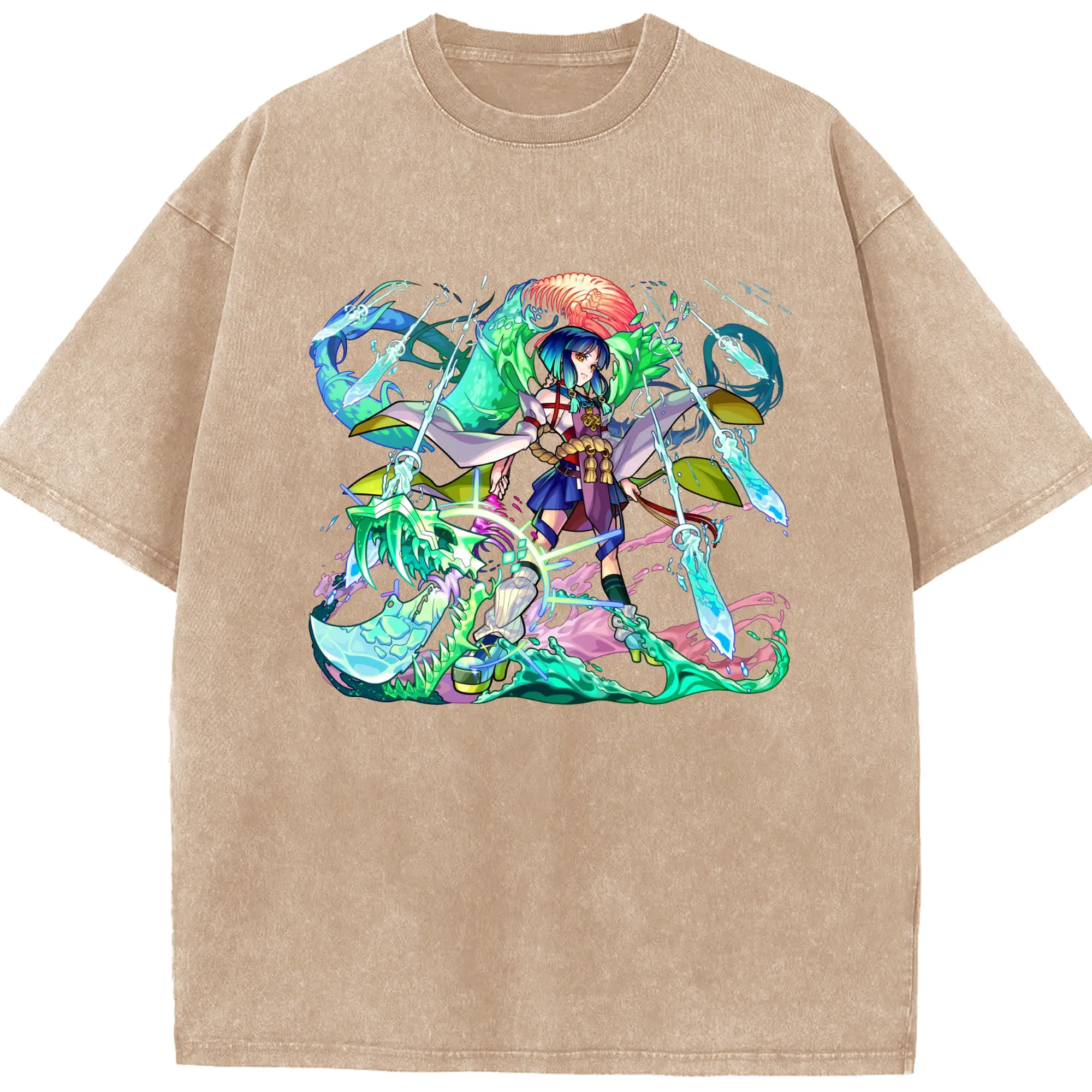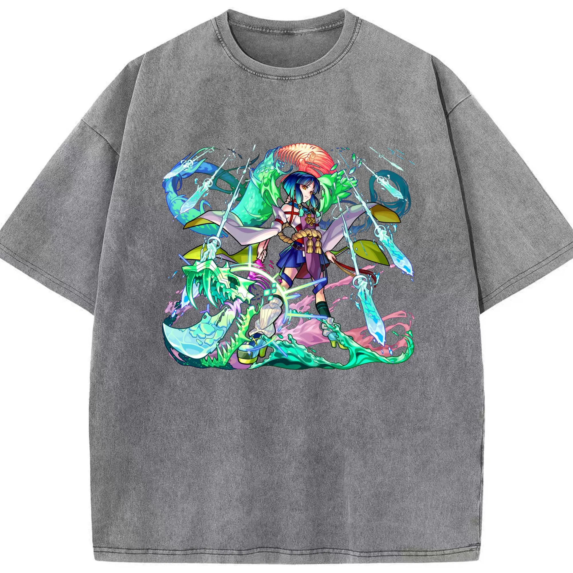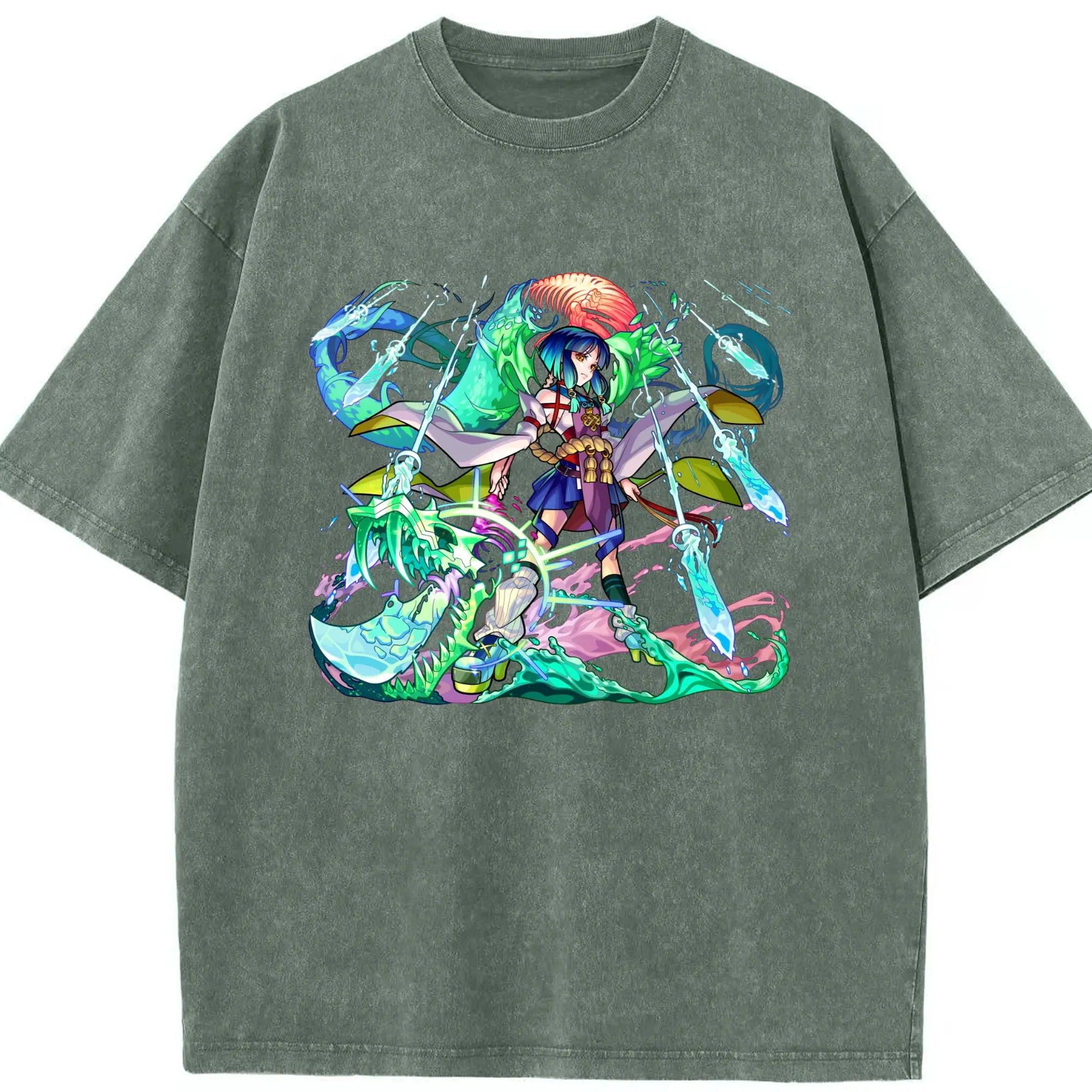 原神 フリナ(水神) ポップカルチャー風アニメプリント - 綿100% ヴィンテージ風 半袖Tシャツ ・ フロントプリント ・ 柔らか肌触り ・ 通気性 快適 ・ スポーツ カジュアル 外出用