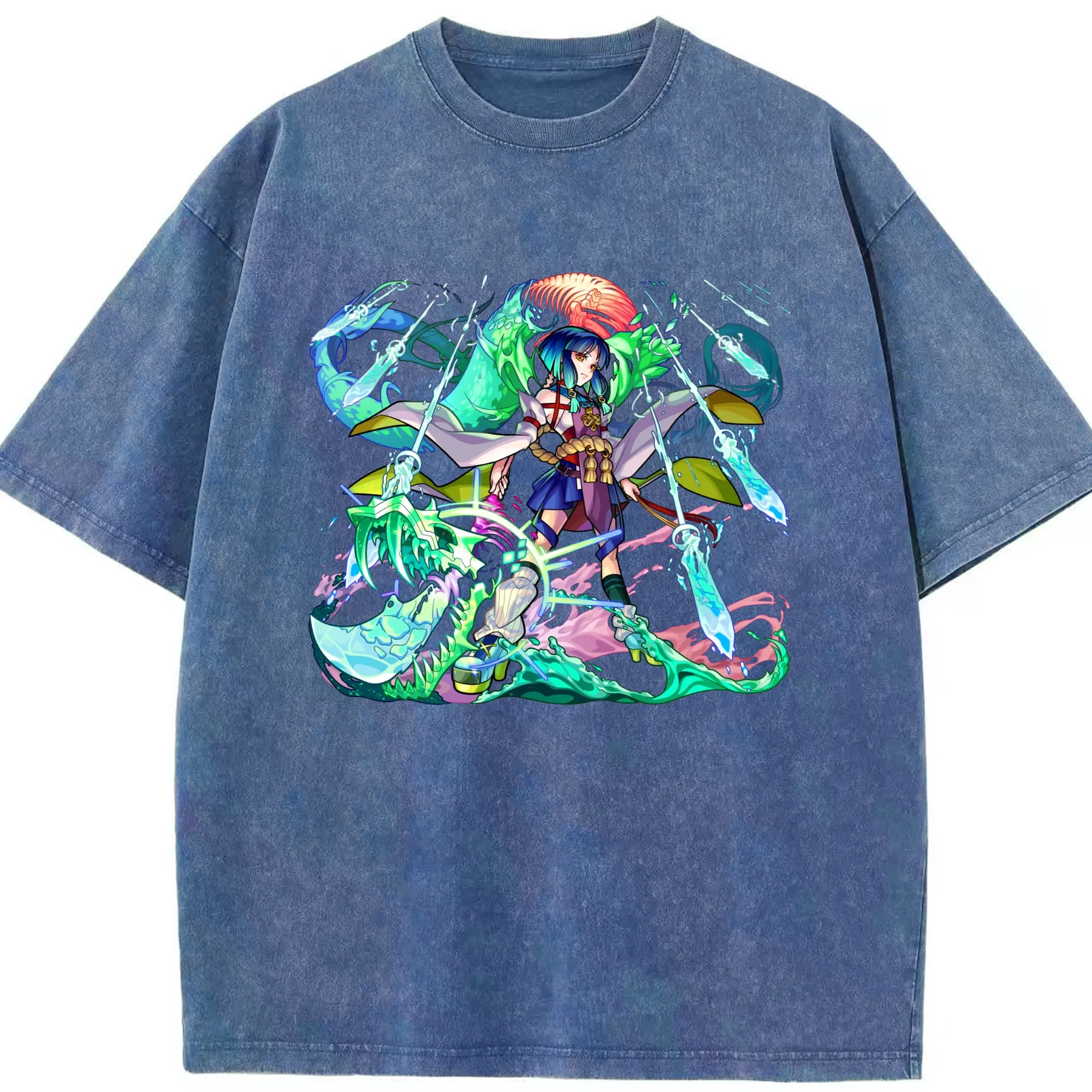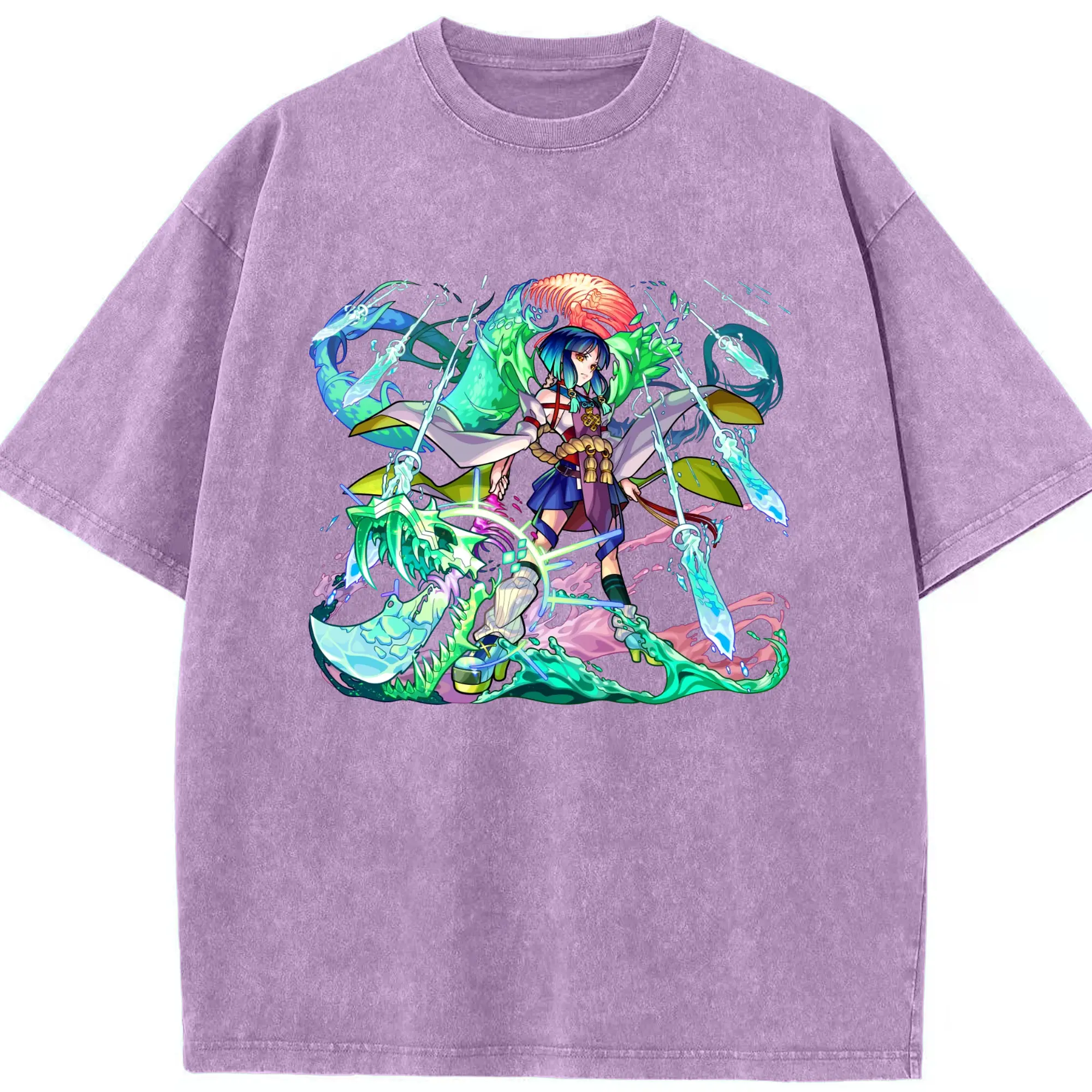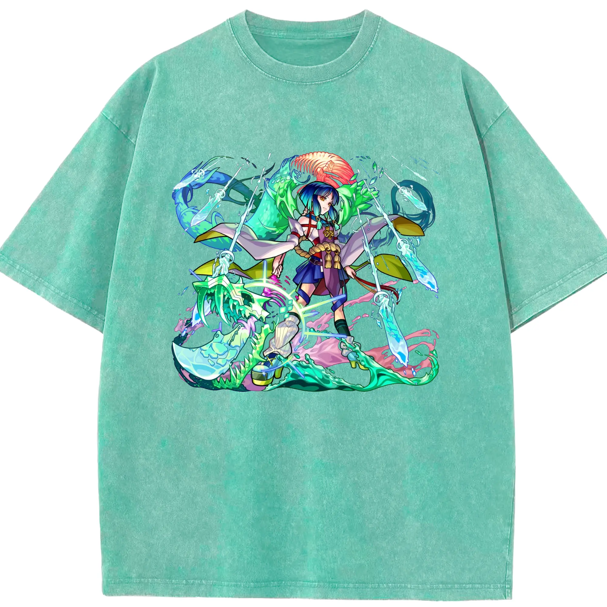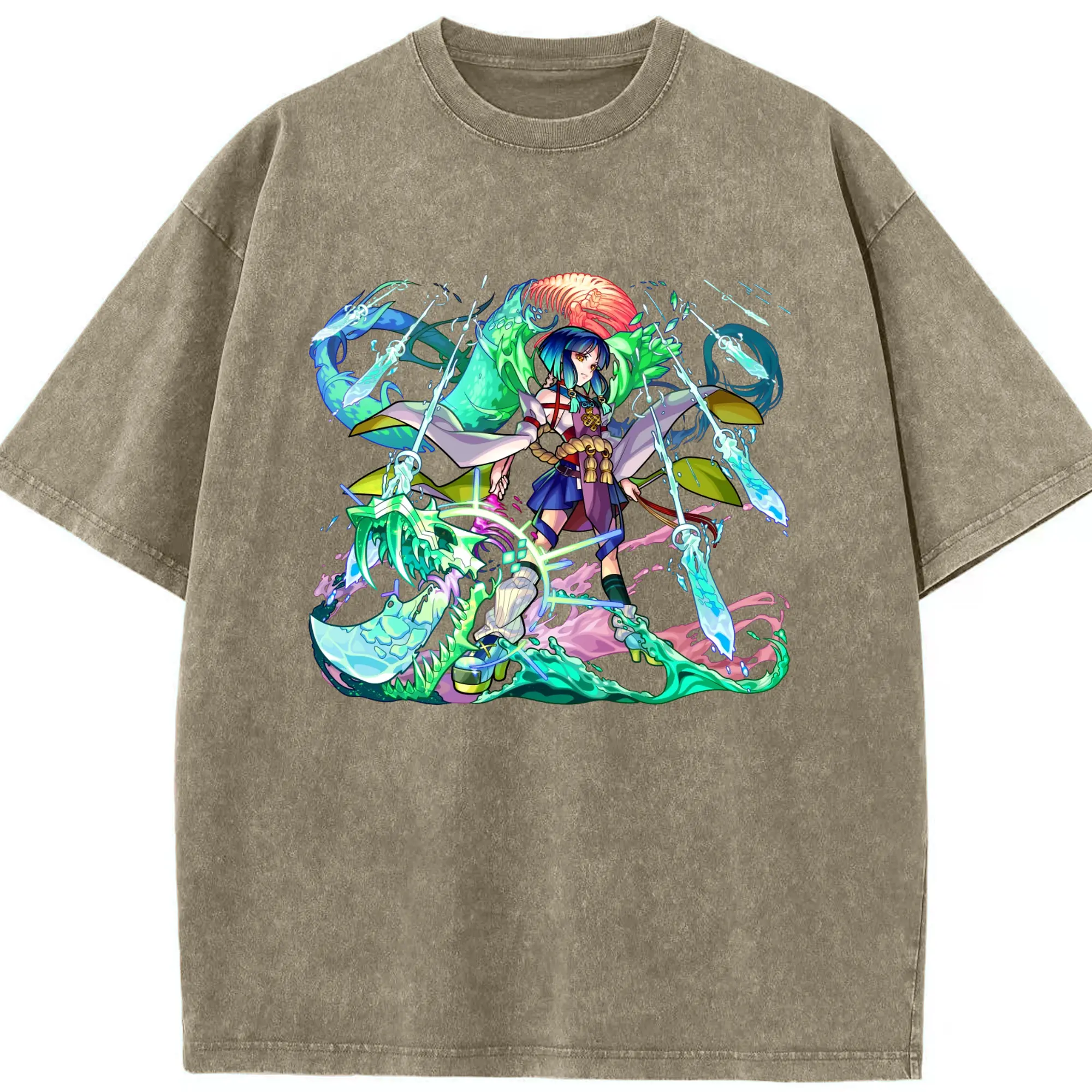 原神 フリナ(水神) ポップカルチャー風アニメプリント - 綿100% ヴィンテージ風 半袖Tシャツ ・ フロントプリント ・ 柔らか肌触り ・ 通気性 快適 ・ スポーツ カジュアル 外出用