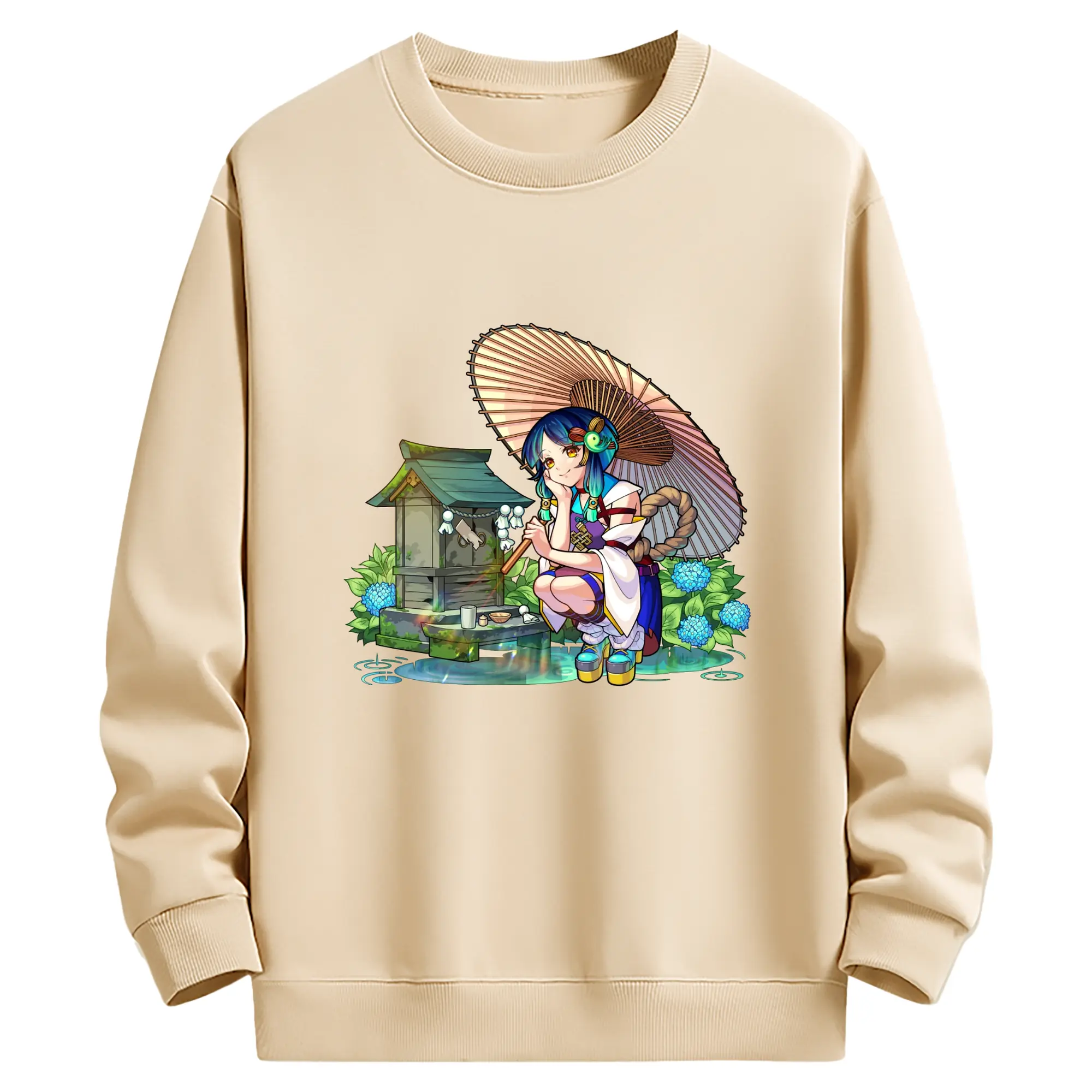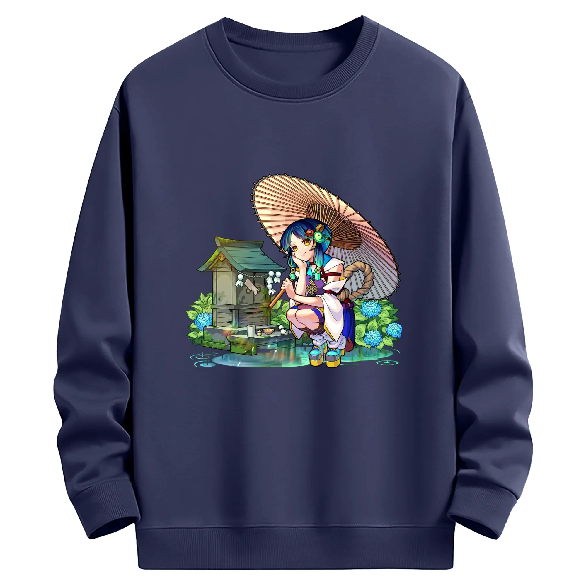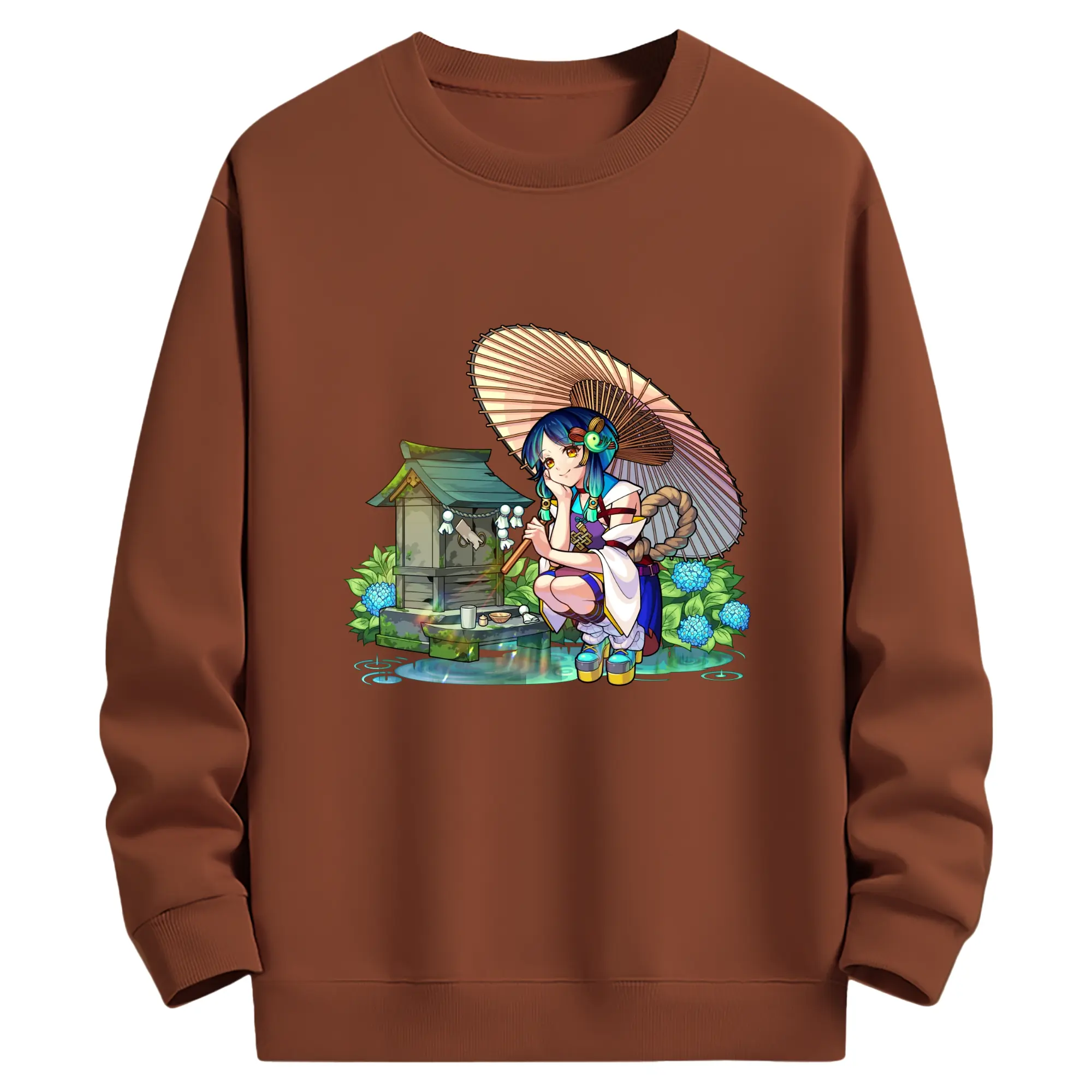 音街ウナマンガ風 - 高品質 クルーネック スウェット ・ コットン59% ポリエステル41% ・ ユニセックス 長袖 トレーナー ・ カジュアル デイリー スポーツ 散歩用