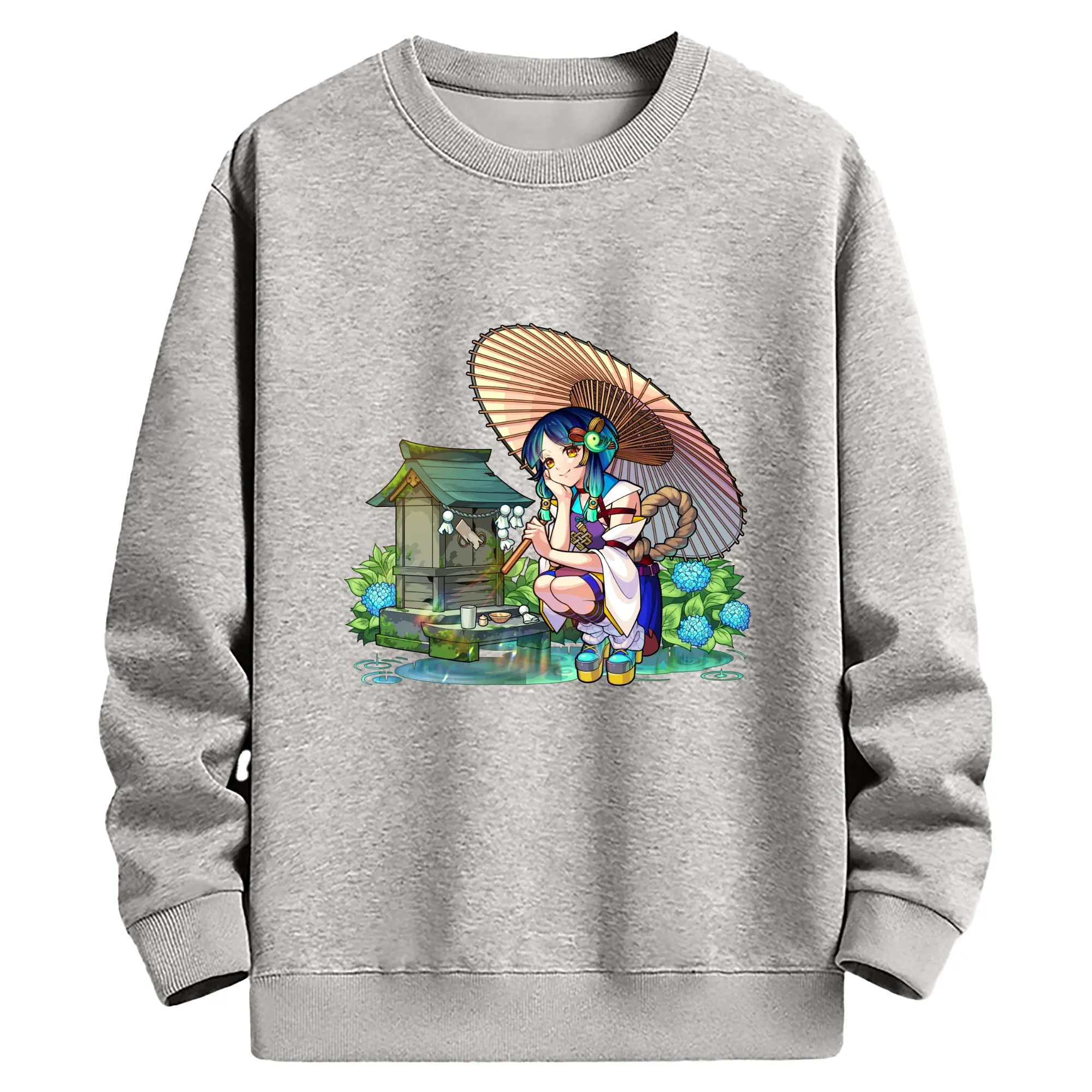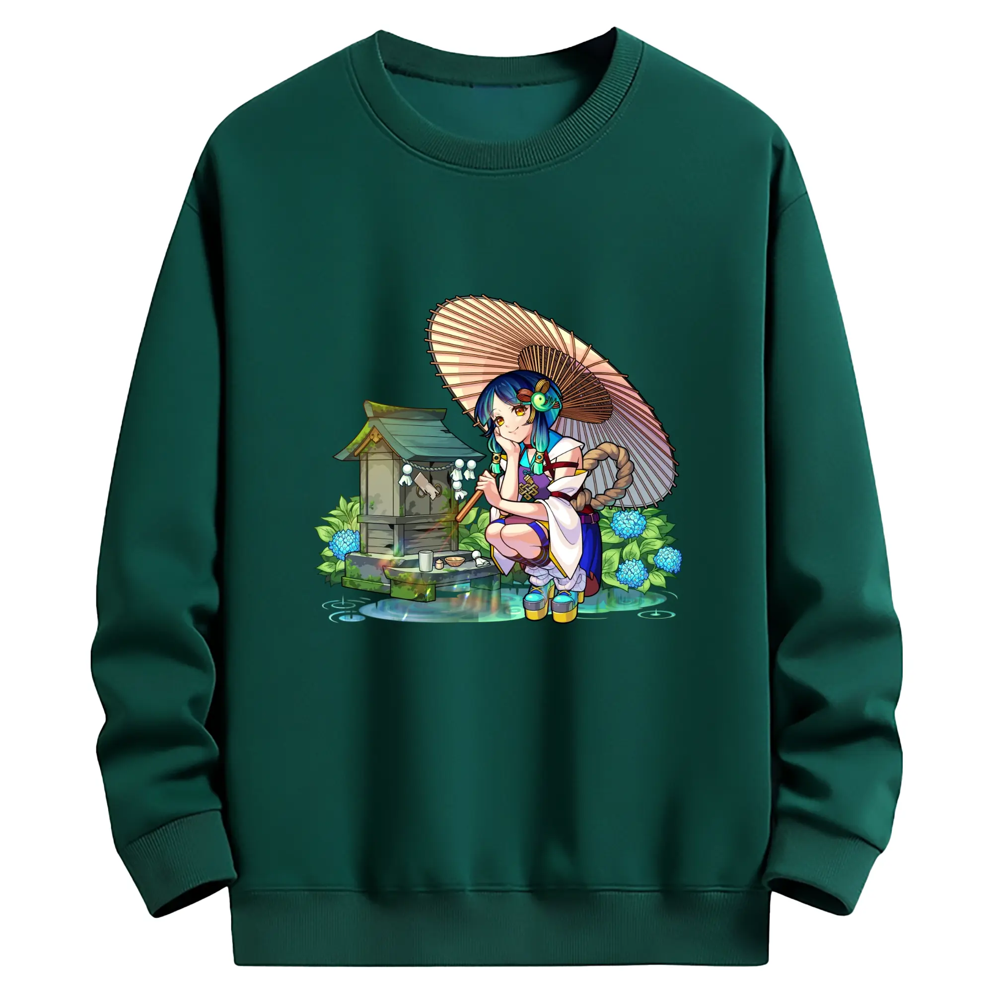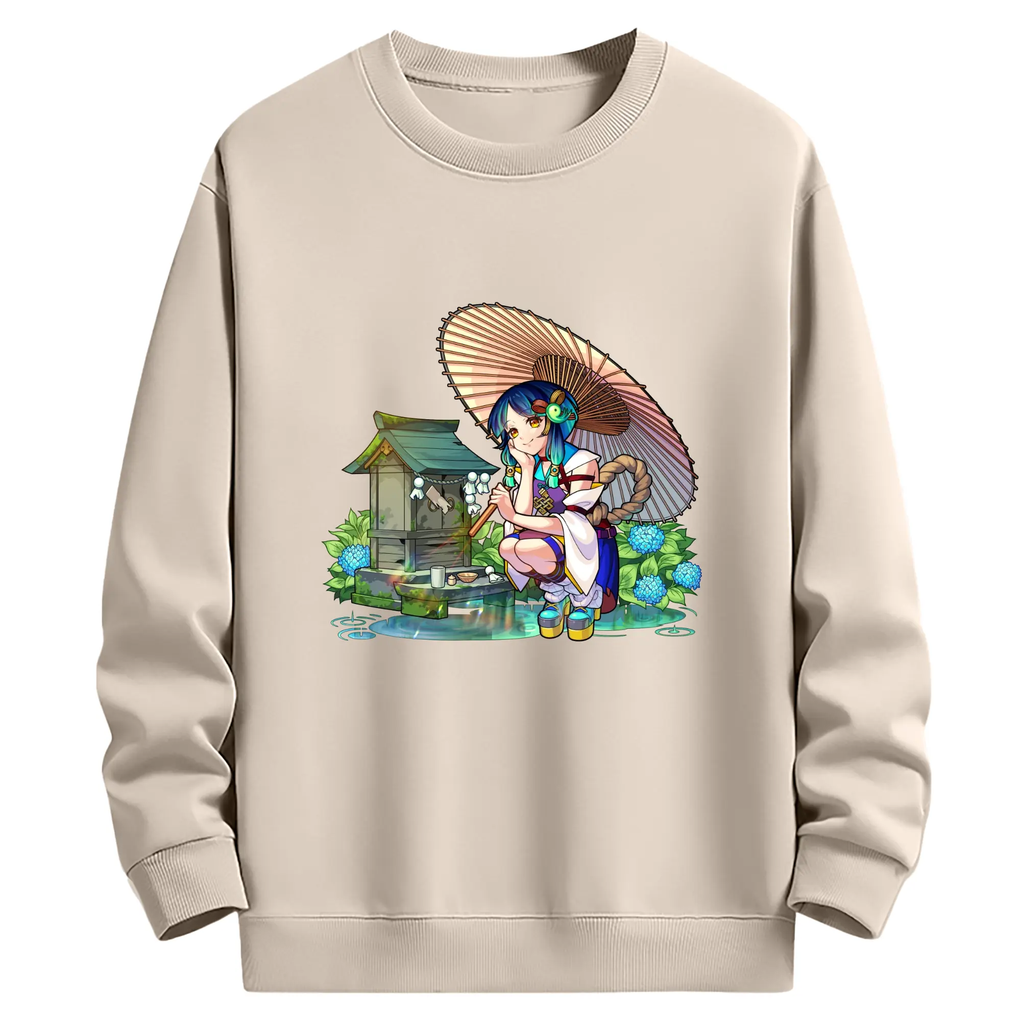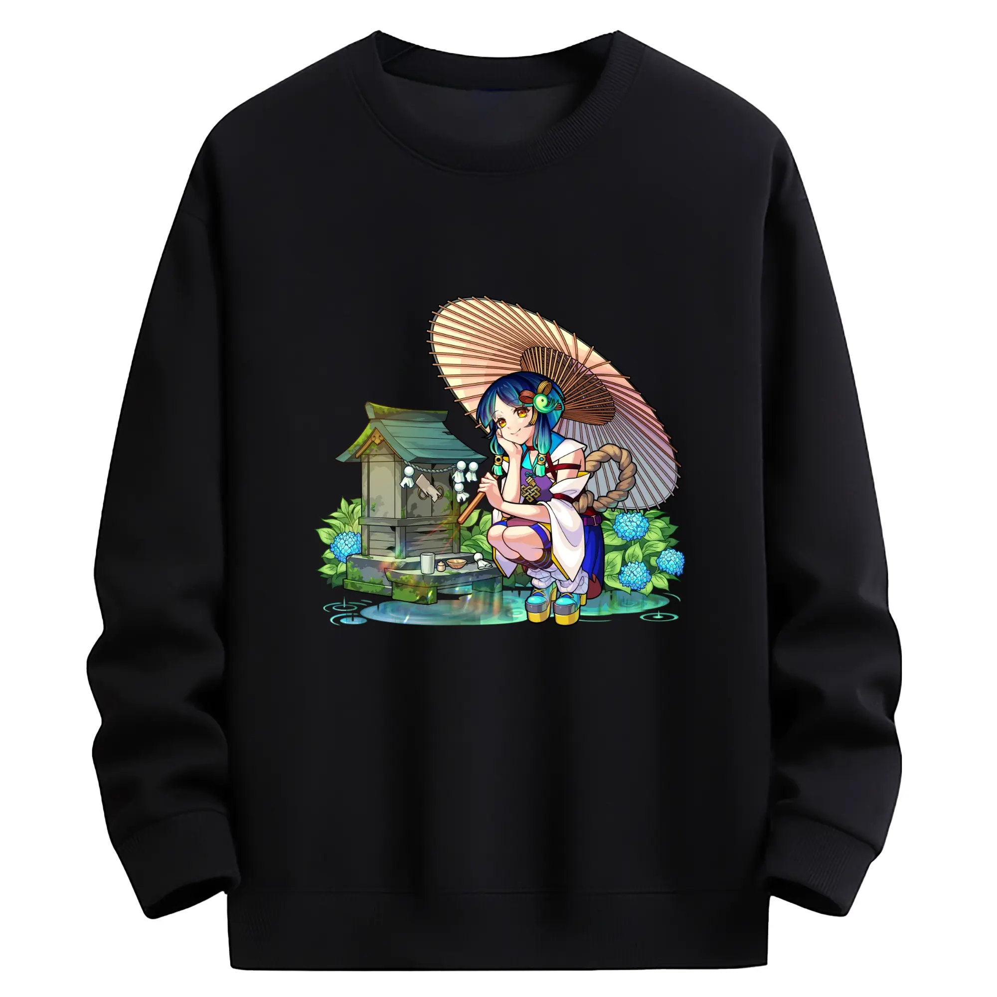 音街ウナマンガ風 - 高品質 クルーネック スウェット ・ コットン59% ポリエステル41% ・ ユニセックス 長袖 トレーナー ・ カジュアル デイリー スポーツ 散歩用