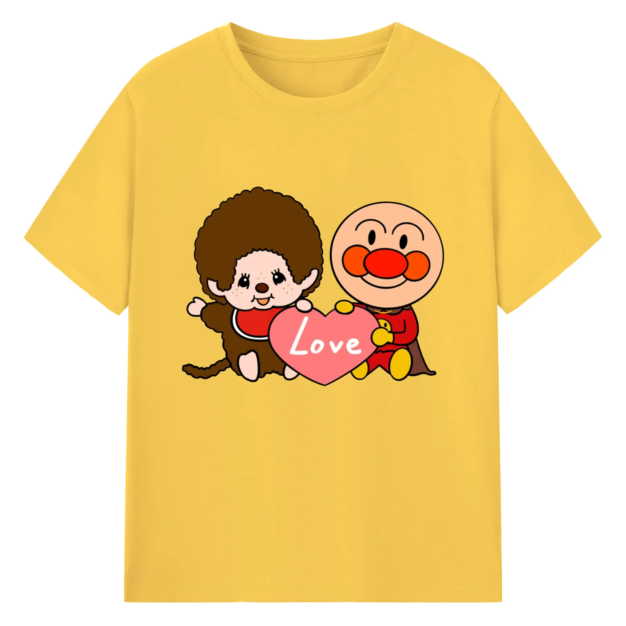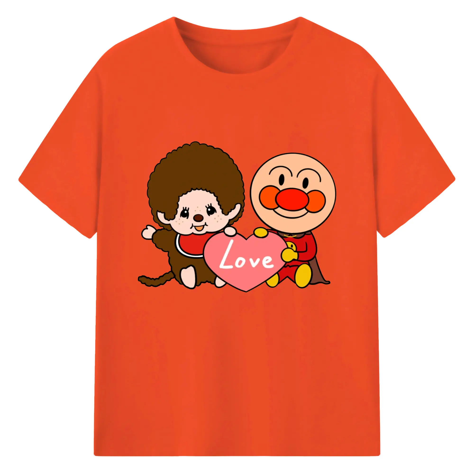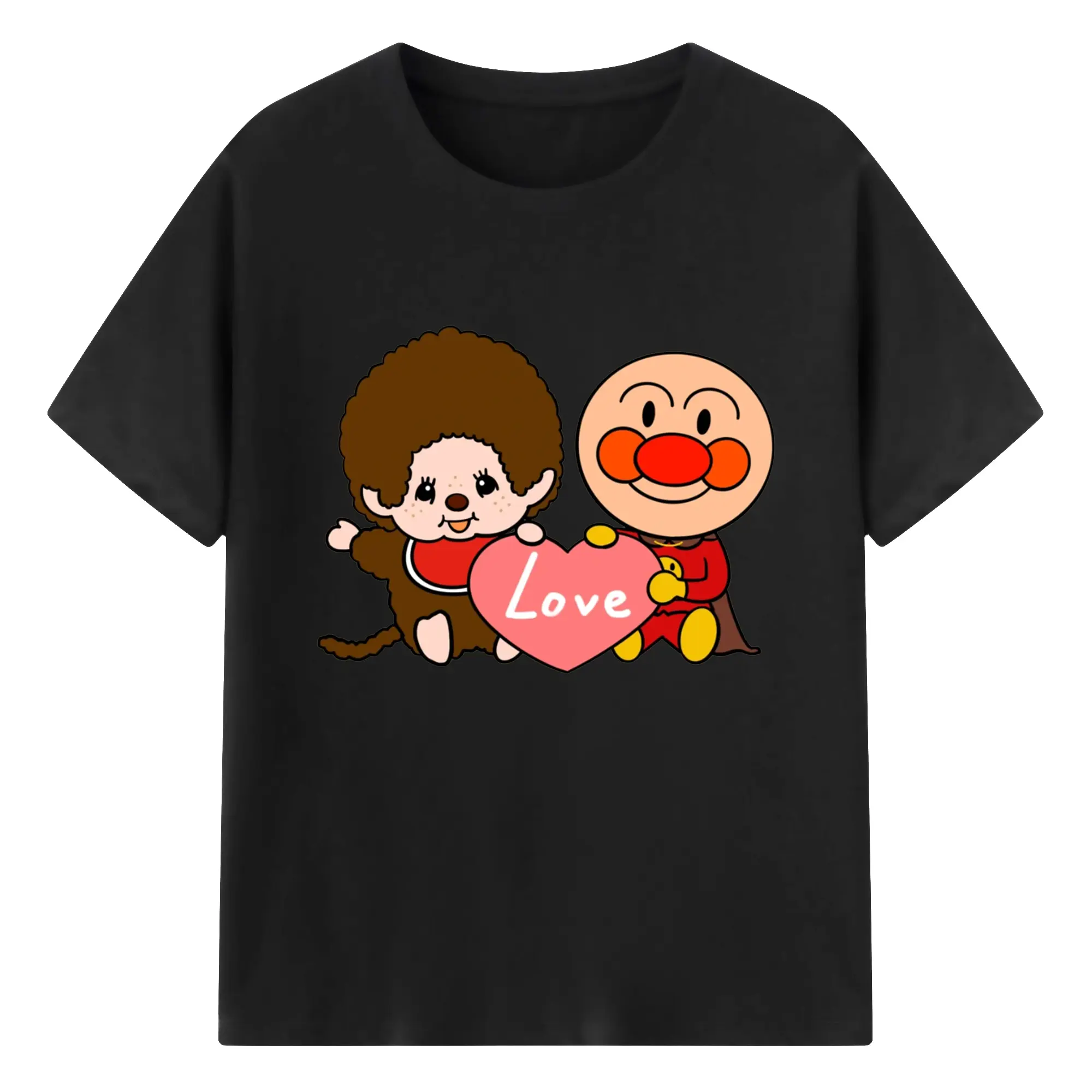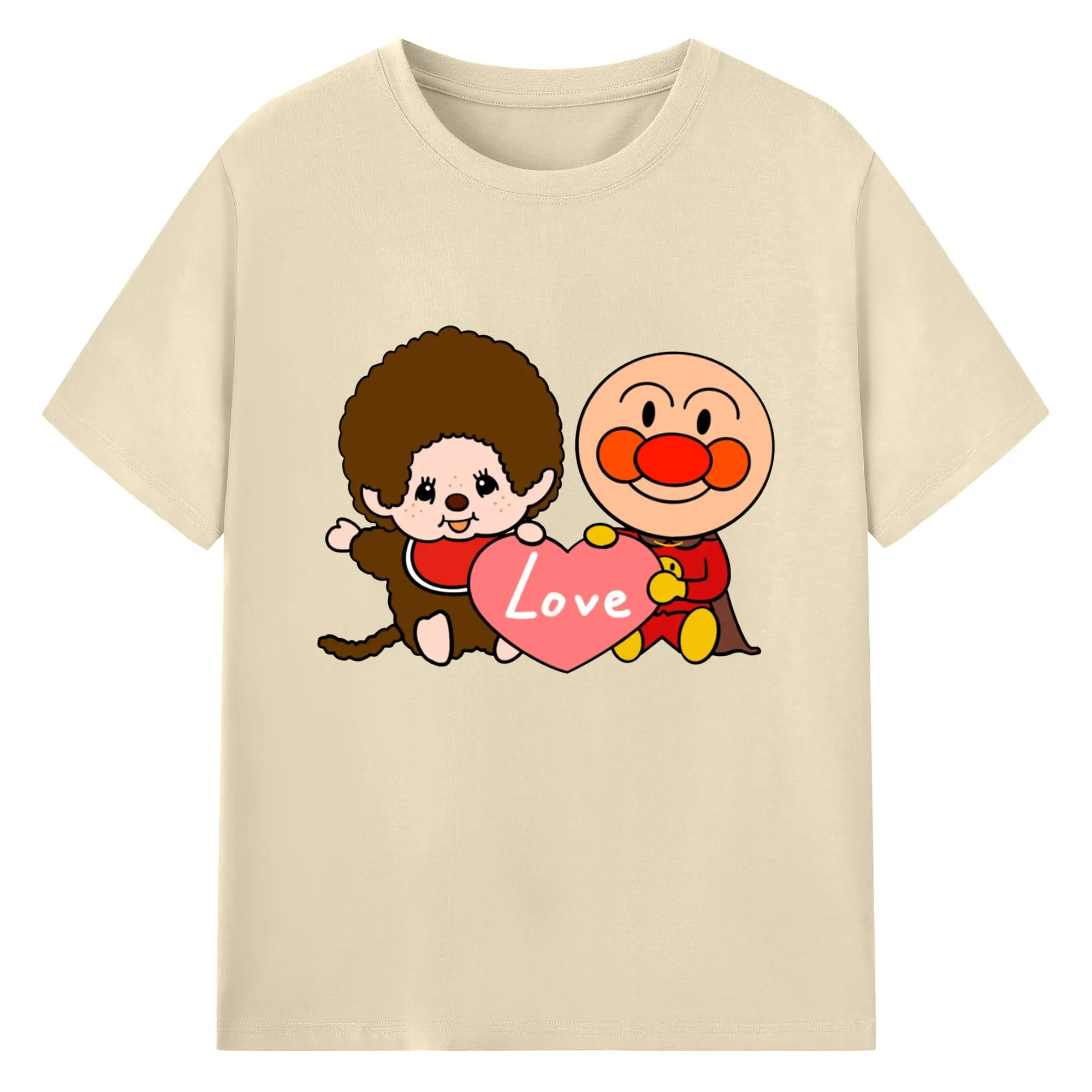 モンチッチ×アンパンマンコラボ限定 - 綿100% ヴィンテージ風 半袖Tシャツ ・ フロントプリント ・ 柔らか肌触り ・ 通気性 快適 ・ スポーツ カジュアル 外出用