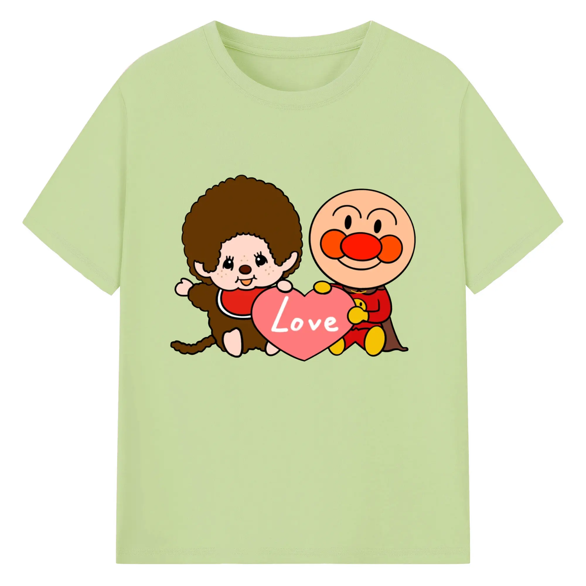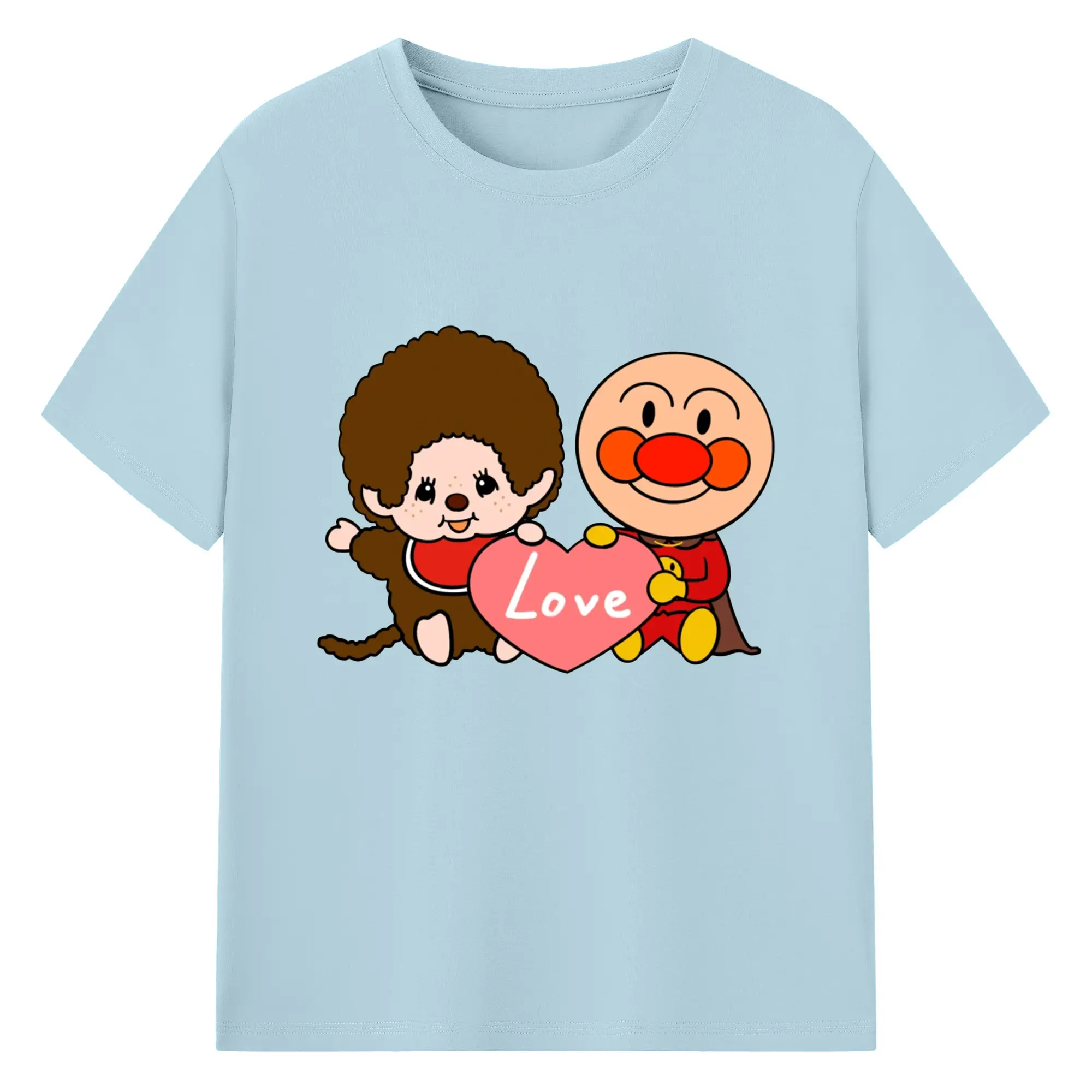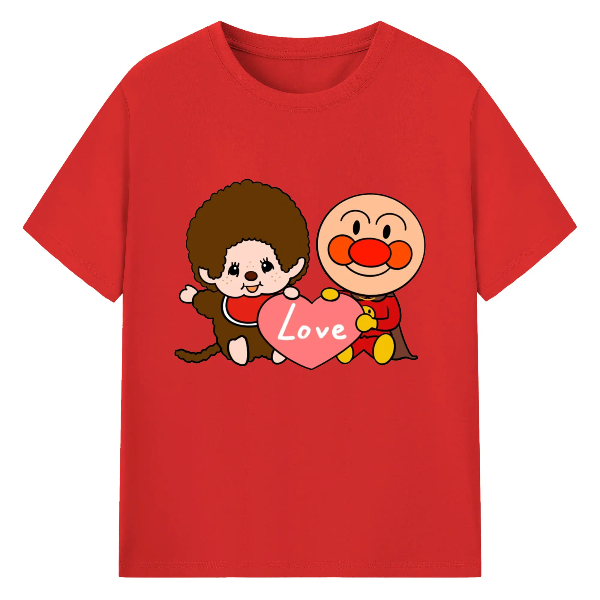 モンチッチ×アンパンマンコラボ限定 - 綿100% ヴィンテージ風 半袖Tシャツ ・ フロントプリント ・ 柔らか肌触り ・ 通気性 快適 ・ スポーツ カジュアル 外出用