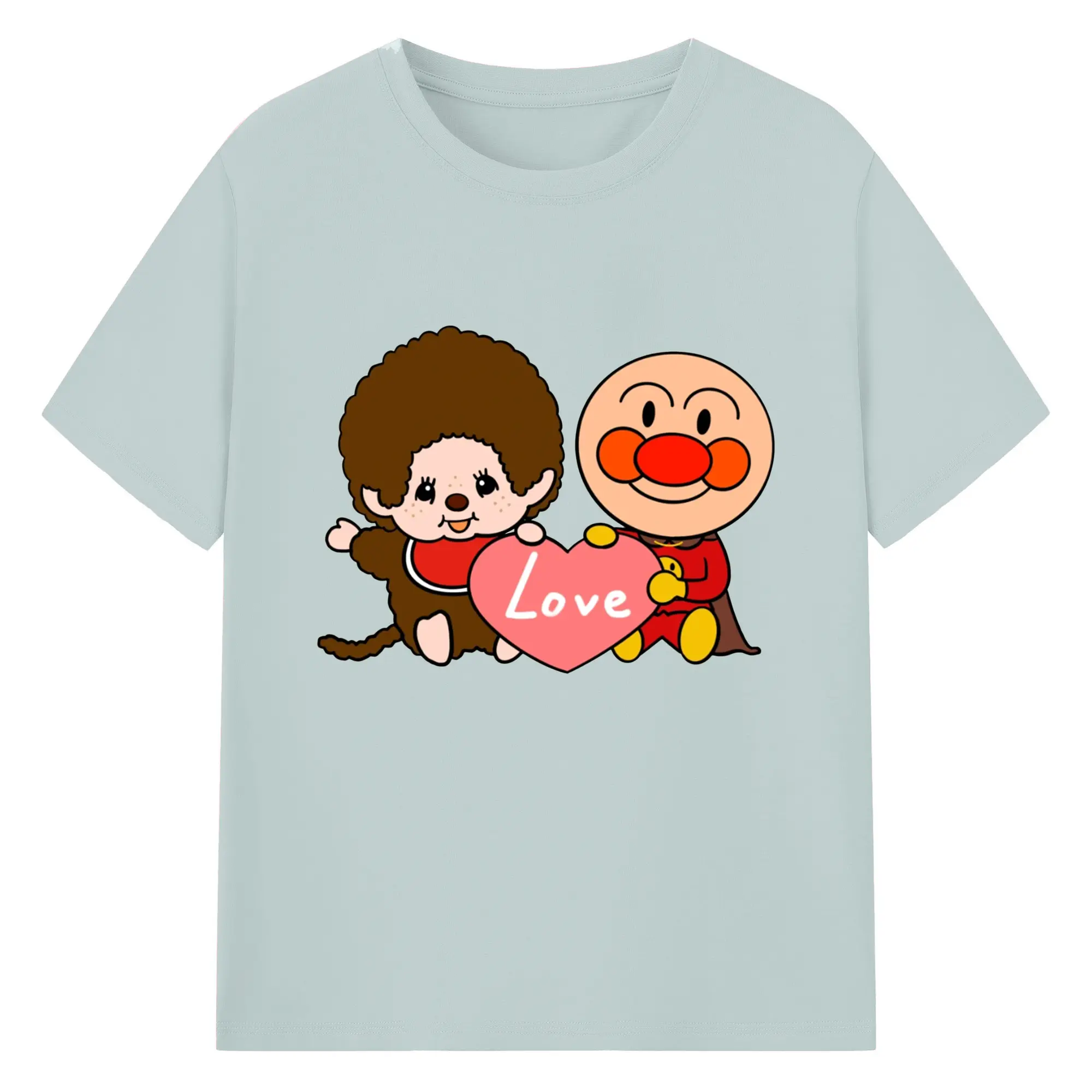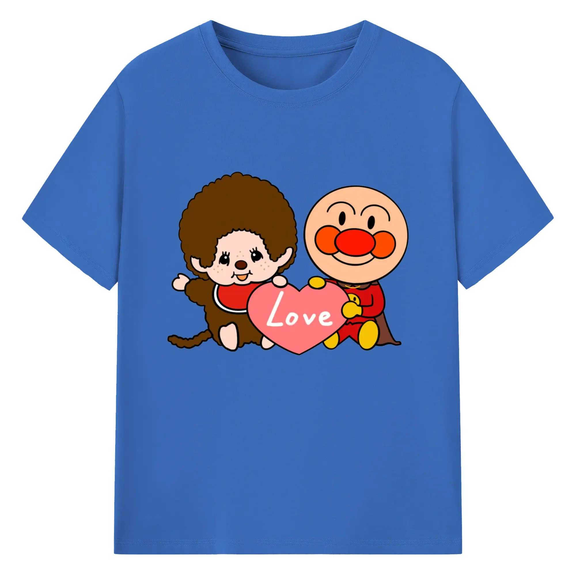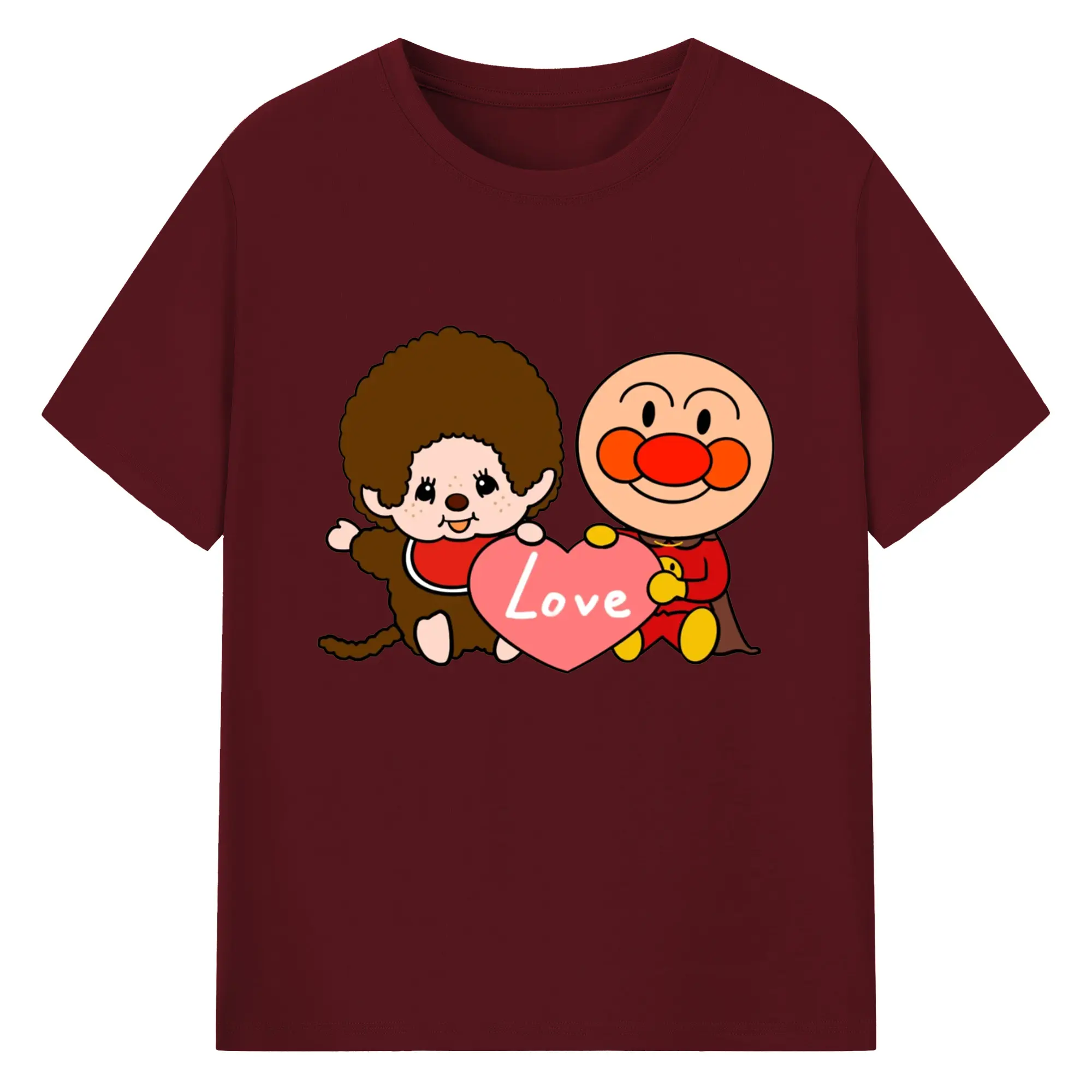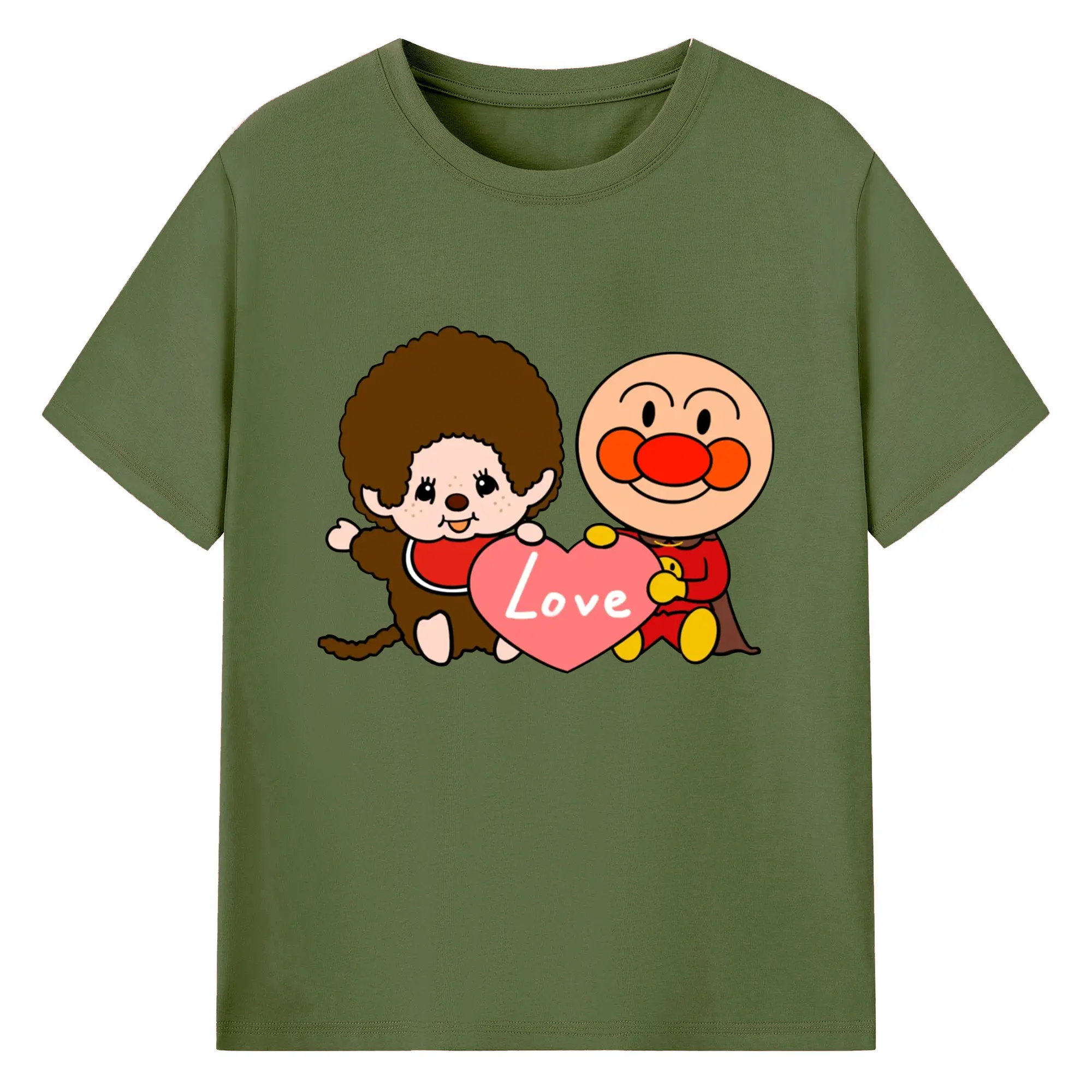 モンチッチ×アンパンマンコラボ限定 - 綿100% ヴィンテージ風 半袖Tシャツ ・ フロントプリント ・ 柔らか肌触り ・ 通気性 快適 ・ スポーツ カジュアル 外出用